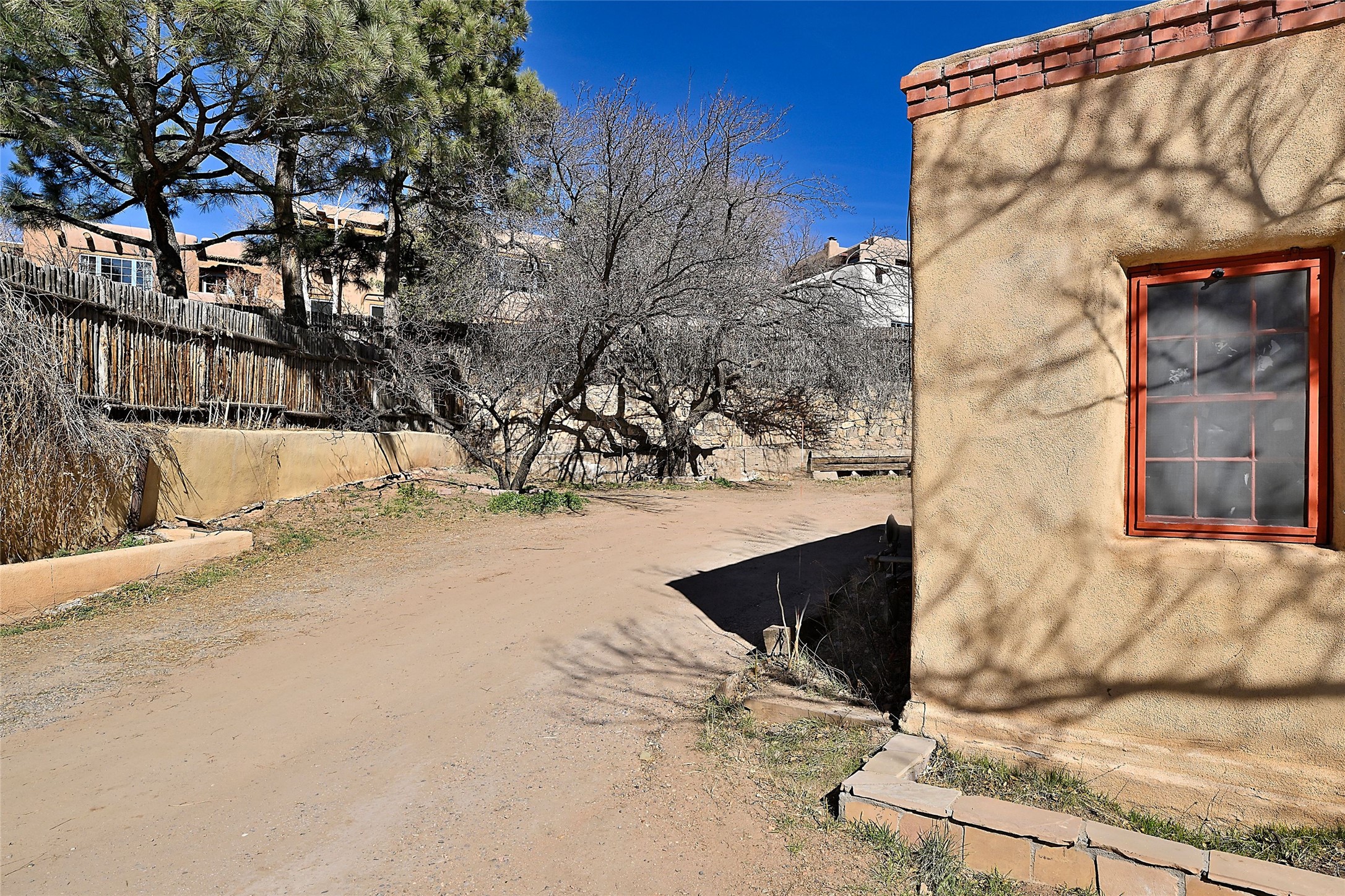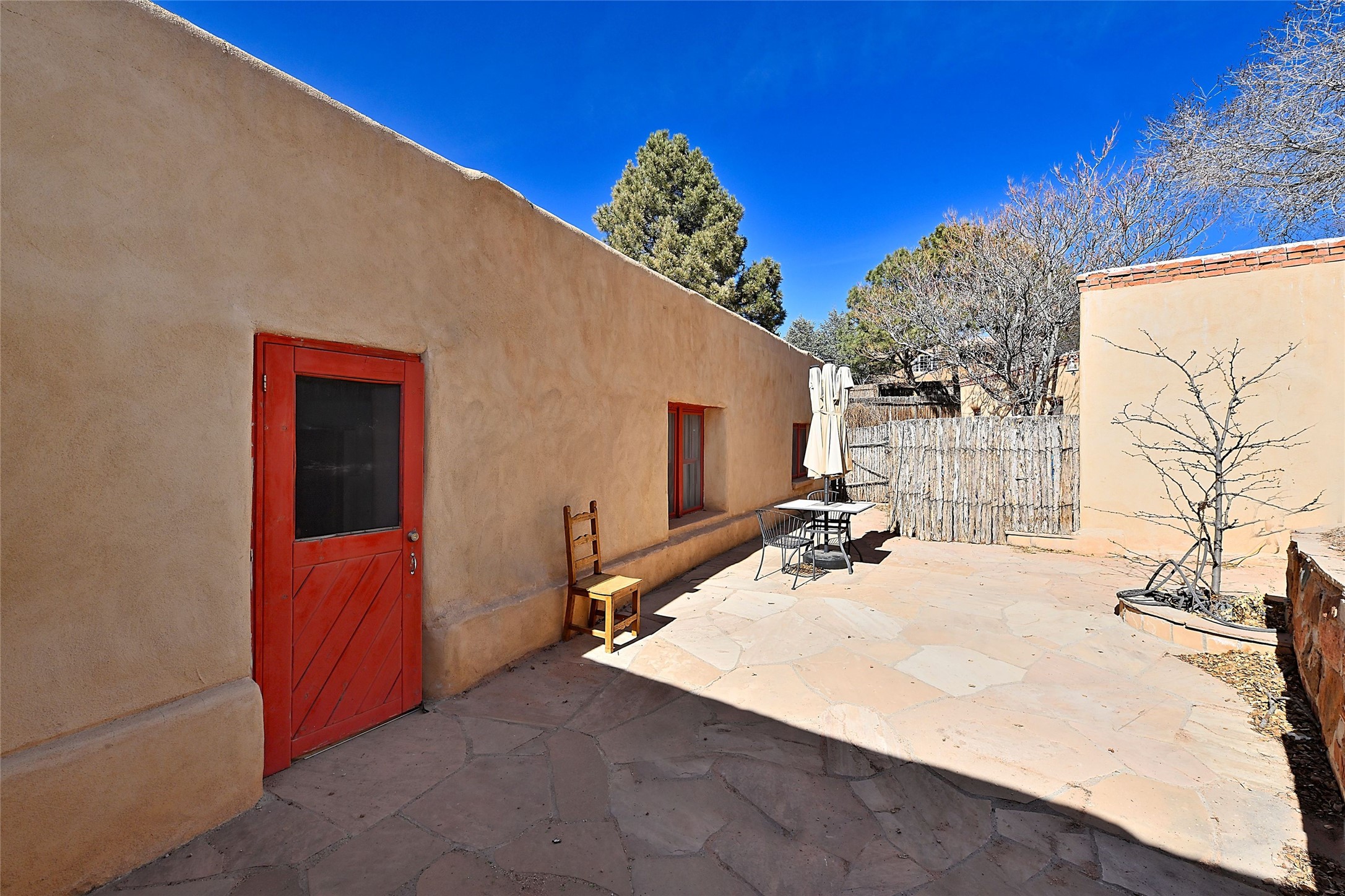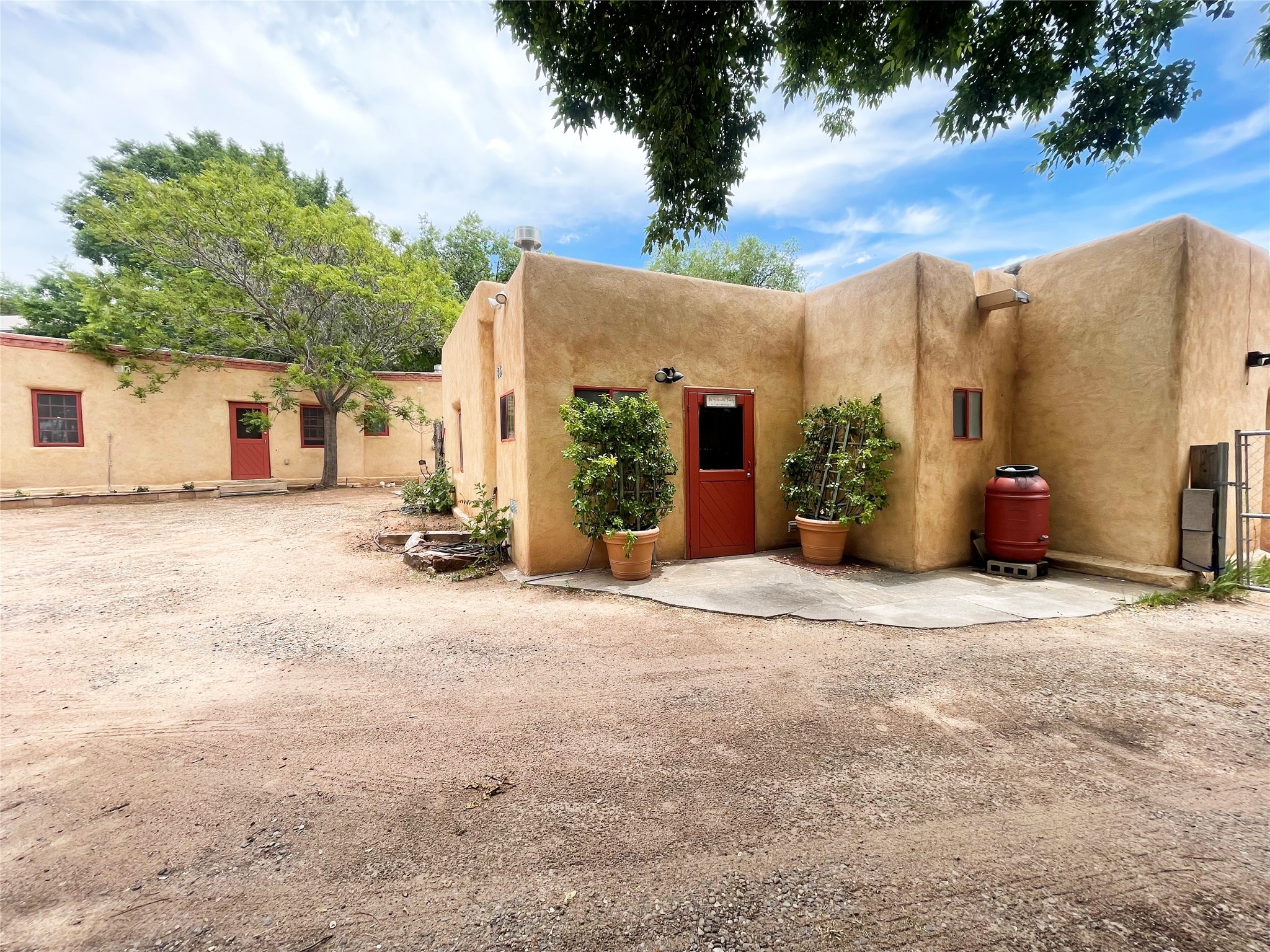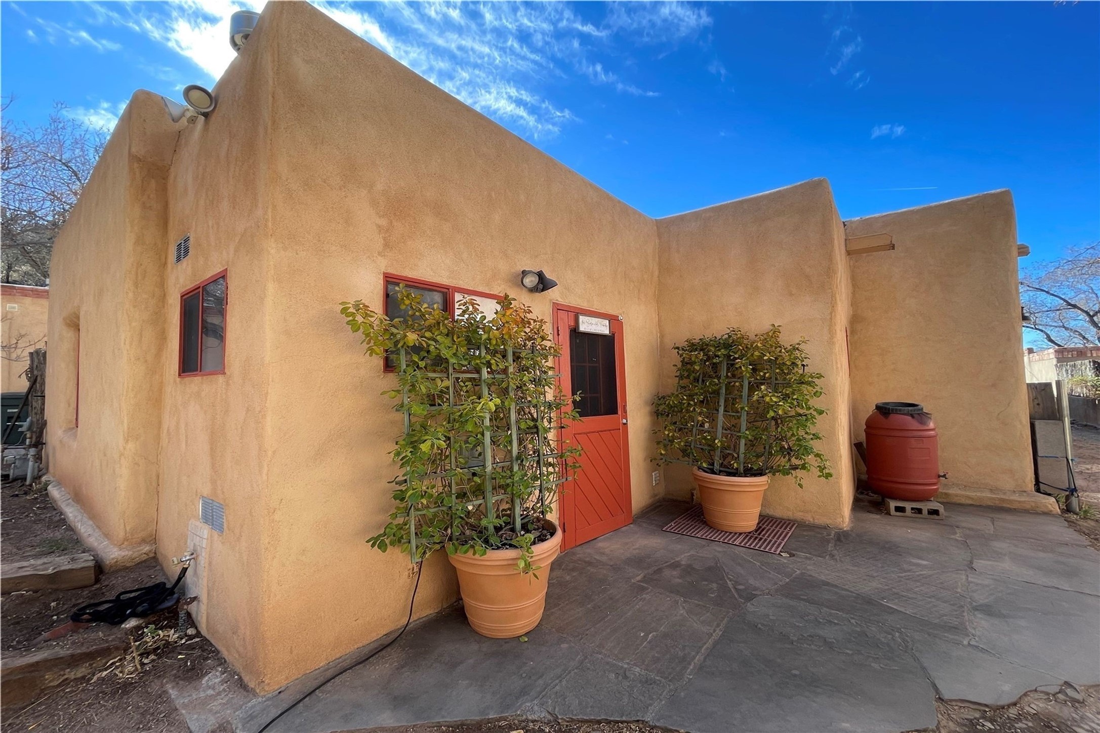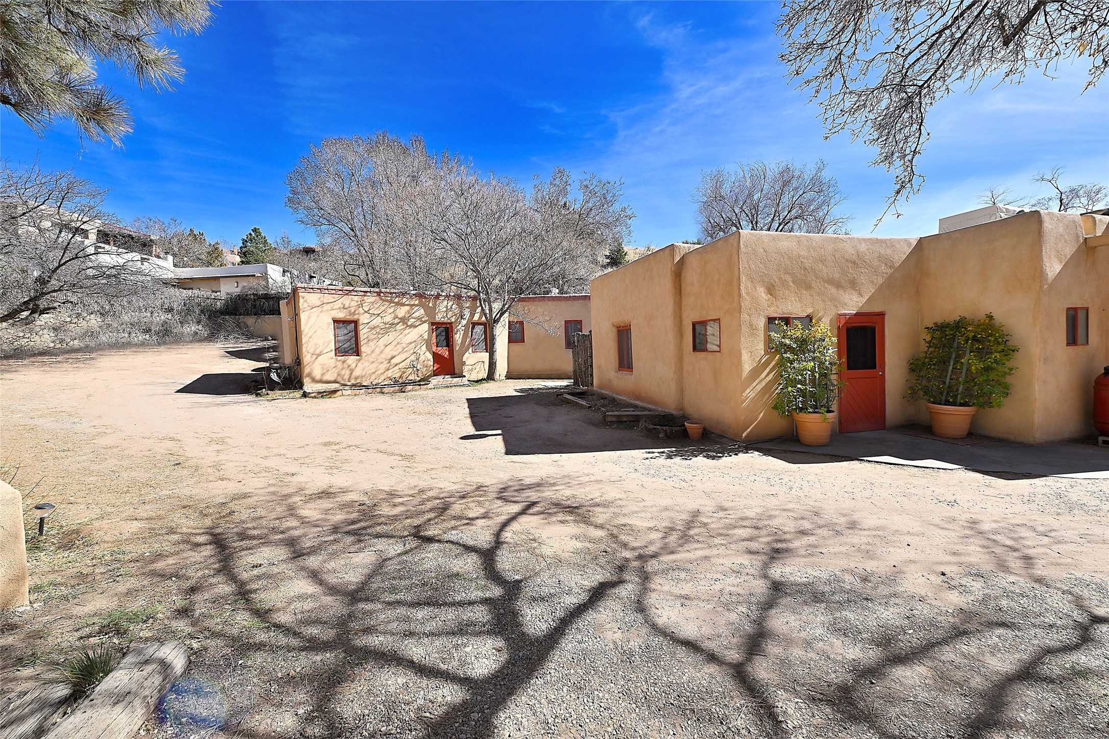 Truly, this authentic Santa Fe Historic Double Adobe Home and Casita near the Plaza exude Santa Fe Style. Down a lane from Paseo De Peralta, leads one to this very private family compound situated on .71 acres of land. The main home was built by the Spanish military in the late 1700s to house an officer at Fort Marcy. The Sisneros Family came to own it due to a daughter marrying the Spanish Colonel in 1840. The property then became a family Compound. This storied Santa Fe property has been owned and loved by the Sisneros family ever since. The compound comprises a two-bedroom, two-bath main home and a one-bedroom, one-bath casita, both with full kitchens and living room areas. The Main Home and the Casita were fully restored and remodeled in 2008. The restoration was accomplished with respect for the historic quality of the home. The high viga ceilings, diamond finish, hand-troweled plaster walls, multiple nichos, and wood floors speak to that respectfully. Adjacent land, purchased from the Cathedral in the 1950s, adds westerly city and mountain views. Enjoy the private outdoor patio area nestled below the Cross of the Martyrs, and walk, yes walk, to all that the heart of the Historic Santa Fe Plaza has to offer. This is a once in a lifetime opportunity!