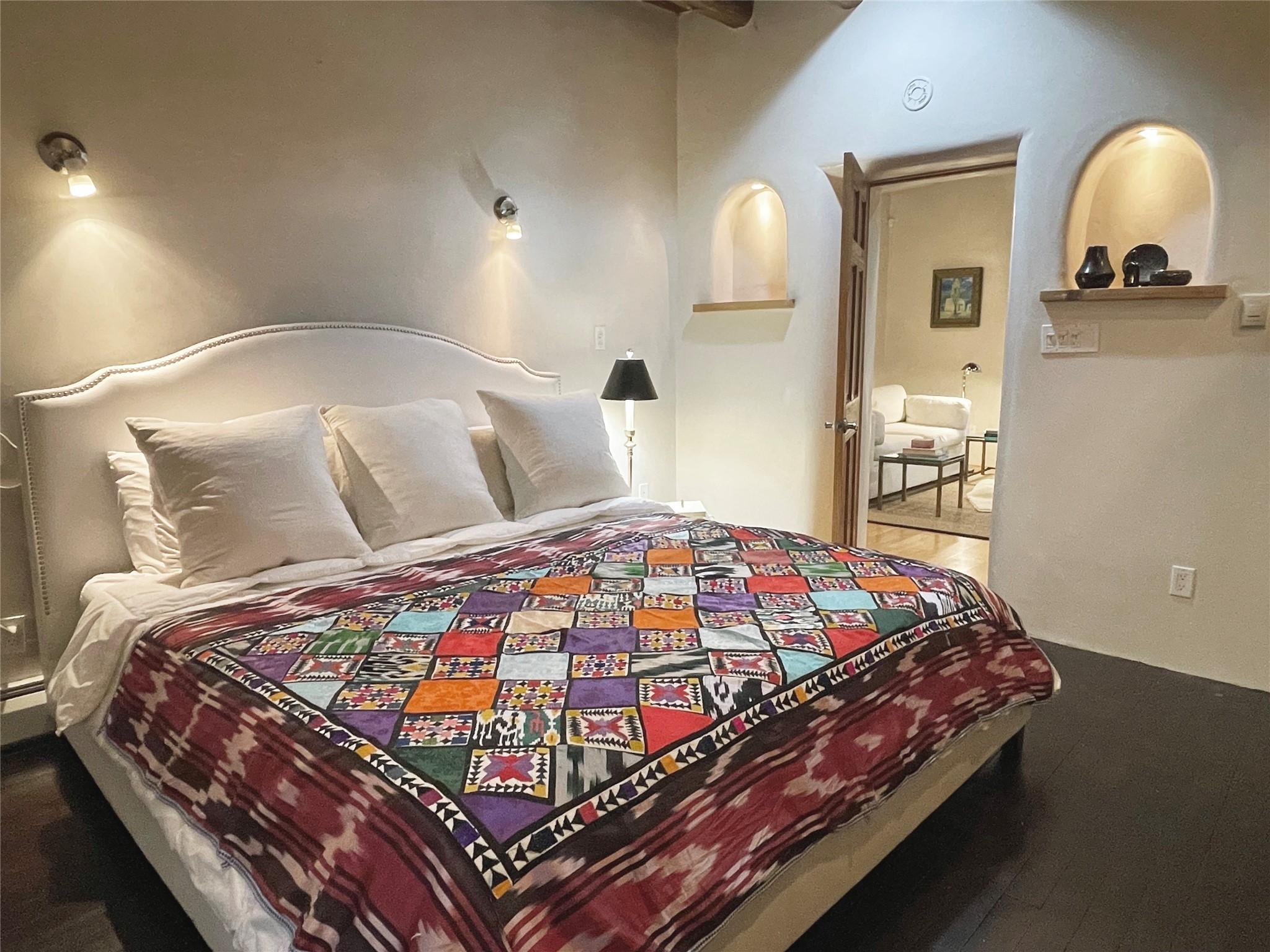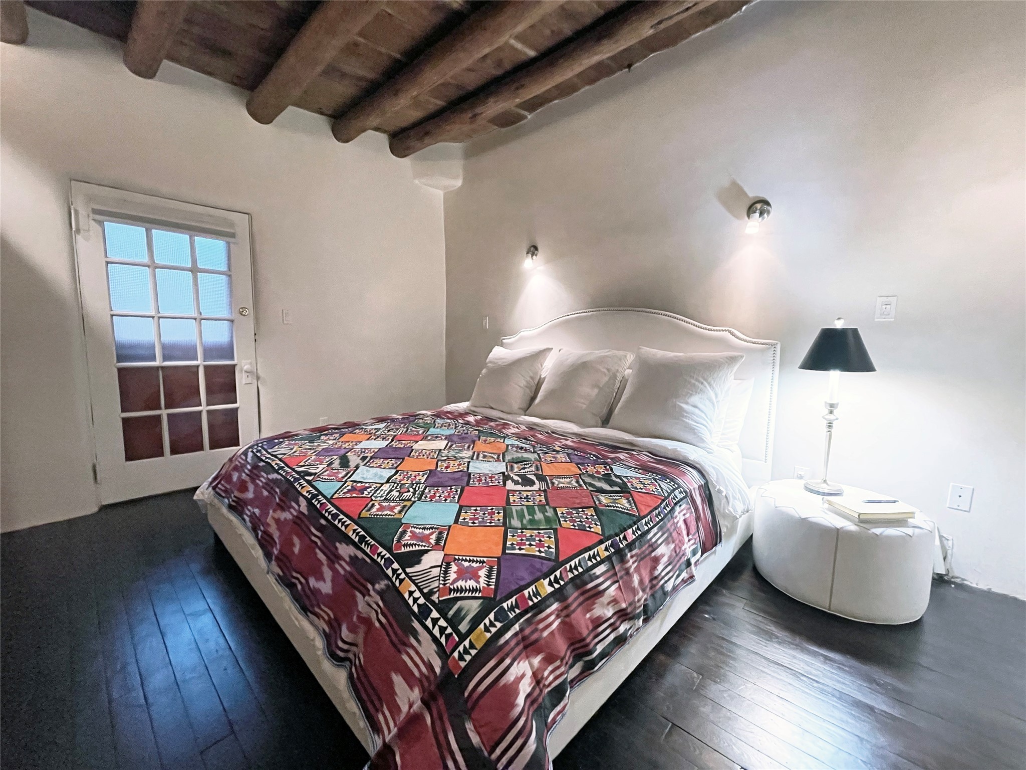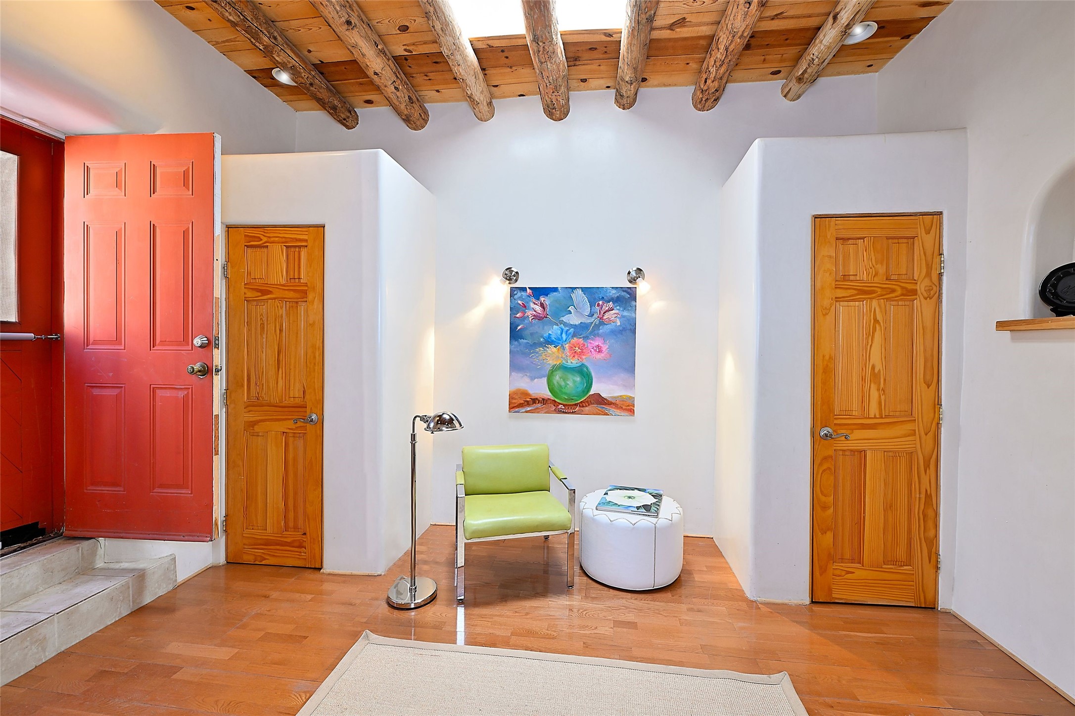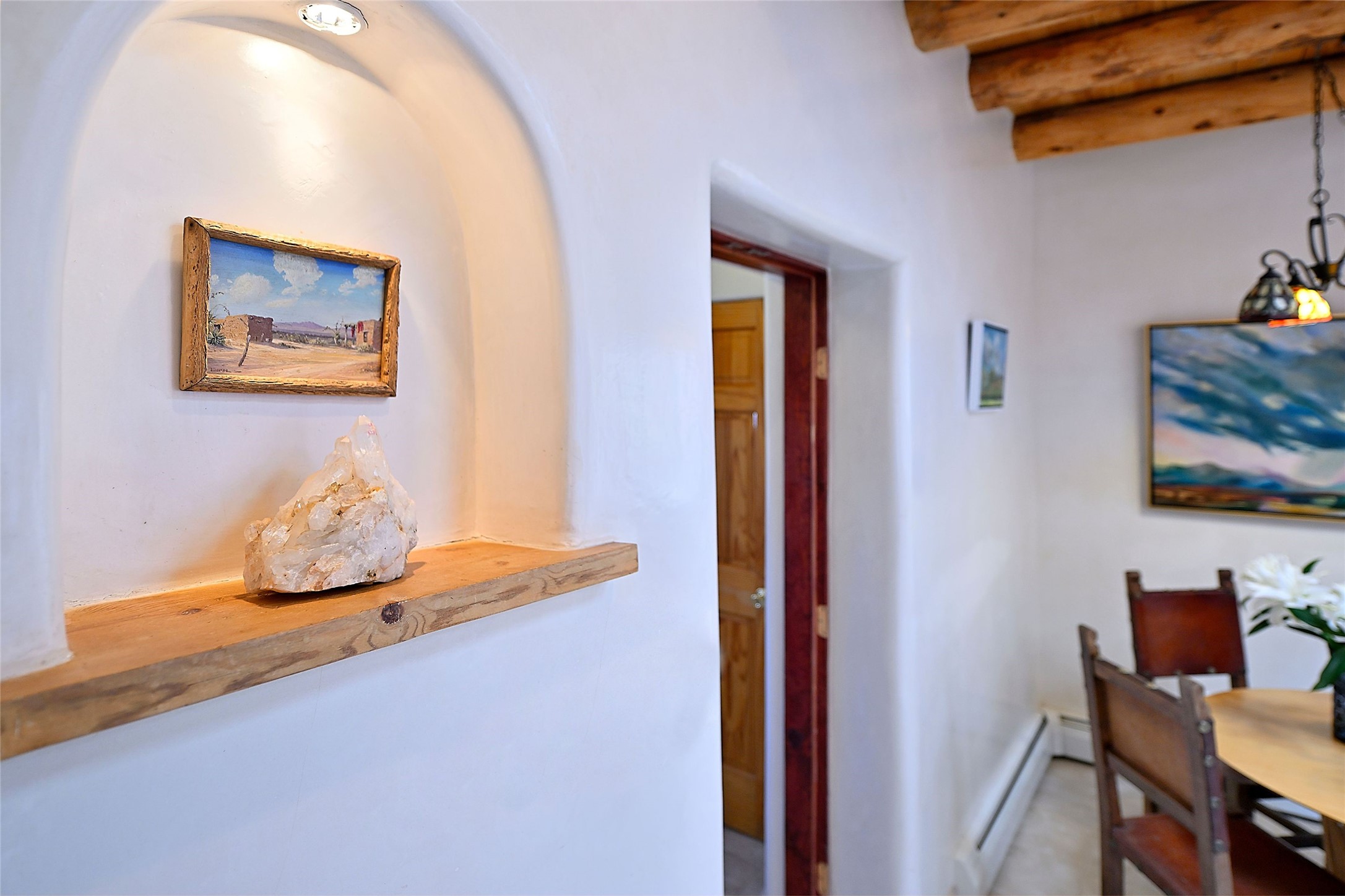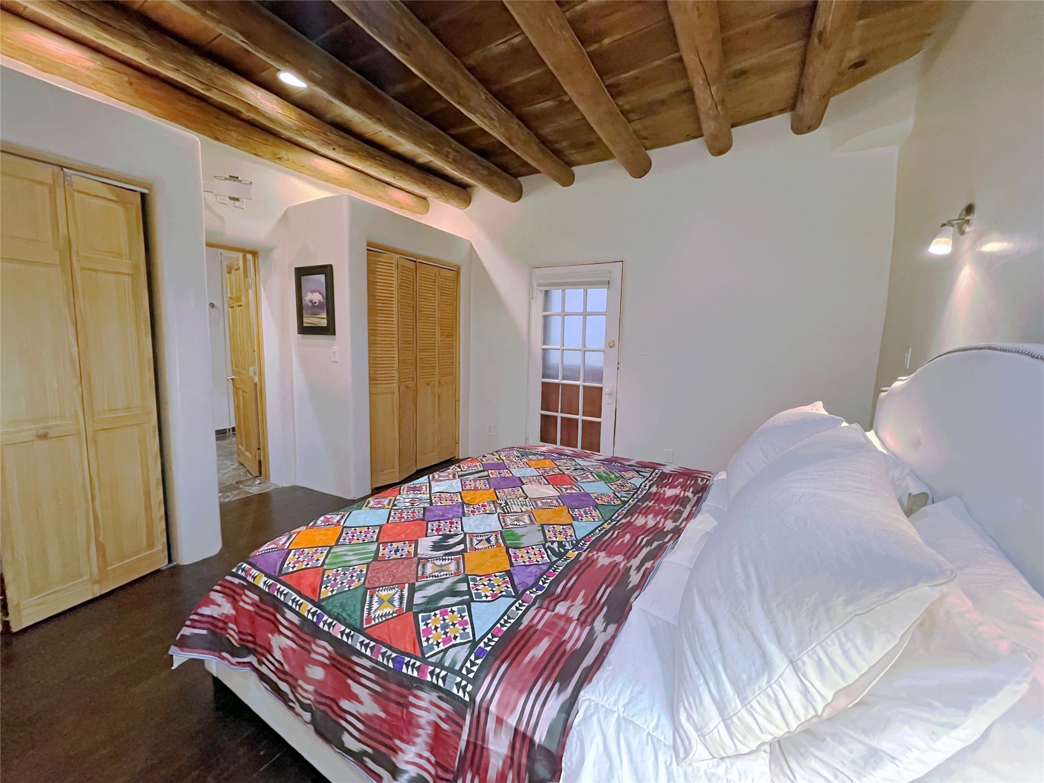 Truly, this authentic Santa Fe Historic Double Adobe Home and Casita near the Plaza exude Santa Fe Style. Down a lane from Paseo De Peralta, leads one to this very private family compound situated on .71 acres of land. The main home was built by the Spanish military in the late 1700s to house an officer at Fort Marcy. The Sisneros Family came to own it due to a daughter marrying the Spanish Colonel in 1840. The property then became a family Compound. This storied Santa Fe property has been owned and loved by the Sisneros family ever since. The compound comprises a two-bedroom, two-bath main home and a one-bedroom, one-bath casita, both with full kitchens and living room areas. The Main Home and the Casita were fully restored and remodeled in 2008. The restoration was accomplished with respect for the historic quality of the home. The high viga ceilings, diamond finish, hand-troweled plaster walls, multiple nichos, and wood floors speak to that respectfully. Adjacent land, purchased from the Cathedral in the 1950s, adds westerly city and mountain views. Enjoy the private outdoor patio area nestled below the Cross of the Martyrs, and walk, yes walk, to all that the heart of the Historic Santa Fe Plaza has to offer. This is a once in a lifetime opportunity!