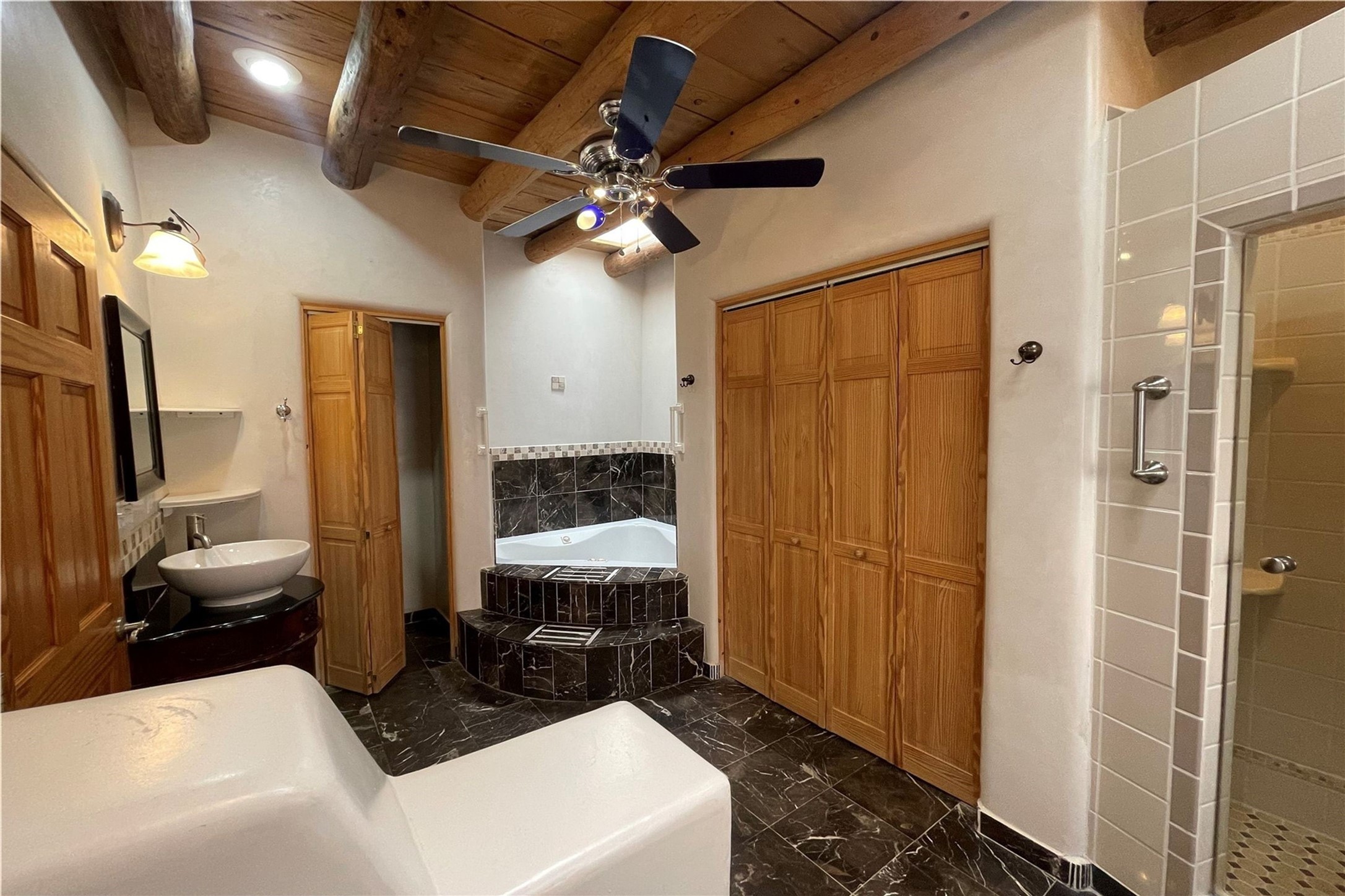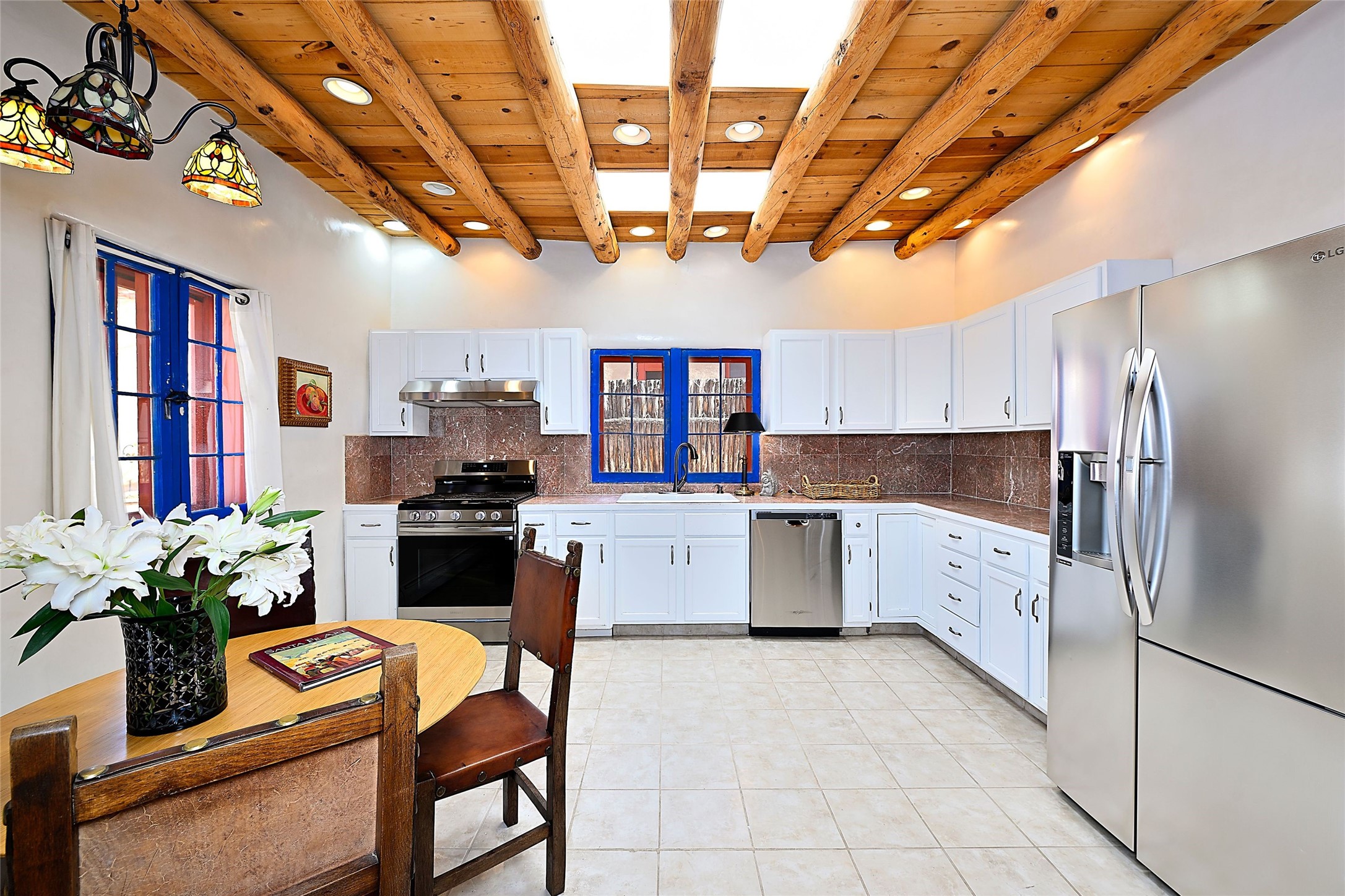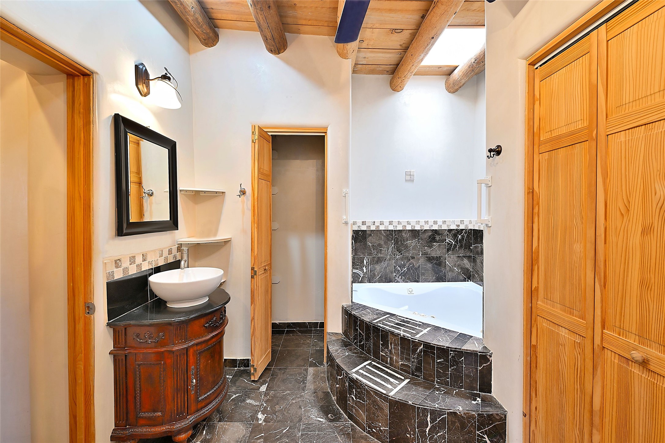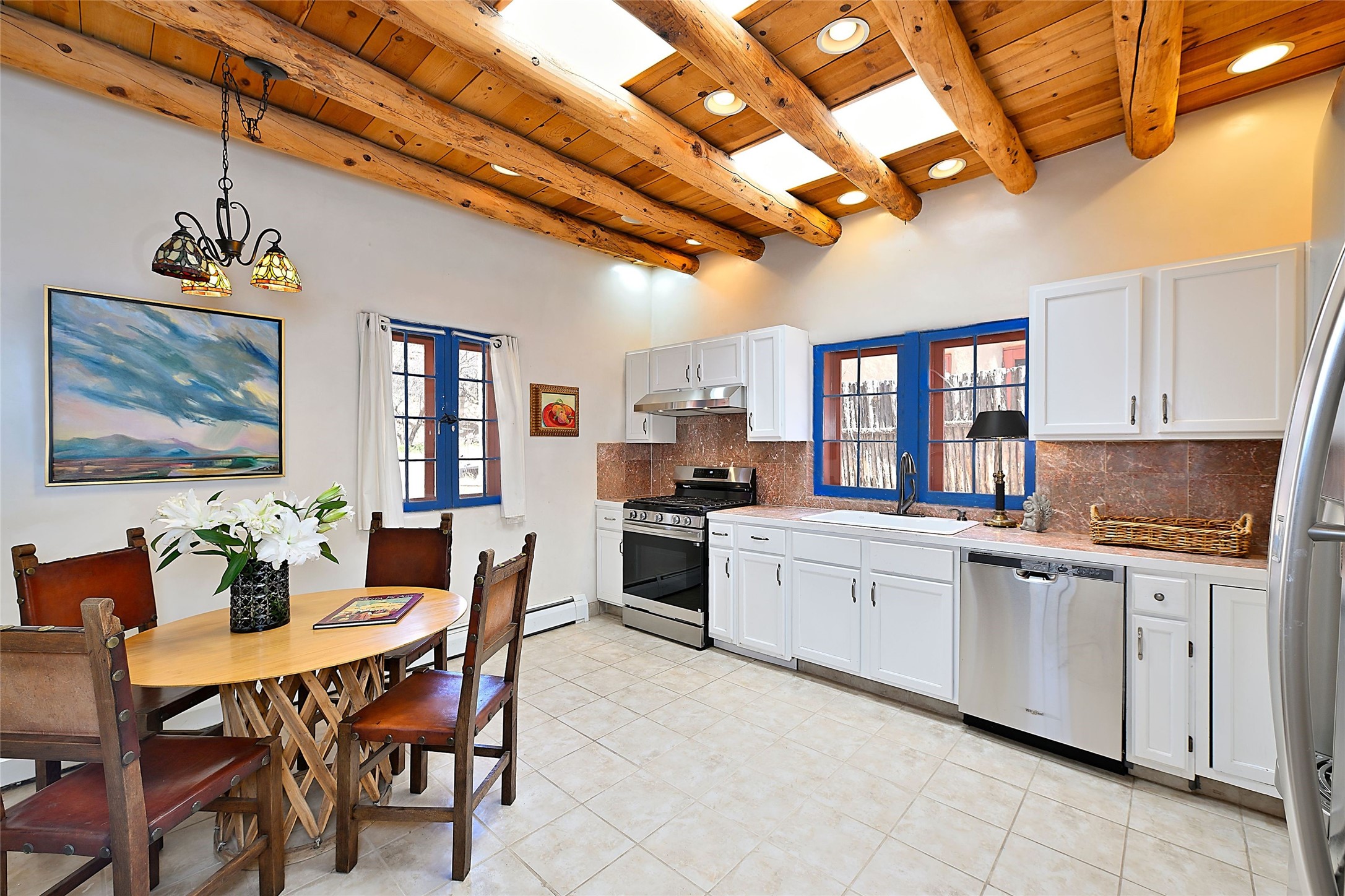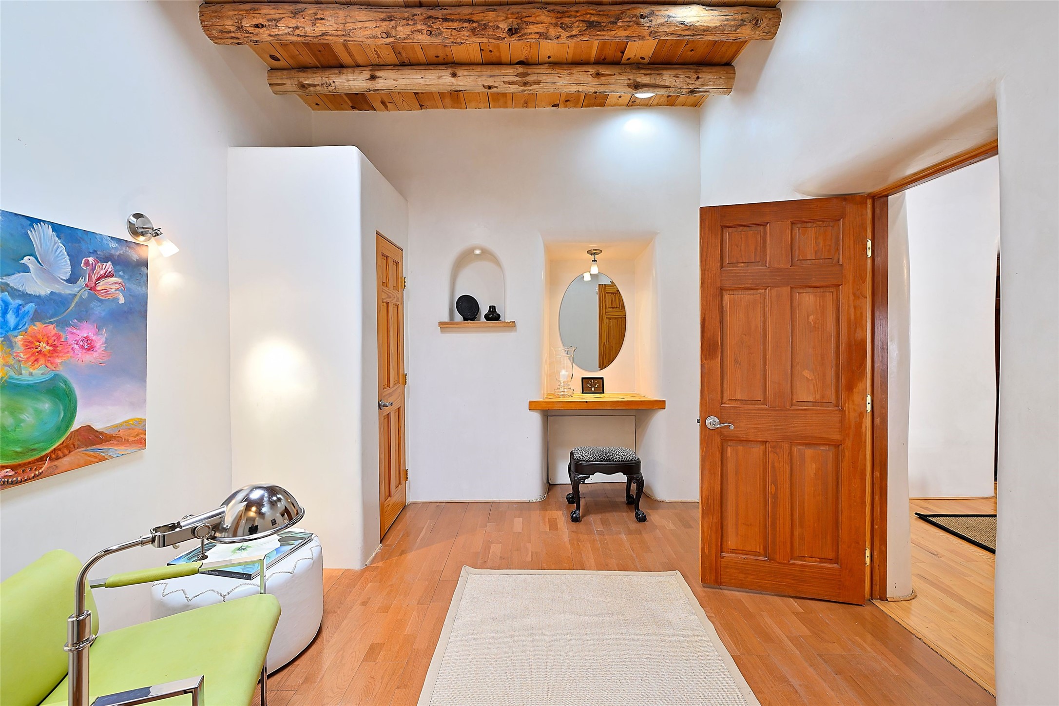 Truly, this authentic Santa Fe Historic Double Adobe Home and Casita near the Plaza exude Santa Fe Style. Down a lane from Paseo De Peralta, leads one to this very private family compound situated on .71 acres of land. The main home was built by the Spanish military in the late 1700s to house an officer at Fort Marcy. The Sisneros Family came to own it due to a daughter marrying the Spanish Colonel in 1840. The property then became a family Compound. This storied Santa Fe property has been owned and loved by the Sisneros family ever since. The compound comprises a two-bedroom, two-bath main home and a one-bedroom, one-bath casita, both with full kitchens and living room areas. The Main Home and the Casita were fully restored and remodeled in 2008. The restoration was accomplished with respect for the historic quality of the home. The high viga ceilings, diamond finish, hand-troweled plaster walls, multiple nichos, and wood floors speak to that respectfully. Adjacent land, purchased from the Cathedral in the 1950s, adds westerly city and mountain views. Enjoy the private outdoor patio area nestled below the Cross of the Martyrs, and walk, yes walk, to all that the heart of the Historic Santa Fe Plaza has to offer. This is a once in a lifetime opportunity!