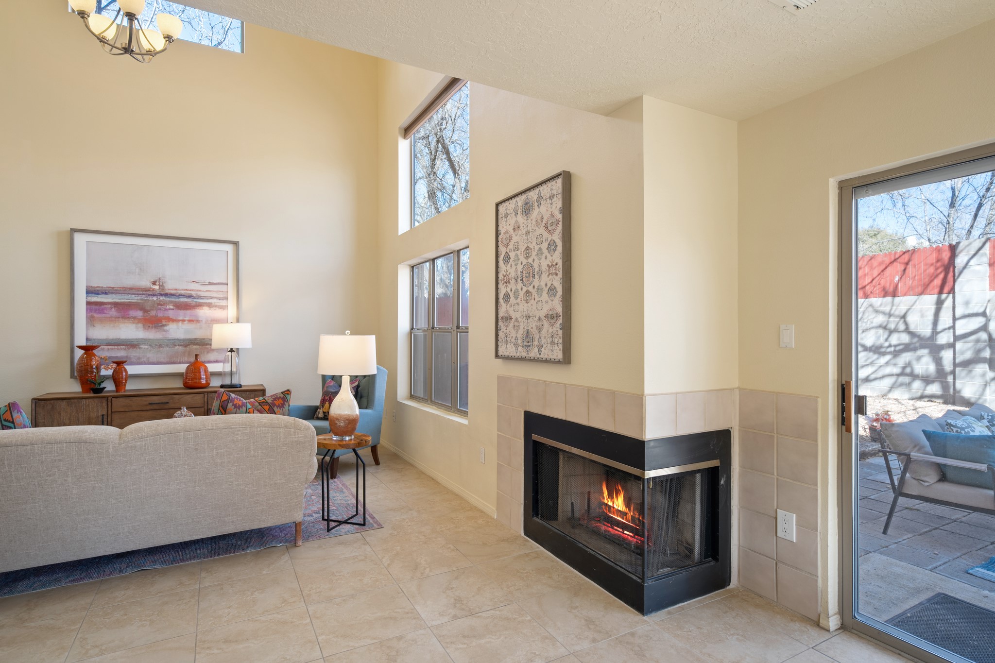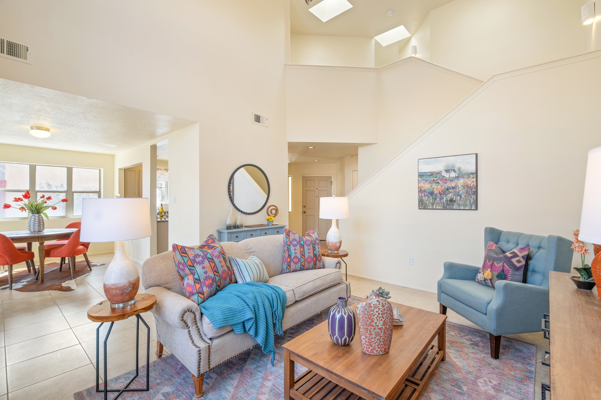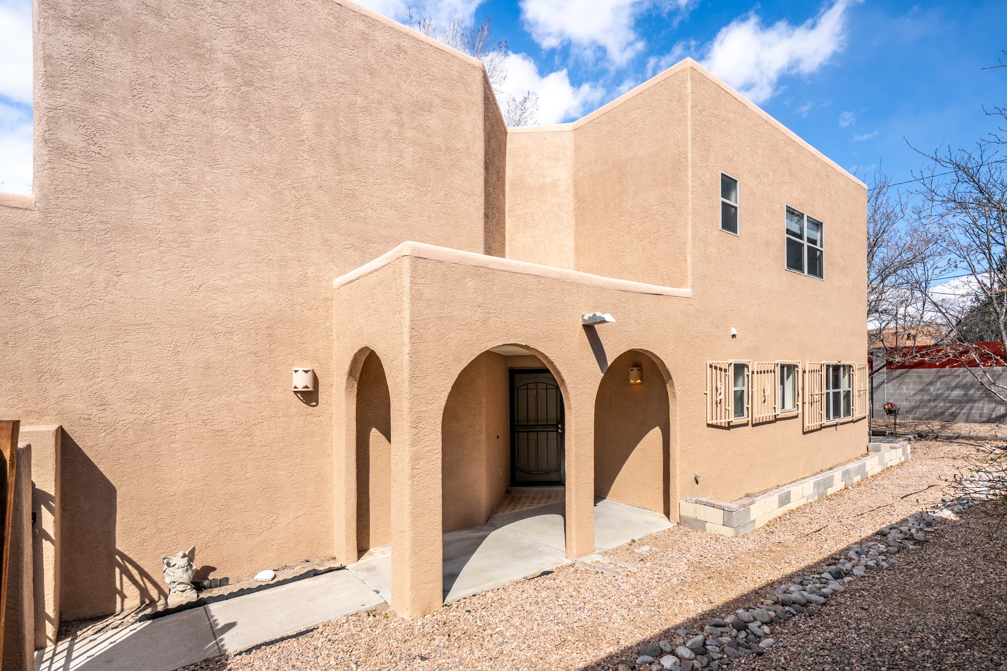 Priced $41,000 below appraisal and pre-inspected, this beautifully updated, light, and bright 3-bedroom, 2.5-bathroom home is situated on a quiet cul-de-sac providing a peaceful and very private ambiance in the heart of central Santa Fe. The two-story design boasts an open and airy layout, accentuated by soaring ceilings in the living room, clearstory picture windows that flood the space with natural light, and a charming wood-burning fireplace. Central refrigerated air conditioning and skylights throughout ensure year-round comfort and a welcoming atmosphere.The modernized kitchen shines with elegant granite countertops and stainless steel appliances complementing the home's contemporary feel. The updated bathrooms feature tasteful finishes that add a touch of luxury. The master suite is a serene retreat, complete with an ensuite bathroom and a generously sized walk-in closet, providing ample storage and privacy.Outdoor living is a delight with a fully enclosed, gated courtyard and an expansive yard shaded by lovely mature trees, offering both privacy and beautiful green screening during the warmer months. The patio area is ideal for outdoor entertaining or simply relaxing in the tranquil surroundings. Adding to the sense of seclusion, an unbuildable lot next door enhances the privacy and provides additional space.Practicality meets convenience with an attached 2-car garage and no HOA fees. Centrally located, this home is just minutes from shopping, parks, restaurants, fitness centers, and schools, making it an ideal spot for easy, everyday living. This stunning Santa Fe home offers a rare combination of modern updates, spacious design, and an unbeatable location.