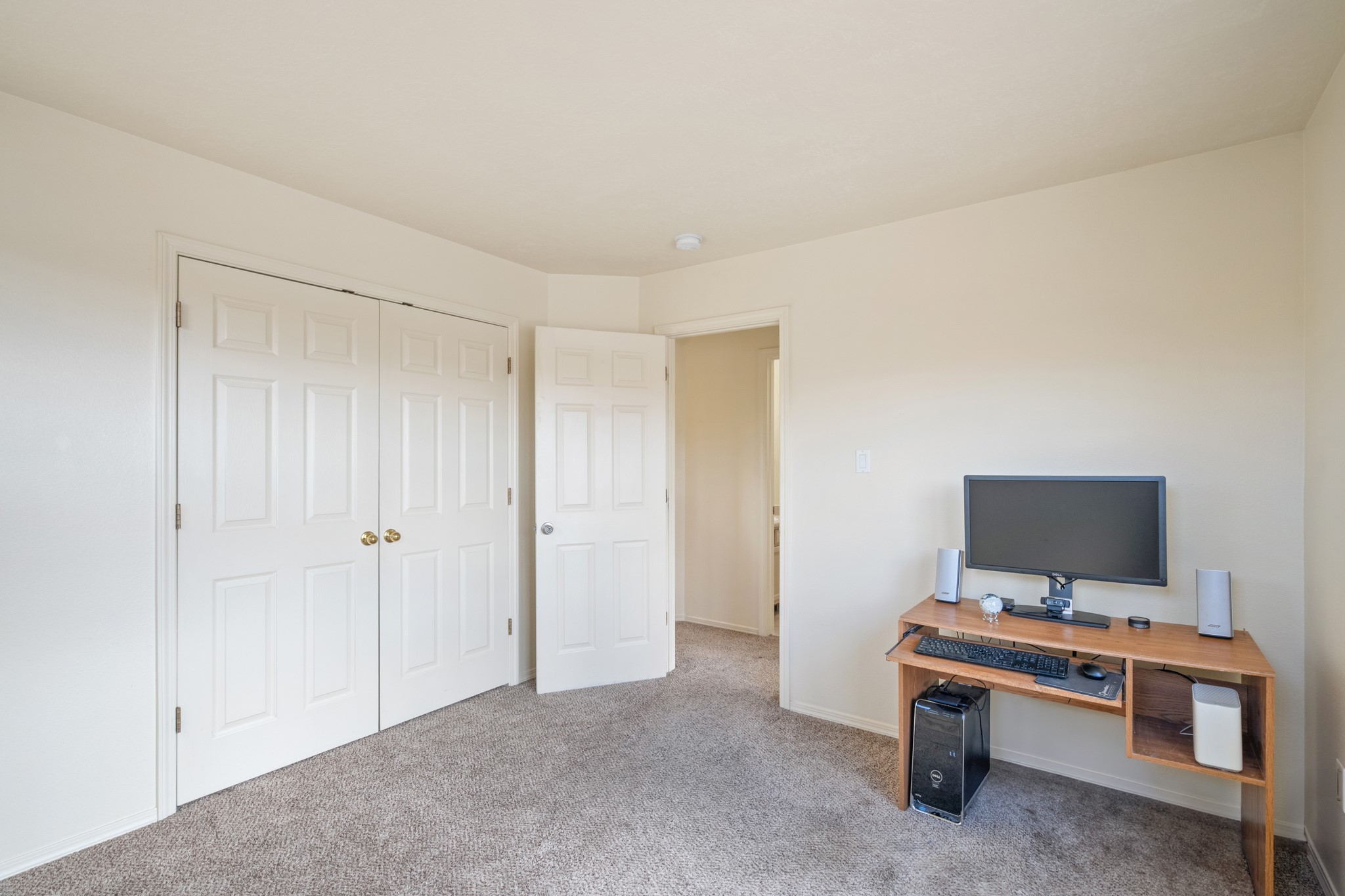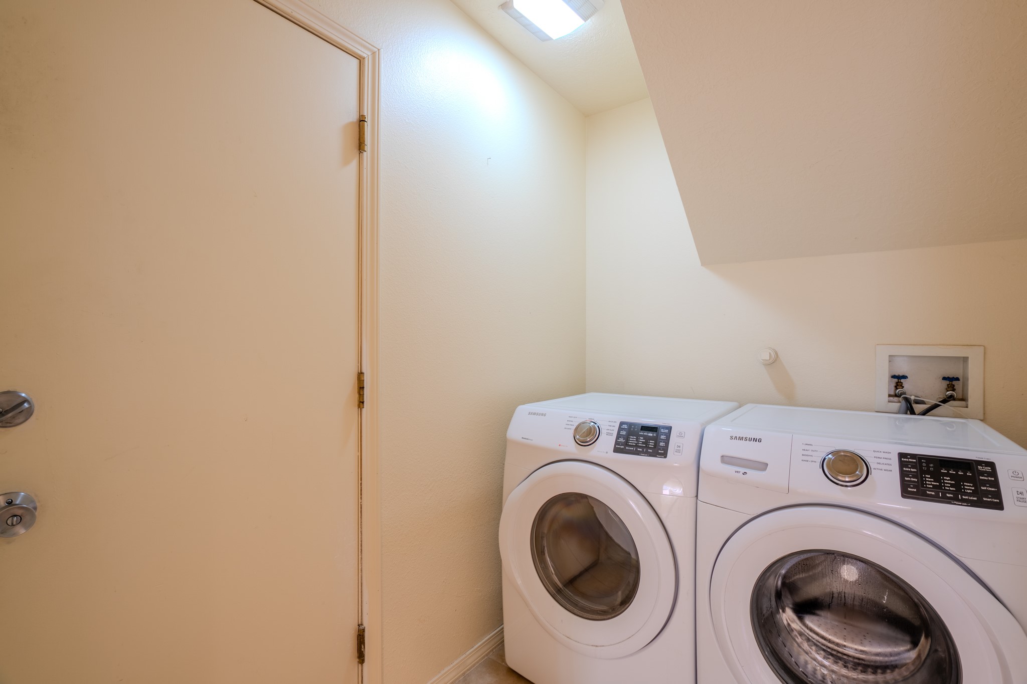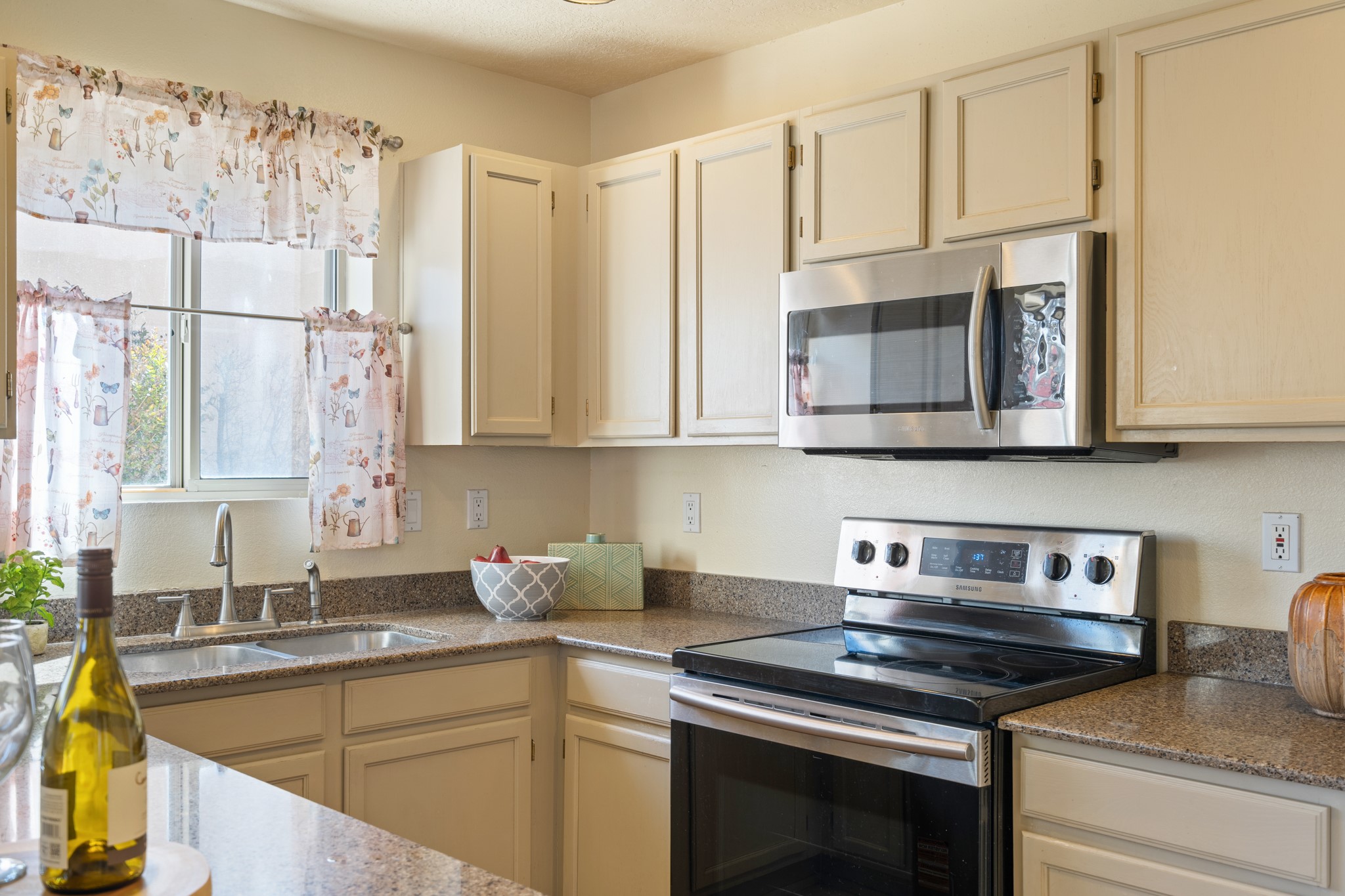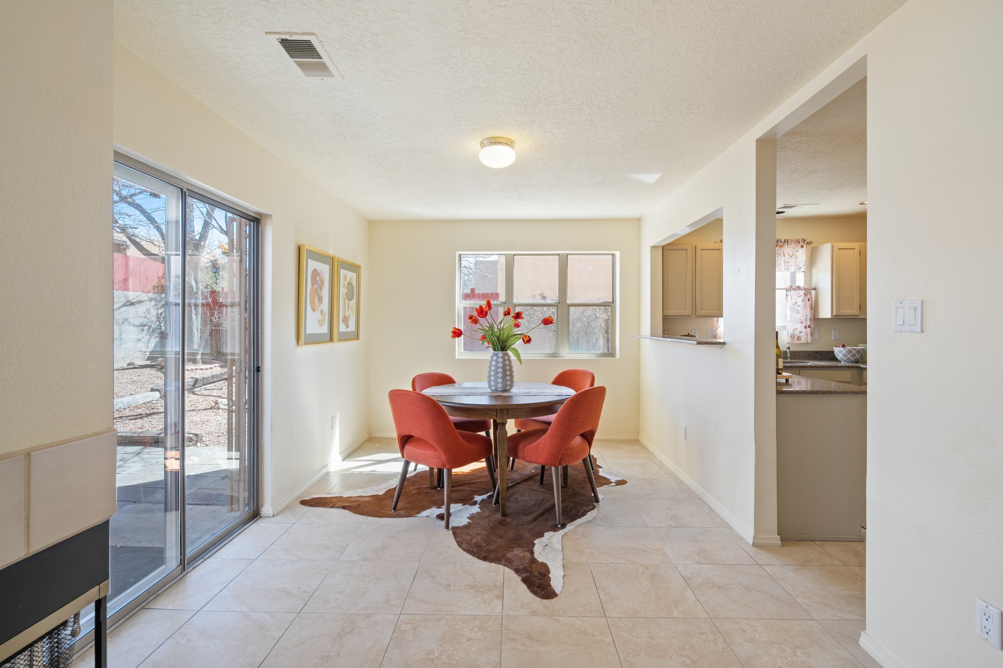 Priced $41,000 below appraisal and pre-inspected, this beautifully updated, light, and bright 3-bedroom, 2.5-bathroom home is situated on a quiet cul-de-sac providing a peaceful and very private ambiance in the heart of central Santa Fe. The two-story design boasts an open and airy layout, accentuated by soaring ceilings in the living room, clearstory picture windows that flood the space with natural light, and a charming wood-burning fireplace. Central refrigerated air conditioning and skylights throughout ensure year-round comfort and a welcoming atmosphere.The modernized kitchen shines with elegant granite countertops and stainless steel appliances complementing the home's contemporary feel. The updated bathrooms feature tasteful finishes that add a touch of luxury. The master suite is a serene retreat, complete with an ensuite bathroom and a generously sized walk-in closet, providing ample storage and privacy.Outdoor living is a delight with a fully enclosed, gated courtyard and an expansive yard shaded by lovely mature trees, offering both privacy and beautiful green screening during the warmer months. The patio area is ideal for outdoor entertaining or simply relaxing in the tranquil surroundings. Adding to the sense of seclusion, an unbuildable lot next door enhances the privacy and provides additional space.Practicality meets convenience with an attached 2-car garage and no HOA fees. Centrally located, this home is just minutes from shopping, parks, restaurants, fitness centers, and schools, making it an ideal spot for easy, everyday living. This stunning Santa Fe home offers a rare combination of modern updates, spacious design, and an unbeatable location.