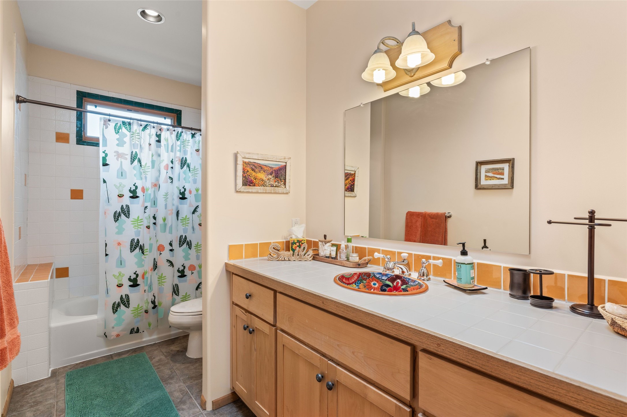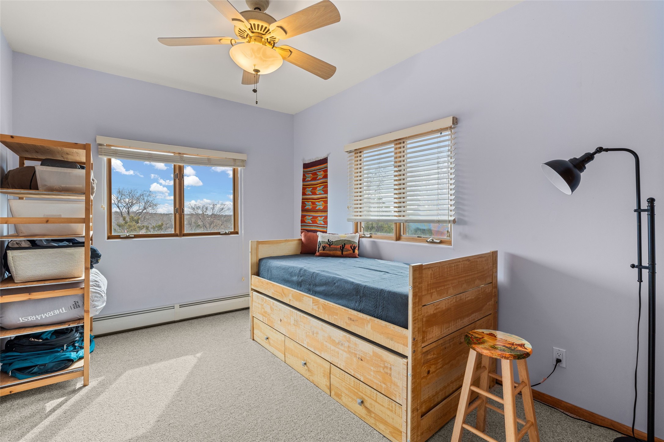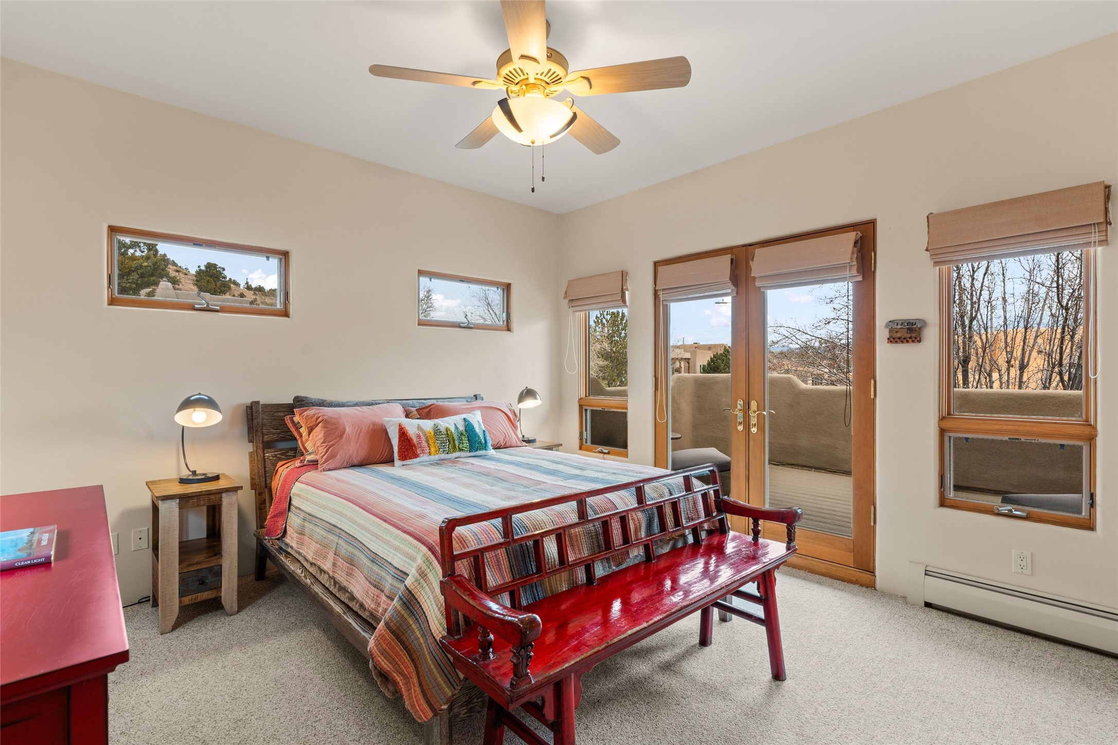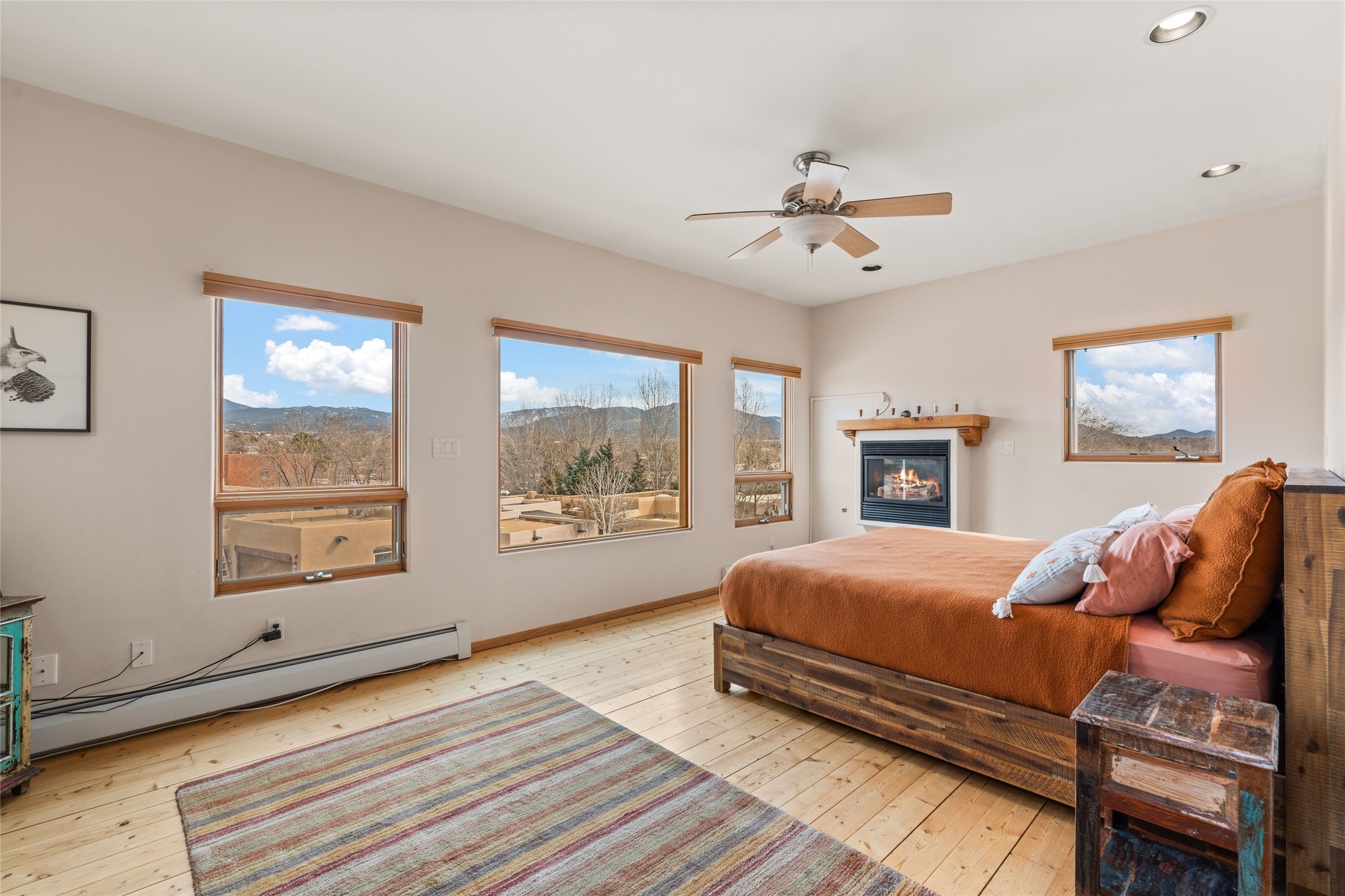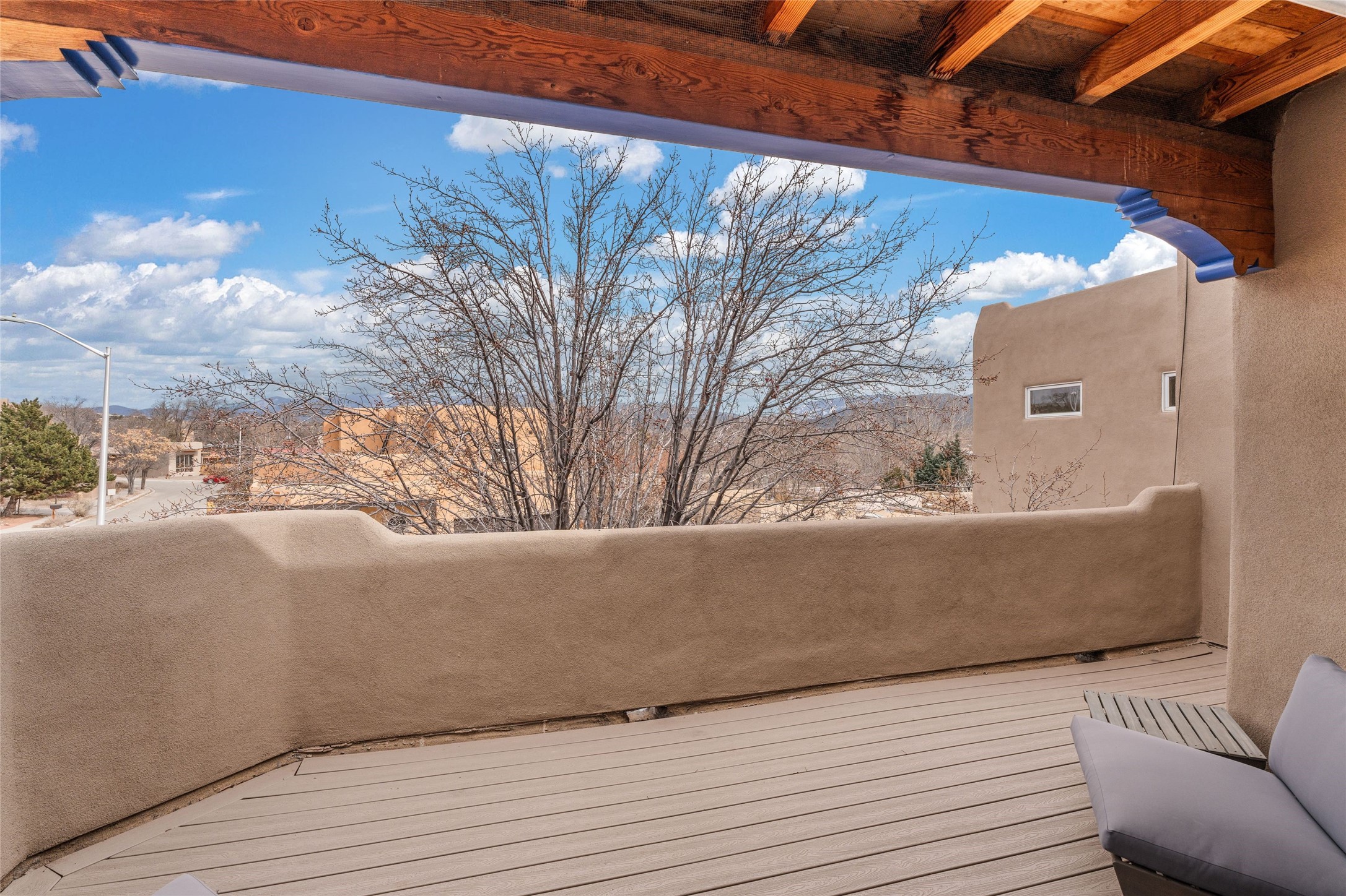 Move-in ready, located in a prime in-town neighborhood, as sited with mountain views: 218 Calle Roble is a gem and an incredible value. This 2,423 square foot, 4-bedroom, 3-bathroom home in the Casa Solana neighborhood is warm, inviting, and in excellent condition. With two levels, the first floor welcomes one into an open-concept kitchen and living area with high-beamed ceilings, wood floors, and a cozy gas fireplace. Off the open entertaining space is a flexible bedroom or office space and a three-quarter bath. Upstairs, hosts a generous primary bedroom with large windows framing the Sangre de Cristo Mountains. One can see the lights of the snow groomers at Ski Santa Fe as they settle down for the night. Two additional guest bedrooms and a shared bath complete the upper level. The outdoor spaces are low maintenance and incredibly functional comprising an elevated balcony, a cozy dining courtyard off the living room, and a fenced in dog run or garden area in the back. The location is unbeatable: just minutes from Santa Fe Plaza; walking distance to the restaurants, cafe, grocery store, yoga center, and brewery at the Solana Center; nearby to the Frank Ortiz dog park and the La Tierra trail system; not to mention access to the Casa Solana community pool. This is true urban living with a Santa Fe flair. With a six year old roof still under warranty (with Santa Fe Stucco and Roofing) and a combi-boiler and stucco that are only three years old, this home asks nothing of the new owner except to move in and enjoy.