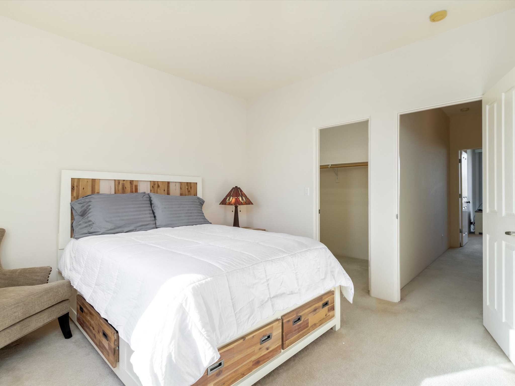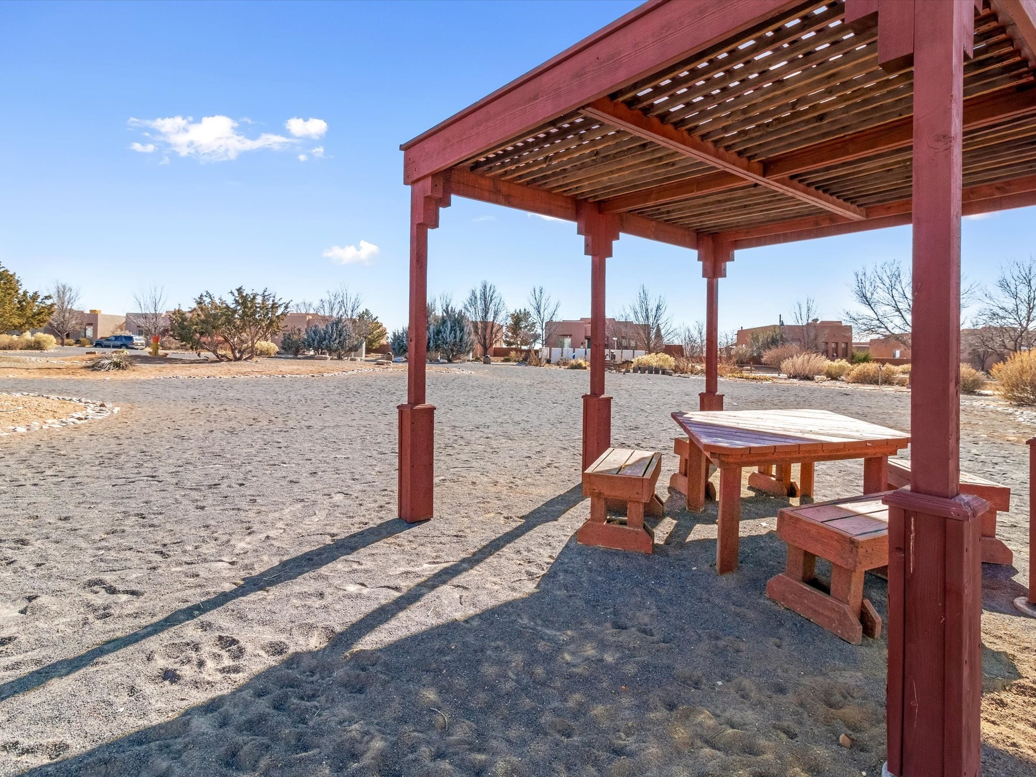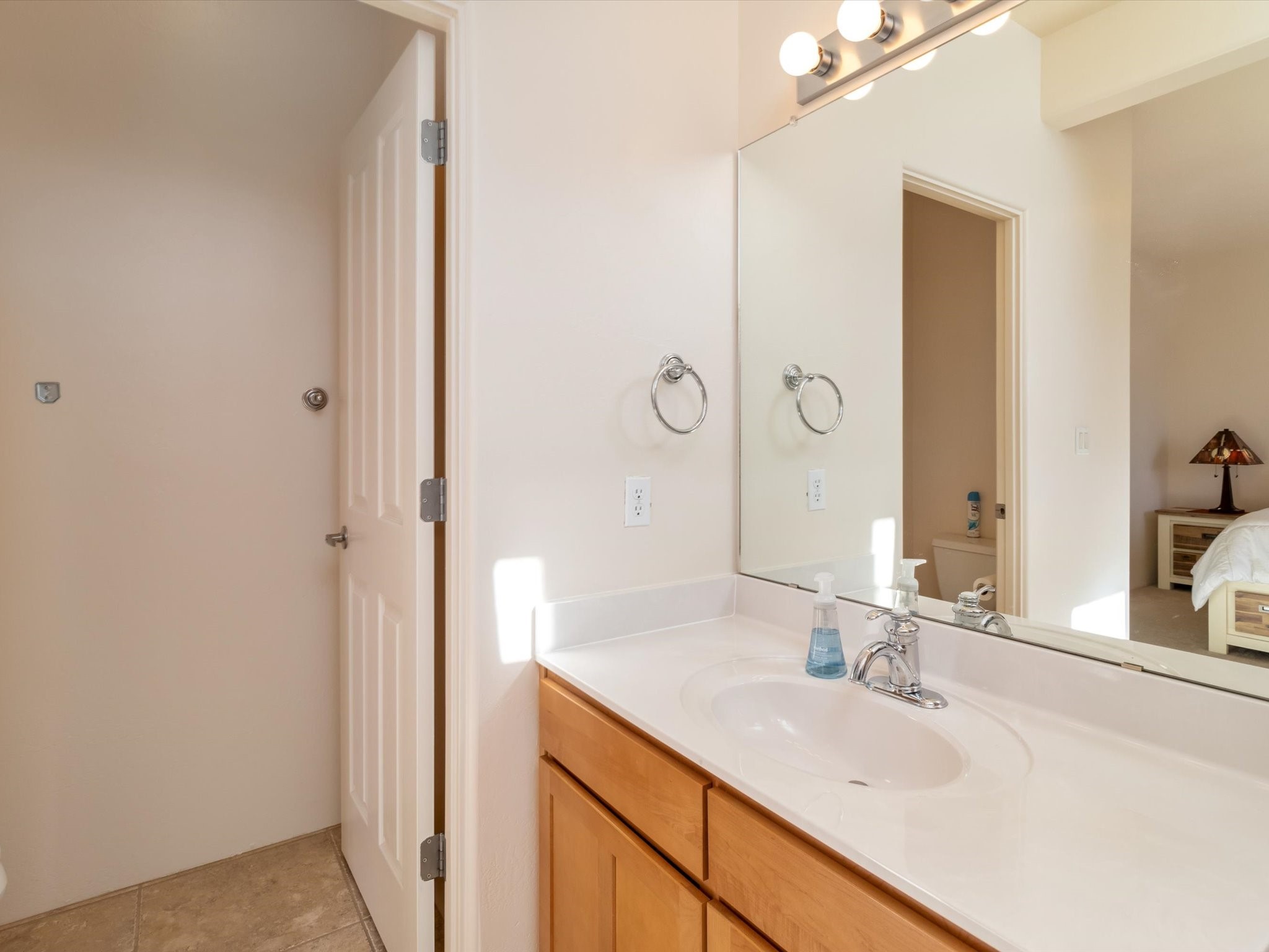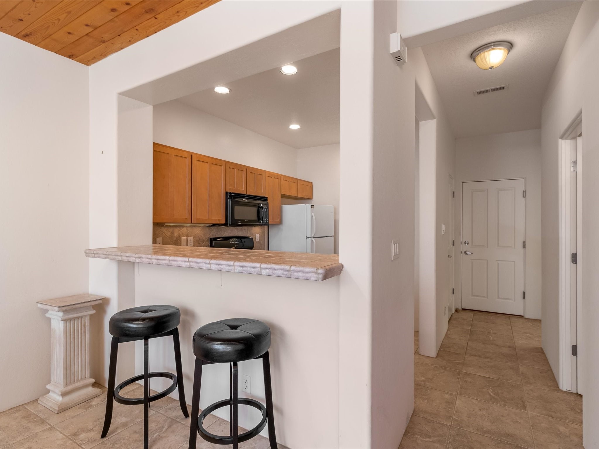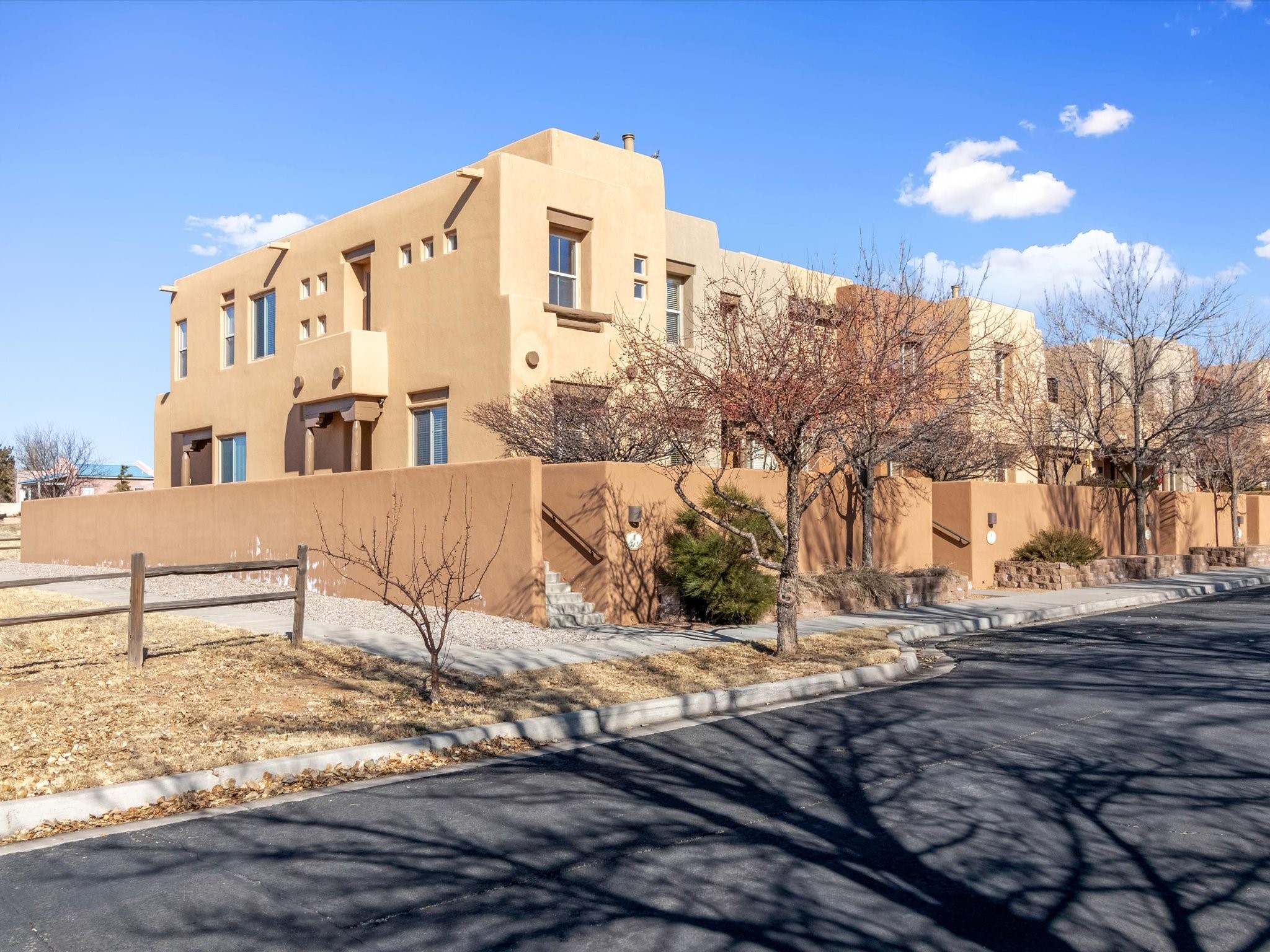 Welcome to this comfortable and warm townhome, gently lived in and located directly across from Rancho Viejo Village Park Plaza. As you step inside, you're greeted by charming tongue and groove ceilings that open up to a spacious living area--ideal for easy entertaining and everyday living. This home features 2 bedrooms, each with their own en-suite bathrooms, offering privacy and convenience. The primary bedroom opens to a large deck with stunning views, perfect for relaxing outdoors. Enjoy the natural light that floods each room, creating a bright and welcoming atmosphere. The thoughtful floor plan provides excellent separation between the bedrooms, ensuring peace and privacy. A generous front courtyard adds to the charm, offering an inviting space for outdoor gatherings or quiet moments in the fresh air. The home is surrounded by beautiful trails and ample open space for outdoor activities, and is conveniently located near Santa Fe Community College with easy access to I-25 for quick commutes. This townhome is a perfect blend of comfort, convenience, and scenic beauty. Don't wait to schedule a private showing today!