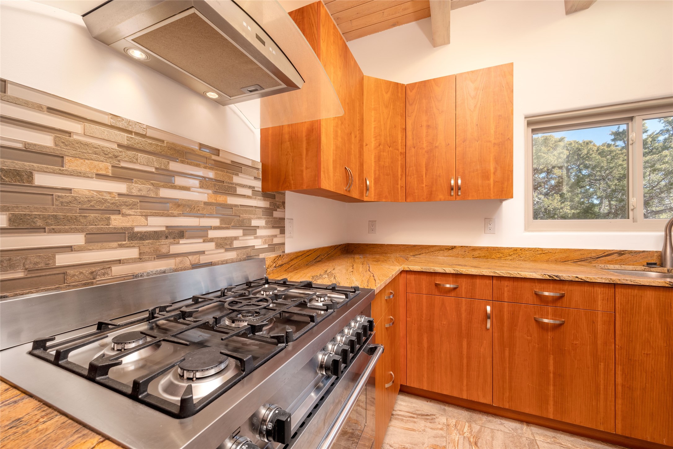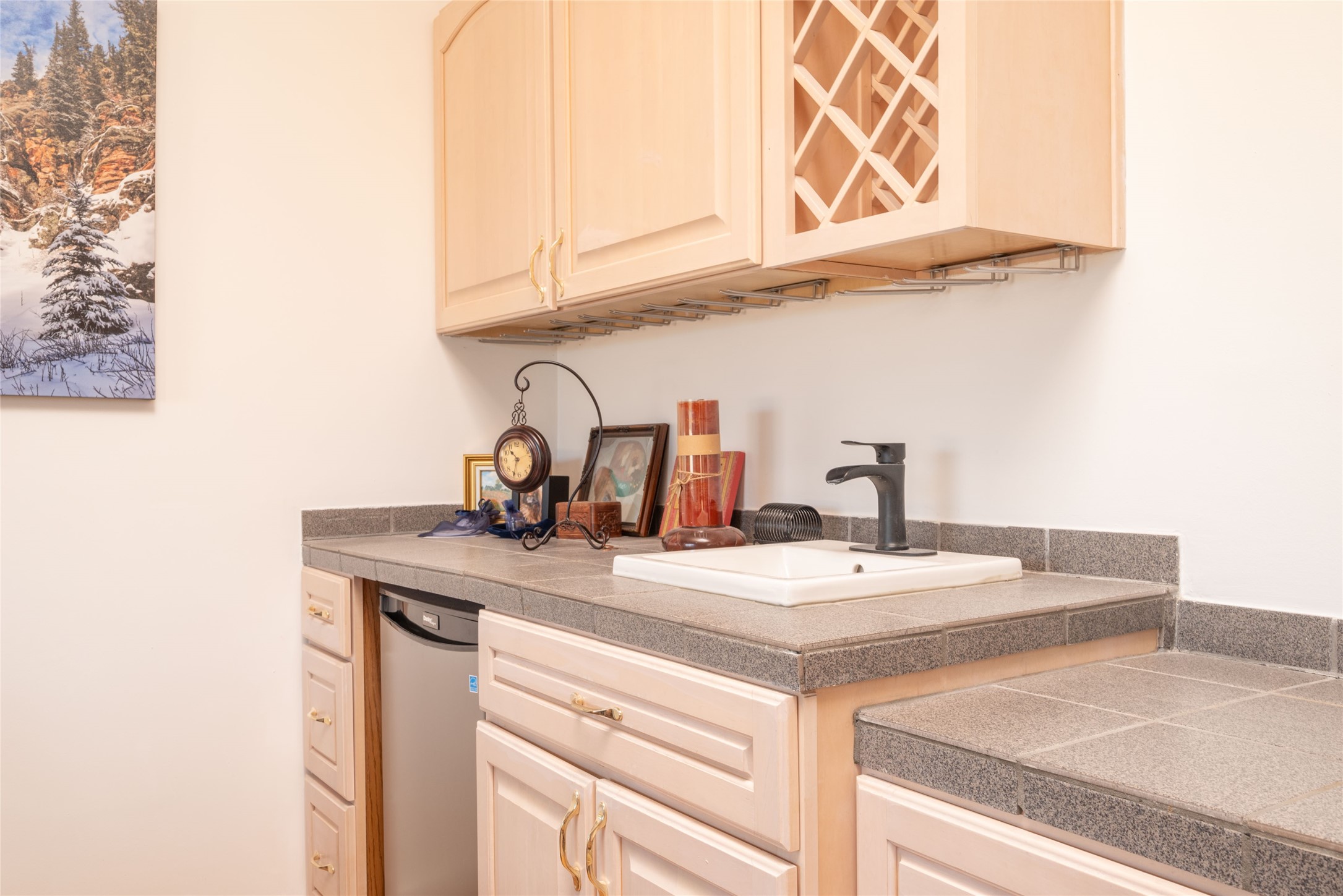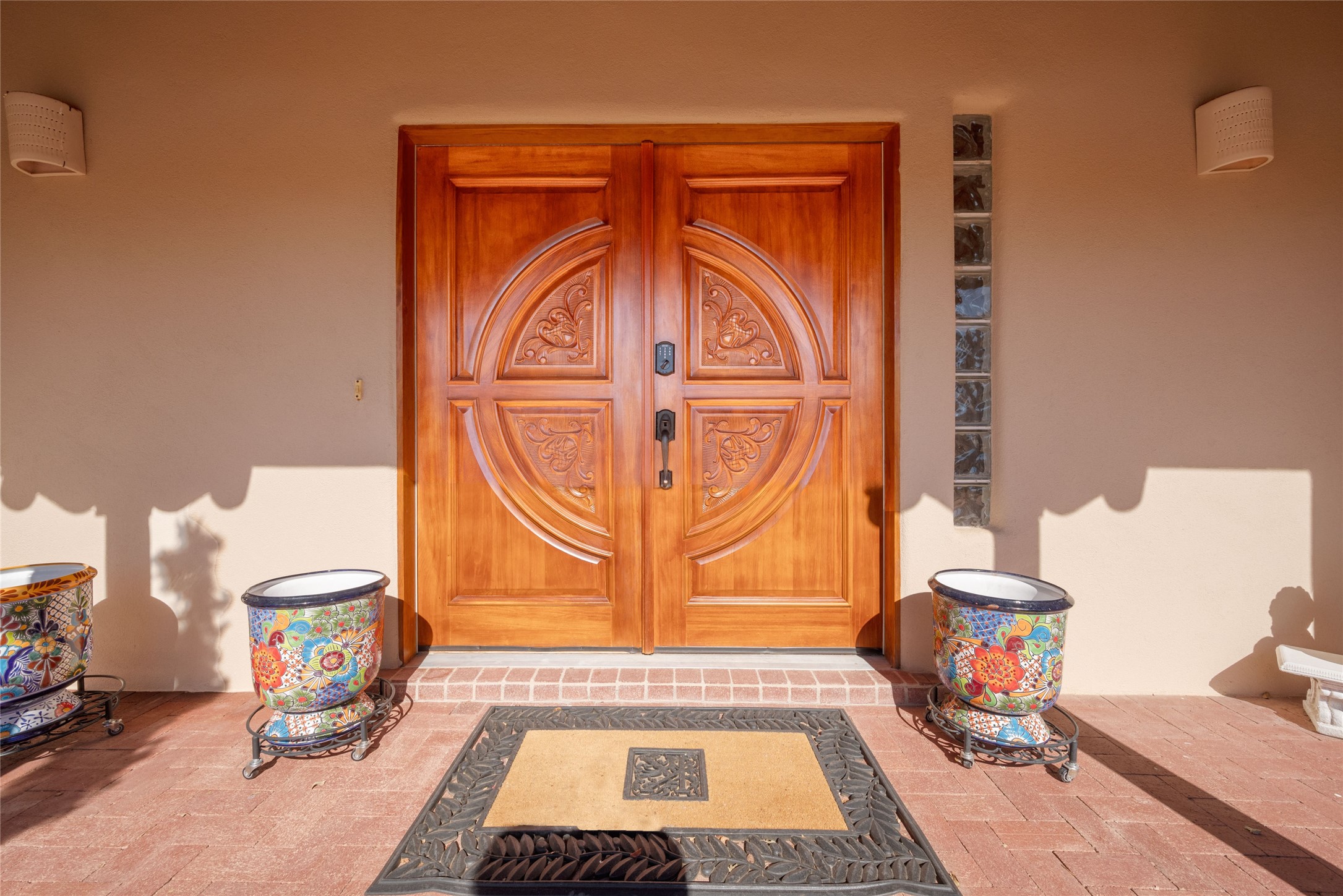 Relaxed southwest elegance in a parklike setting best describes this Dos Griegos home. The hacienda-style floor plan with spacious light-filled living areas is ideal for entertaining or quiet repose. Enclosed courtyards both front and rear offer unrivaled exterior living spaces to enjoy mountain views, starry nights and dramatic New Mexico skies from the private 3+ acre property. Traditional kiva-style fireplaces adorn the living room and primary suite. A spacious and light-filled bonus room with wet-bar and min-frig is ideal for a den, office, studio or media room. The kitchen is a dream featuring expansive granite counters, abundant solid wood cabinetry and top-quality appliances including a Bertazzoni gas range from Italia. The home has been extensively updated both inside and out, from new stucco, windows, landscaping, entry and patio doors to gorgeous bathroom restyling, hardware and fixture upgrades, appliances, and on and on. A complete summary of improvements is available. The home also includes a photovoltaic solar power system providing most if not all of the home's electrical needs. Dos Griegos is located only about 15 minutes from the vibrant and historic City of Santa Fe. Nearby shopping, dining and recreation options are within minutes of the property. This is a special home on a wonderful parcel in a coveted location, the triple crown!