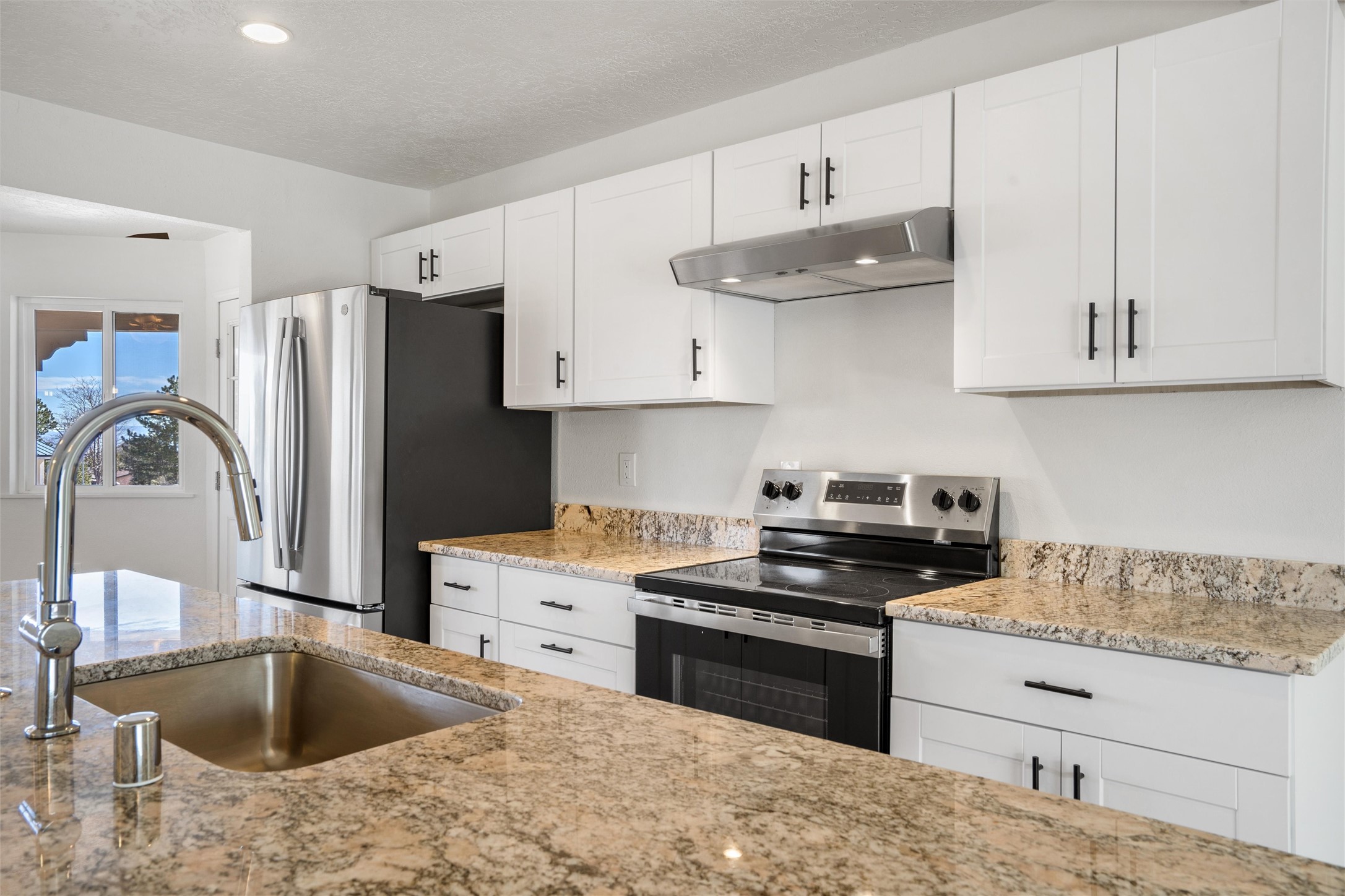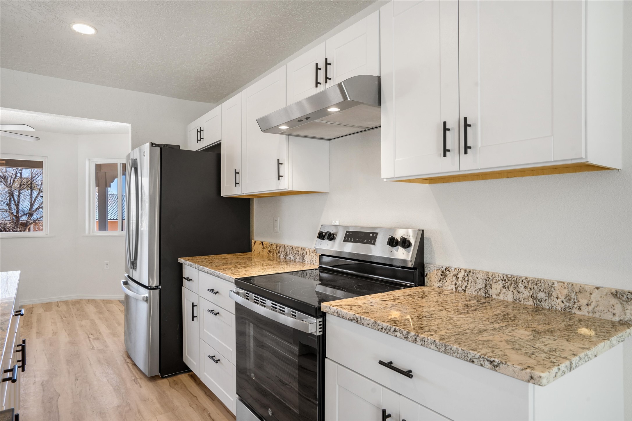 Welcome to this beautifully remodeled home that combines modern luxury with timeless charm. Set on an elevated corner lot, this property has been thoughtfully remodeled with high-end finishes throughout, offering an unparalleled living experience. The new stucco exterior sets the tone for the rest of the home. Inside, you'll find an open-concept living space highlighted by brand-new flooring that flows seamlessly throughout the entire home. The spacious living room is perfect for relaxing or entertaining, with a beautiful wood burning fireplace and plenty of natural light that fills the space. The kitchen is a true showstopper, featuring all-new cabinetry, countertops, and top-of-the-line appliances, perfect for the home chef. Both bathrooms have been fully upgraded with modern fixtures and finishes. No detail has been overlooked in this home, including the newly installed HVAC system with refrigerated air to keep you comfortable year-round. Enjoy the local wild life from the expansive front porch or the private fenced back yard perfect for pets, kids or gardening. With a freshly remodeled interior and exterior, this home is ready to offer its next owners comfort, convenience, and style. Situated in the tranquil, sought-after North Mesa neighborhood, it is truly a one-of-a-kind property. Don't miss your opportunity to make this dream home your reality--schedule a showing today! Very motivated seller, please call or message with any questions.