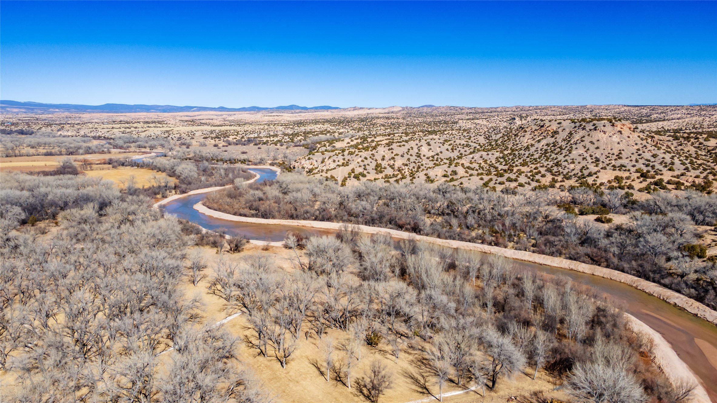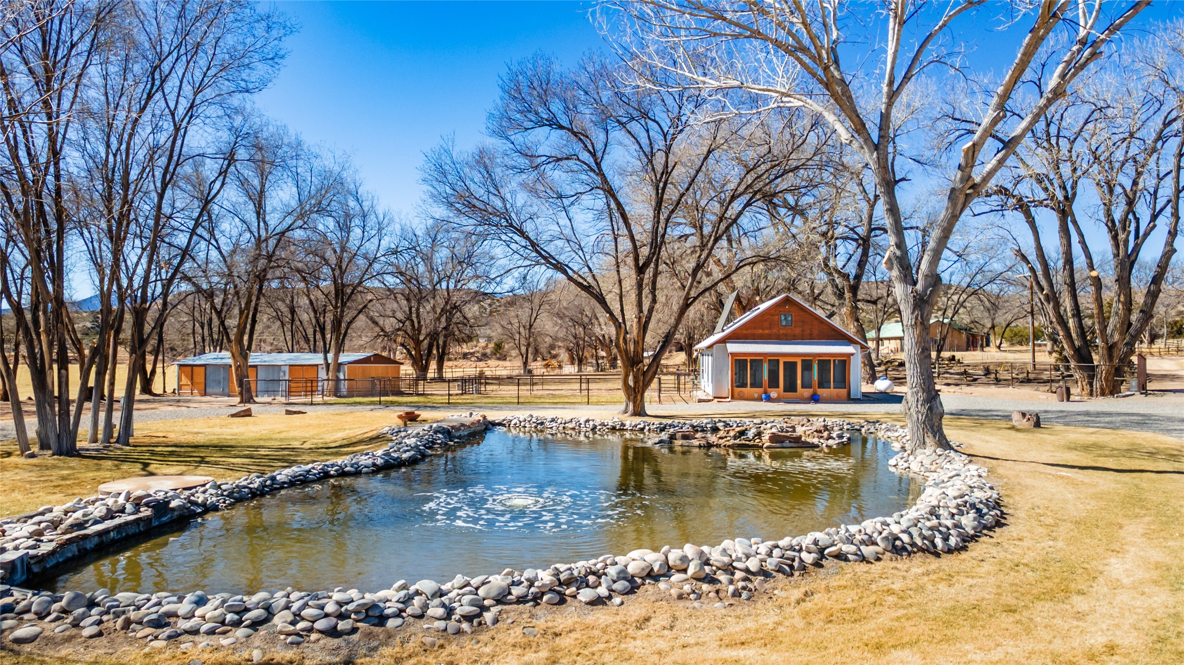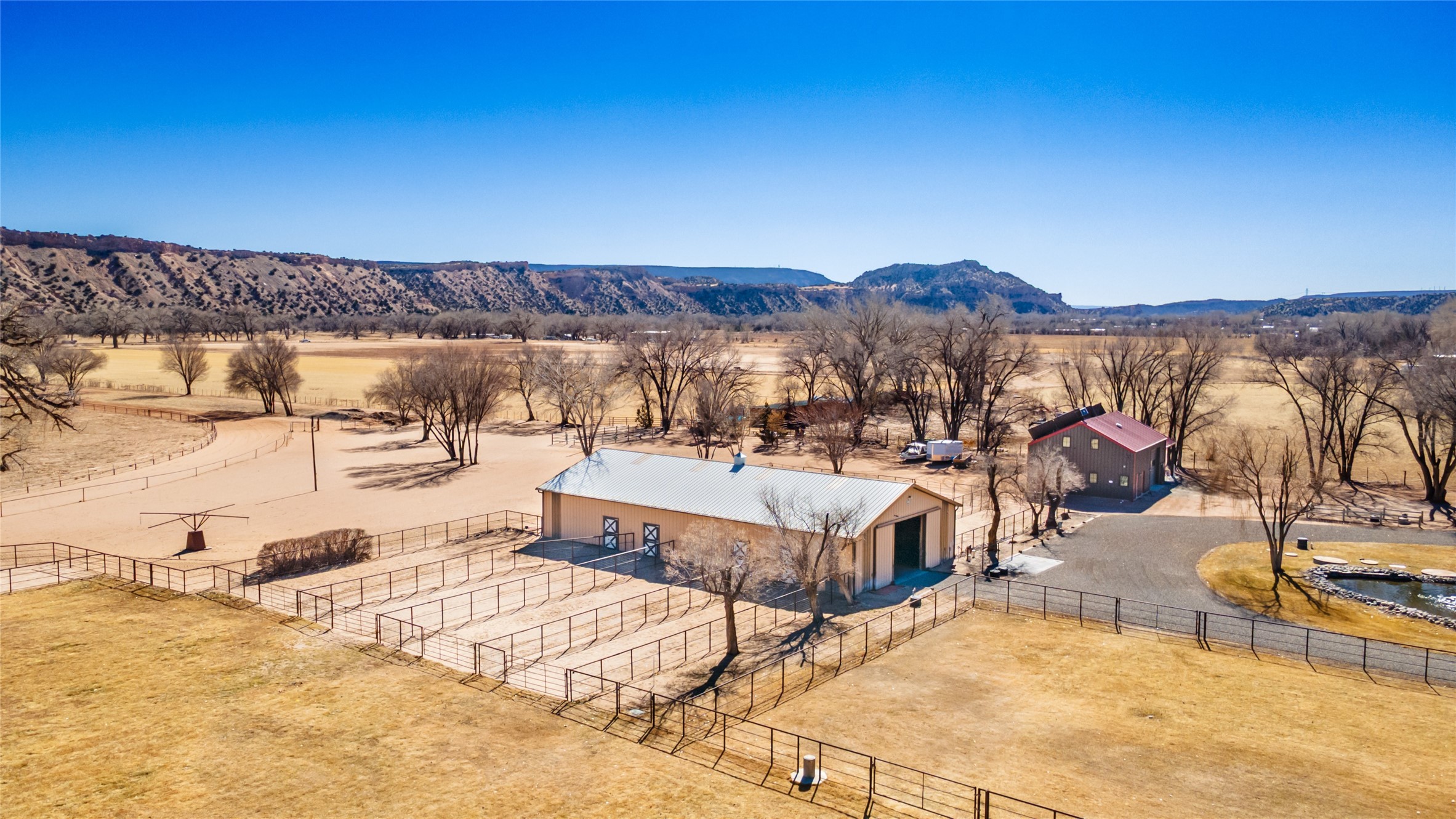 A Northern New Mexico RetreatNestled between Espaola and Abiqui, just 50 minutes from the Santa Fe Plaza and 10 miles from Abiqui, this extraordinary 55-acre estate along the Rio Chama offers a rare blend of privacy, natural beauty, and refined living. With valuable water and irrigation rights, lush pastures, and exclusive private fishing, this retreat is ideal for those seeking both tranquility and adventure.The 3,600 sq. ft. main residence is a sanctuary of comfort and sophistication, featuring two bedrooms, two full baths, and two half baths. Designed for elevated entertaining, the home boasts two full kitchens, a butler's kitchen, large pantry, and expansive living spaces that seamlessly connect to the breathtaking landscape. High ceilings, large windows, and an abundance of natural light enhance the home's airy elegance, while custom finishes reflect the charm of the Southwest. A separate 1,080 sq. ft. 1 bed, 1 bath caretaker's home provides private accommodations for staff or guests.Perfect for equestrian and ranching pursuits, the estate includes a large barn, 8 horse stall barn with a foaling stall, a horse track, and extensive storage buildings. Scenic trails wind through the property, leading to the serene Rio Chama, where you can enjoy exclusive private fishing along your own stretch of riverfront. A tranquil pond, native cottonwoods, and panoramic views create an atmosphere of pure serenity.Beyond its natural beauty, this estate offers limitless potential--whether as a working ranch, equestrian haven, artist's retreat, or luxurious private getaway. Gated for security and privacy, it provides a peaceful yet accessible escape within reach of Northern New Mexico's cultural and outdoor offerings.Experience the perfect balance of luxury, nature, and adventure--where the Rio Chama's gentle waters call you home. For Drone Video go to https://youtu.be/KvkiFsoOq5w