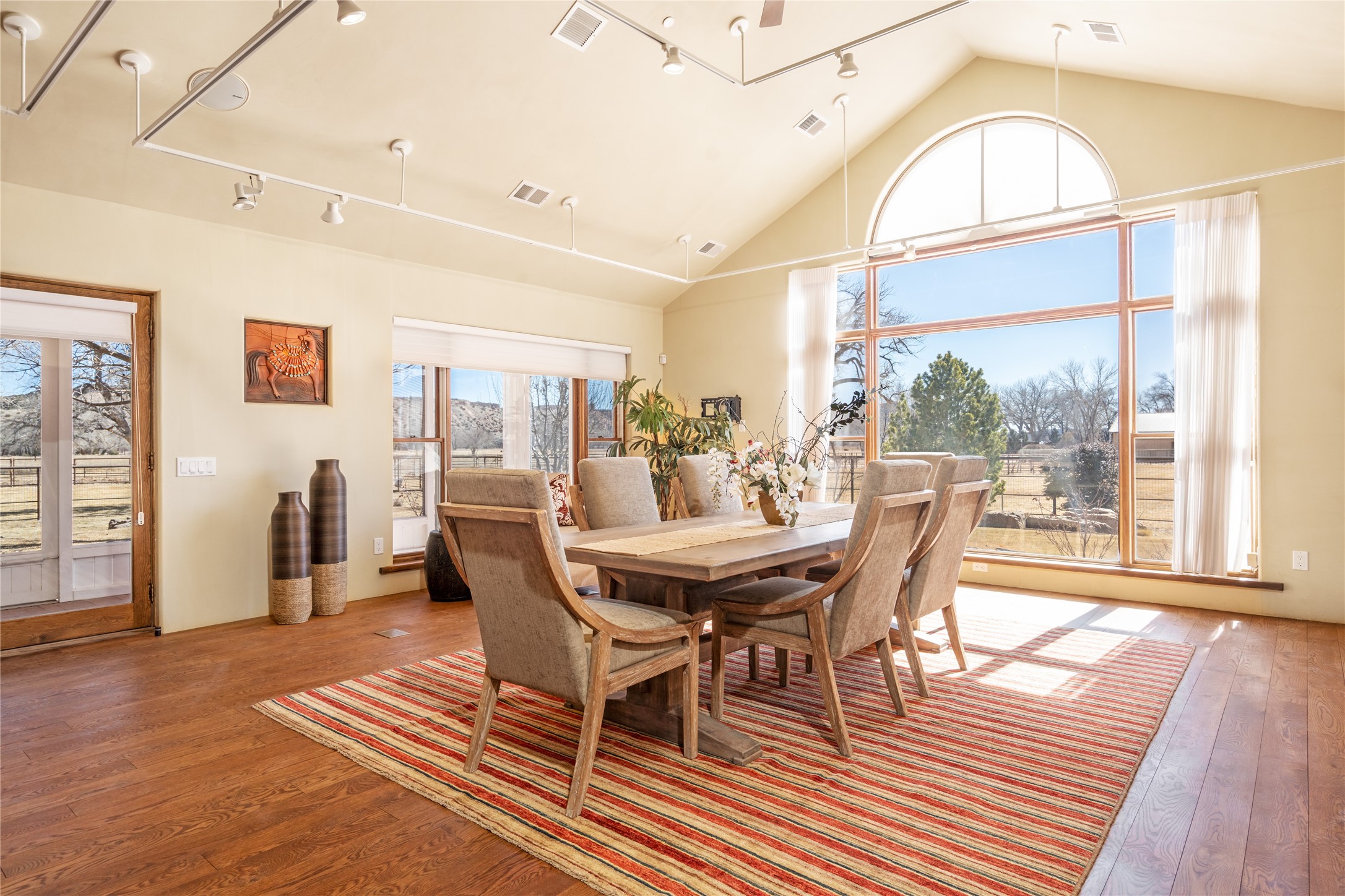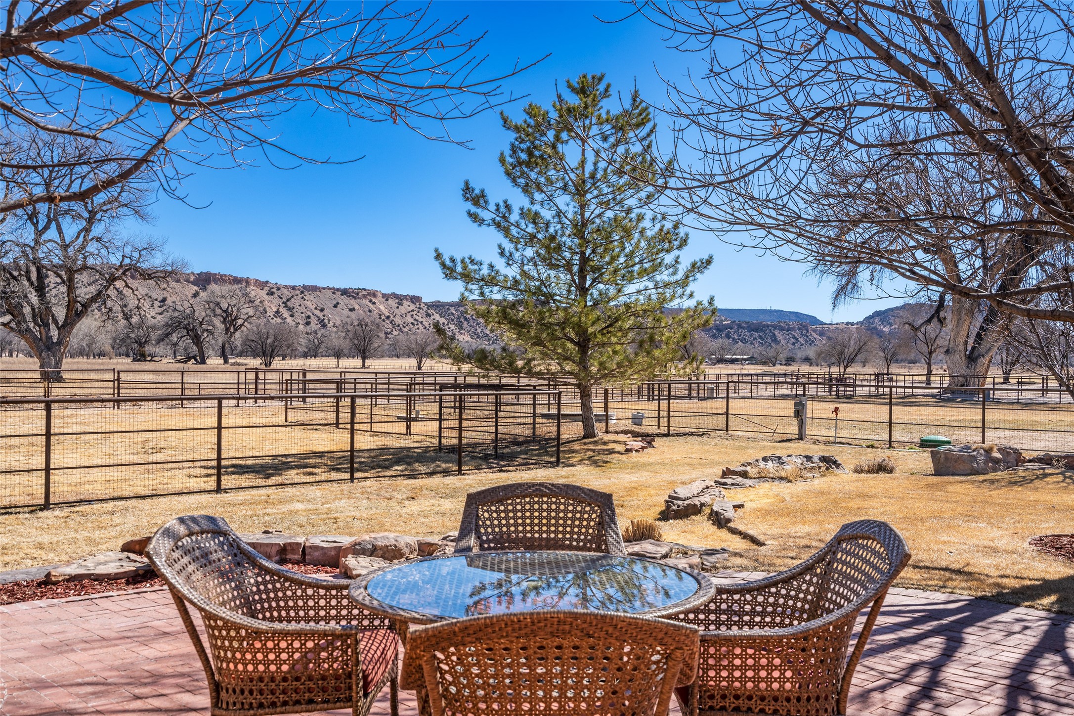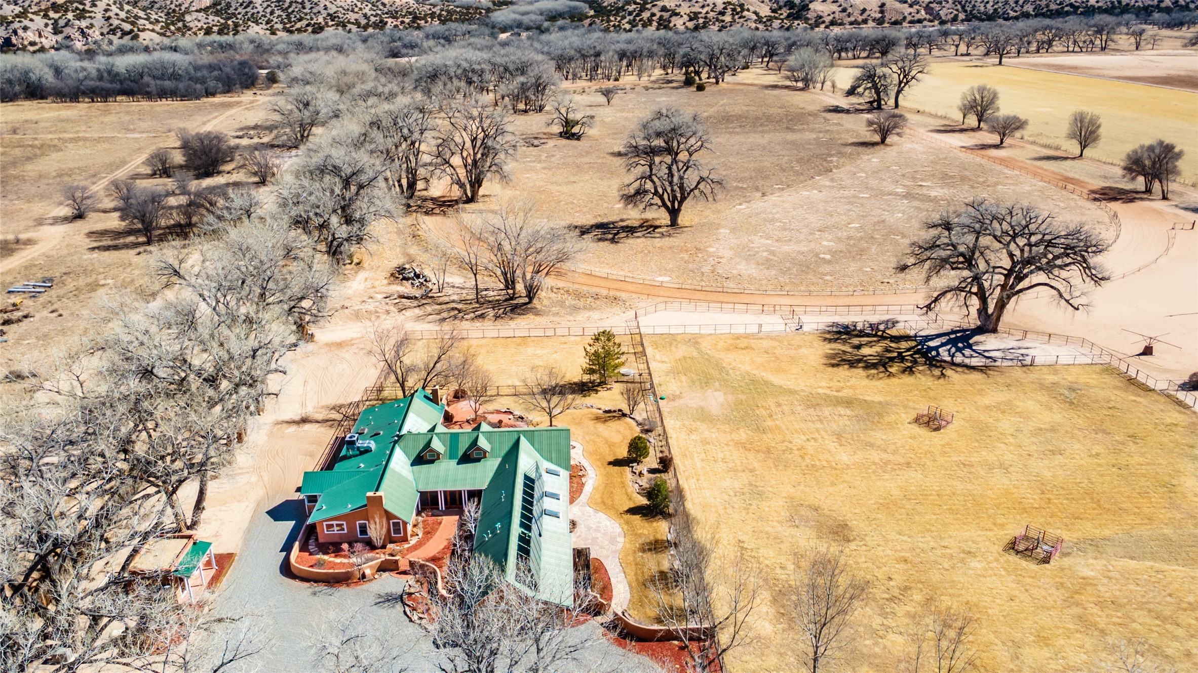 A Northern New Mexico RetreatNestled between Espaola and Abiqui, just 50 minutes from the Santa Fe Plaza and 10 miles from Abiqui, this extraordinary 55-acre estate along the Rio Chama offers a rare blend of privacy, natural beauty, and refined living. With valuable water and irrigation rights, lush pastures, and exclusive private fishing, this retreat is ideal for those seeking both tranquility and adventure.The 3,600 sq. ft. main residence is a sanctuary of comfort and sophistication, featuring two bedrooms, two full baths, and two half baths. Designed for elevated entertaining, the home boasts two full kitchens, a butler's kitchen, large pantry, and expansive living spaces that seamlessly connect to the breathtaking landscape. High ceilings, large windows, and an abundance of natural light enhance the home's airy elegance, while custom finishes reflect the charm of the Southwest. A separate 1,080 sq. ft. 1 bed, 1 bath caretaker's home provides private accommodations for staff or guests.Perfect for equestrian and ranching pursuits, the estate includes a large barn, 8 horse stall barn with a foaling stall, a horse track, and extensive storage buildings. Scenic trails wind through the property, leading to the serene Rio Chama, where you can enjoy exclusive private fishing along your own stretch of riverfront. A tranquil pond, native cottonwoods, and panoramic views create an atmosphere of pure serenity.Beyond its natural beauty, this estate offers limitless potential--whether as a working ranch, equestrian haven, artist's retreat, or luxurious private getaway. Gated for security and privacy, it provides a peaceful yet accessible escape within reach of Northern New Mexico's cultural and outdoor offerings.Experience the perfect balance of luxury, nature, and adventure--where the Rio Chama's gentle waters call you home. For Drone Video go to https://youtu.be/KvkiFsoOq5w