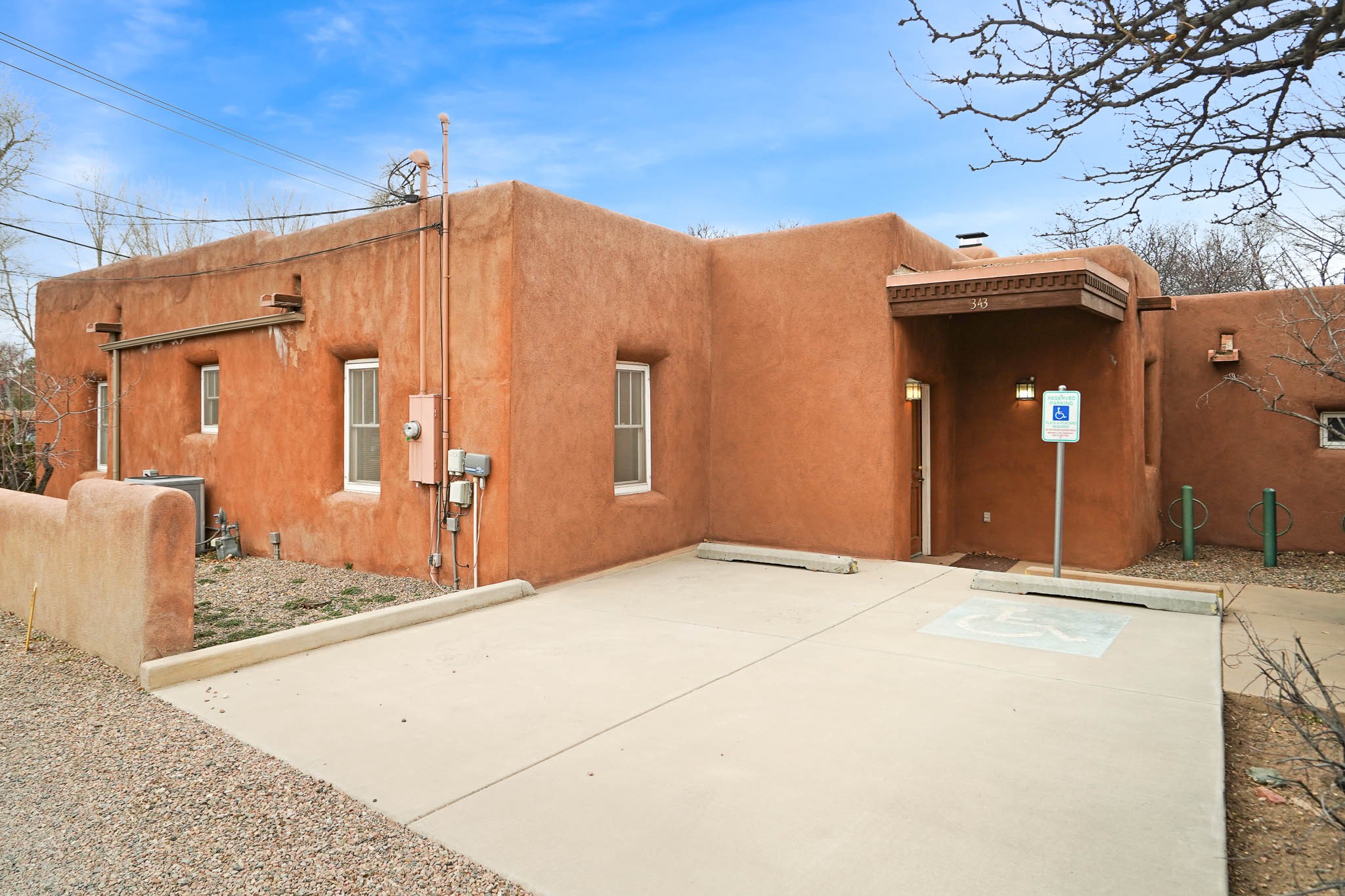 Premier free-standing retail/office building, ideal for an owner-user. Situated near the heart of Downtown Santa Fe along the tranquil Santa Fe River, the property features a charming reception area with a fireplace and viga ceilings, four private offices, and two in-suite restroom, and a large conference area and break room. There are four off-street parking spaces with easy accessibility. Prominent signage and excellent visibility fronting East Alameda. BCD zoning allows for an array of uses--from retail/gallery to general office--or it can be converted into a private residence. Don't miss this rare opportunity to own a versatile property that combines historic charm with modern convenience in the heart of Santa Fe.