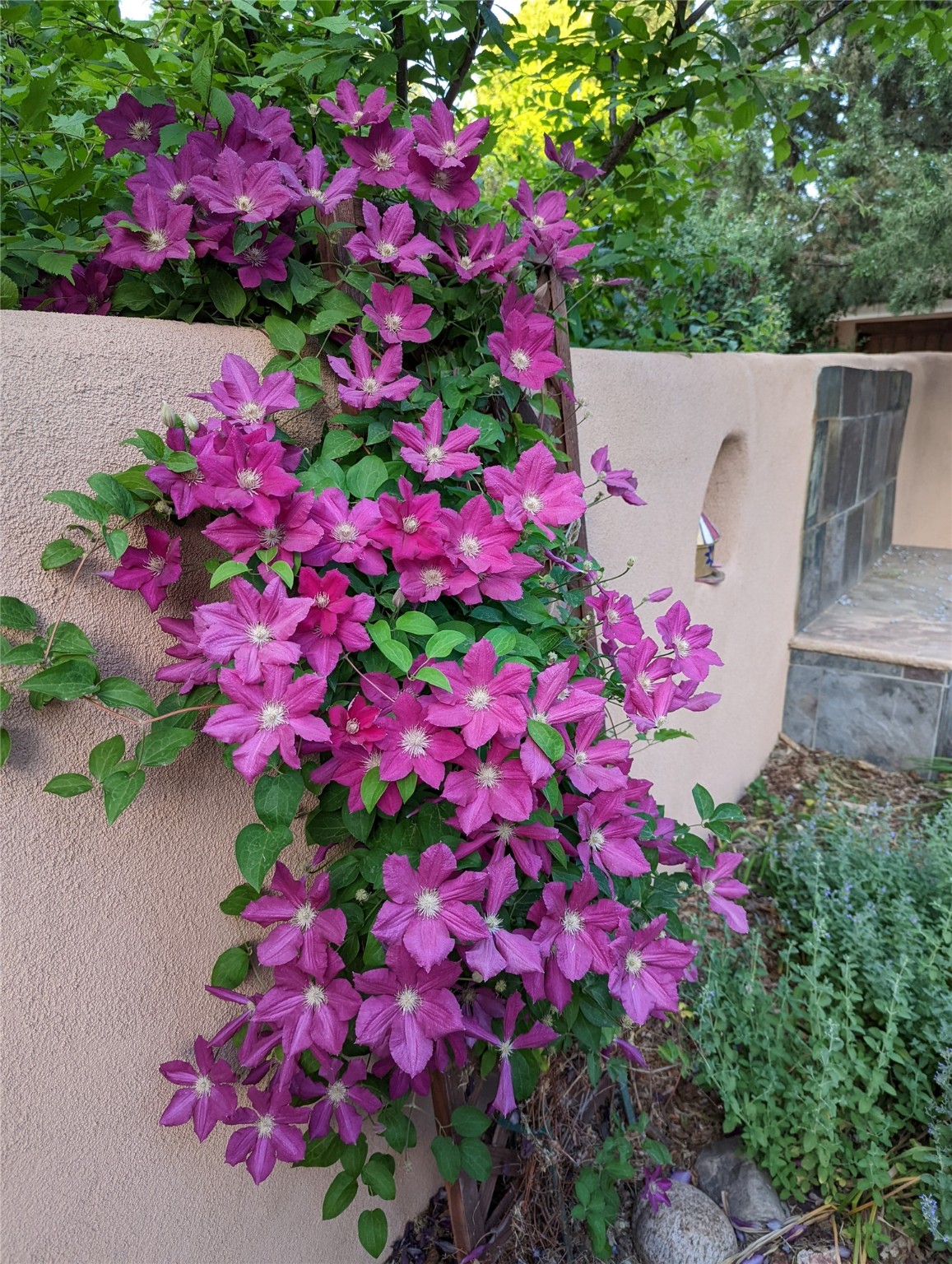 Located at the end of Santa Fe's covetable and quiet Delgado Lane, yet in the "center of it all", lies this incredibly rare find -hitting the market for the first time since its construction in the 1920s. Poised on an expansive .4-acre lot, this opportunity offers the perfect combination of Santa Fe charm and tranquility paired with the best of Santa Fe at your fingertips. The adobe 3BD-2.5BA main house exudes classic pueblo style architecture, viga ceilings, wood floors, and charming wood burning fireplaces. The 1BD-1BA detached guest house, added in the 1990s, offers a well equipped kitchen, its own laundry, and is privately sited offering a comfortable space for visitors and friends, or presents an interesting income generating opportunity. The property's captivating grounds are equally impressive. A true gardener's paradise, the lot is adorned with apple, apricot, pear, nectarine, and cherry trees, as well as mature cottonwood and pine trees. Colorful rose bushes (some of which are circa 80 years old) and peonies also decorate the gardens. The grounds benefit from water drawn from the property's private well (irrigation only), sprinkler system and drip irrigation are already in-place. Located steps away from Acequia Madre and Canyon Road, known for its world-class galleries and dining options, this is an exceptional opportunity to own and reimagine a slice of Santa Fe's rich history. A remarkable melding of privacy, outdoor beauty, space to entertain, and easy access to the heart of the city, this is a canvas that rarely becomes available.