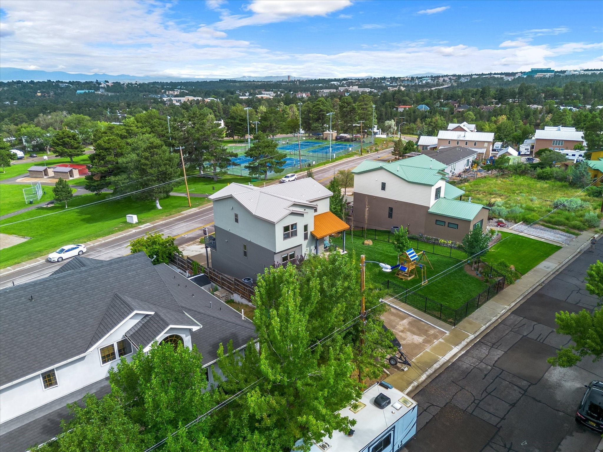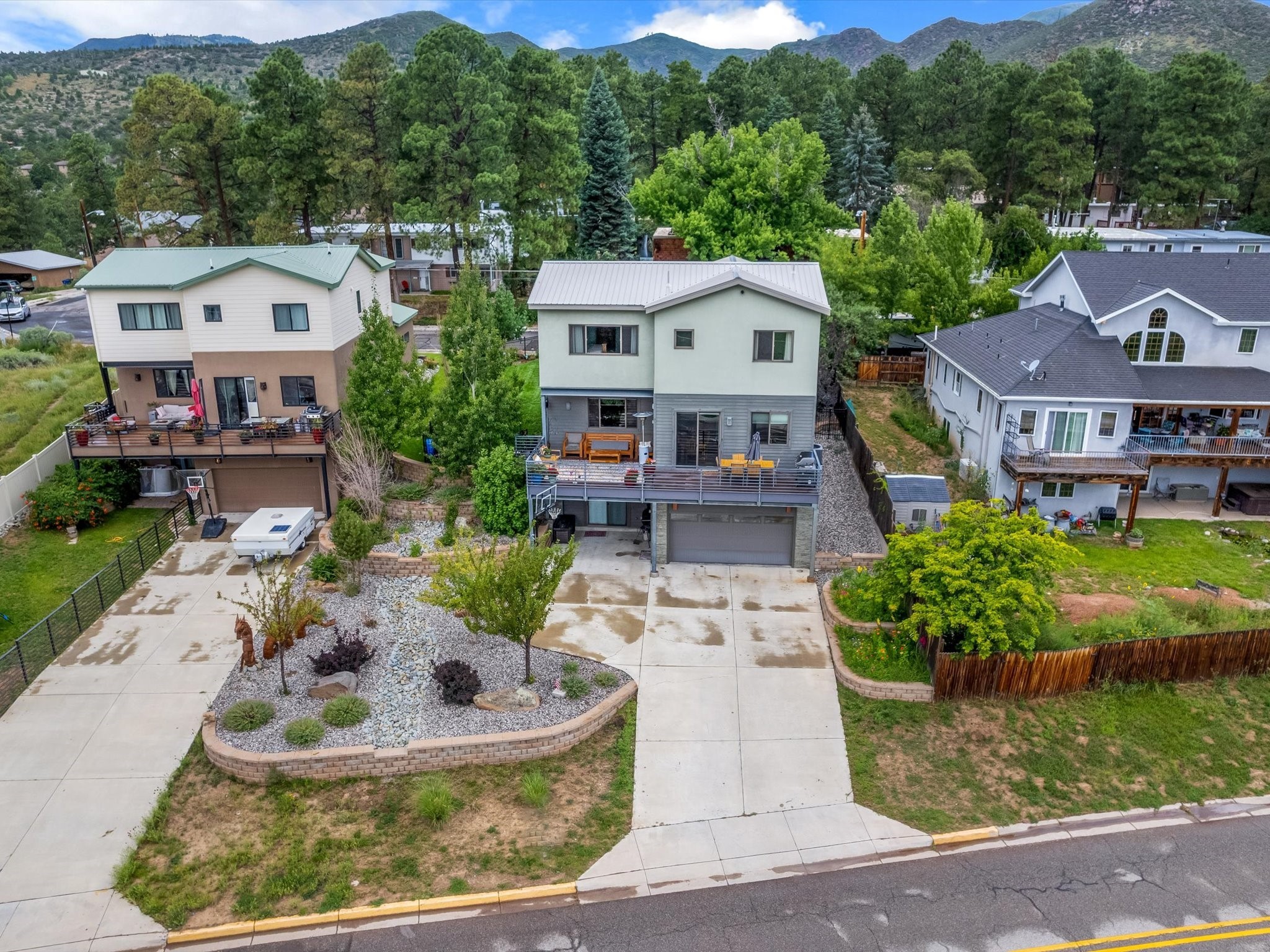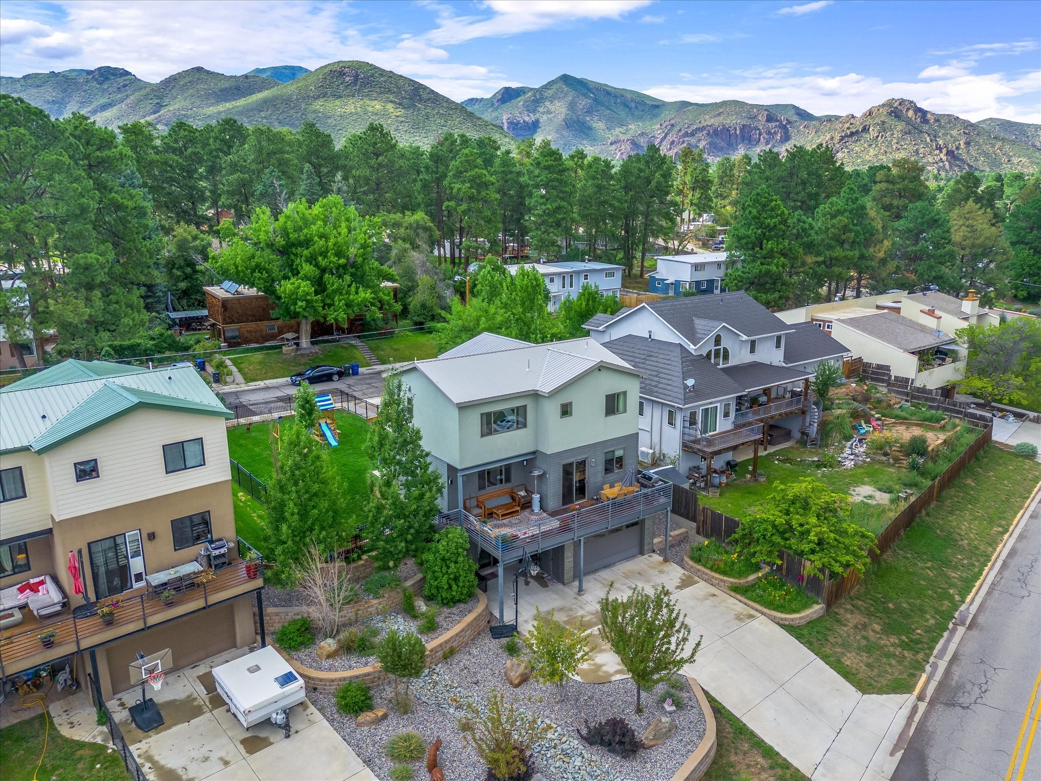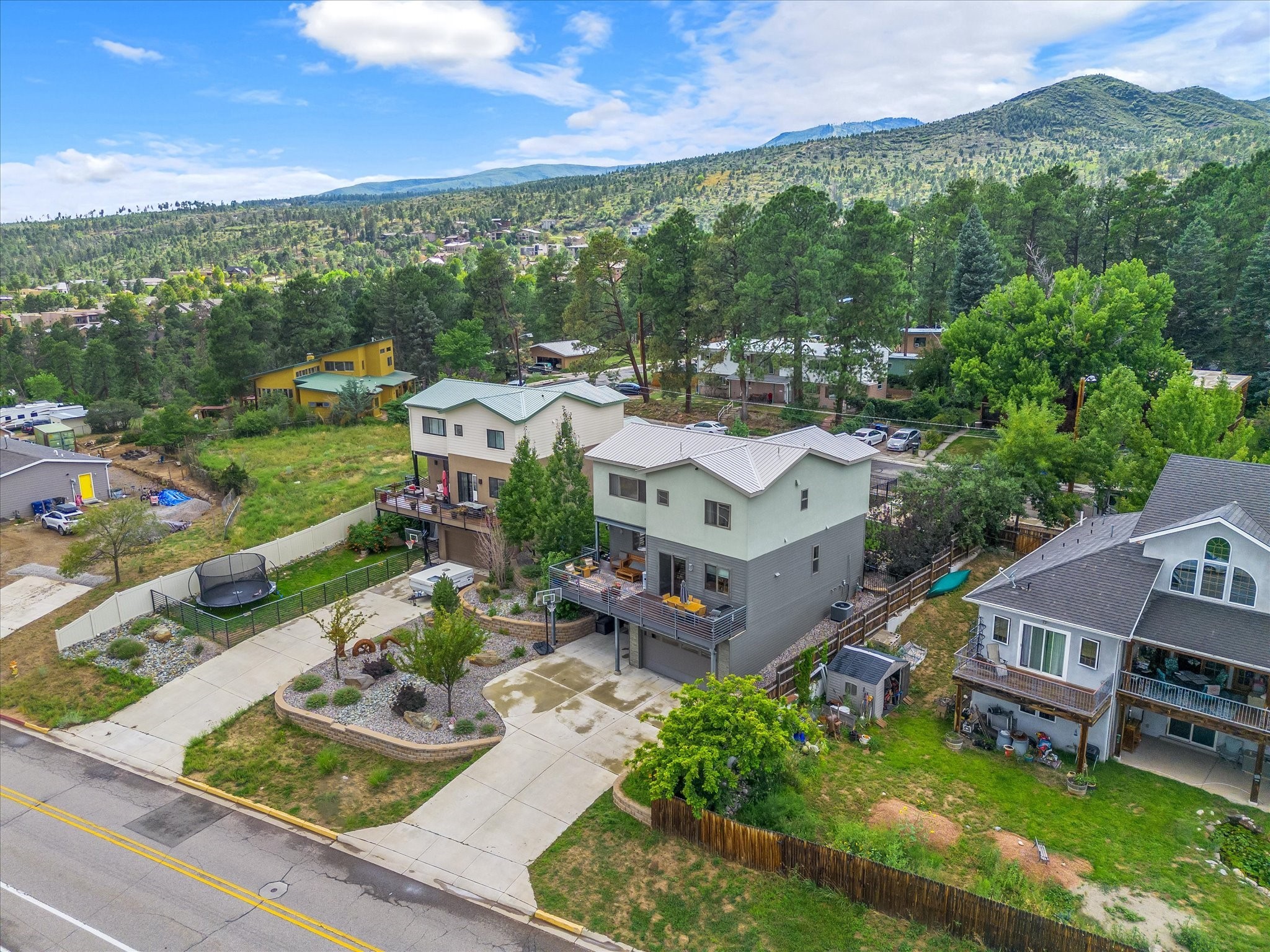 **SELLER OFFERING BONUS 5K CONCESSION (RATE BUY-DOWN) ** with acceptable offer! READY for breathtaking views of the Sangre de Cristo Mountains and Jemez Mountains, this custom 5-bedroom, 4 bath home has it all. Nestled in a family-friendly neighborhood within the highly sought-after Mountain Elementary School District, this modern home built in 2017 by Alan Mascord Design Associates Inc.--offers the perfect blend of contemporary style and functional amenities.The home features a stone veneer exterior and a meticulously kept fenced-in front yard with a drip irrigation system. Inside, cathedral vaulted ceilings with wood beams create a spacious, airy ambiance throughout. The layout includes five bedrooms and 2 full, 1 three quarter and one-half bath, enhanced by a versatile triplex configuration that offers two primary bedrooms or mother-in-law suite--each with its own en-suite bathroom for added luxury and privacy. The living room boasts a striking stacked stone fireplace as its focal point, complemented by large windows that fill the space with natural light and frame the stunning mountain views. A spacious elevated deck extends the living area outdoors, providing an ideal spot for entertaining or simply enjoying the scenery. Luxury wood floors, no carpet other than interior steps! The gourmet kitchen features quartz countertops, upgraded appliances, high-profile cabinets, and a custom architectural pass-through with built-in cabinetry that seamlessly connects to the living space. Elegant quartz accents continue into the bathrooms, and lavish overhead lighting paired with custom copper touches adds warmth and unique character throughout. BEAUTIFULLY SEPARATED ENTRANCE FOR MOTHER IN LAW QUARTERS lower level access!For added convenience, utility sinks are included in both the laundry room and the garage. The 3-car tandem garage provides ample parking and storage, accessible from North Road by Urban Park. Additional features include refrigerated air, a durable metal roof, a tankless water heater, and an electric vehicle charging station. This exceptional custom home offers everything you need--from form to function. Contact us today for your private showing!