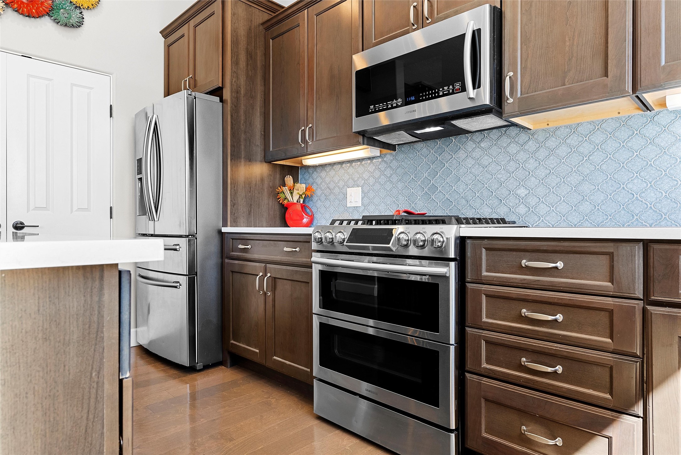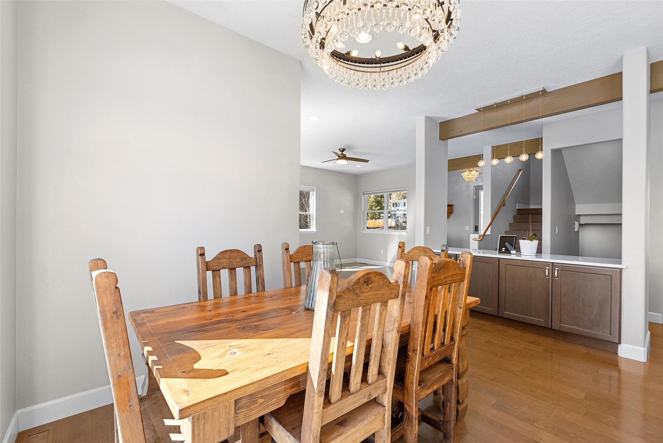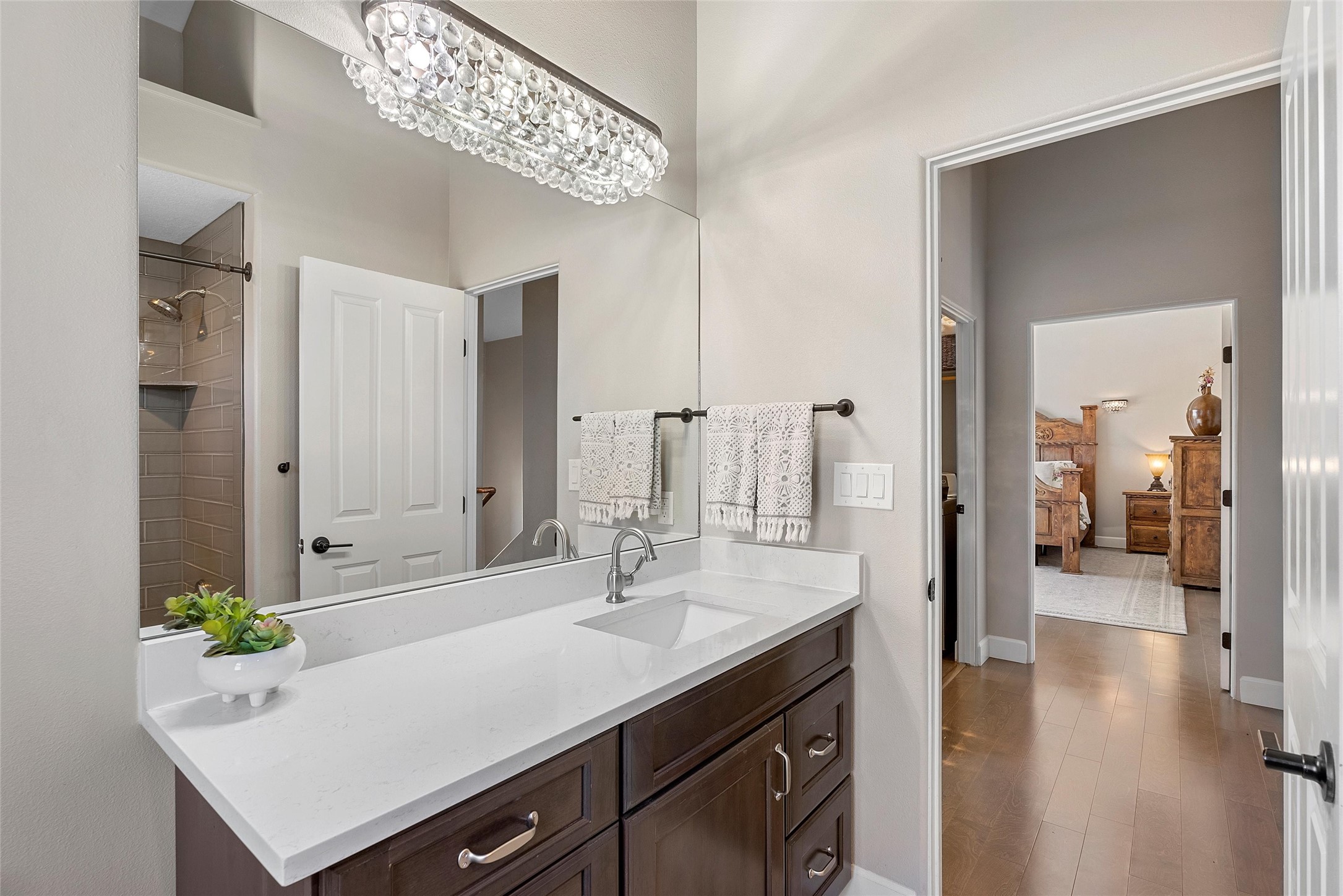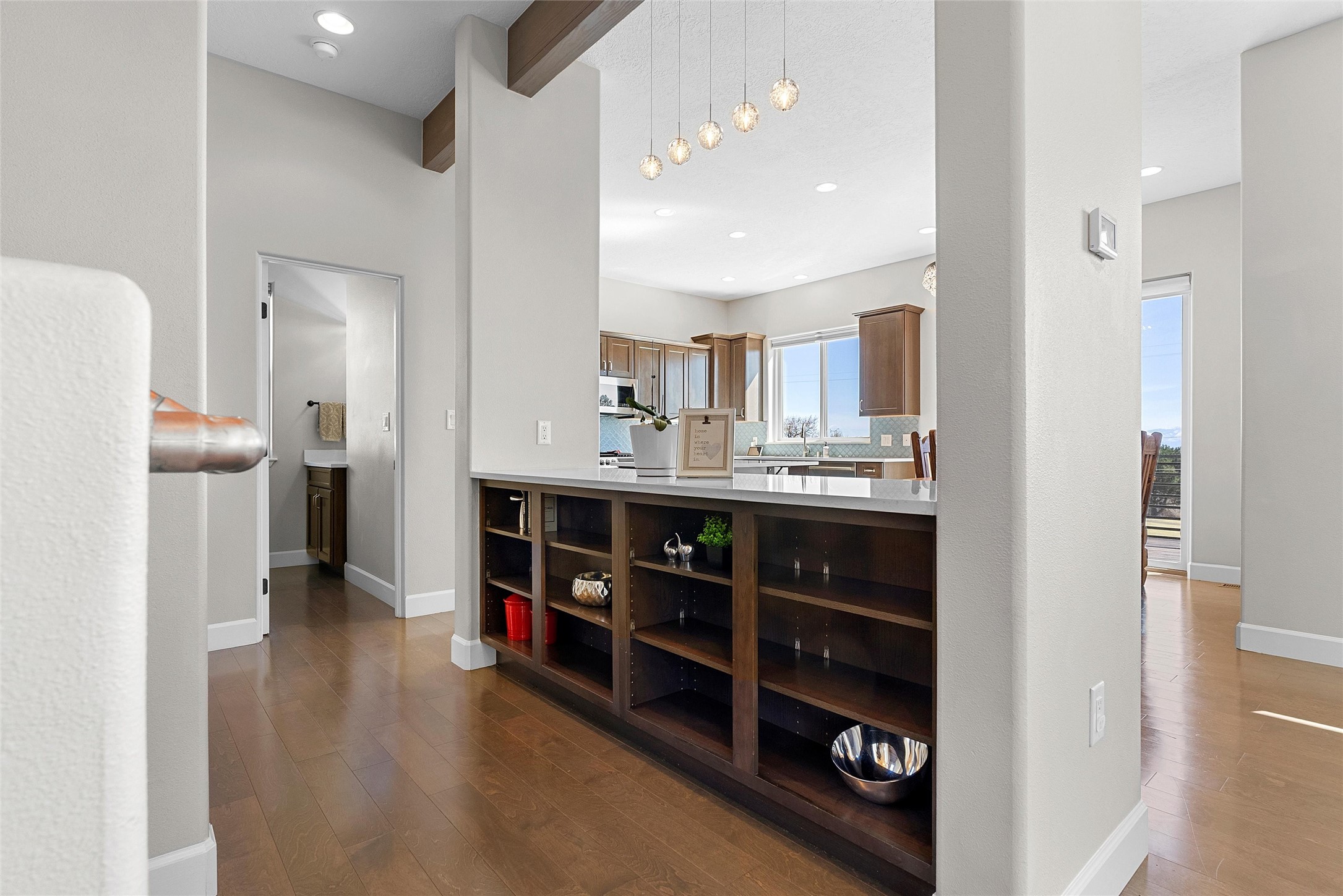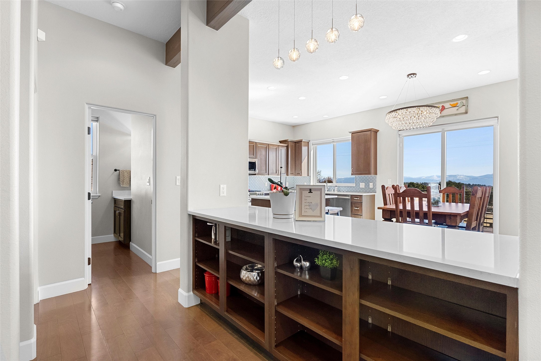 **SELLER OFFERING BONUS 5K CONCESSION (RATE BUY-DOWN) ** with acceptable offer! READY for breathtaking views of the Sangre de Cristo Mountains and Jemez Mountains, this custom 5-bedroom, 4 bath home has it all. Nestled in a family-friendly neighborhood within the highly sought-after Mountain Elementary School District, this modern home built in 2017 by Alan Mascord Design Associates Inc.--offers the perfect blend of contemporary style and functional amenities.The home features a stone veneer exterior and a meticulously kept fenced-in front yard with a drip irrigation system. Inside, cathedral vaulted ceilings with wood beams create a spacious, airy ambiance throughout. The layout includes five bedrooms and 2 full, 1 three quarter and one-half bath, enhanced by a versatile triplex configuration that offers two primary bedrooms or mother-in-law suite--each with its own en-suite bathroom for added luxury and privacy. The living room boasts a striking stacked stone fireplace as its focal point, complemented by large windows that fill the space with natural light and frame the stunning mountain views. A spacious elevated deck extends the living area outdoors, providing an ideal spot for entertaining or simply enjoying the scenery. Luxury wood floors, no carpet other than interior steps! The gourmet kitchen features quartz countertops, upgraded appliances, high-profile cabinets, and a custom architectural pass-through with built-in cabinetry that seamlessly connects to the living space. Elegant quartz accents continue into the bathrooms, and lavish overhead lighting paired with custom copper touches adds warmth and unique character throughout. BEAUTIFULLY SEPARATED ENTRANCE FOR MOTHER IN LAW QUARTERS lower level access!For added convenience, utility sinks are included in both the laundry room and the garage. The 3-car tandem garage provides ample parking and storage, accessible from North Road by Urban Park. Additional features include refrigerated air, a durable metal roof, a tankless water heater, and an electric vehicle charging station. This exceptional custom home offers everything you need--from form to function. Contact us today for your private showing!