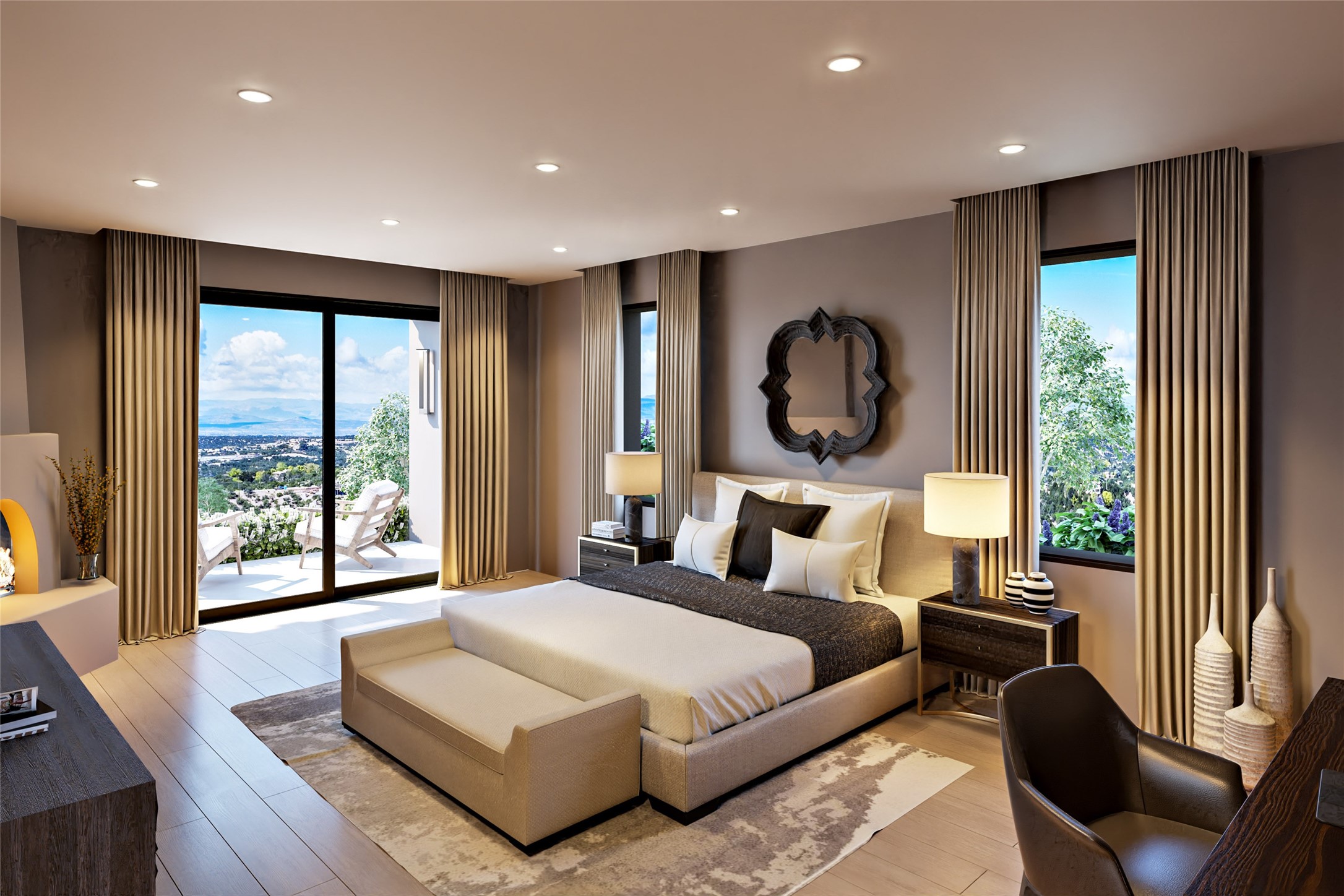 One of the finest properties to ever arrive on the Santa Fe market...298 Brownell Howland will feature spectacular views located on one of Santa Fe's most prestigious streets. Renowned builder, Odai Construction and noted Interior Designer, Kelly Keyes Miller, will spearhead the construction and all finishes. The home will be 6,000 sq ft with a pool, 5 bedrooms and 5 1/2 bathrooms. The custom-designed home will have wood floors, hand-hewn beams, exquisite ceiling and wall treatments, a private entry courtyard and private portals of over 1,000 square feet. The chef's kitchen features top end appliances, exceptional granite counter space plus an adjacent butler's pantry. This will be a one-of-a-kind property. Please see attached video. Images portrayed in this listing are virtual images, and seller makes no representations that all elements in these images represent what is being sold.
