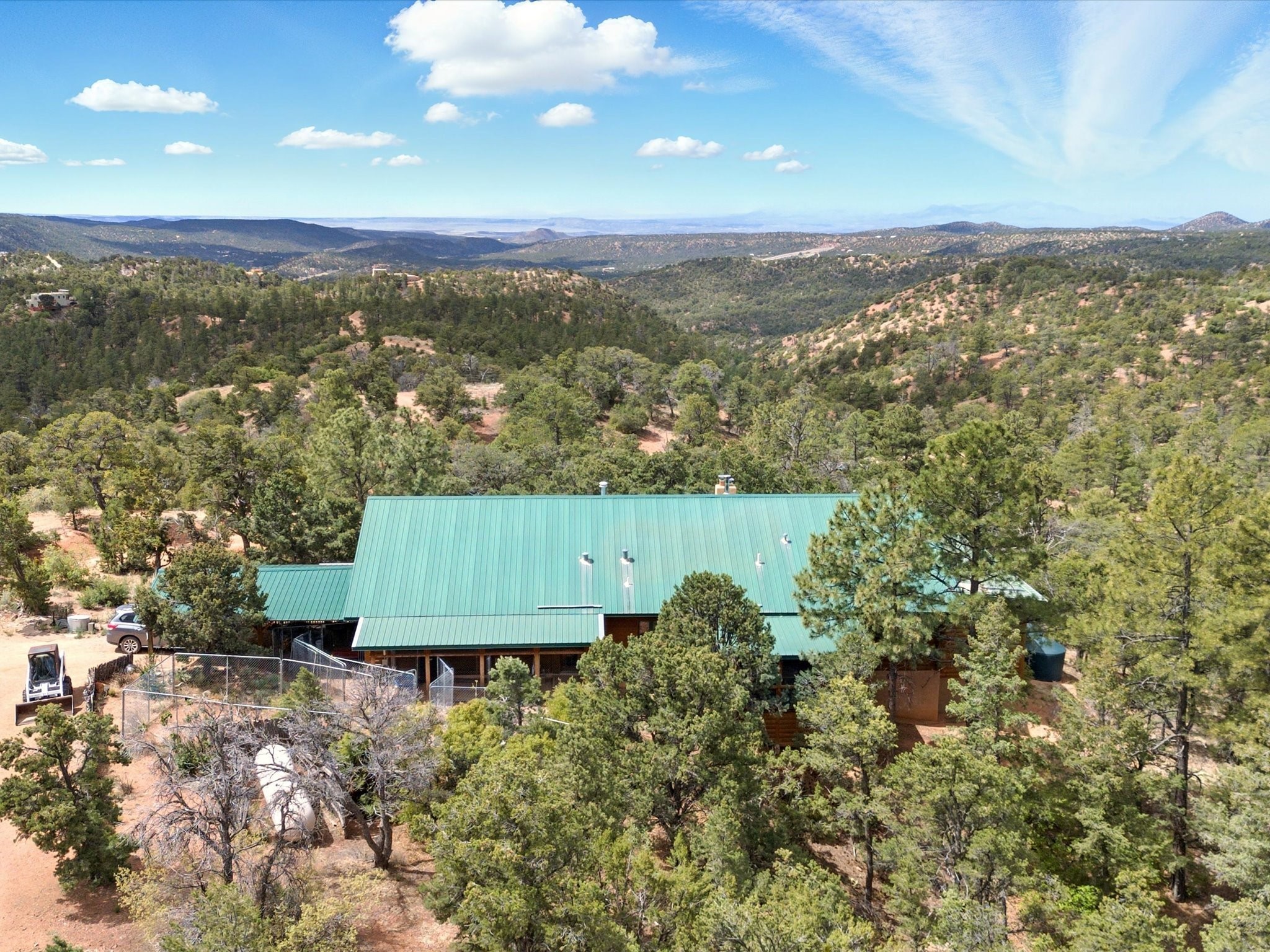 Escape to a 2-bed, 2-bath, 25-acre horse-ready retreat with forest access, rustic charm, and serene mountain views.Tucked away in the high mountains just minutes from Santa Fe, this private 25-acre retreat offers the perfect blend of rustic charm and Southwestern style. With direct access to national forest land, it's a rare opportunity for outdoor enthusiasts and horse lovers alike.The home features Saltillo tile floors, warm wood accents, and a cozy cabin feel, blending seamlessly with its natural surroundings. Equestrian-ready, the property includes a 4-stall stable with water and electric, plus a round pen--all set within expansive, usable land.Enjoy true serenity with no HOA, big skies, and endless trails, all within easy reach of town.