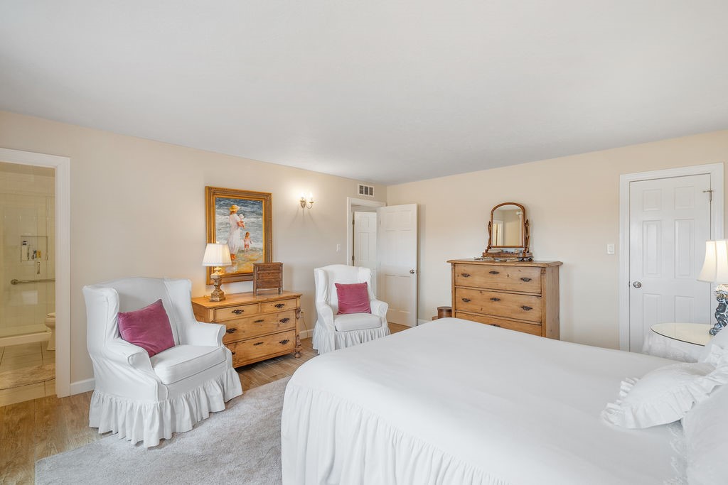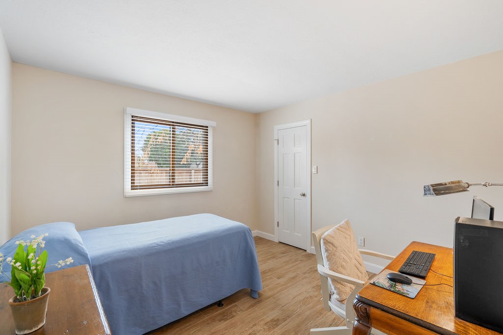 Nestled in a serene and private setting, this beautifully updated 1,632 sq. ft. home offers comfort, style, and breathtaking views of the Jemez Mountains. Featuring three bedrooms and two remodeled bathrooms, this home is designed for both relaxation and functionality. Step inside to discover updated tile floors throughout and an inviting living room with a wood-burning fireplace, built-in bookshelves, and French doors leading to a charming covered portal and landscaped backyard. The formal dining room, illuminated by two skylights, provides the perfect space for gatherings, while the renovated kitchen boasts newer appliances, a gas stove, and a pantry with pull-out shelves. The primary suite is a peaceful retreat with a walk-in closet and mountain views, while the third bedroom is a versatile space, complete with a built-in Murphy bed and office built-ins. Enjoy year-round comfort with forced air heating and refrigerated AC.Outdoor enthusiasts will love the generous front courtyard patio, perfect for lazy Summer breakfasts, and the walking path surrounding the property, leading to two raised garden beds--ideal for growing fresh produce or flowers. With community garden views and a quiet, peaceful atmosphere, this home is a rare gem waiting to be yours! TPO new roof with 10 year warranty has been ordered. Radon mitigation is being done on 4/3/25. Park Plazas is a unique and beautiful neighborhood, close to everything in Santa Fe, with miles of walking trails, a community garden, tennis courts, an off-leash dog park, and many other amenities, this neighborhood is one of the best values in Santa Fe.