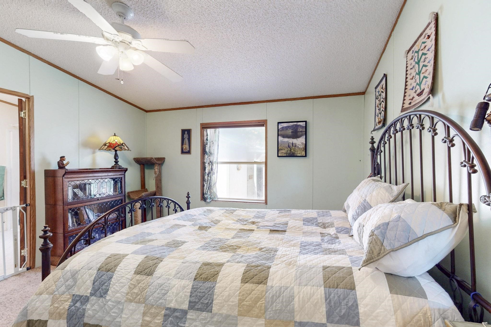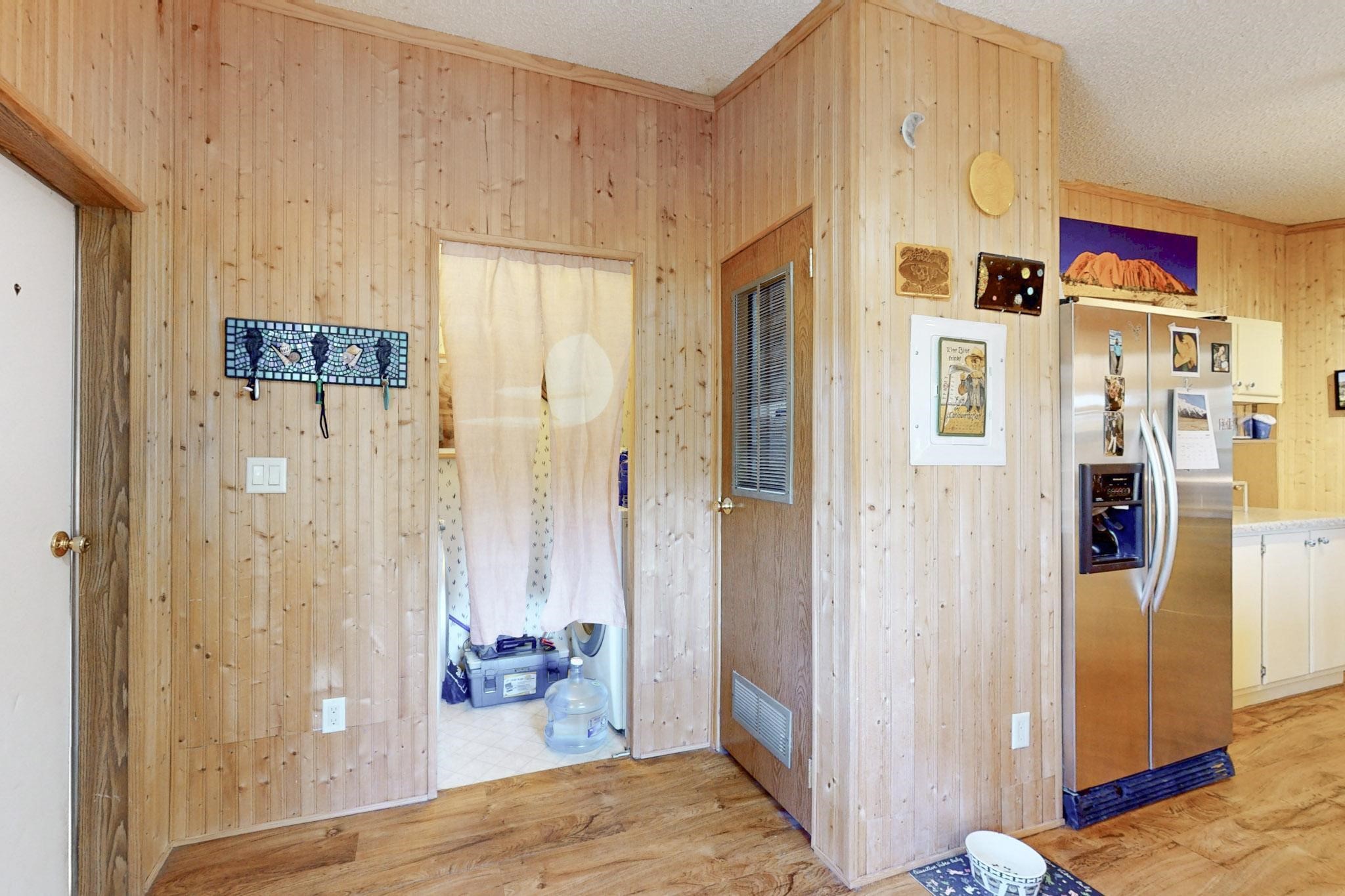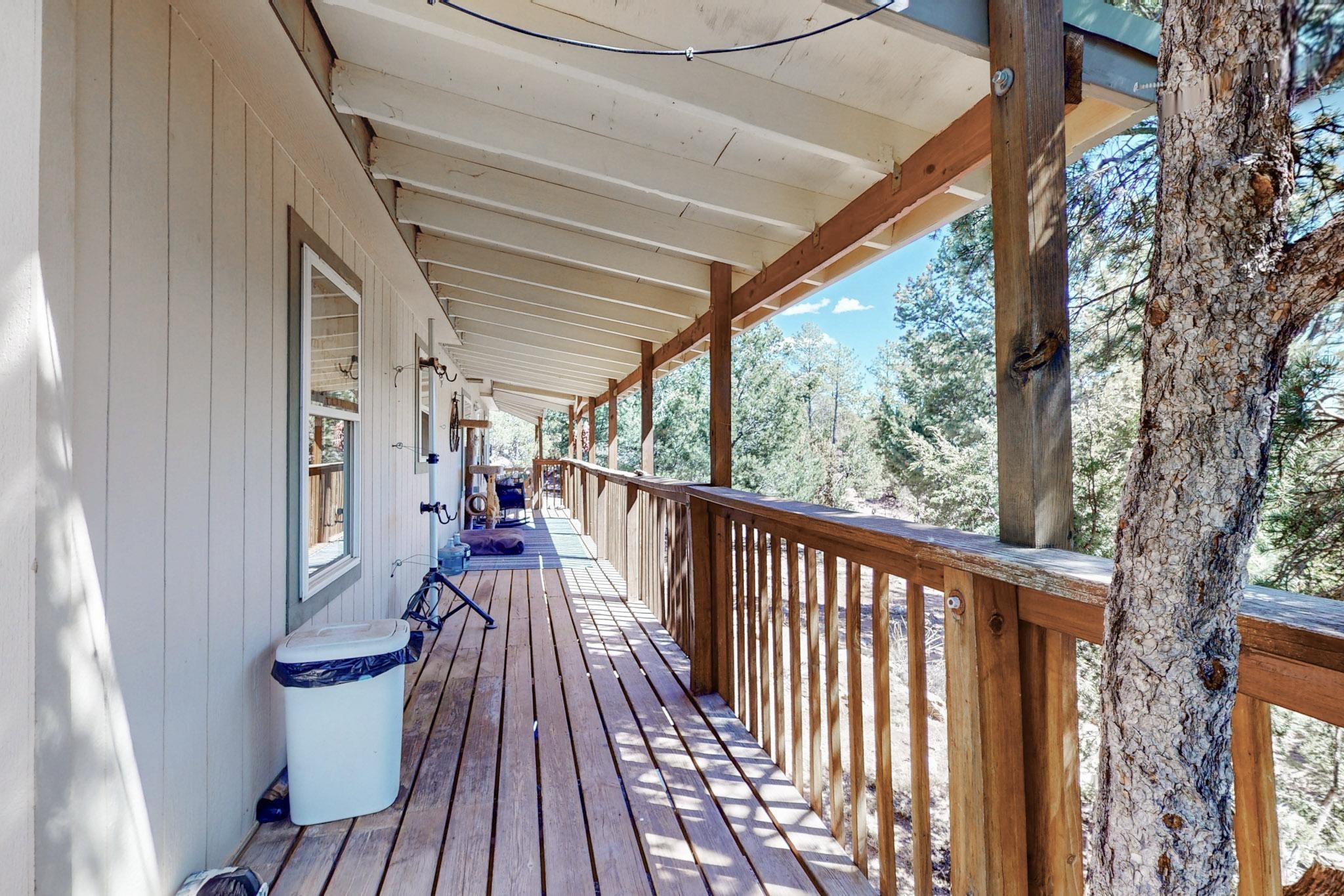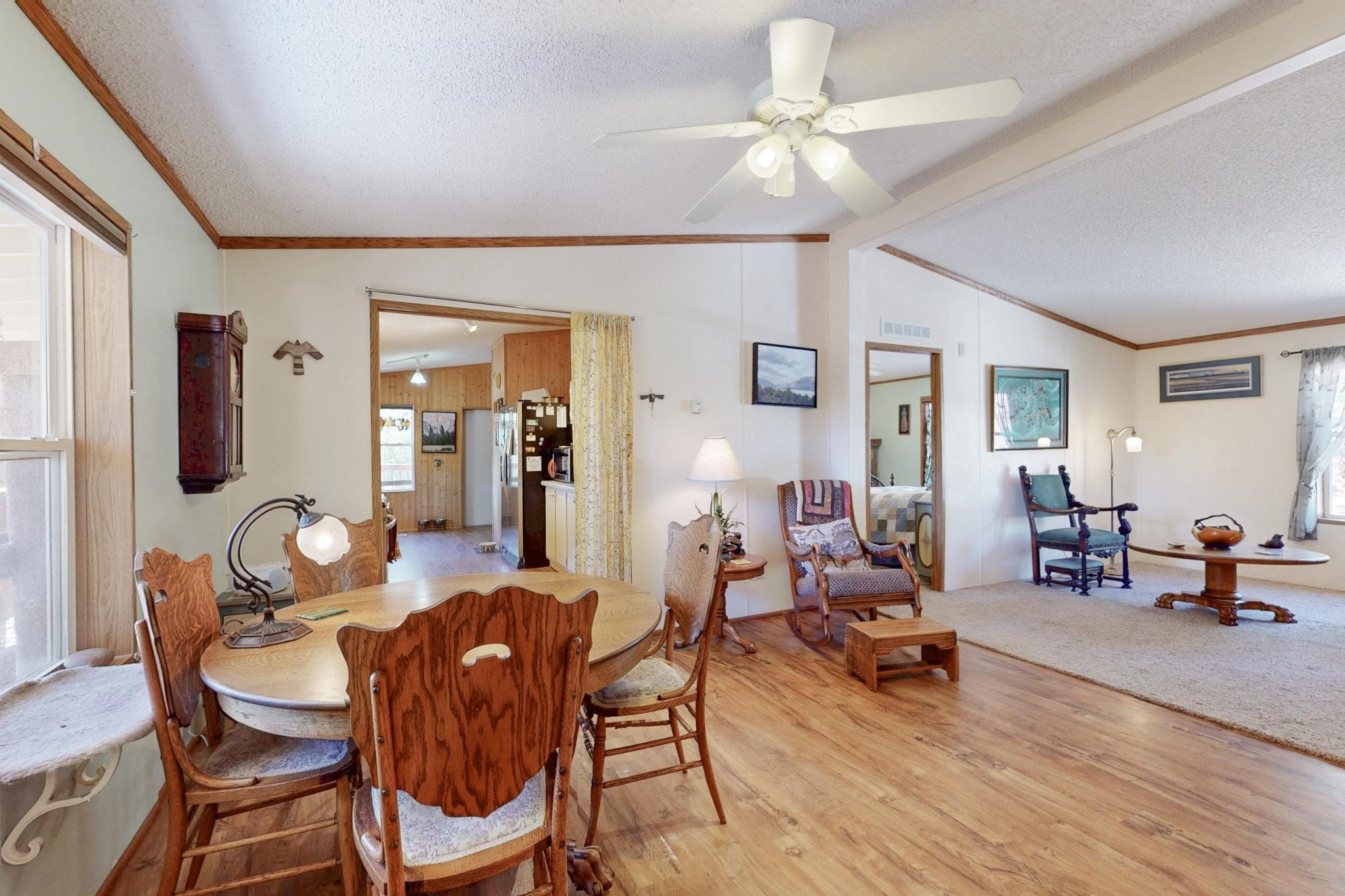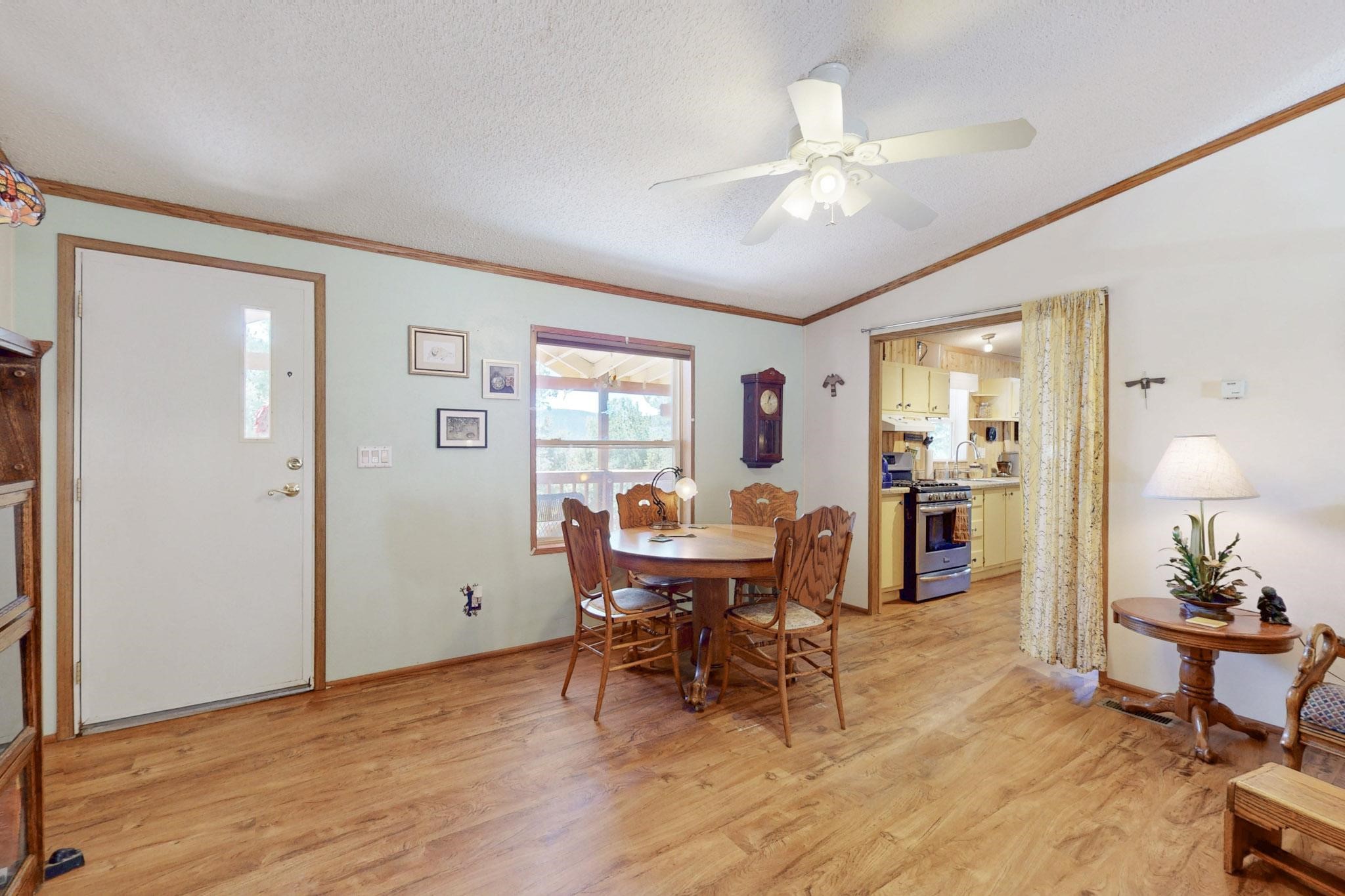 MOTIVATED SELLER and a great opportunity for the adventurous cash Buyer who will be happy in a partially off grid living situation, close to the open spaces and nature. Manufactured home on the permanent fundation with 3 bedrooms and 2 baths nestled in the beautiful Pecos/Glorieta area. Private and independent living surrounded by nature provides a place to escape from daily "hustle and bustle" just a short drive from Santa Fe. Covered deck wrapping the front of the house provides a great spot with a view of Glorieta Mesa. A place to rest and reminisce. The seller replaced the water heater (2018), furnace (2021), roof (2022, now metal), and garbage disposal (2024). Other improvements of the property include a workshop with fire resistant dry wall, wired for both 120v and 240v. The studio can be used for many artistic activities. There is also a shed for additional storage. Part of the property is fenced so your pets can have their freedom while outside. There is a water cistern, which is a main source of water. Ready to be used. Seller is offering $1000 towards water hauling services with the local service. Please read Supplemental Disclosure. Price to sell. Septic was inspected and it is good to go.