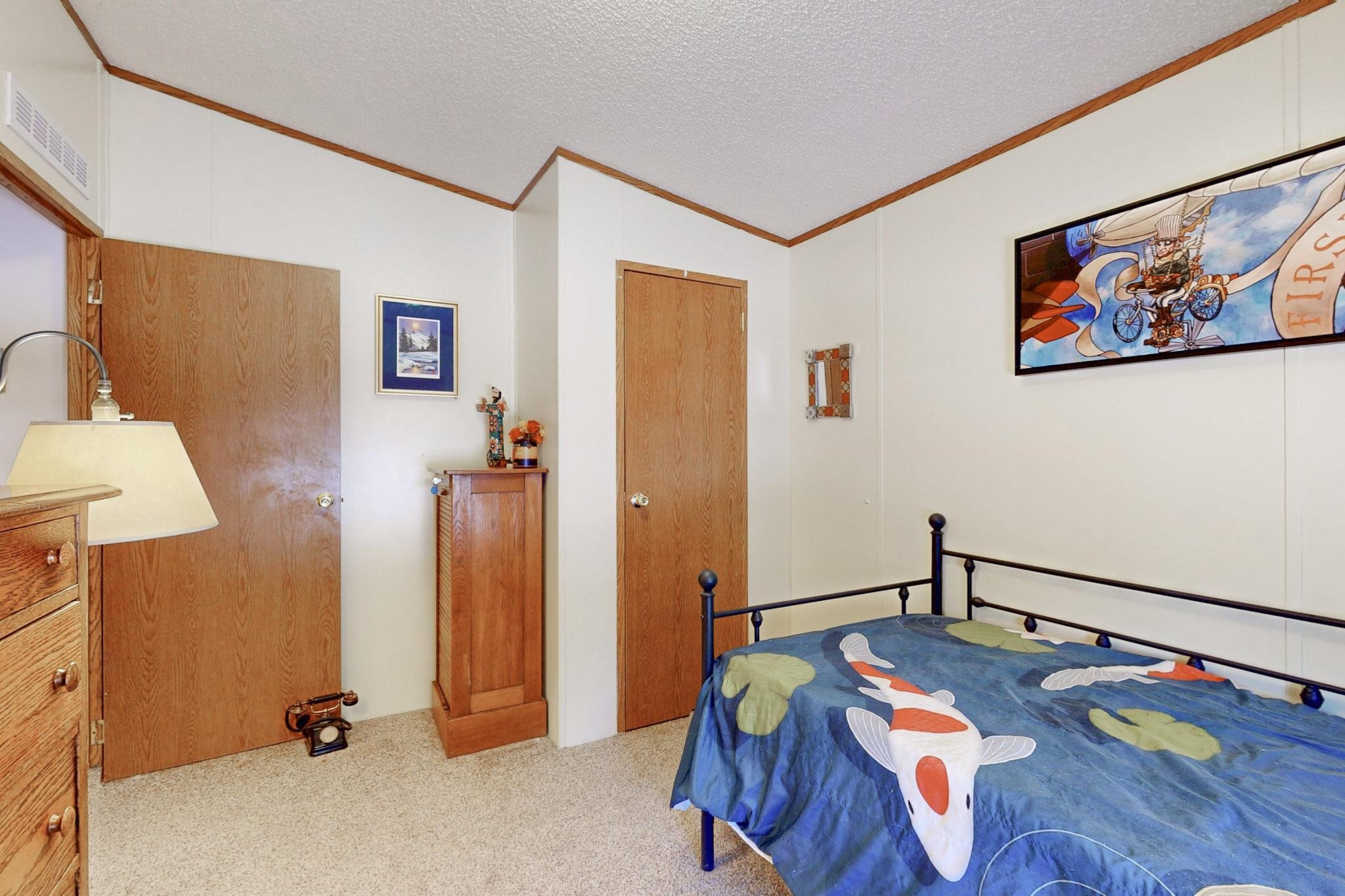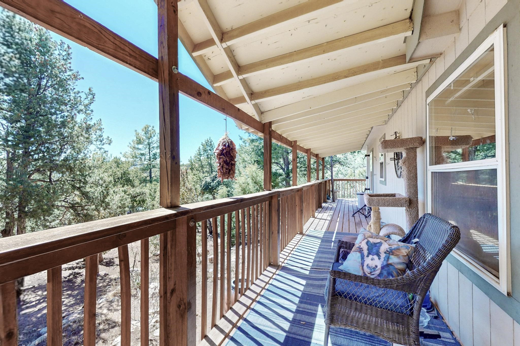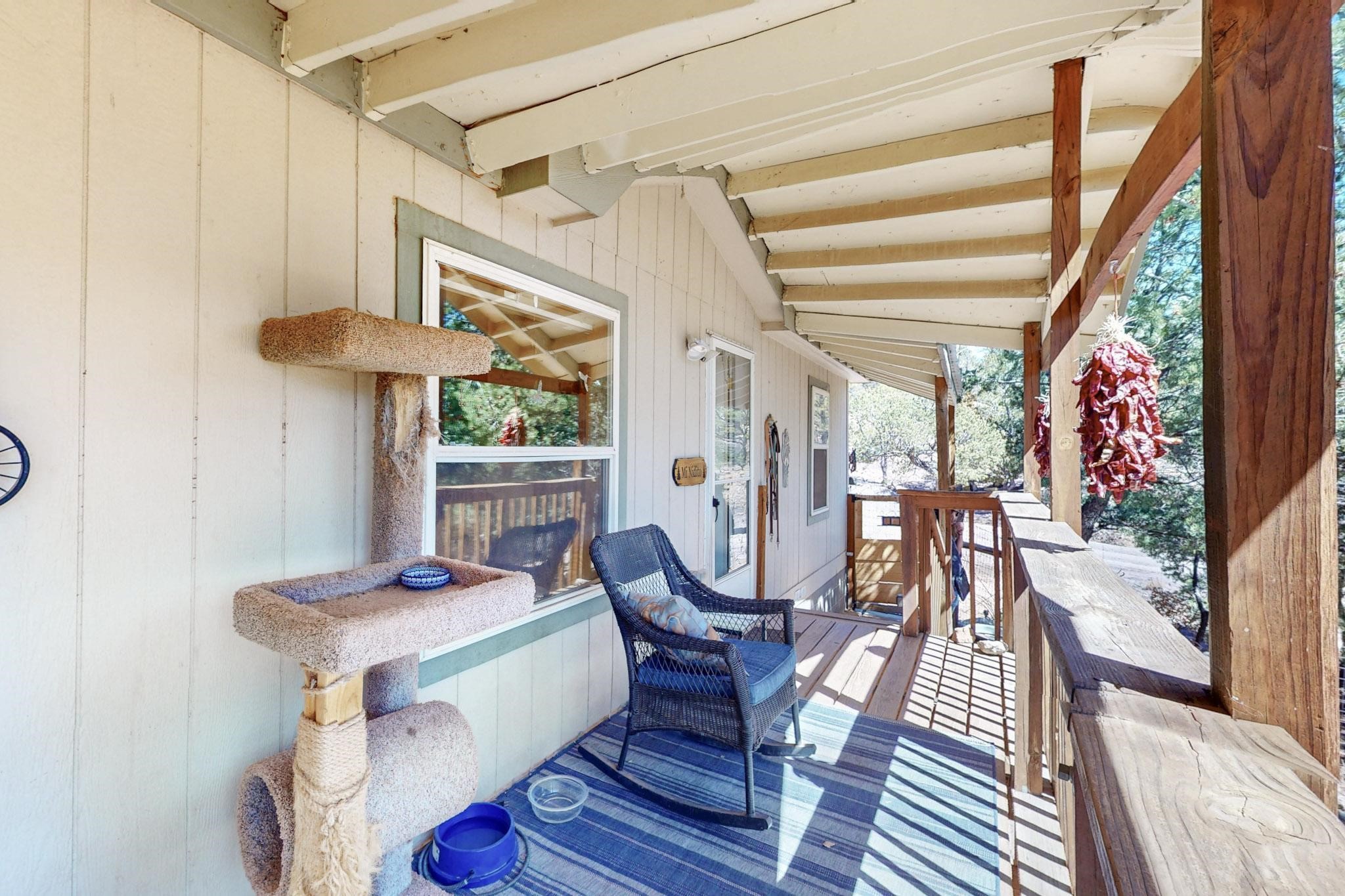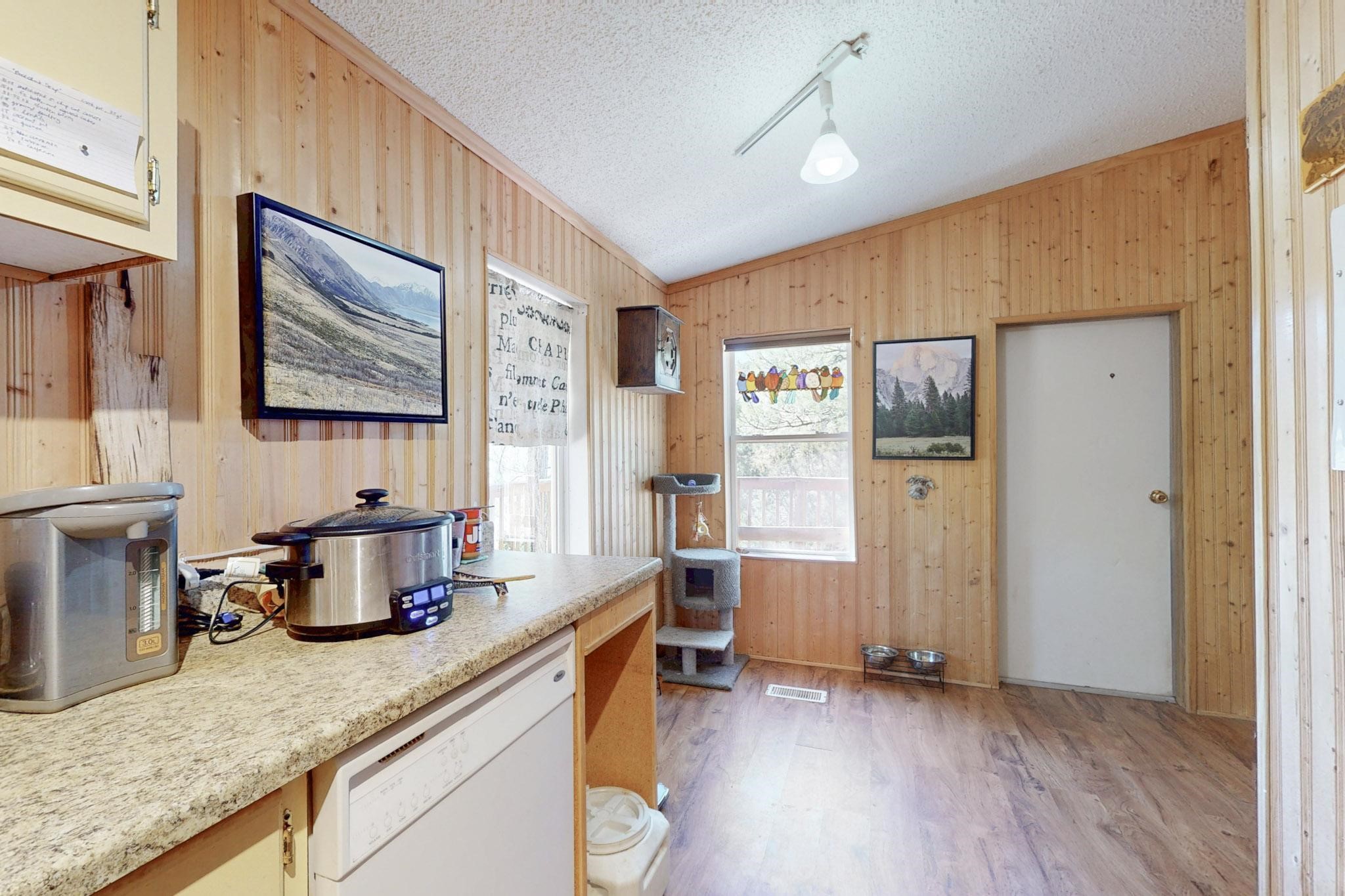 MOTIVATED SELLER and a great opportunity for the adventurous cash Buyer who will be happy in a partially off grid living situation, close to the open spaces and nature. Manufactured home on the permanent fundation with 3 bedrooms and 2 baths nestled in the beautiful Pecos/Glorieta area. Private and independent living surrounded by nature provides a place to escape from daily "hustle and bustle" just a short drive from Santa Fe. Covered deck wrapping the front of the house provides a great spot with a view of Glorieta Mesa. A place to rest and reminisce. The seller replaced the water heater (2018), furnace (2021), roof (2022, now metal), and garbage disposal (2024). Other improvements of the property include a workshop with fire resistant dry wall, wired for both 120v and 240v. The studio can be used for many artistic activities. There is also a shed for additional storage. Part of the property is fenced so your pets can have their freedom while outside. There is a water cistern, which is a main source of water. Ready to be used. Seller is offering $1000 towards water hauling services with the local service. Please read Supplemental Disclosure. Price to sell. Septic was inspected and it is good to go.
