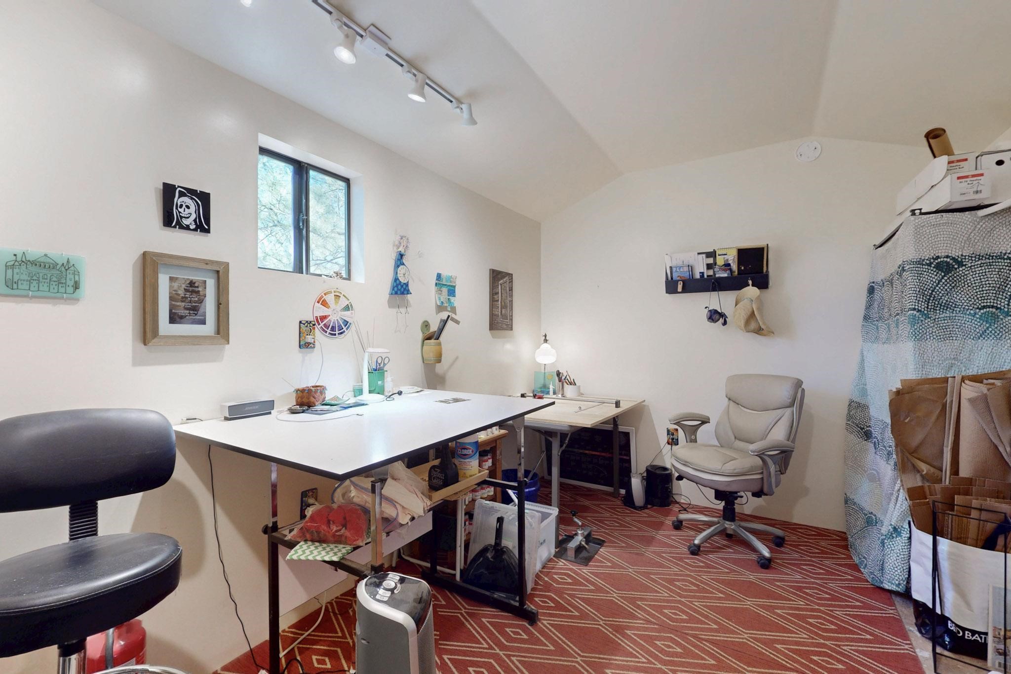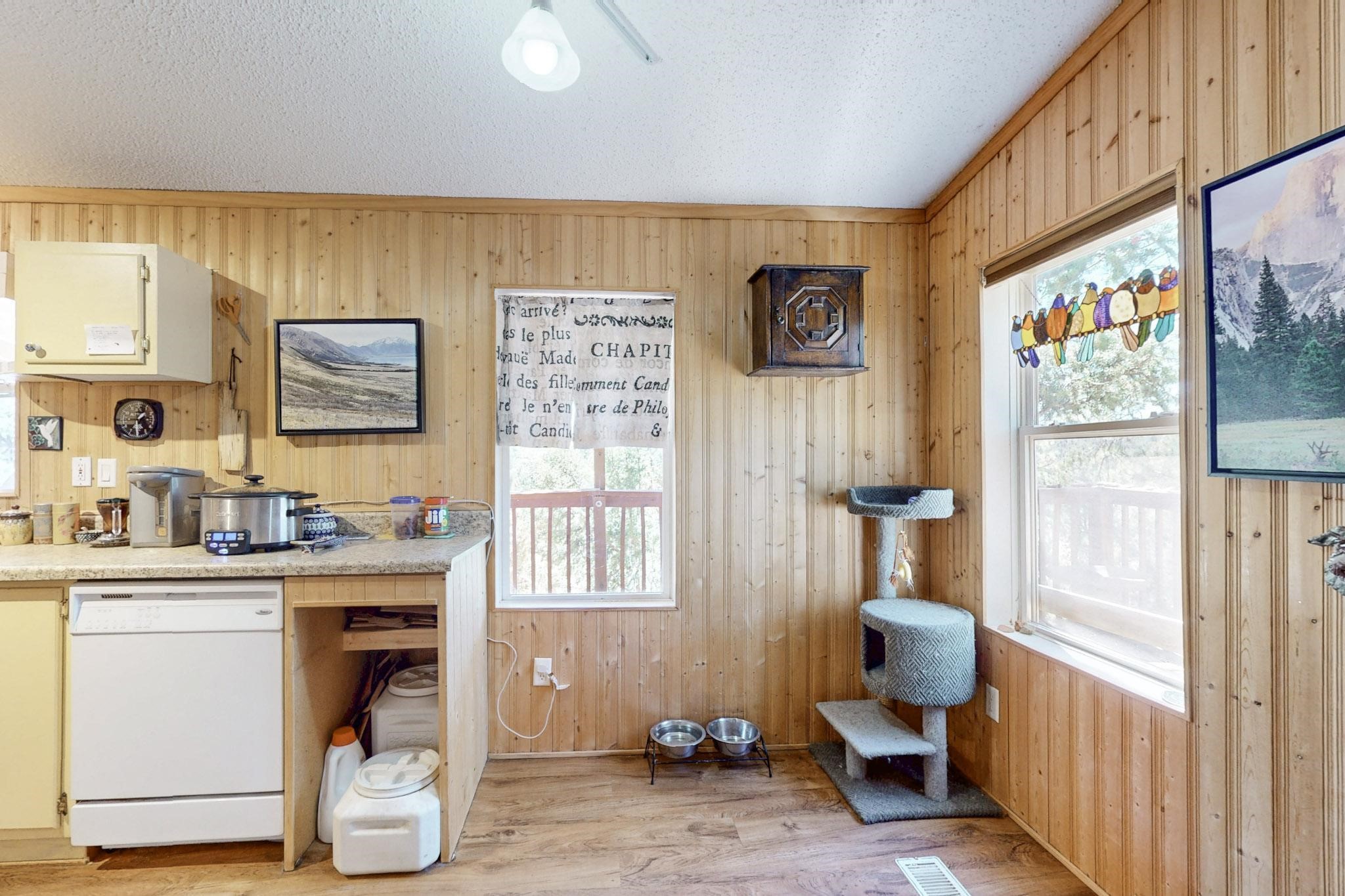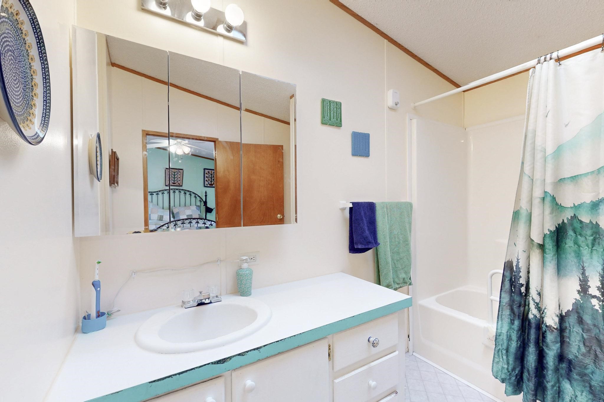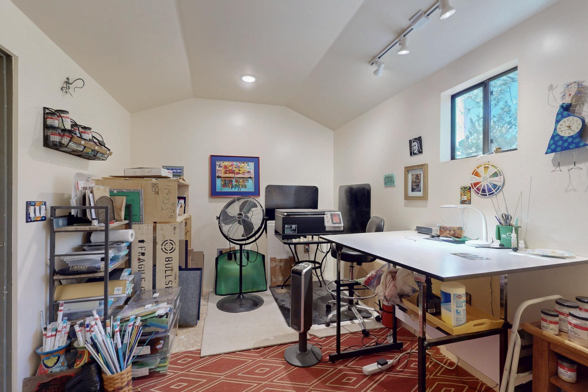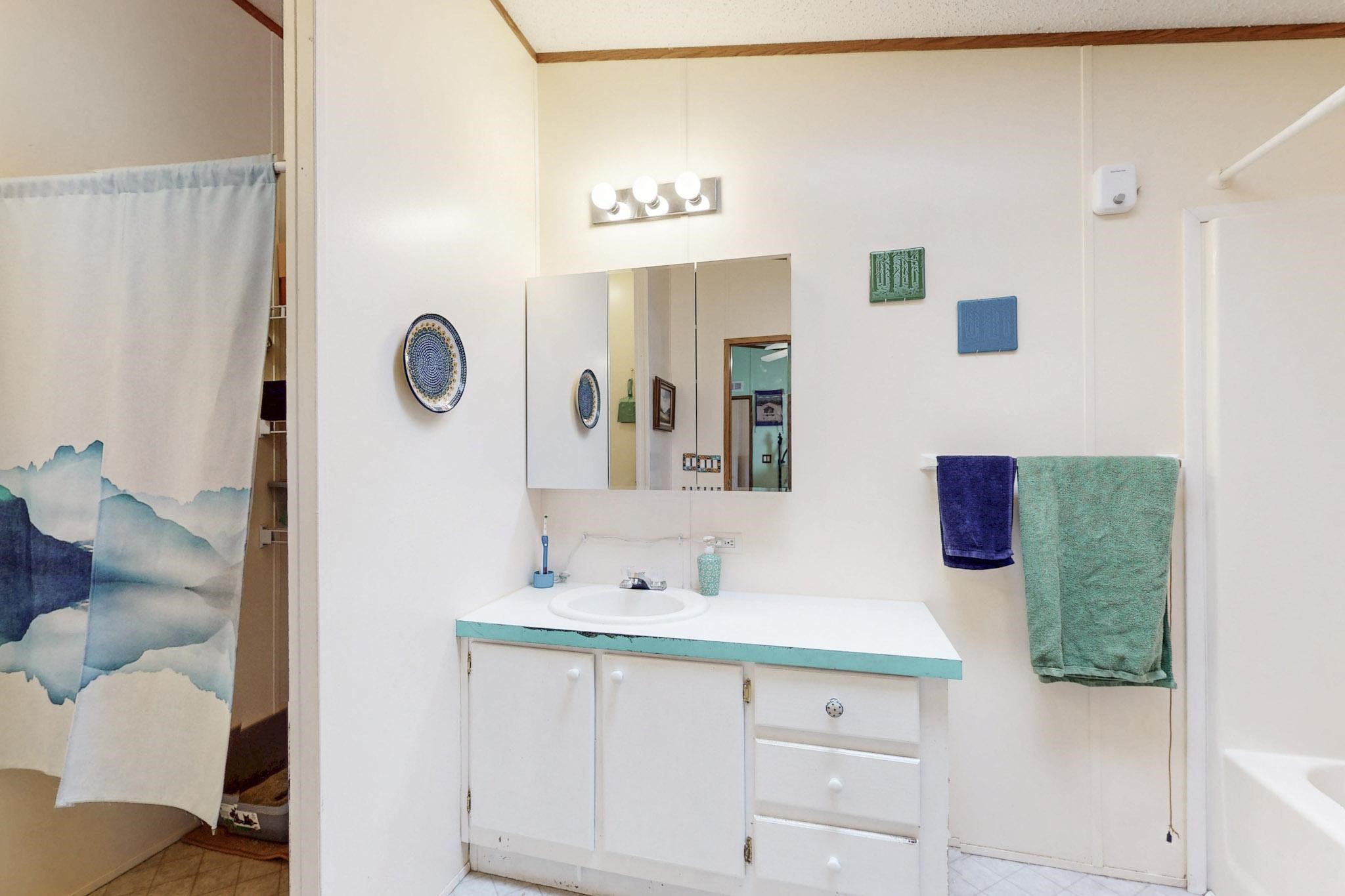 MOTIVATED SELLER and a great opportunity for the adventurous cash Buyer who will be happy in a partially off grid living situation, close to the open spaces and nature. Manufactured home on the permanent fundation with 3 bedrooms and 2 baths nestled in the beautiful Pecos/Glorieta area. Private and independent living surrounded by nature provides a place to escape from daily "hustle and bustle" just a short drive from Santa Fe. Covered deck wrapping the front of the house provides a great spot with a view of Glorieta Mesa. A place to rest and reminisce. The seller replaced the water heater (2018), furnace (2021), roof (2022, now metal), and garbage disposal (2024). Other improvements of the property include a workshop with fire resistant dry wall, wired for both 120v and 240v. The studio can be used for many artistic activities. There is also a shed for additional storage. Part of the property is fenced so your pets can have their freedom while outside. There is a water cistern, which is a main source of water. Ready to be used. Seller is offering $1000 towards water hauling services with the local service. Please read Supplemental Disclosure. Price to sell. Septic was inspected and it is good to go.