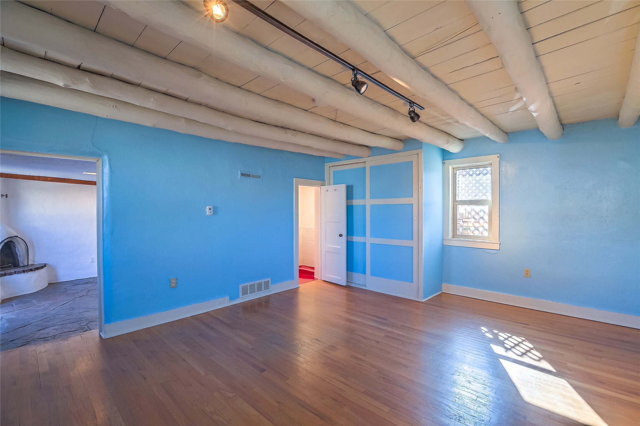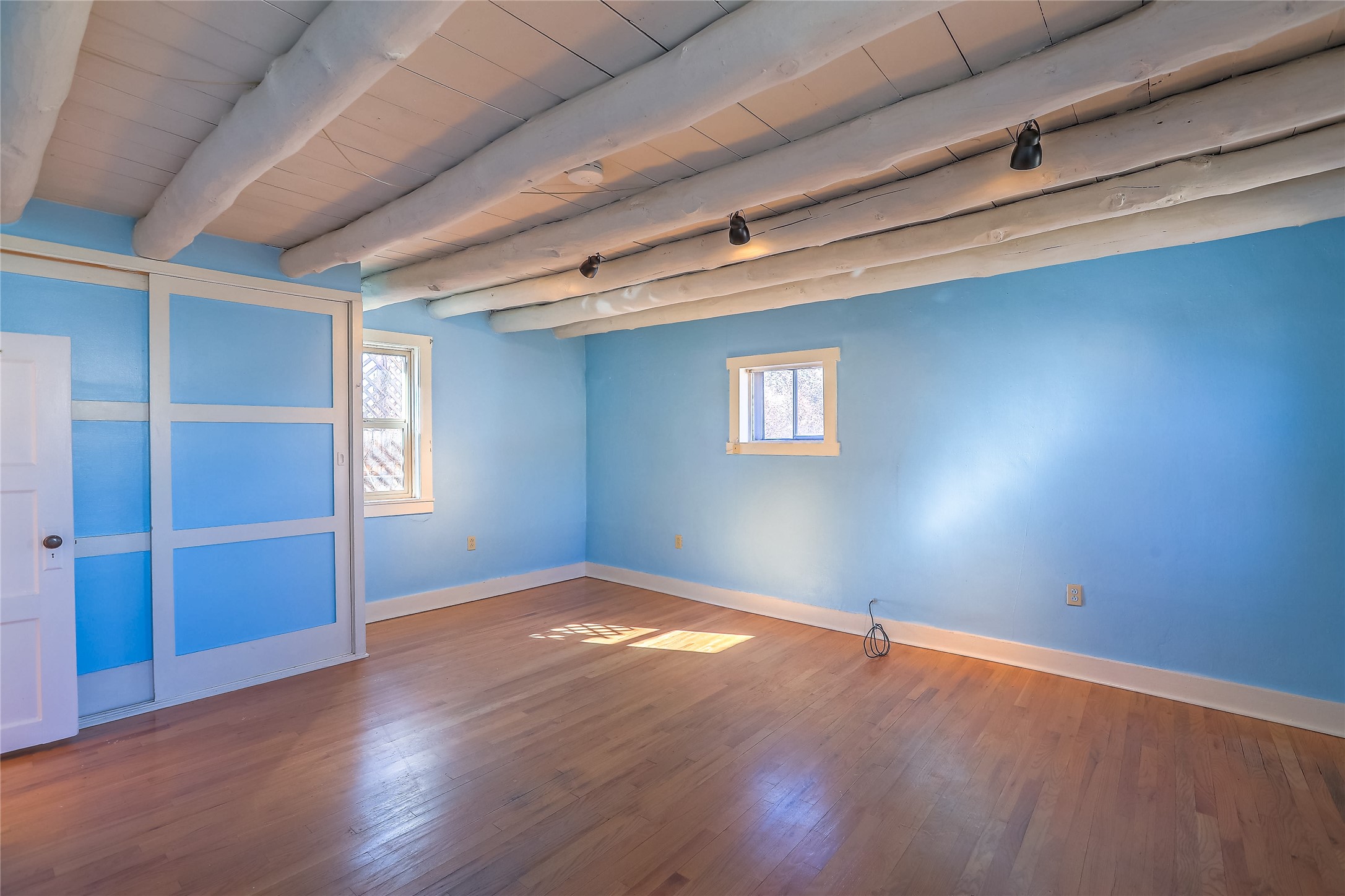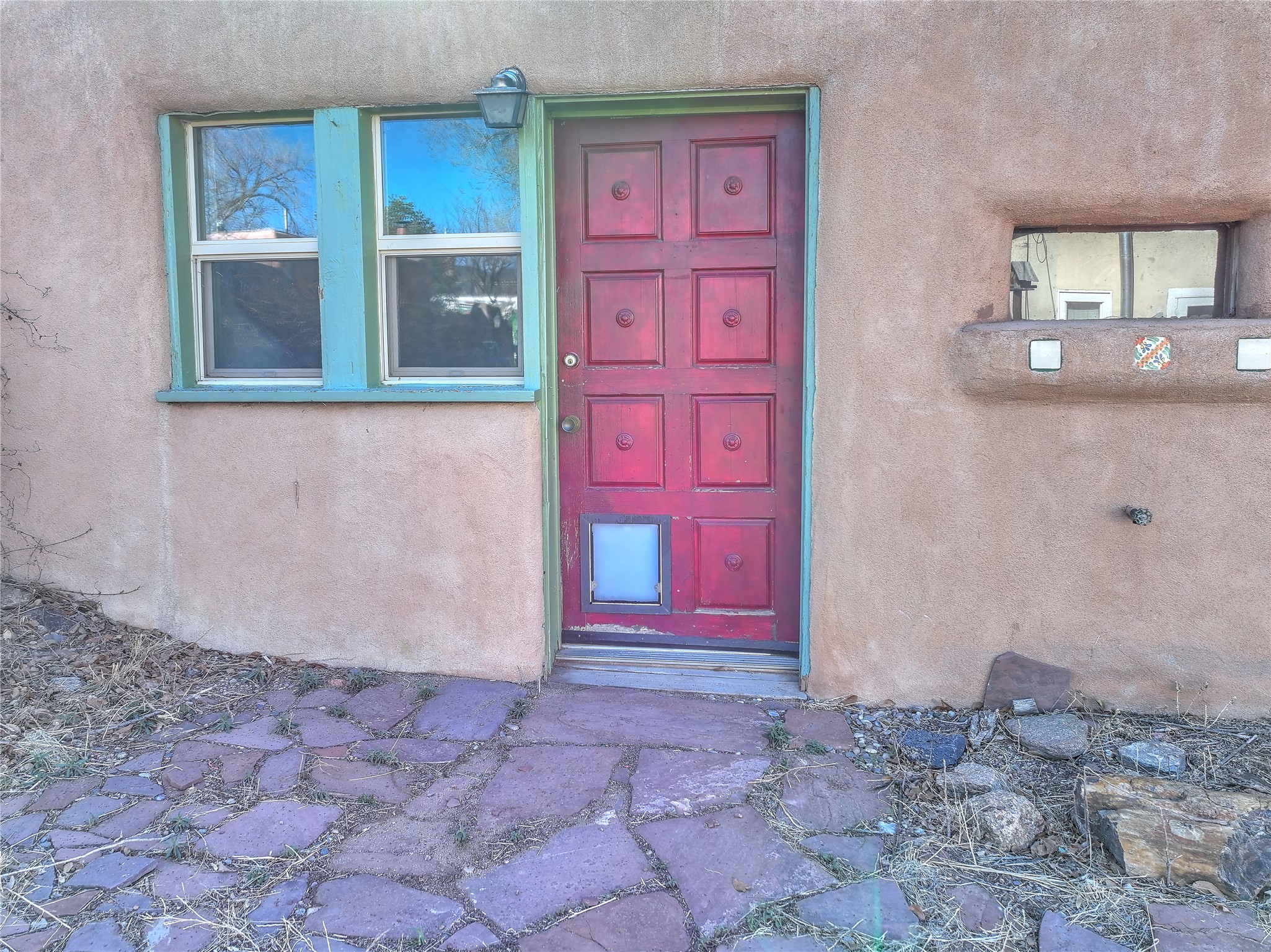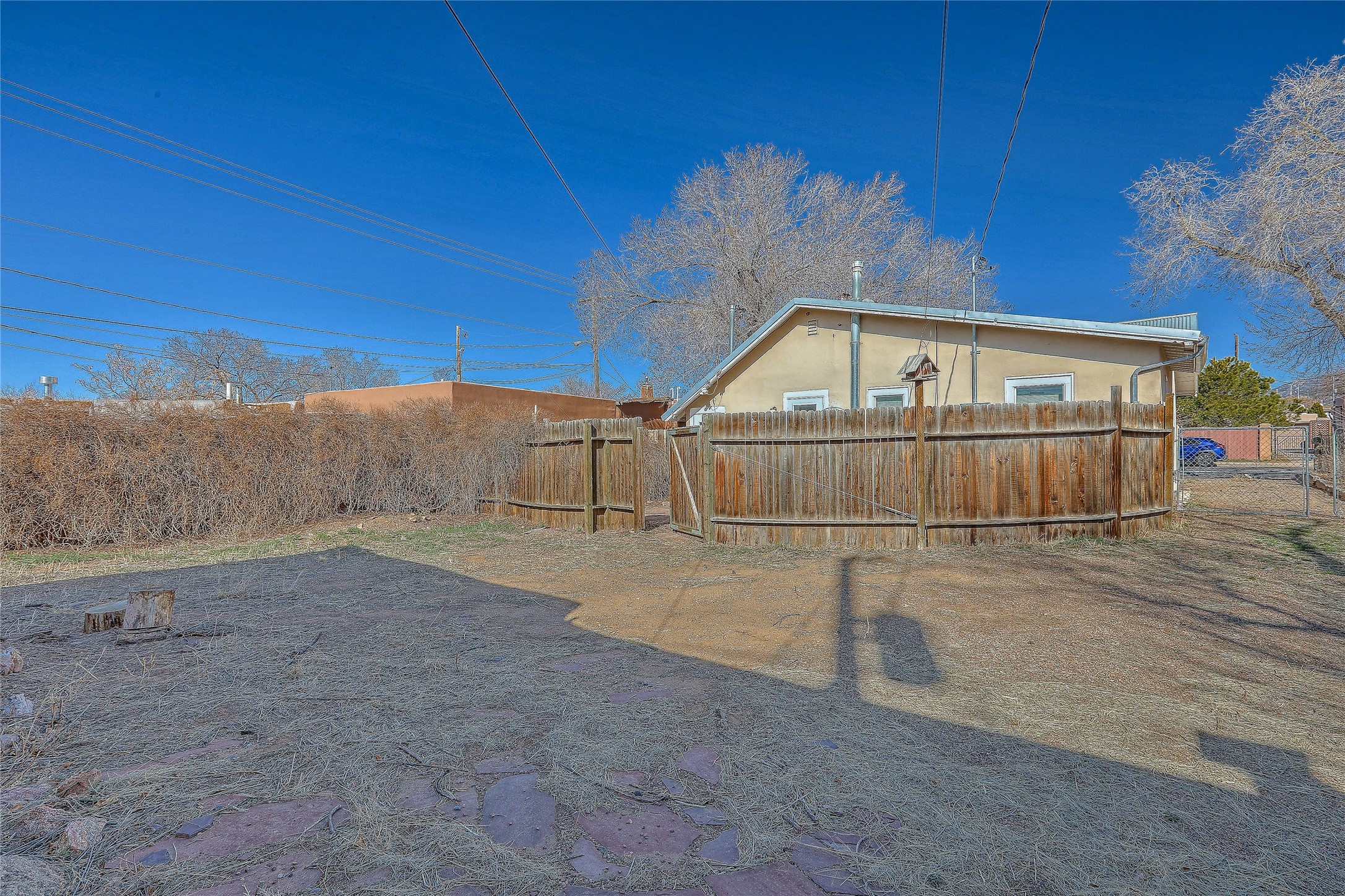 New Price Improvement!!! Embrace the charm of a 1930's gem just minutes from the Plaza! This delightful main house features two inviting bedrooms and one bath, where classic wood floors accentuate the warm living and dining spaces. Cooking enthusiasts will love the thoughtfully updated kitchen, while recent upgrades to the roof, plumbing, and electrical systems provide reliability. Step outside to enjoy the fenced yard, ensuring privacy between the houses, and make the most of the adorable casita that offers an additional bedroom, bath, and an inviting open layout with a kiva fireplace. With plentiful off-street parking and a bonus basement for extra storage, this property perfectly blends character and functionality in a fantastic location!