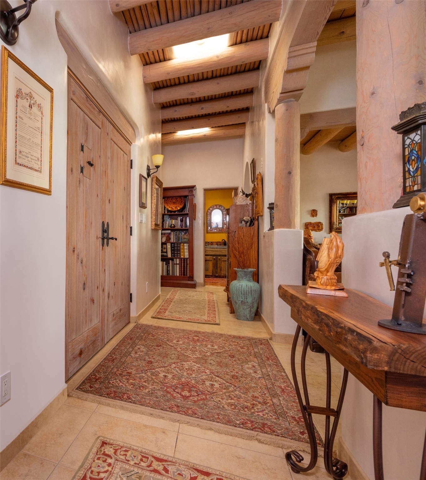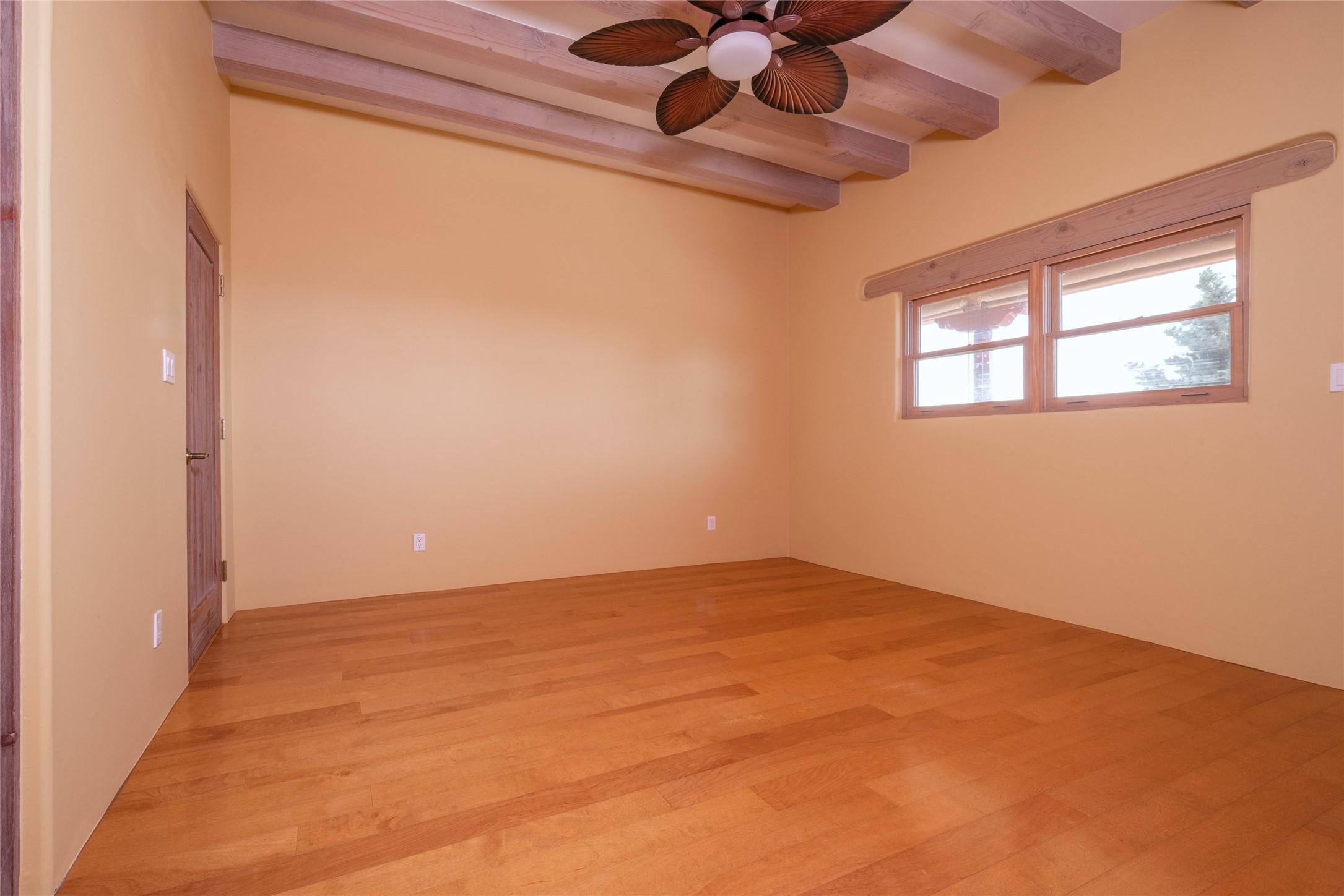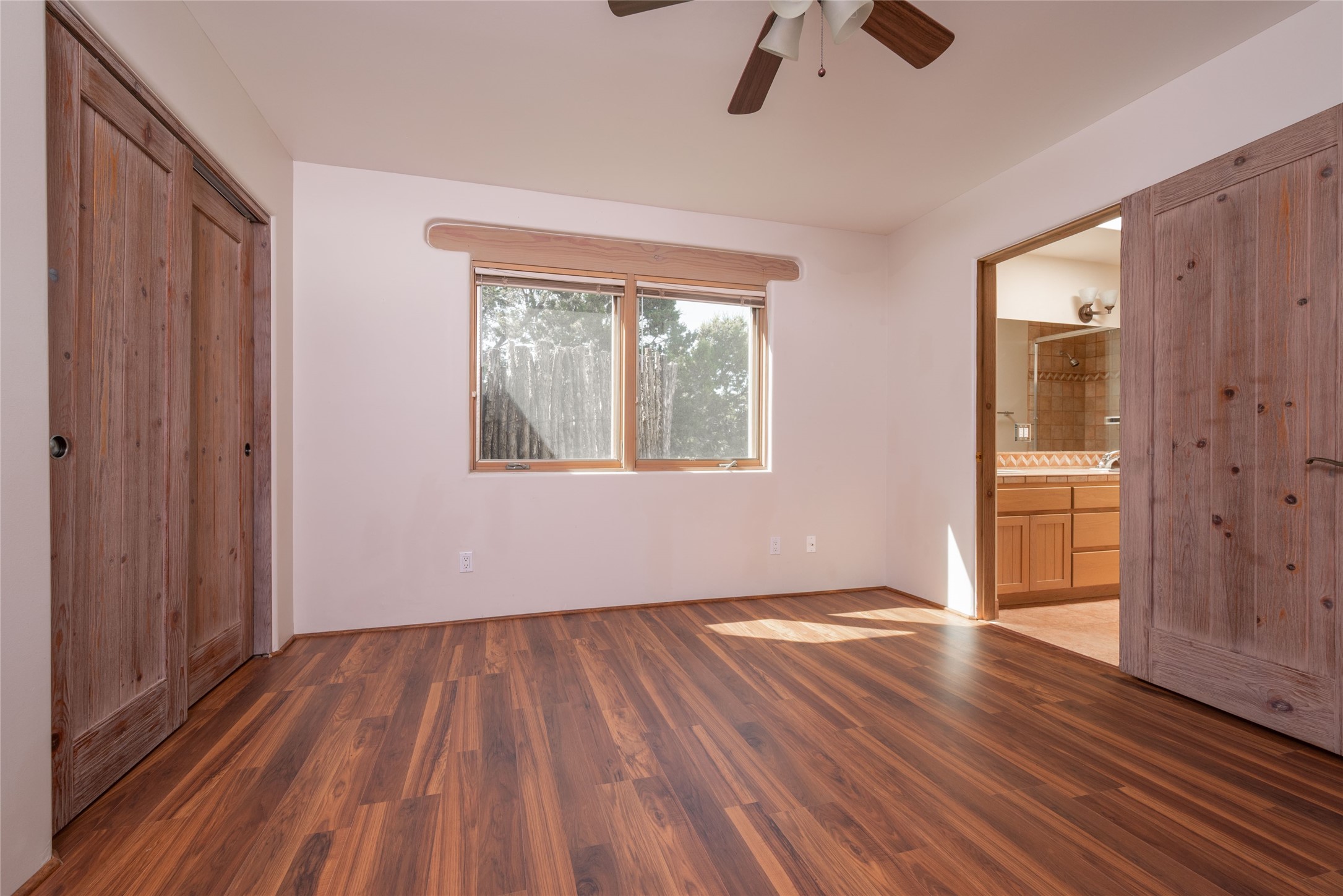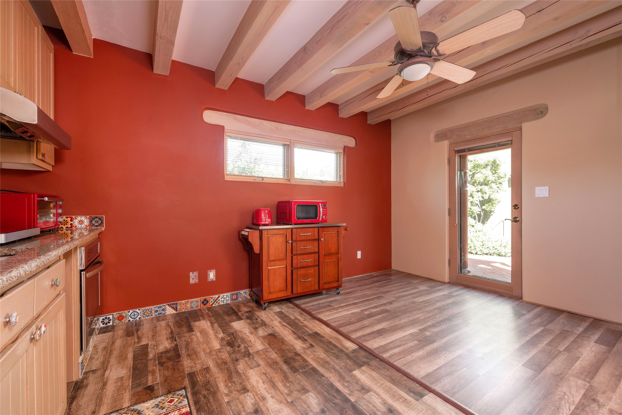 Nestled in the foothills on 1.83 acres with spectacular views, La Sierra is ideally situated between Dos Griegos and Eldorado. This stunning home offers a blend of traditional Southwest charm and modern updates, featuring 3 bedrooms, 3 baths, an attached guest quarters with kitchen, 2 offices, and an 868 sq. ft. heated garage. Constructed with Insulated Concrete Forms (ICF), the home boasts thick adobe-style finished walls, plastered interiors, vigas, and beams.The home has undergone an extensive remodel, including updates to the kitchen, primary bedroom and bath, guest bath, guest quarters, interior and exterior paint, landscaping, mechanical systems, and a new TPO roof. The kitchen features brand-new custom cabinets with pullouts, granite countertops, tile floors, a handmade island wood countertop with tile inlay, new appliances, updated lighting, and picturesque windows framing breathtaking views.The primary suite is elegantly updated with new hardware, granite countertops, stone sinks, faucets, lighting, paint, and tile flooring. It includes a separate bathtub, a walk-in shower, and a private door leading to the outdoor spa. Additionally, the suite offers two spacious walk-in closets. The guest bath has been enhanced with fresh paint, new tile, a vanity, sink, faucet, and mirror.The attached guest quarters provide a separate courtyard entrance and interior access for guest flexibility. This space includes a full bath, one bedroom, and a newly remodeled kitchen with updated cabinets, countertops, sink, appliances, wood and laminate flooring, and fresh interior paint.The home is equipped with a cutting-edge mechanical system, including boiler for radiant floor heating and exchange system for domestic hot water, powered by a 17.5 kW photovoltaic solar system, which is owned (not leased) and designed to achieve a "net-zero" PNM bill. The property is completely electric, including a stylish southwestern fireplace.The oversized 868 sq. ft. heated garage includes a designated workspace with power for a wood shop or hobby area, a private office with inside access, electric outlet ready for electric vehicle charging station, and a freezer.The thoughtfully designed xeriscaping features stone walls, lined driveways, gravel, and drip irrigation, all sustained by 9,000 gallons of rainwater harvesting tanks. The outdoor living spaces include a beautifully landscaped courtyard entry and a backyard patio with stunning views, retractable wind screens, and newly installed stone fountains and a stream.Conveniently located just minutes from La Tienda shopping center and less than a 10-minute drive on I-25 to Santa Fe, this remarkable home offers an unbeatable combination of elegance, sustainability, and convenience.