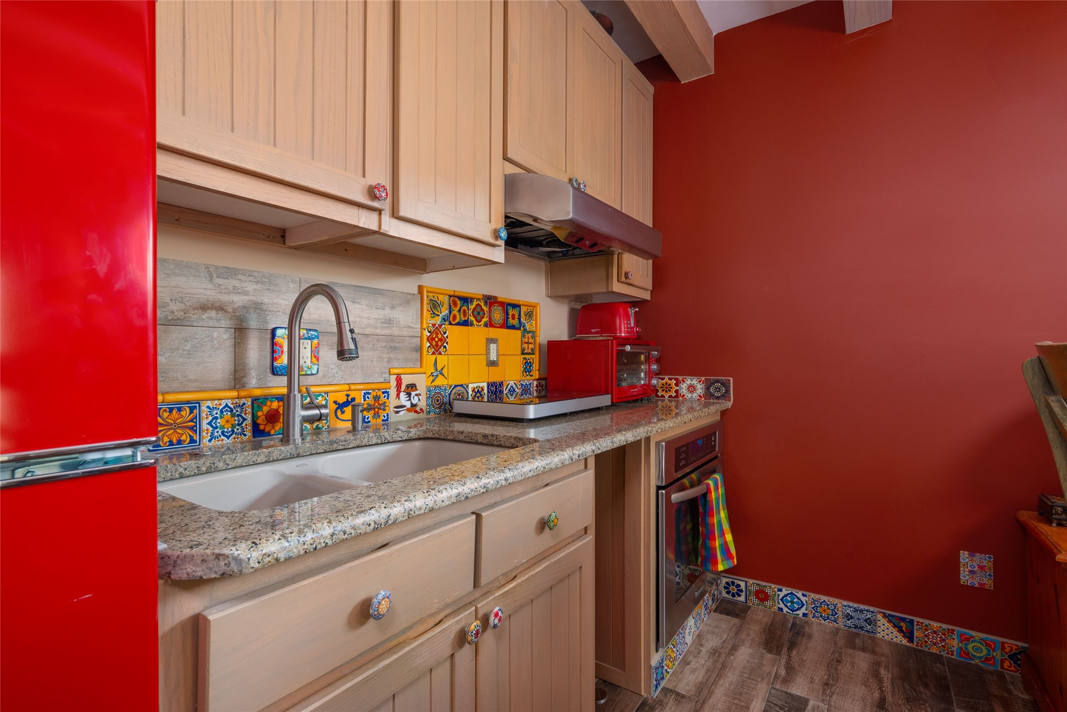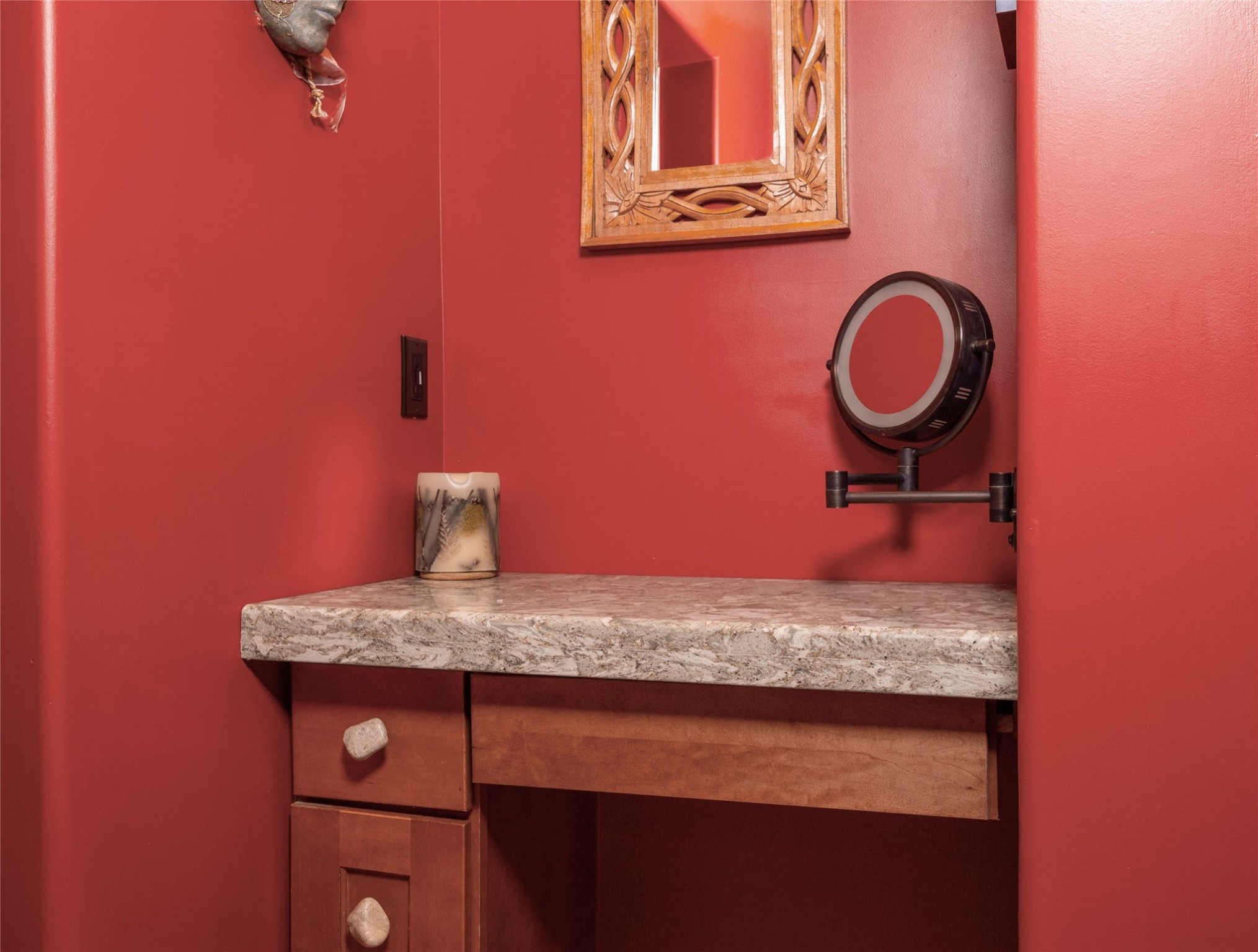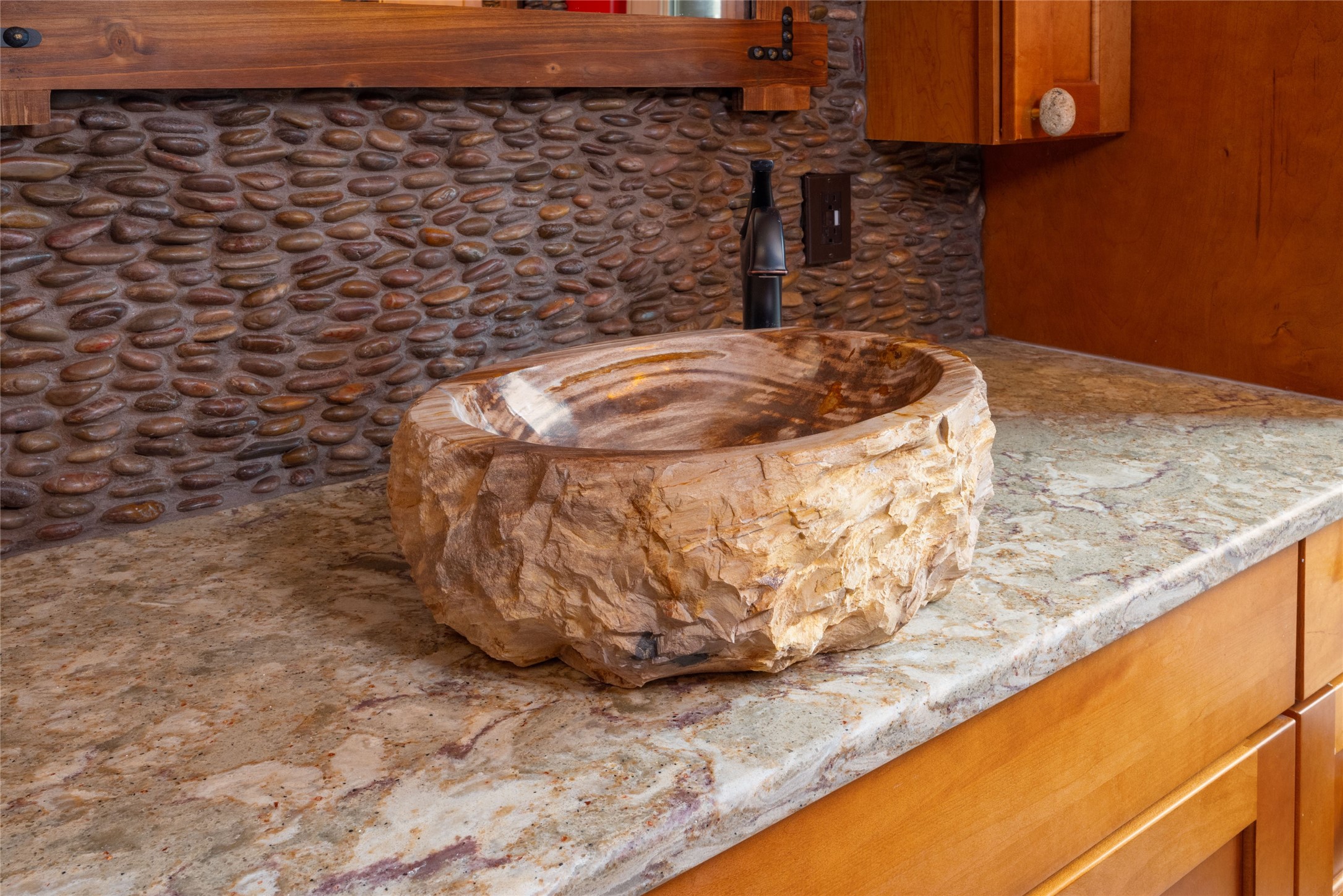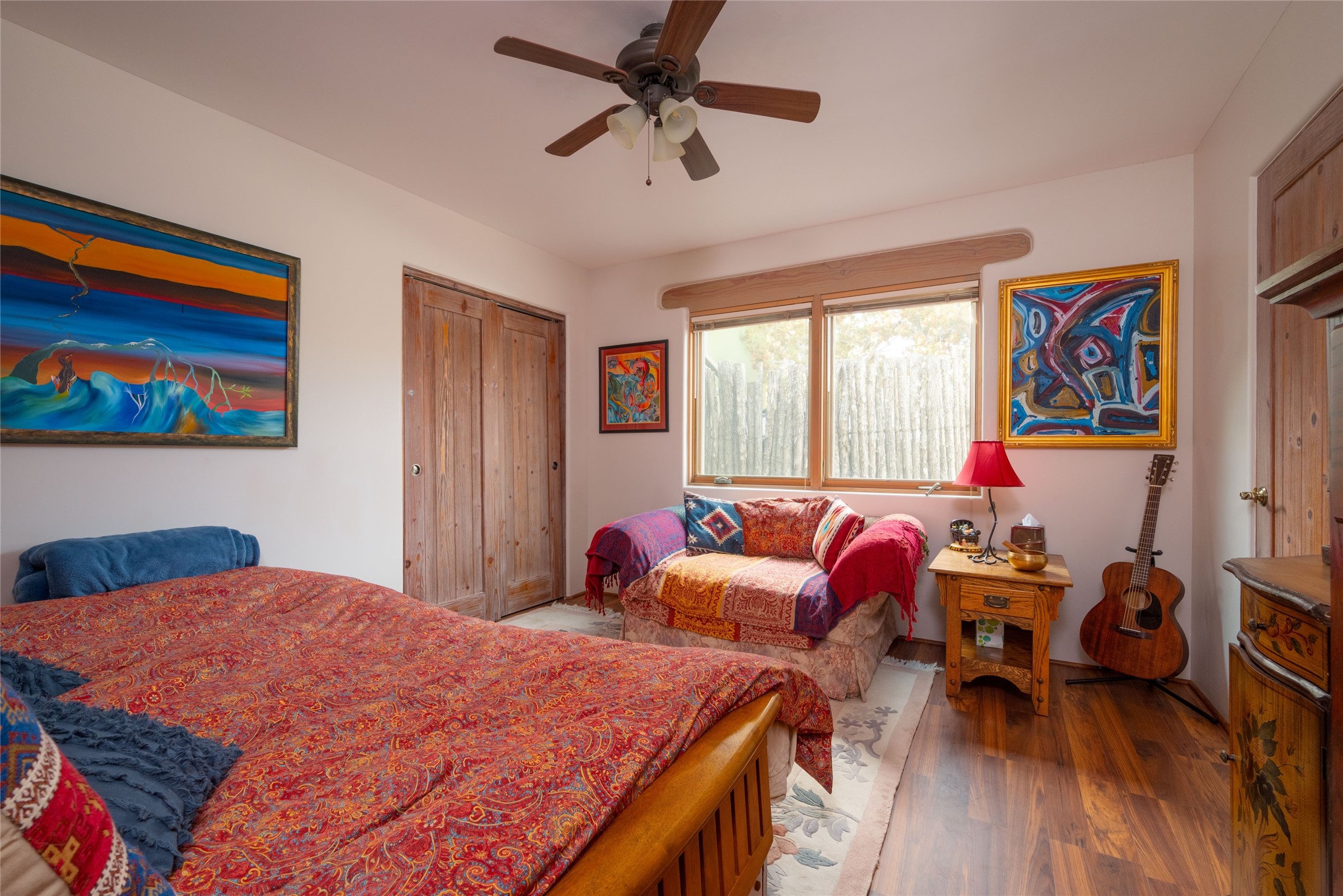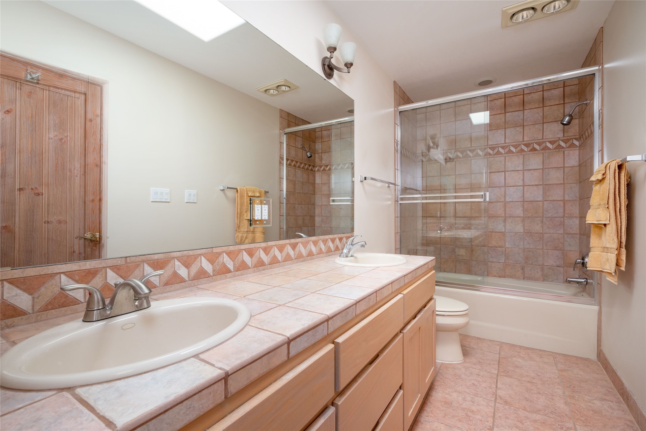 Nestled in the foothills on 1.83 acres with spectacular views, La Sierra is ideally situated between Dos Griegos and Eldorado. This stunning home offers a blend of traditional Southwest charm and modern updates, featuring 3 bedrooms, 3 baths, an attached guest quarters with kitchen, 2 offices, and an 868 sq. ft. heated garage. Constructed with Insulated Concrete Forms (ICF), the home boasts thick adobe-style finished walls, plastered interiors, vigas, and beams.The home has undergone an extensive remodel, including updates to the kitchen, primary bedroom and bath, guest bath, guest quarters, interior and exterior paint, landscaping, mechanical systems, and a new TPO roof. The kitchen features brand-new custom cabinets with pullouts, granite countertops, tile floors, a handmade island wood countertop with tile inlay, new appliances, updated lighting, and picturesque windows framing breathtaking views.The primary suite is elegantly updated with new hardware, granite countertops, stone sinks, faucets, lighting, paint, and tile flooring. It includes a separate bathtub, a walk-in shower, and a private door leading to the outdoor spa. Additionally, the suite offers two spacious walk-in closets. The guest bath has been enhanced with fresh paint, new tile, a vanity, sink, faucet, and mirror.The attached guest quarters provide a separate courtyard entrance and interior access for guest flexibility. This space includes a full bath, one bedroom, and a newly remodeled kitchen with updated cabinets, countertops, sink, appliances, wood and laminate flooring, and fresh interior paint.The home is equipped with a cutting-edge mechanical system, including boiler for radiant floor heating and exchange system for domestic hot water, powered by a 17.5 kW photovoltaic solar system, which is owned (not leased) and designed to achieve a "net-zero" PNM bill. The property is completely electric, including a stylish southwestern fireplace.The oversized 868 sq. ft. heated garage includes a designated workspace with power for a wood shop or hobby area, a private office with inside access, electric outlet ready for electric vehicle charging station, and a freezer.The thoughtfully designed xeriscaping features stone walls, lined driveways, gravel, and drip irrigation, all sustained by 9,000 gallons of rainwater harvesting tanks. The outdoor living spaces include a beautifully landscaped courtyard entry and a backyard patio with stunning views, retractable wind screens, and newly installed stone fountains and a stream.Conveniently located just minutes from La Tienda shopping center and less than a 10-minute drive on I-25 to Santa Fe, this remarkable home offers an unbeatable combination of elegance, sustainability, and convenience.