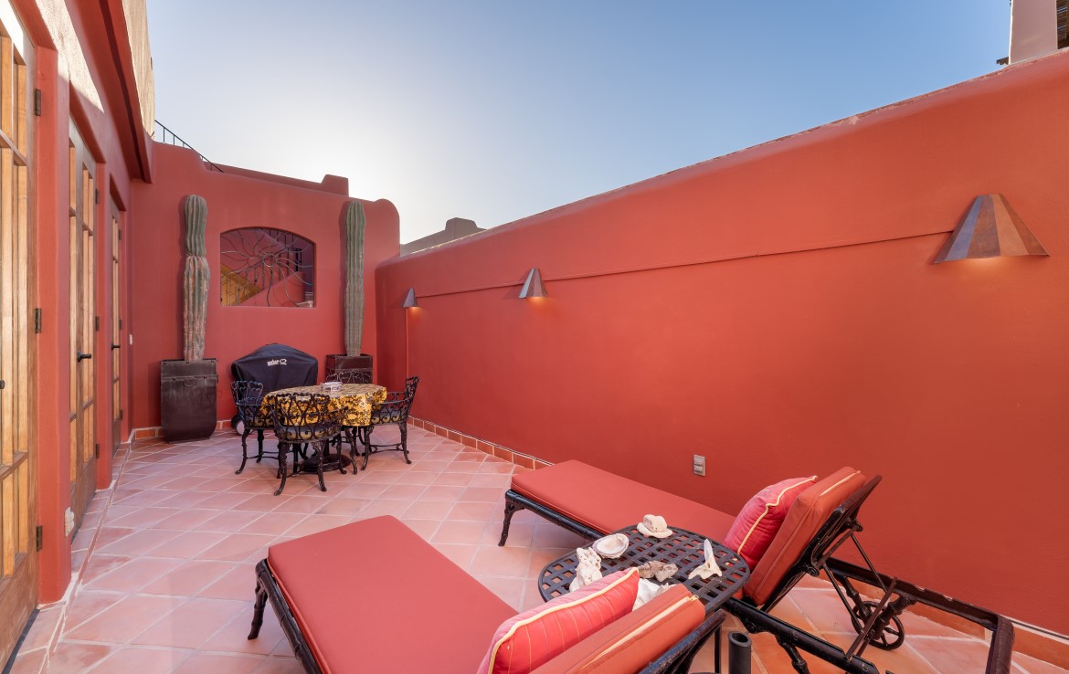 Viva Baja! Casa del Che is naturally light and bright, a rarity in the majority of Loreto Bay homes located in a Unesco World Heritage site on the Sea of Cortez. Watch the whales glide by, swim with the dolphins or play golf and pickle ball all day long!! The 4.100 sq. ft. residence is the largest floor plan for a non-custom home with three exterior living spaces and state-of-the-art Fiber Optic Internet which makes doing business a breeze! The dedicated office/flexroom could easily be converted into a third bedroom. No other Casa has all that this one has to offer. Right on the Paseo, in the primo Founders location, and only 6 homes from the beach it's near the largest Community spa/swimming pool. The 1,700 sq ft ground floor unit, with half bath, is zoned commercial/mixed use and is replete with a golf cart garage and golf cart. Or, need extra space for extended family? Then reinvent it into your own loft-style 3 bedroom, 2 1/2 bath private abode. Unobstructed Gigante Mountain views from the 900 sq. ft. top floor ginormous pergola covered terrace. There one finds the en-suite Primary Master and bath with a custom built armoire that includes a hidden refrigerator, coffee maker and microwave unit. No need to worry about parking because not only do you have a golf cart garage, but you also have a full car/truck garage directly across the Paseo in a brand new gated complex comprised of only 14 garages to store your vehicle, kayaks, bicycles and all your other toys! Casa del Che is tricked out to the max. Too good to be true? Get ready to live the good life!