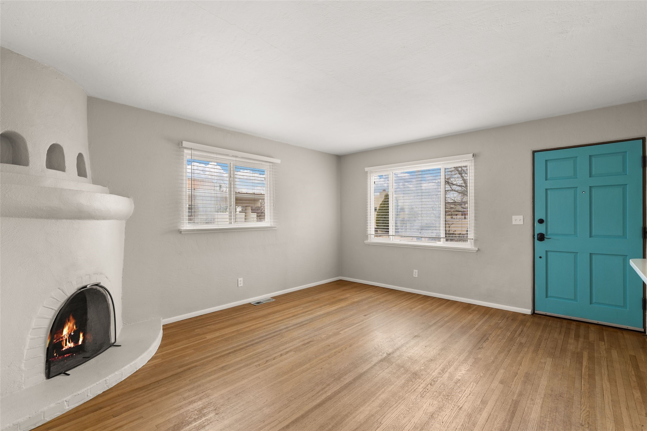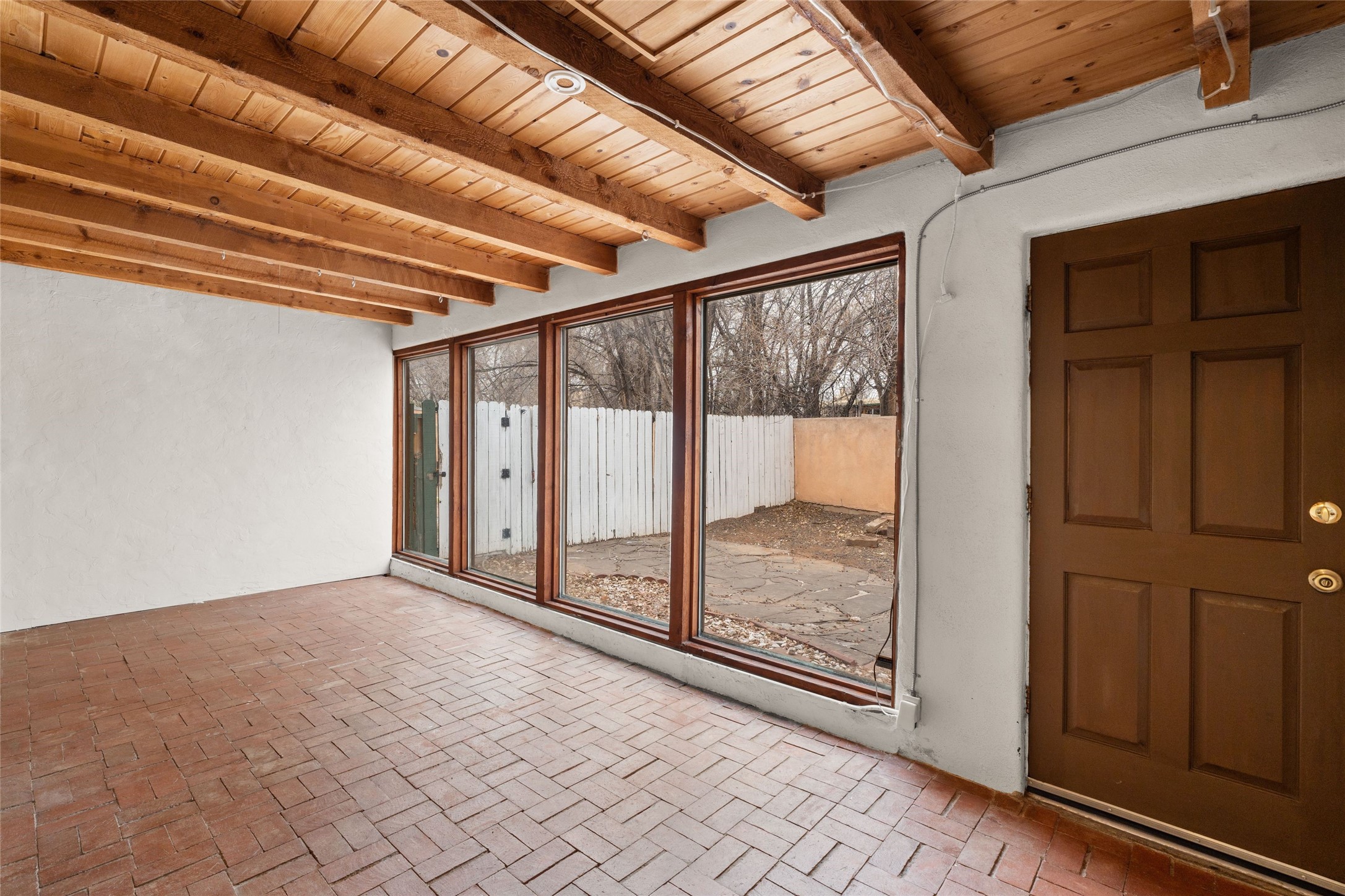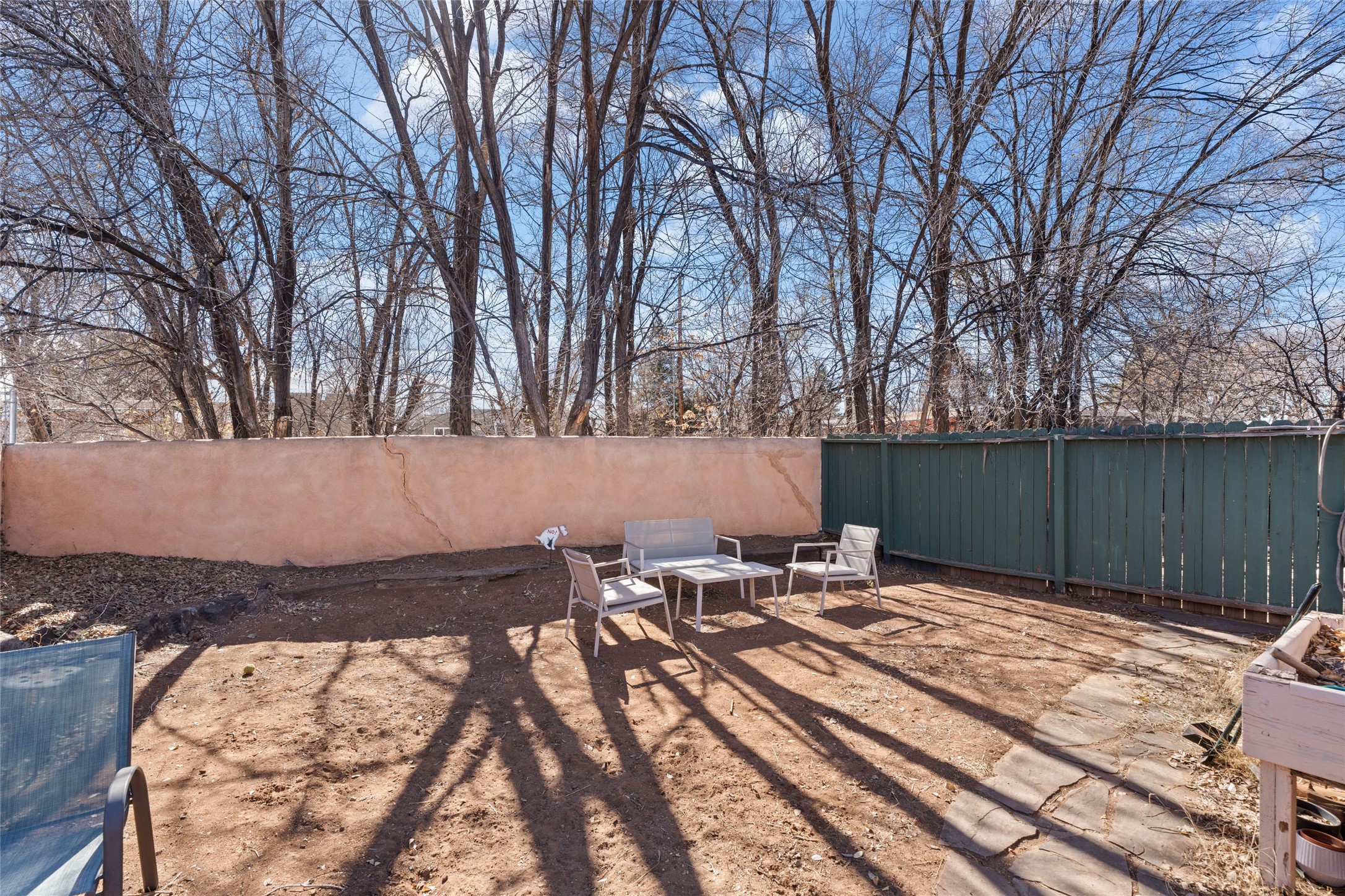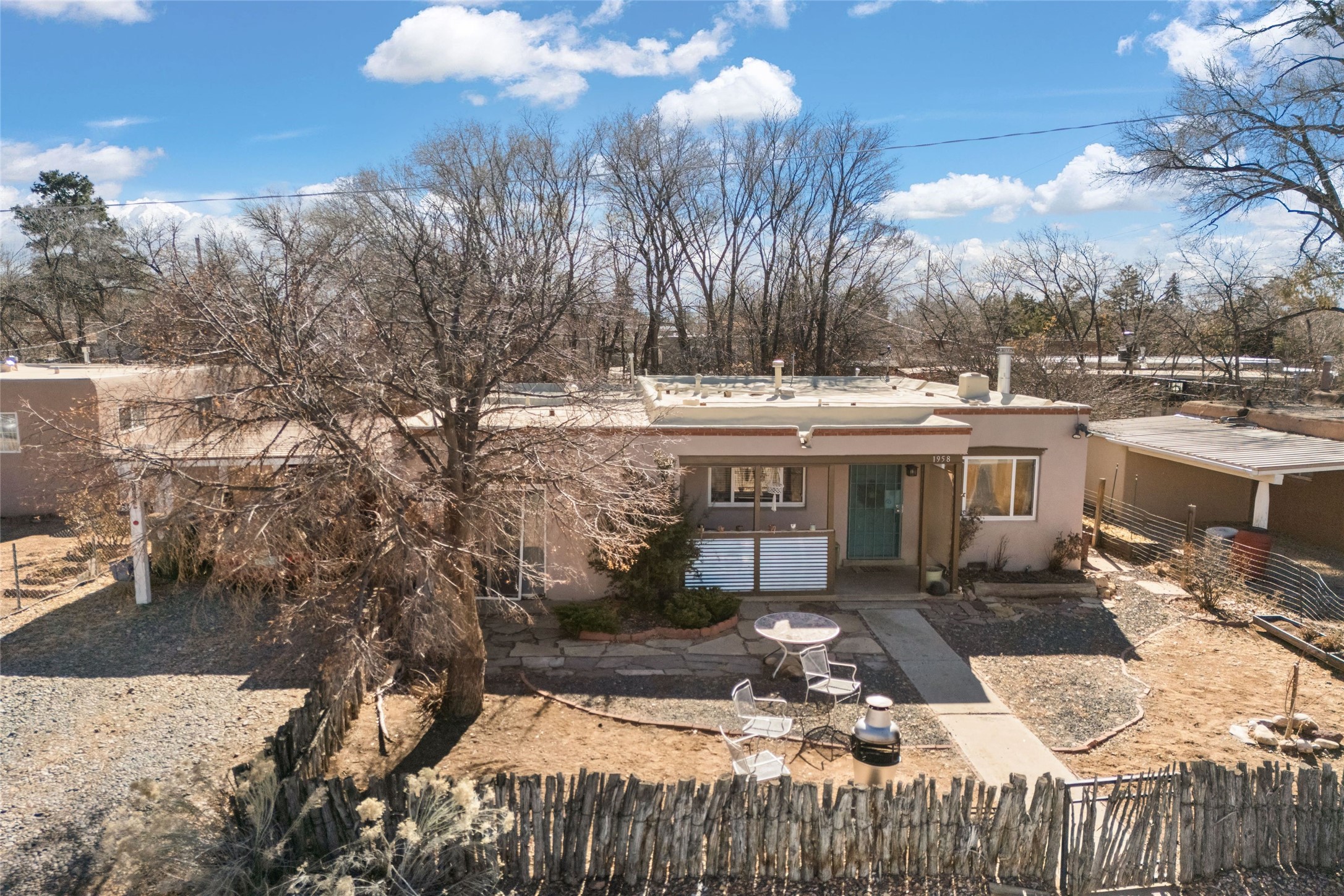 Experience the charm of Santa Fe living in this original Stamm home, perfectly situated on a quiet cul-de-sac in the Casa Alegre neighborhood. 3-bedroom, 1.5-bathroom main residence showcases the classic territorial style. Enjoy cozy evenings by the kiva fireplace and take advantage of the built-ins that provide both functionality and character. The combination of Saltillo tile and wood floors adds warmth and elegance throughout. The sunroom features a wall of large plate glass windows that flood the space with natural light, offering serene views of the expansive, walled, and fenced backyard. This versatile area is perfect for relaxation or as a bright workspace. Step outside to the covered portal, where you can enjoy the fresh air and lovely Santa Fe weather while relaxing with a book or entertaining friends. 1-bedroom, 1-bath guesthouse is included on the property, providing a perfect retreat for visitors or a private office space. The property comes with a 2-car carport for easy parking. Recent updates include new stucco completed in 2024 and two new forced heat central furnaces installed in 2020. Centrally located, offering easy access to Santa Fe's vibrant cultural scene, including art galleries, shops, and dining, all just moments away.