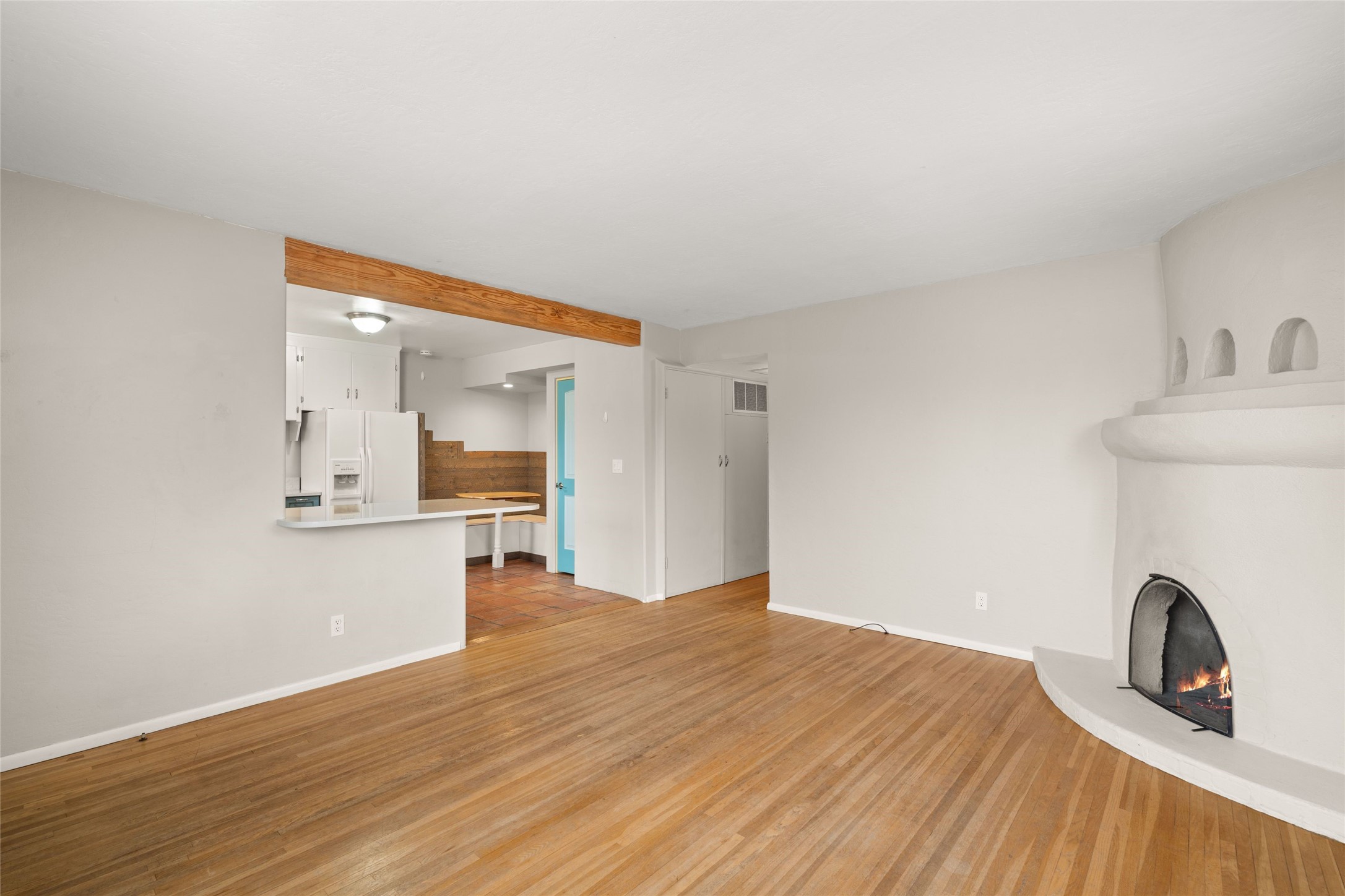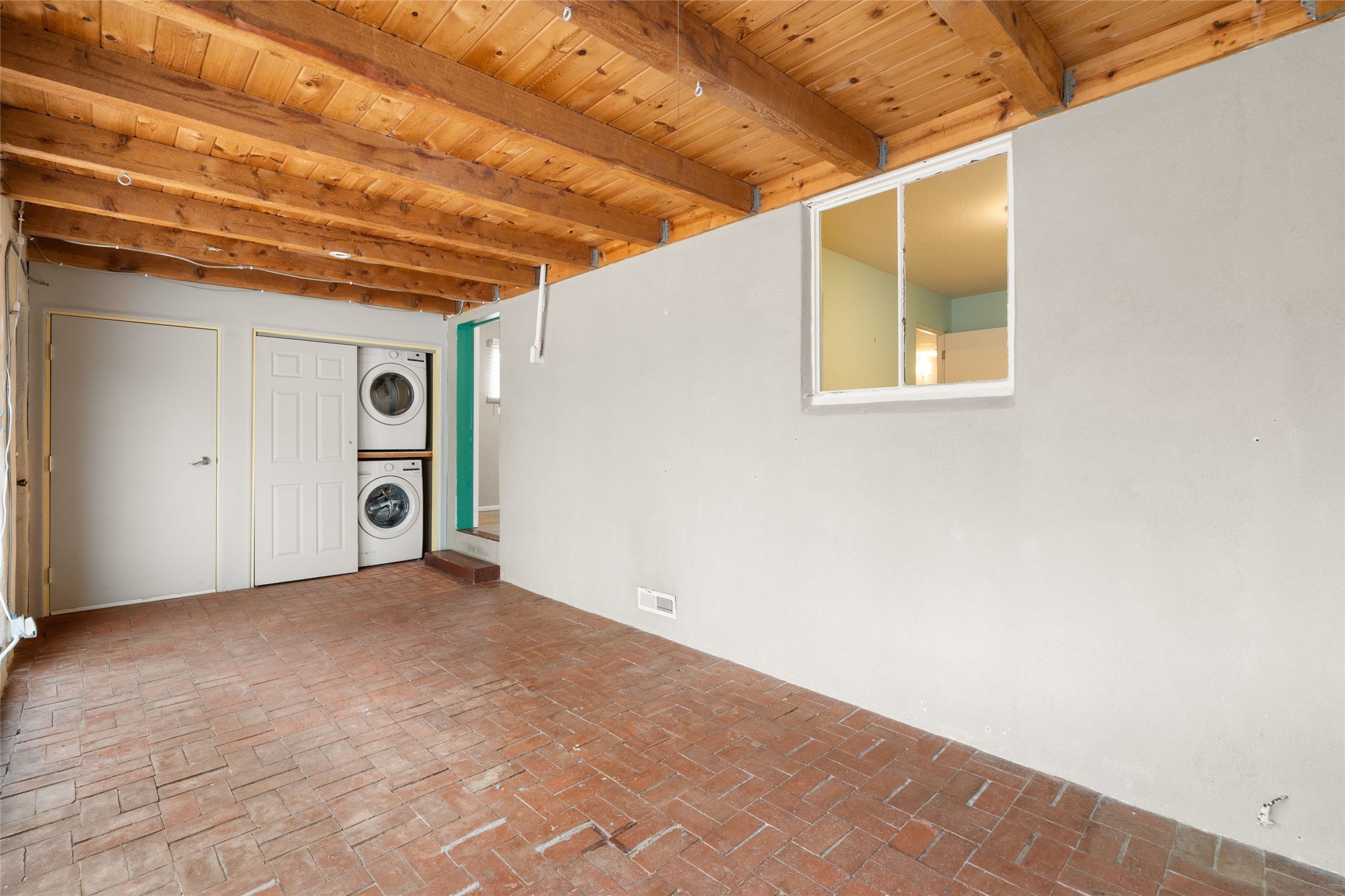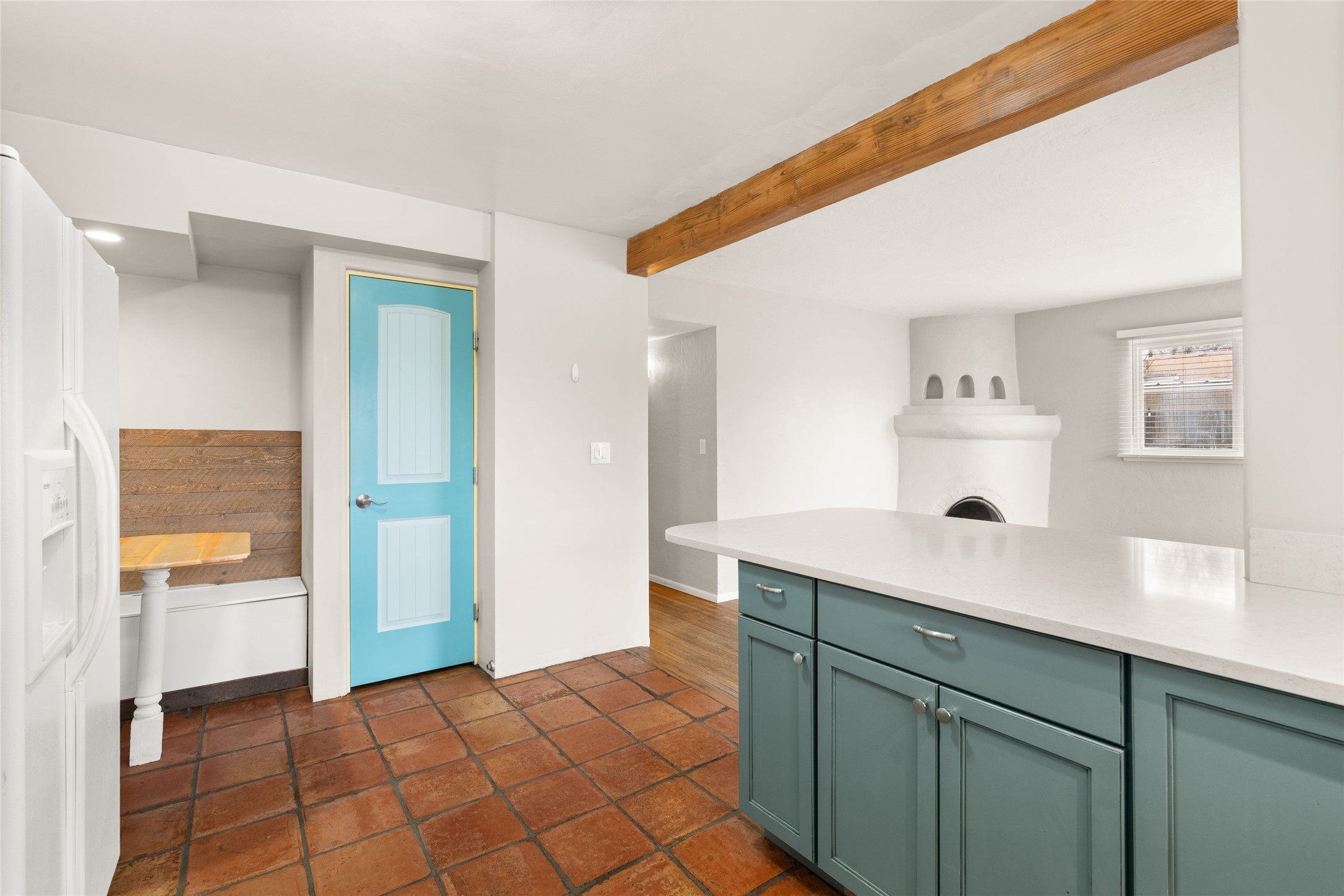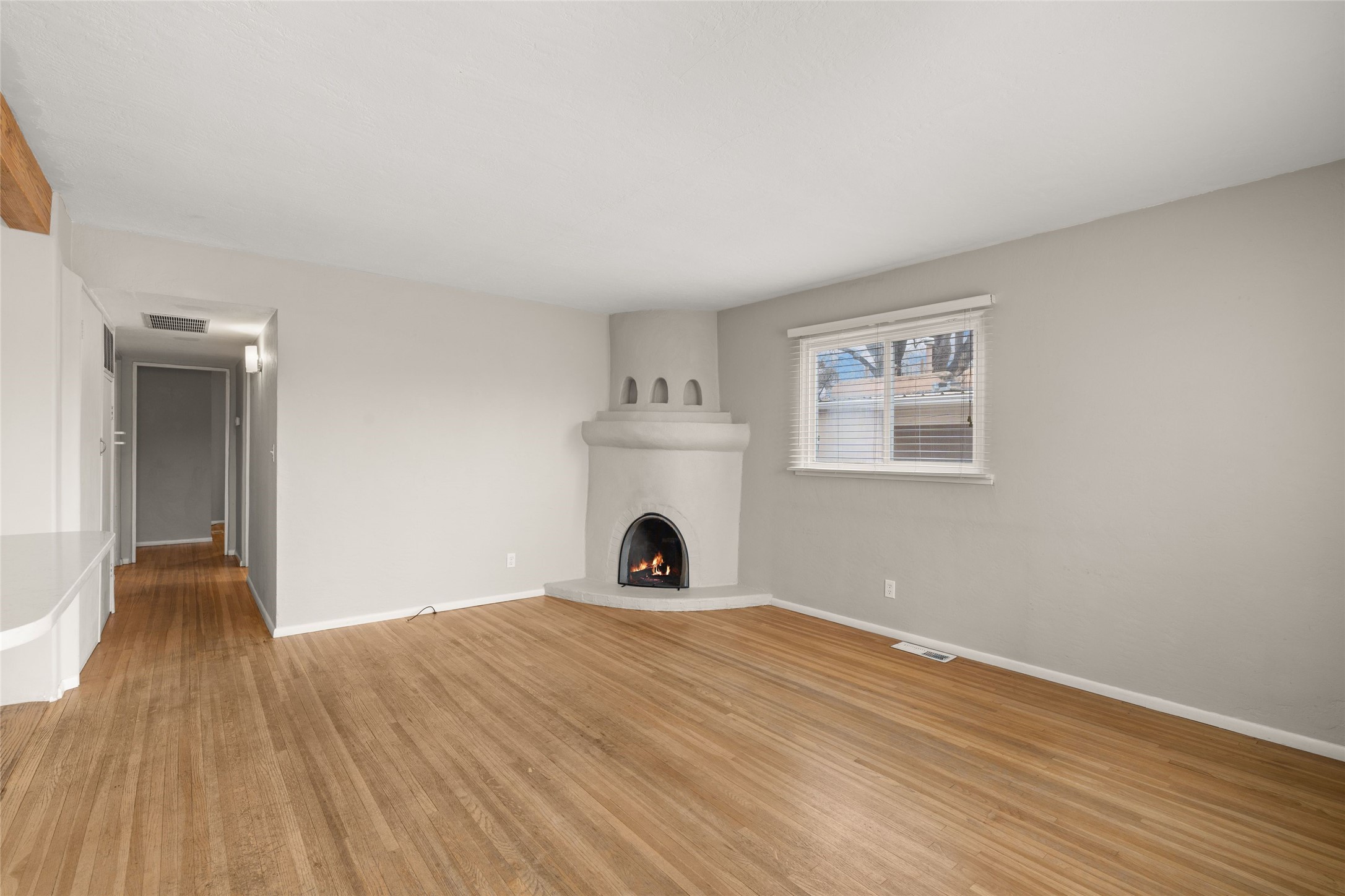 Experience the charm of Santa Fe living in this original Stamm home, perfectly situated on a quiet cul-de-sac in the Casa Alegre neighborhood. 3-bedroom, 1.5-bathroom main residence showcases the classic territorial style. Enjoy cozy evenings by the kiva fireplace and take advantage of the built-ins that provide both functionality and character. The combination of Saltillo tile and wood floors adds warmth and elegance throughout. The sunroom features a wall of large plate glass windows that flood the space with natural light, offering serene views of the expansive, walled, and fenced backyard. This versatile area is perfect for relaxation or as a bright workspace. Step outside to the covered portal, where you can enjoy the fresh air and lovely Santa Fe weather while relaxing with a book or entertaining friends. 1-bedroom, 1-bath guesthouse is included on the property, providing a perfect retreat for visitors or a private office space. The property comes with a 2-car carport for easy parking. Recent updates include new stucco completed in 2024 and two new forced heat central furnaces installed in 2020. Centrally located, offering easy access to Santa Fe's vibrant cultural scene, including art galleries, shops, and dining, all just moments away.