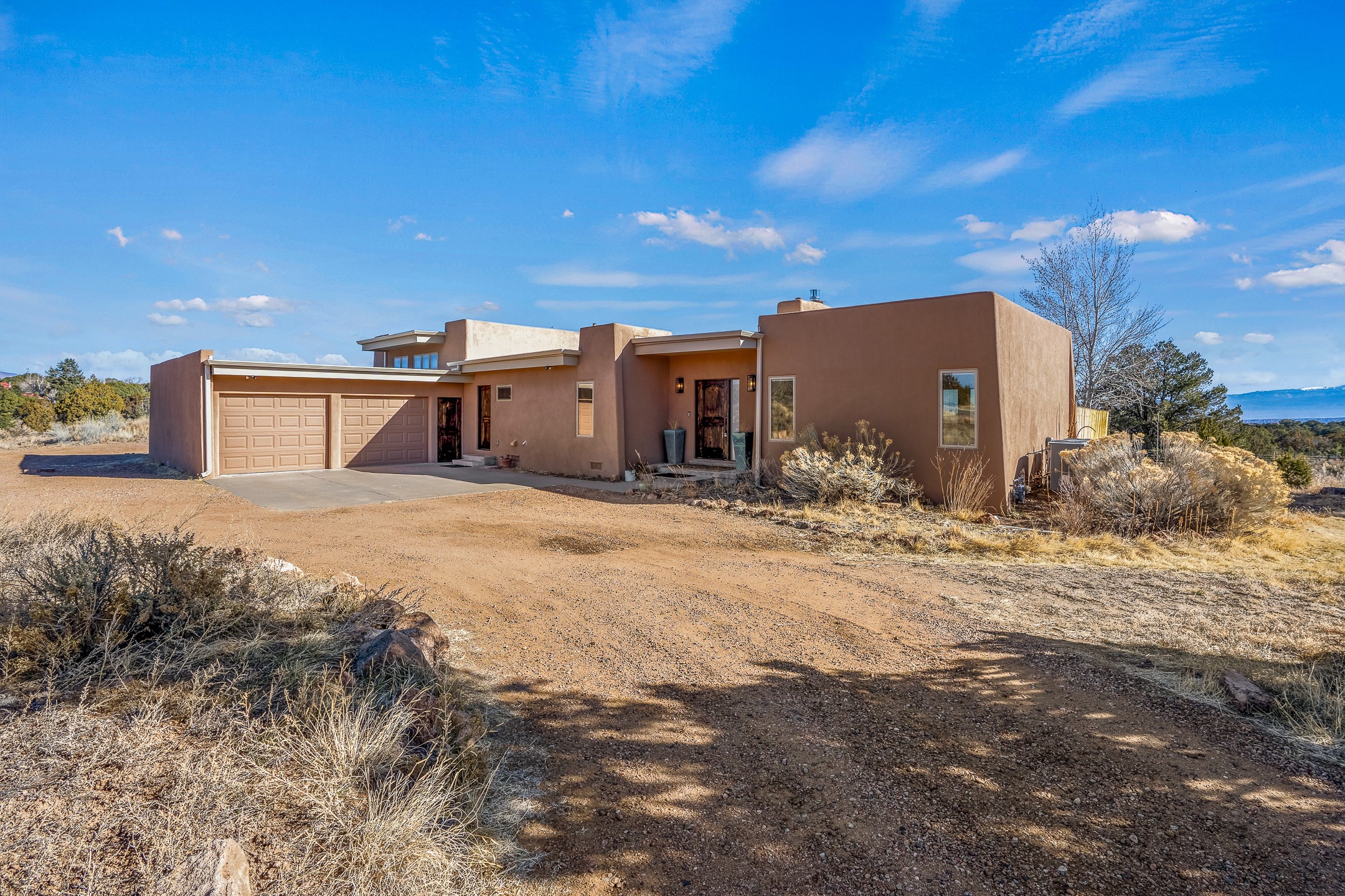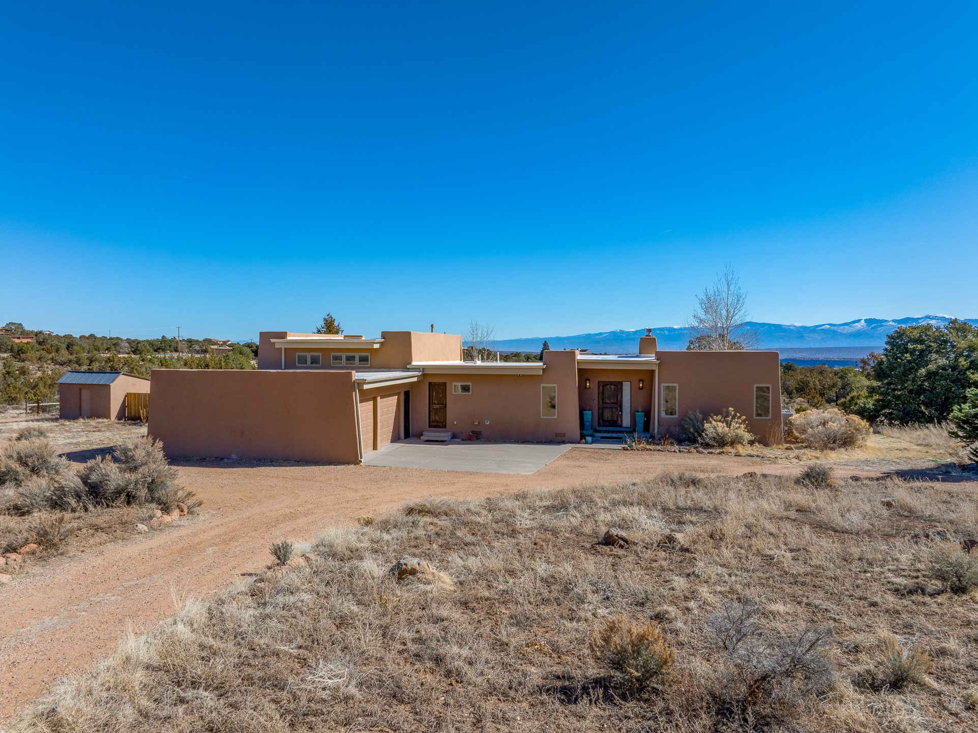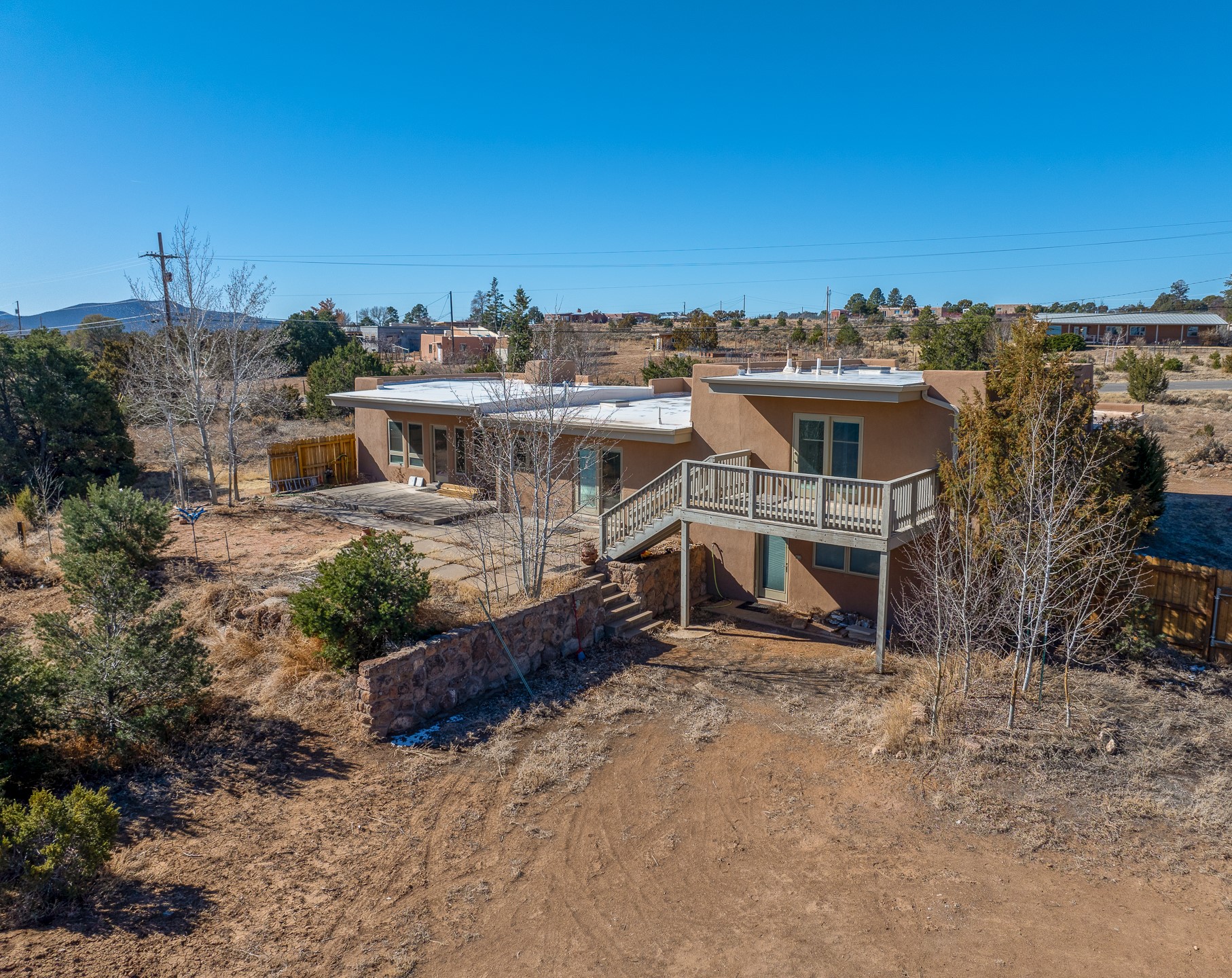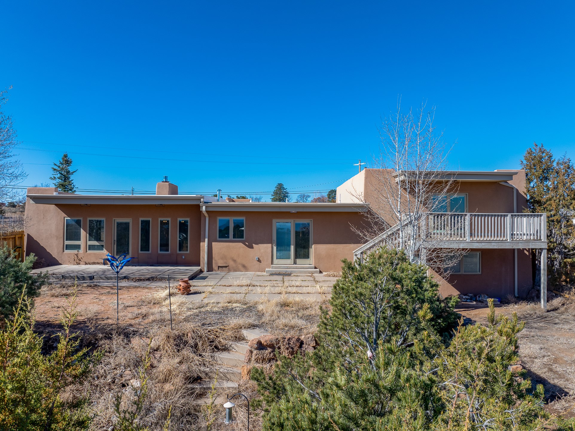 Nicely Updated Pajarito Acres Masterpiece, Stunning Views, 4 Bedrooms + Office, Chef's Kitchen, Multiple Living Areas, 2.64 Acres, Horses Allowed, Guest Houses Allowed, and More! Welcome to 121 Monte Rey Dr N! This home has been nicely updated to provide you with move-in ready luxury and views to match. The house is positioned to take advantage of views of the Sangre de Cristos to the east as you'll witness breathtaking, expansive sunrises and sunsets while also watching the seasonal north-south journey of the sun against the mountain backdrop. Upon entering the home, you'll see large, east-facing windows lining the dining room and living room, providing great natural morning sunlight. The living room includes a feature fireplace for additional warmth and ambiance in the winter months. The kitchen includes stainless steel appliances, gas cooking, a vent hood, granite countertops, tile backsplash, undermount sink, a large peninsula with barstool seating and pendant lighting, and gorgeous wood cabinetry with nickel bar pulls. A second dining space for informal gatherings adjoins the kitchen, with patio access in between the two for indoor/outdoor entertaining. An office, powder room, and laundry room complete the main floor. Upstairs, you'll find the main bedroom wing, consisting of a full guest bathroom, two guest bedrooms, and the primary suite. The large primary suite includes double closets with organizers, a walk-out deck, and a spa-like, high-end bathroom with dual vanities, a soaking tub, and a beautiful shower with a glass enclosure, herringbone accent tiles, and multiple showerheads. Downstairs, you will find an additional guest bedroom and an additional large living space that opens onto the back patio. An additional three-quarter bathroom is conveniently located here as well, allowing for a private guest quarters on the lower level. Many possibilities abound for the 2.64 acre parcel, as guest houses, equestrian facilities, and outbuildings are allowed. The seller plans to review offers on Monday, March 24, so schedule your showing today before this opportunity is gone!