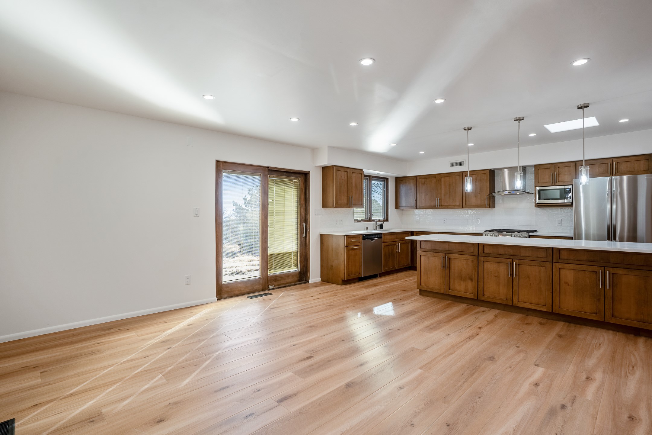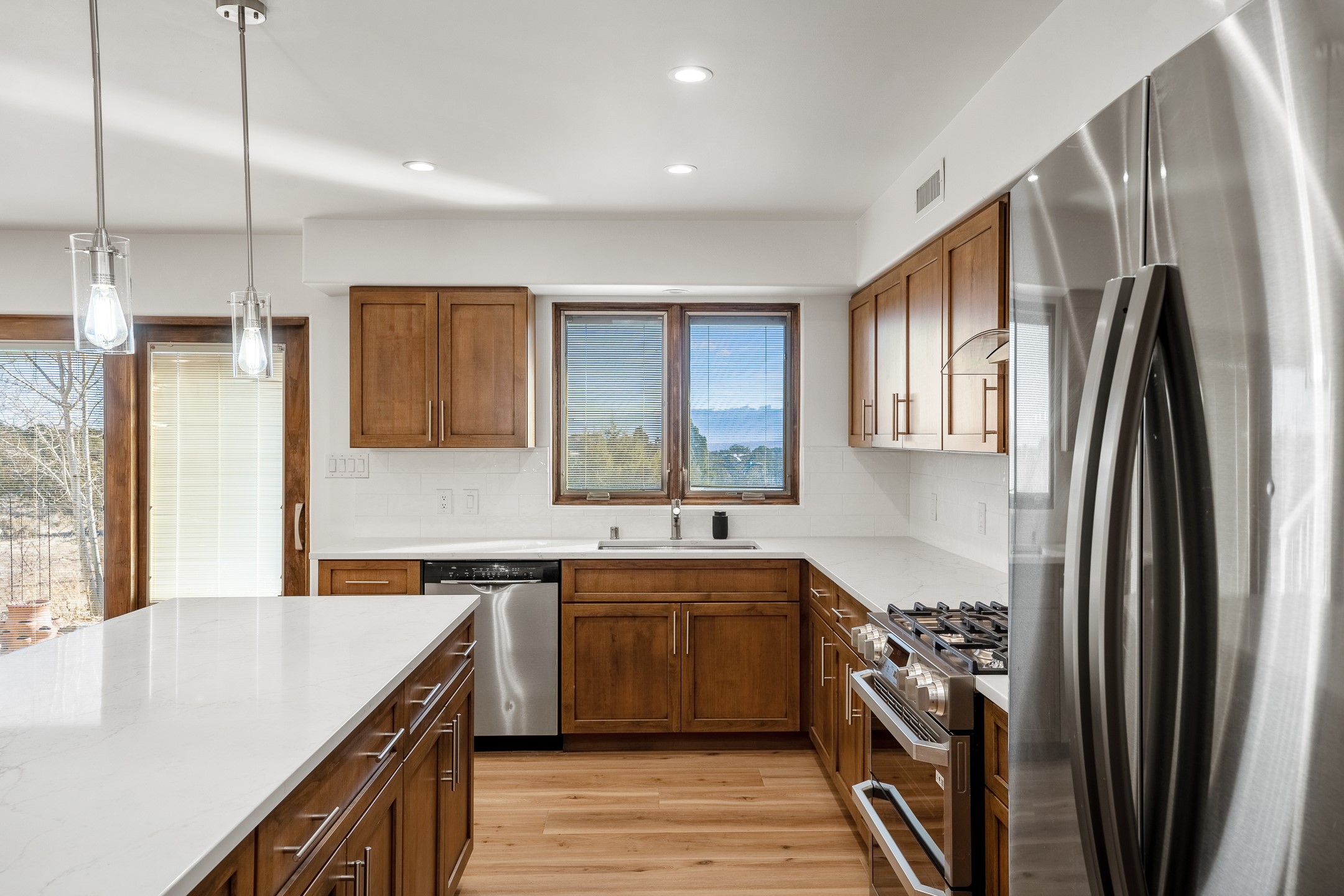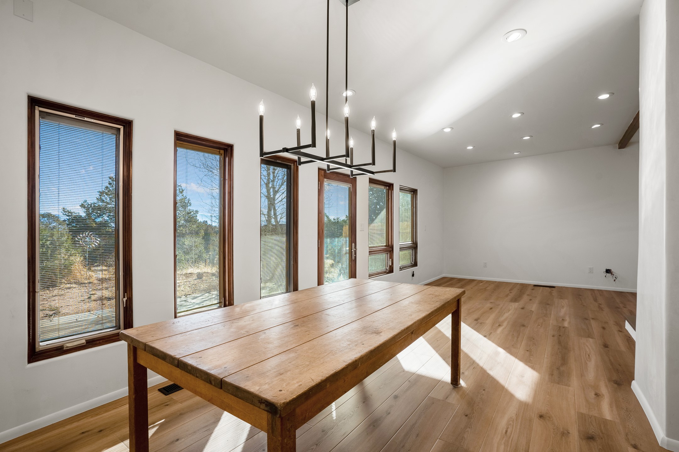 Nicely Updated Pajarito Acres Masterpiece, Stunning Views, 4 Bedrooms + Office, Chef's Kitchen, Multiple Living Areas, 2.64 Acres, Horses Allowed, Guest Houses Allowed, and More! Welcome to 121 Monte Rey Dr N! This home has been nicely updated to provide you with move-in ready luxury and views to match. The house is positioned to take advantage of views of the Sangre de Cristos to the east as you'll witness breathtaking, expansive sunrises and sunsets while also watching the seasonal north-south journey of the sun against the mountain backdrop. Upon entering the home, you'll see large, east-facing windows lining the dining room and living room, providing great natural morning sunlight. The living room includes a feature fireplace for additional warmth and ambiance in the winter months. The kitchen includes stainless steel appliances, gas cooking, a vent hood, granite countertops, tile backsplash, undermount sink, a large peninsula with barstool seating and pendant lighting, and gorgeous wood cabinetry with nickel bar pulls. A second dining space for informal gatherings adjoins the kitchen, with patio access in between the two for indoor/outdoor entertaining. An office, powder room, and laundry room complete the main floor. Upstairs, you'll find the main bedroom wing, consisting of a full guest bathroom, two guest bedrooms, and the primary suite. The large primary suite includes double closets with organizers, a walk-out deck, and a spa-like, high-end bathroom with dual vanities, a soaking tub, and a beautiful shower with a glass enclosure, herringbone accent tiles, and multiple showerheads. Downstairs, you will find an additional guest bedroom and an additional large living space that opens onto the back patio. An additional three-quarter bathroom is conveniently located here as well, allowing for a private guest quarters on the lower level. Many possibilities abound for the 2.64 acre parcel, as guest houses, equestrian facilities, and outbuildings are allowed. The seller plans to review offers on Monday, March 24, so schedule your showing today before this opportunity is gone!