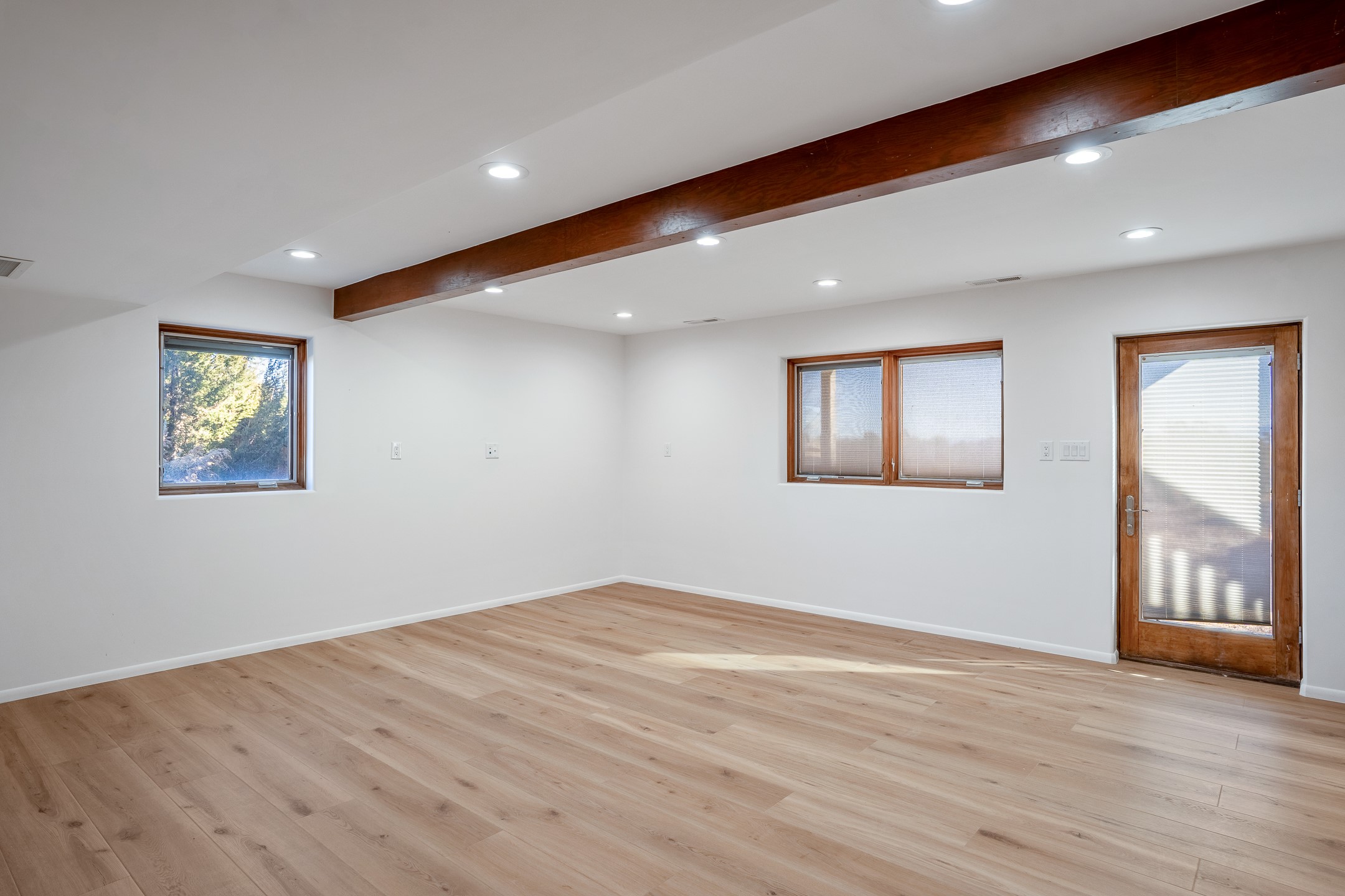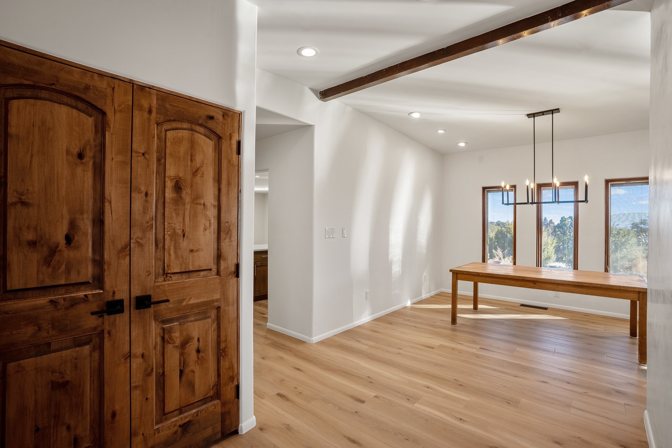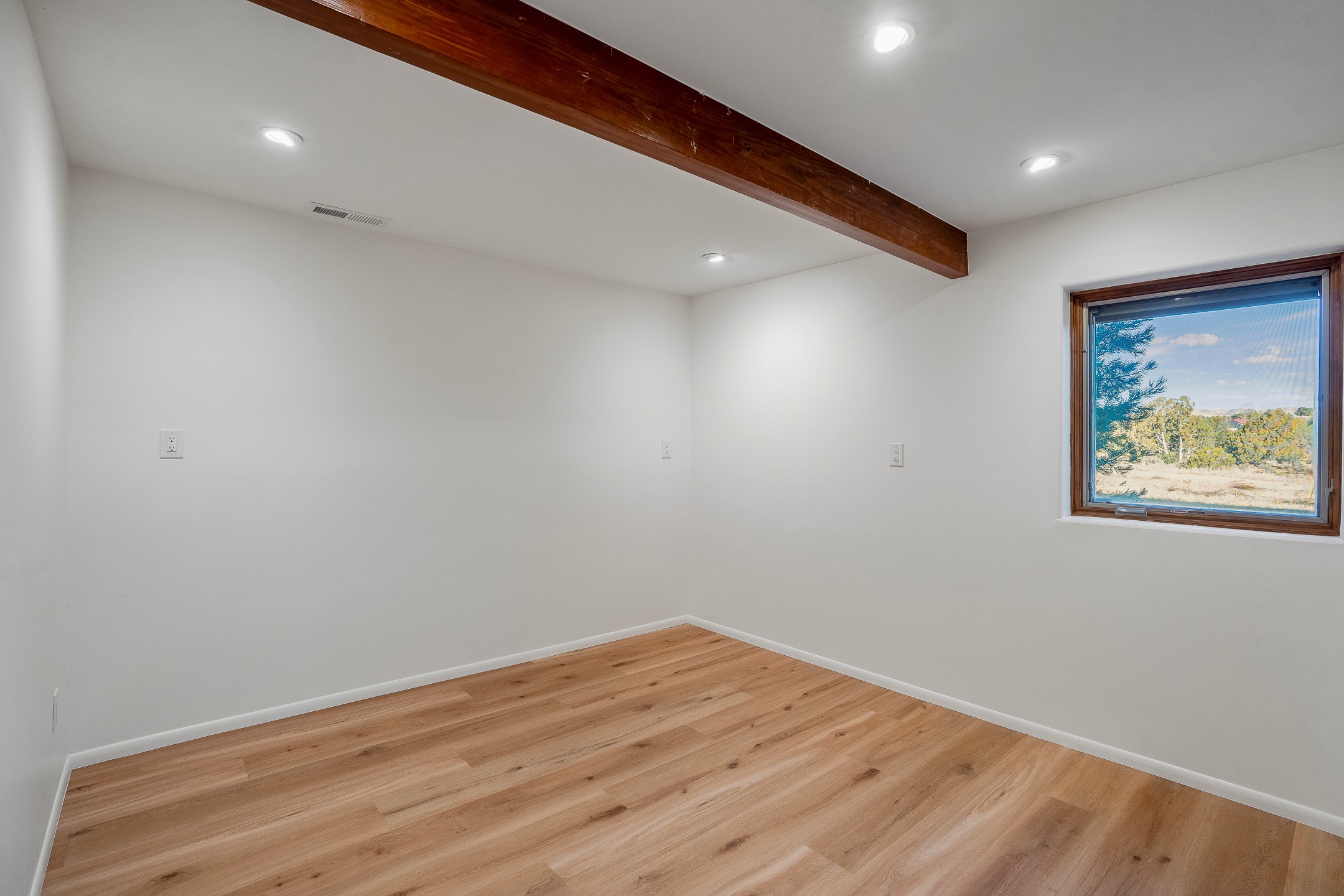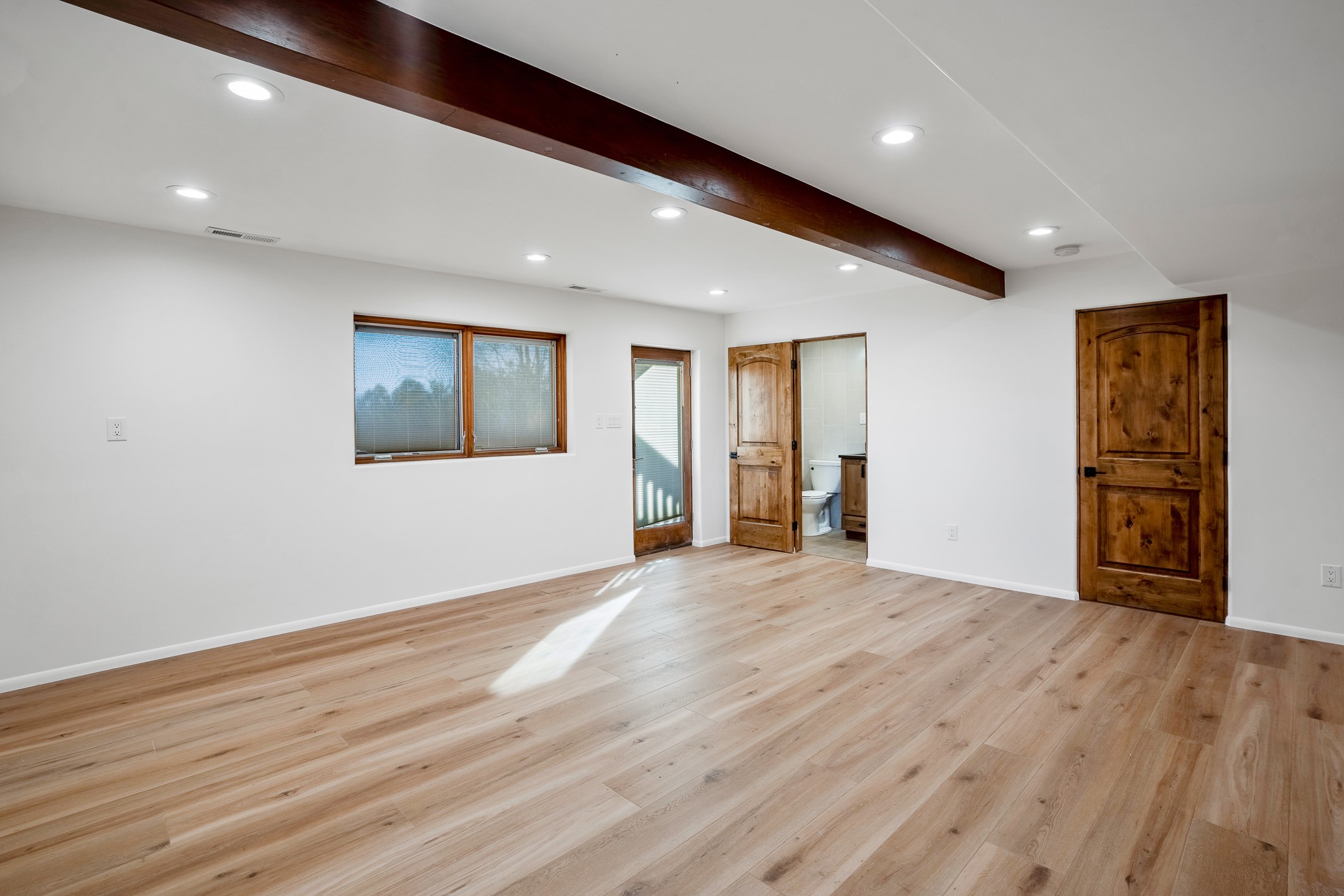 Nicely Updated Pajarito Acres Masterpiece, Stunning Views, 4 Bedrooms + Office, Chef's Kitchen, Multiple Living Areas, 2.64 Acres, Horses Allowed, Guest Houses Allowed, and More! Welcome to 121 Monte Rey Dr N! This home has been nicely updated to provide you with move-in ready luxury and views to match. The house is positioned to take advantage of views of the Sangre de Cristos to the east as you'll witness breathtaking, expansive sunrises and sunsets while also watching the seasonal north-south journey of the sun against the mountain backdrop. Upon entering the home, you'll see large, east-facing windows lining the dining room and living room, providing great natural morning sunlight. The living room includes a feature fireplace for additional warmth and ambiance in the winter months. The kitchen includes stainless steel appliances, gas cooking, a vent hood, granite countertops, tile backsplash, undermount sink, a large peninsula with barstool seating and pendant lighting, and gorgeous wood cabinetry with nickel bar pulls. A second dining space for informal gatherings adjoins the kitchen, with patio access in between the two for indoor/outdoor entertaining. An office, powder room, and laundry room complete the main floor. Upstairs, you'll find the main bedroom wing, consisting of a full guest bathroom, two guest bedrooms, and the primary suite. The large primary suite includes double closets with organizers, a walk-out deck, and a spa-like, high-end bathroom with dual vanities, a soaking tub, and a beautiful shower with a glass enclosure, herringbone accent tiles, and multiple showerheads. Downstairs, you will find an additional guest bedroom and an additional large living space that opens onto the back patio. An additional three-quarter bathroom is conveniently located here as well, allowing for a private guest quarters on the lower level. Many possibilities abound for the 2.64 acre parcel, as guest houses, equestrian facilities, and outbuildings are allowed. The seller plans to review offers on Monday, March 24, so schedule your showing today before this opportunity is gone!
