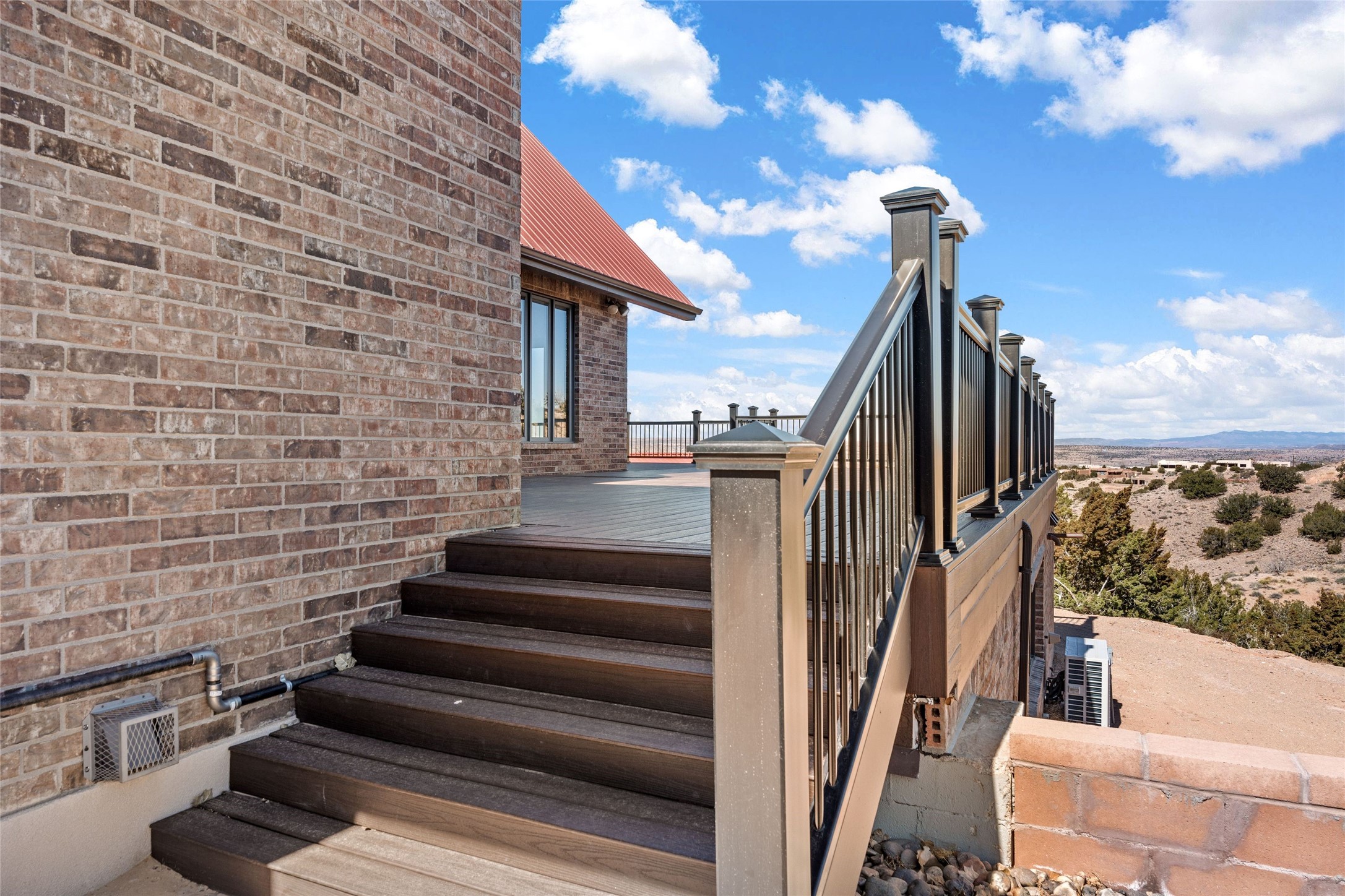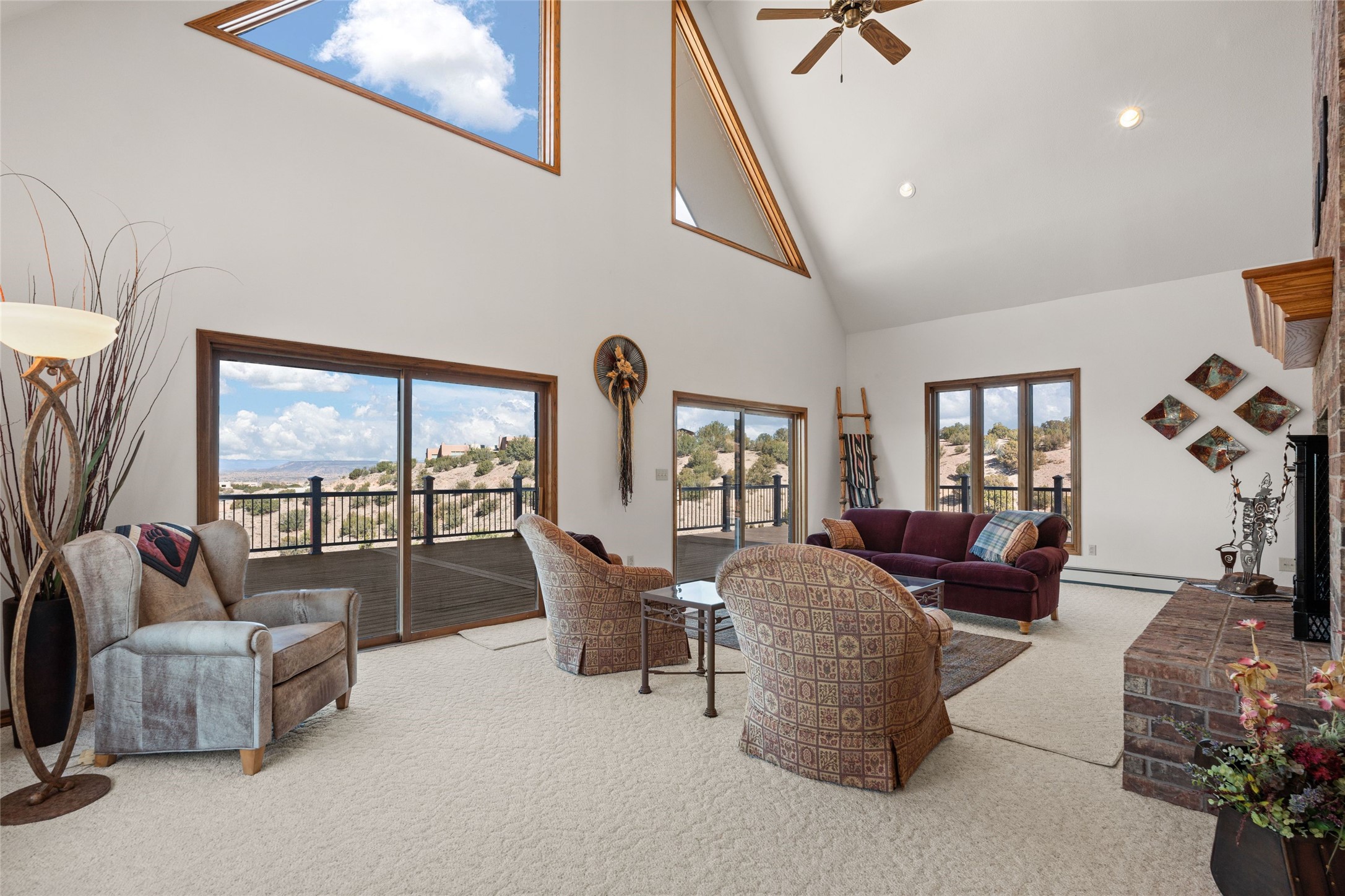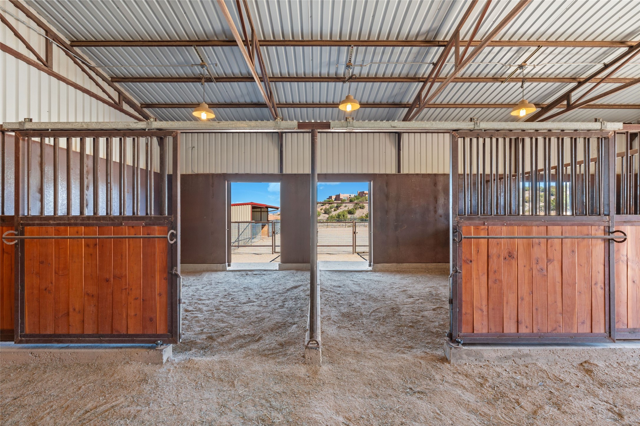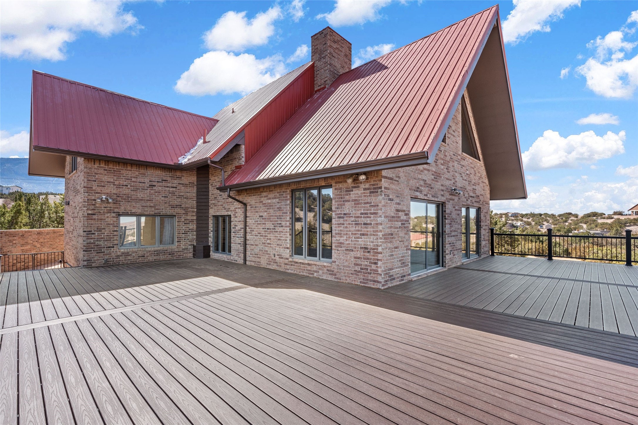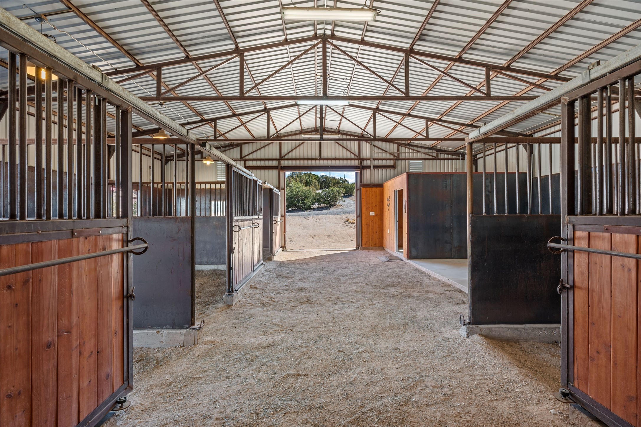 Fabulous family compound and horse property! 4.98 acres of space, views, and a lifestyle that invites multi family living, excellent horse facilities, two separate garages, one with heat/cool, room for lift, other with heat/cool plus bathroom. Must see this well maintained Northern NM brick beauty. Main house 3952 sf plus the 1 BR connected guest house is 1304 sf., total heated is 5256 sf. Main level of home features a living room, formal dining, on suite BR, spacious kitchen, nook for informal dining, half bath, and over 1300sf of open trex deck! Upstairs features primary suite, 3rd BR, loft which is open to main level. Lower level offers family room, 4th BR or office, bath, laundry and a 1304 sf attached 1 BR guest house included in the 5256 sf w/full kitchen, living, plus a 18 X 22 BR w/washer dryer hook ups, and separate entry also. Refrigerated Air, CFA, HWB, mini splits. Well designed barn 4 stall barn, center isle, hay storage, tack, steel lined, runs off 3 stalls, opens to an arena w/shelter. Easy access to National Forest trails.