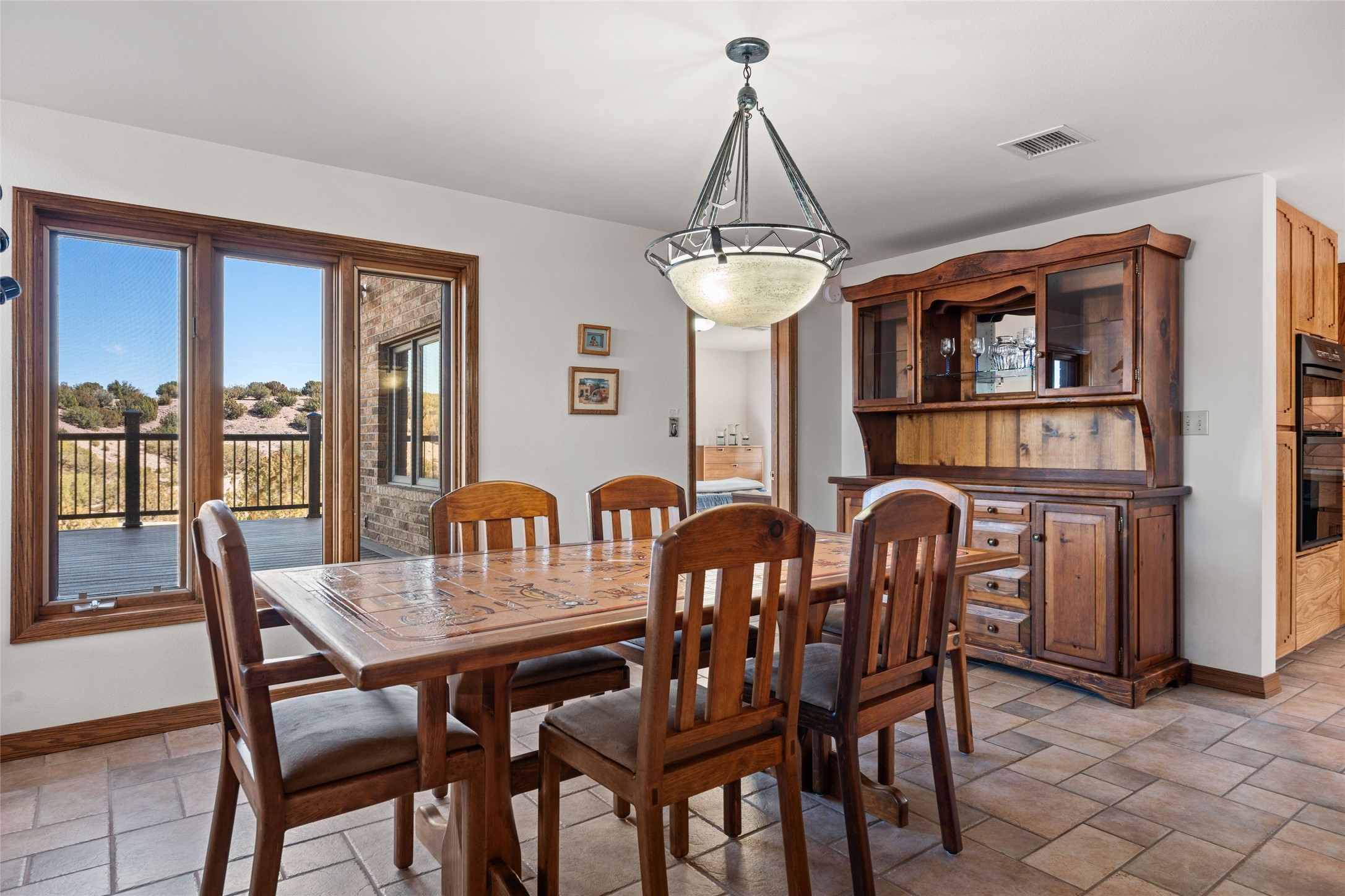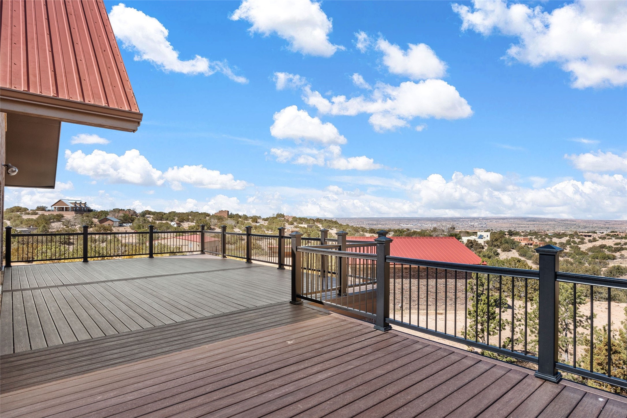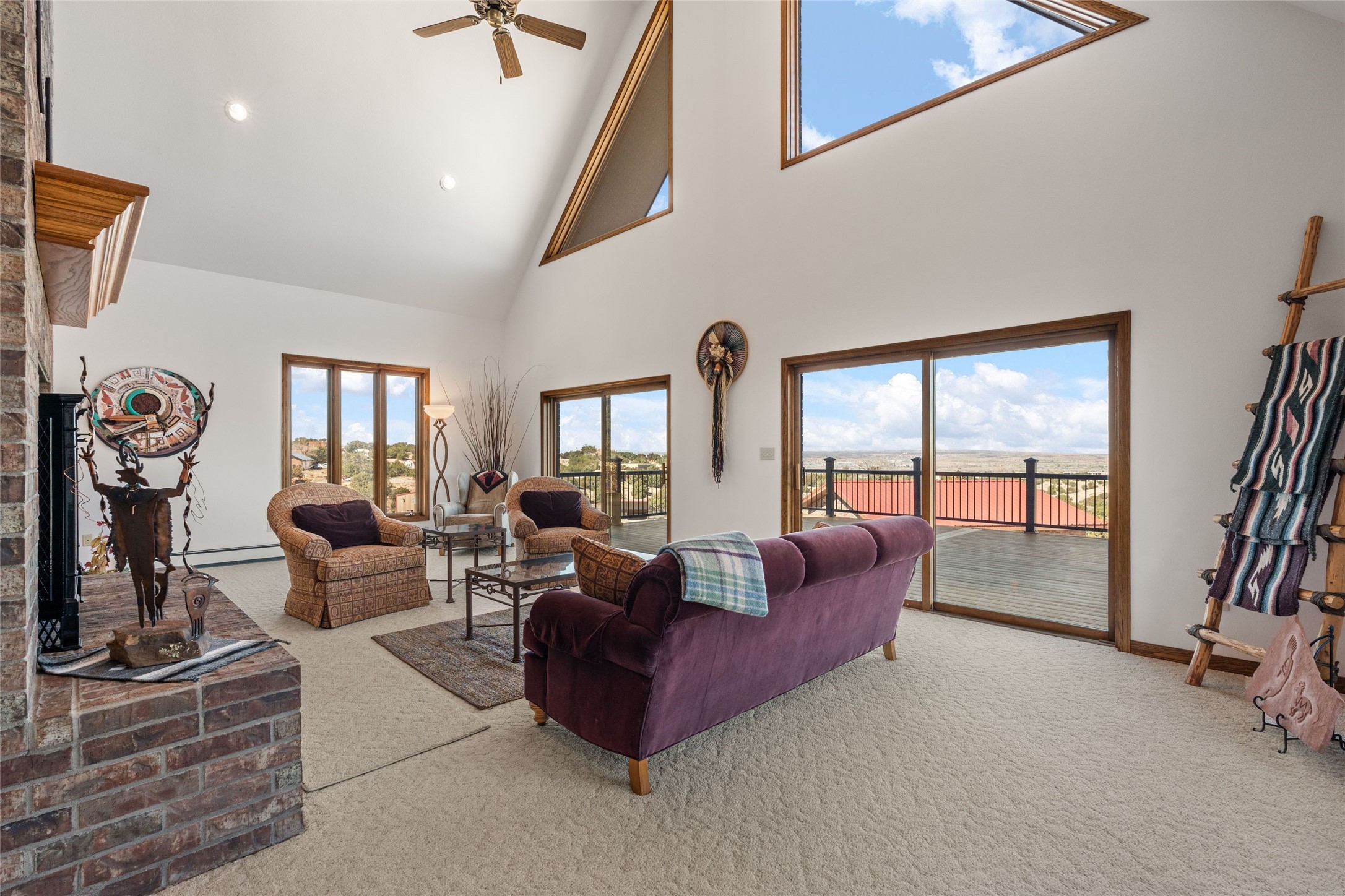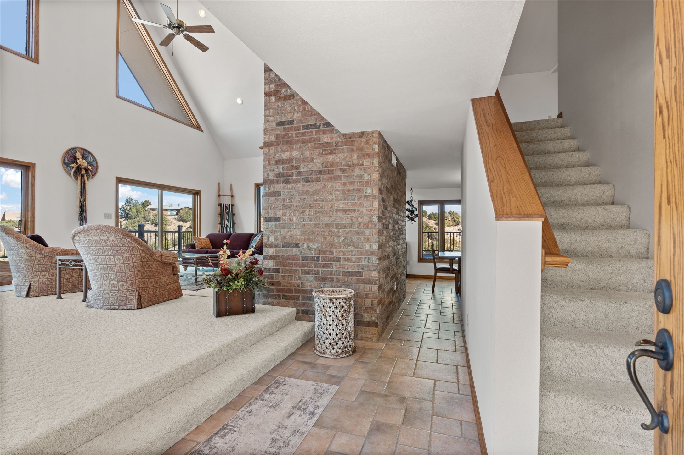 Fabulous family compound and horse property! 4.98 acres of space, views, and a lifestyle that invites multi family living, excellent horse facilities, two separate garages, one with heat/cool, room for lift, other with heat/cool plus bathroom. Must see this well maintained Northern NM brick beauty. Main house 3952 sf plus the 1 BR connected guest house is 1304 sf., total heated is 5256 sf. Main level of home features a living room, formal dining, on suite BR, spacious kitchen, nook for informal dining, half bath, and over 1300sf of open trex deck! Upstairs features primary suite, 3rd BR, loft which is open to main level. Lower level offers family room, 4th BR or office, bath, laundry and a 1304 sf attached 1 BR guest house included in the 5256 sf w/full kitchen, living, plus a 18 X 22 BR w/washer dryer hook ups, and separate entry also. Refrigerated Air, CFA, HWB, mini splits. Well designed barn 4 stall barn, center isle, hay storage, tack, steel lined, runs off 3 stalls, opens to an arena w/shelter. Easy access to National Forest trails.