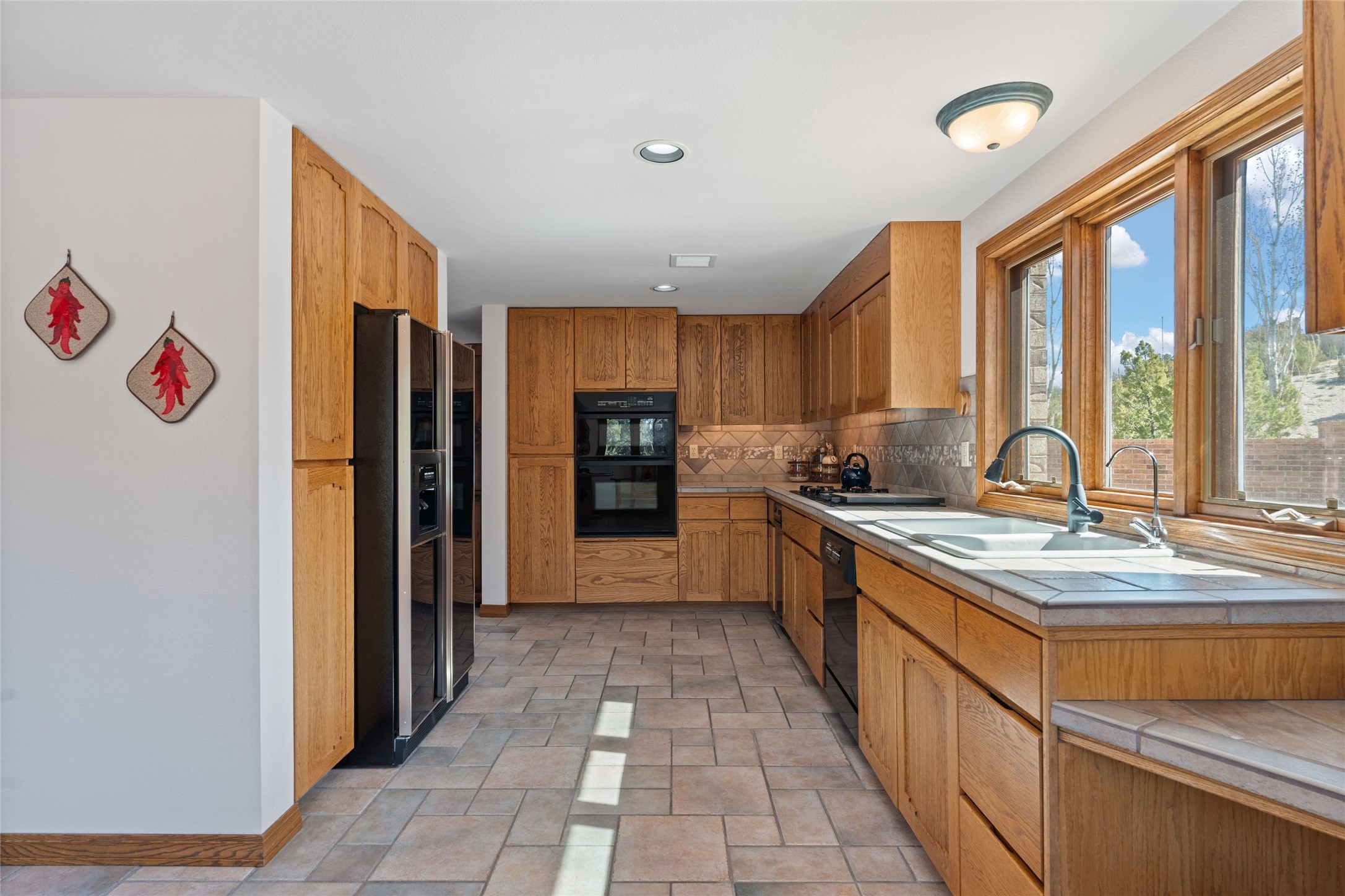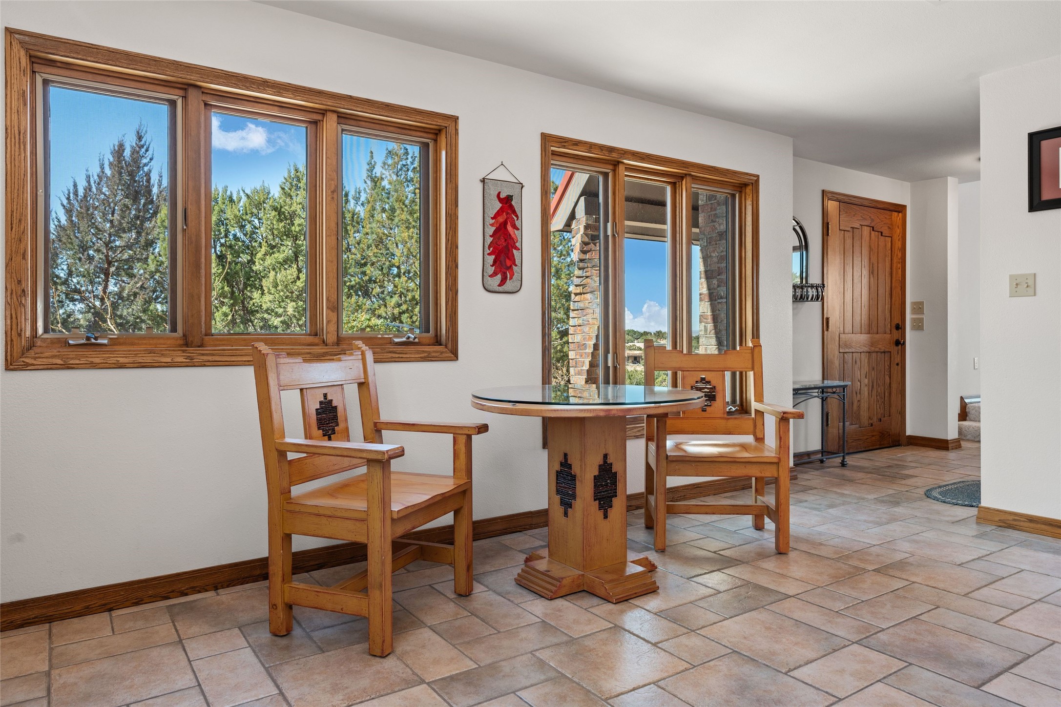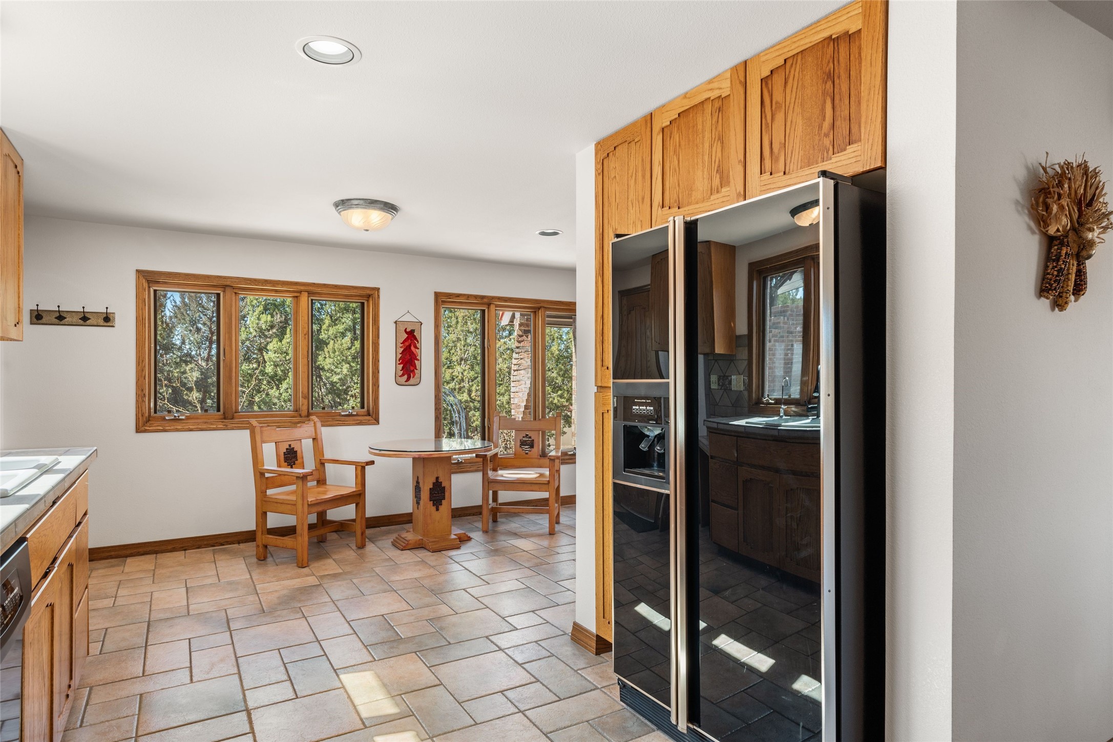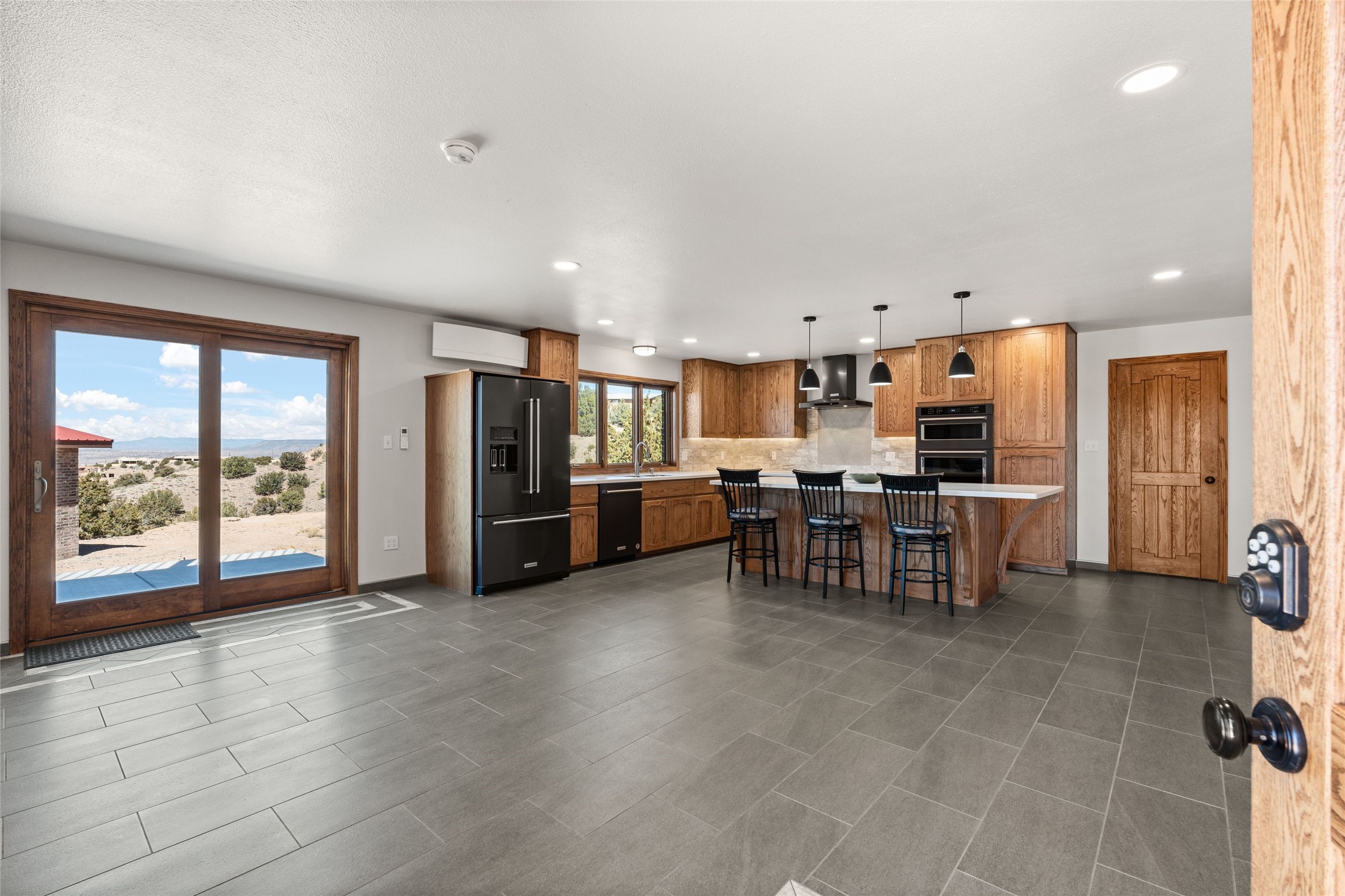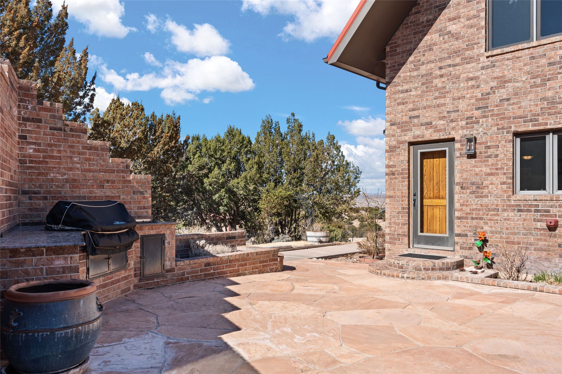 Fabulous family compound and horse property! 4.98 acres of space, views, and a lifestyle that invites multi family living, excellent horse facilities, two separate garages, one with heat/cool, room for lift, other with heat/cool plus bathroom. Must see this well maintained Northern NM brick beauty. Main house 3952 sf plus the 1 BR connected guest house is 1304 sf., total heated is 5256 sf. Main level of home features a living room, formal dining, on suite BR, spacious kitchen, nook for informal dining, half bath, and over 1300sf of open trex deck! Upstairs features primary suite, 3rd BR, loft which is open to main level. Lower level offers family room, 4th BR or office, bath, laundry and a 1304 sf attached 1 BR guest house included in the 5256 sf w/full kitchen, living, plus a 18 X 22 BR w/washer dryer hook ups, and separate entry also. Refrigerated Air, CFA, HWB, mini splits. Well designed barn 4 stall barn, center isle, hay storage, tack, steel lined, runs off 3 stalls, opens to an arena w/shelter. Easy access to National Forest trails.