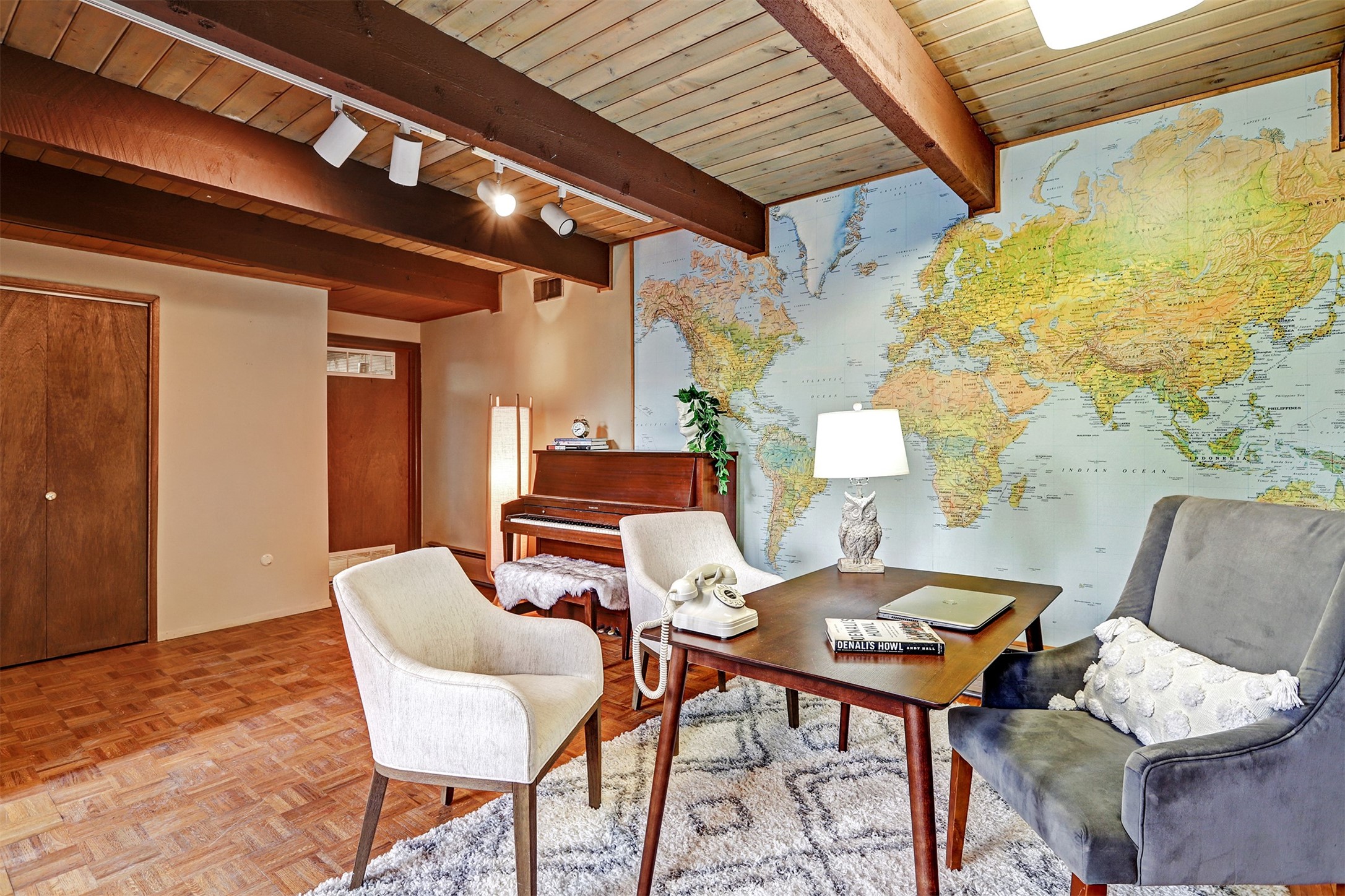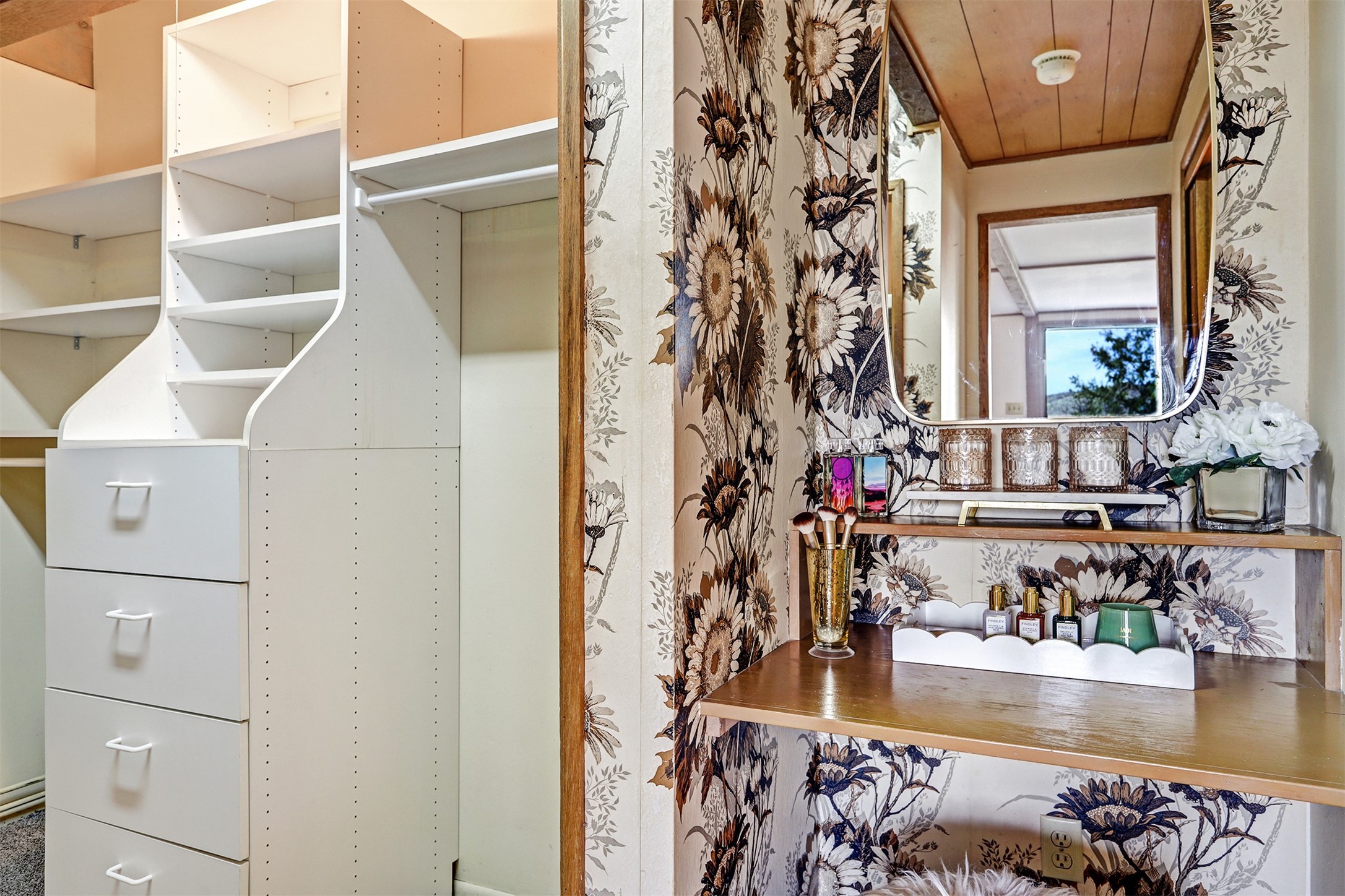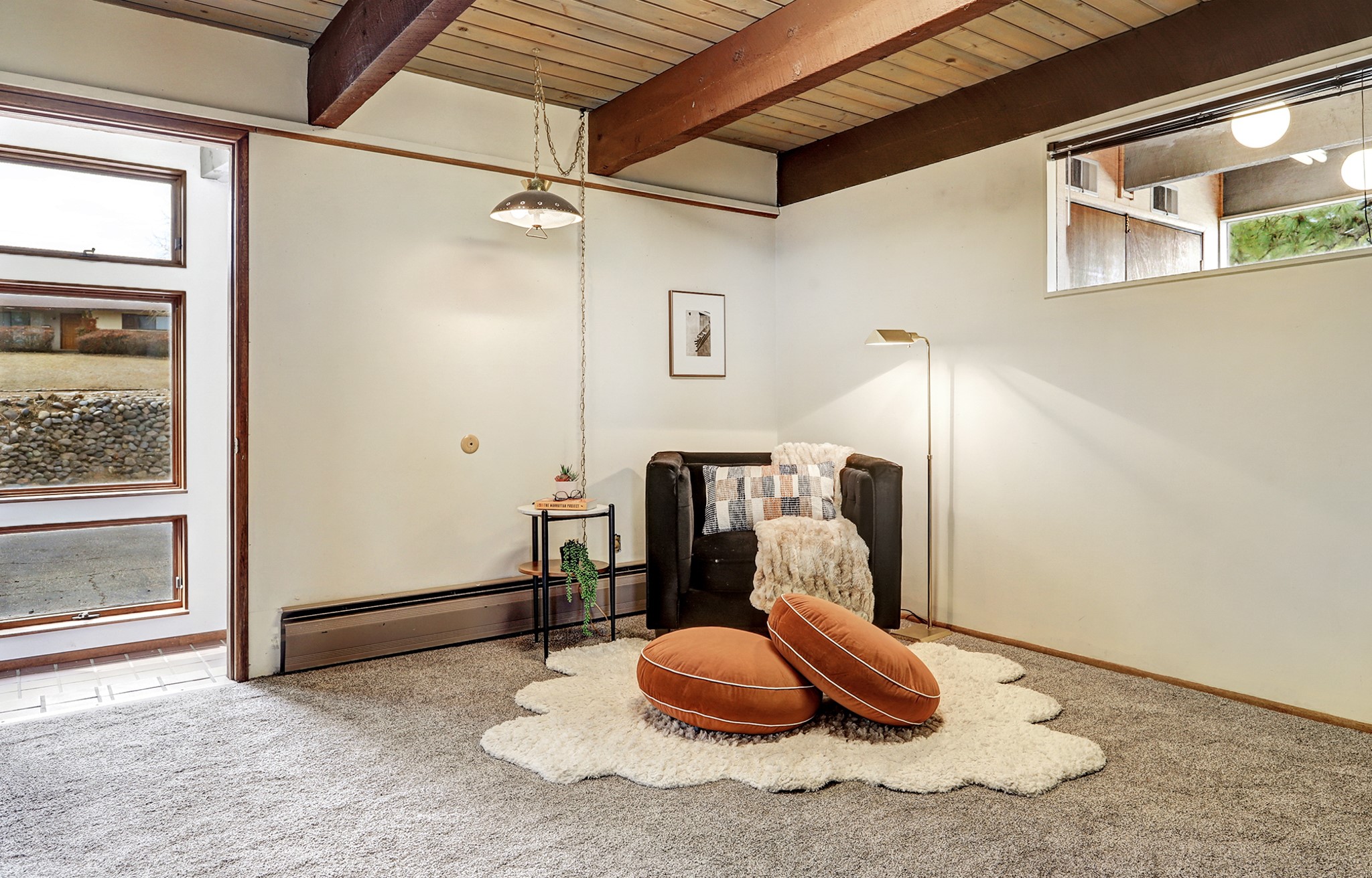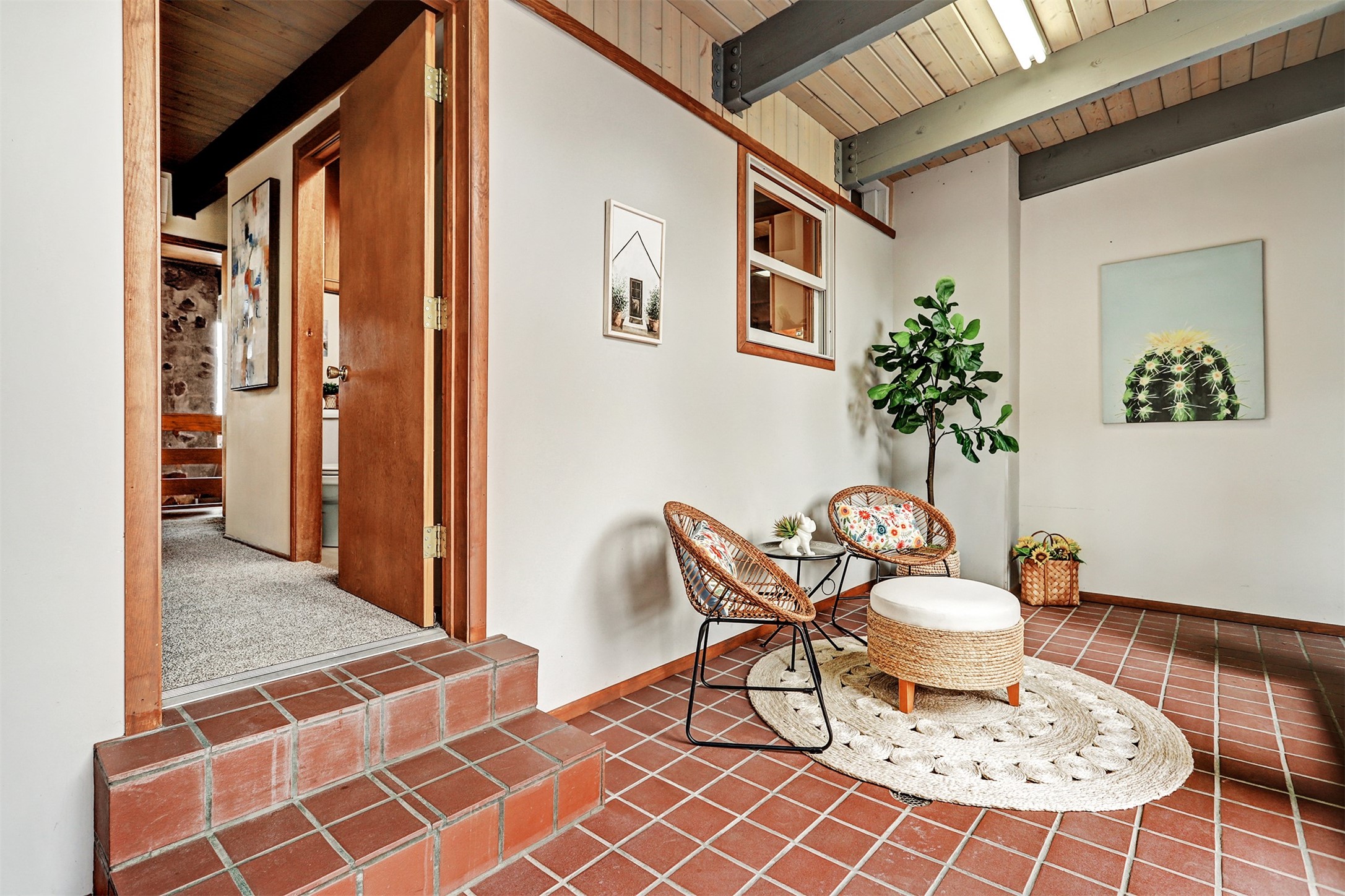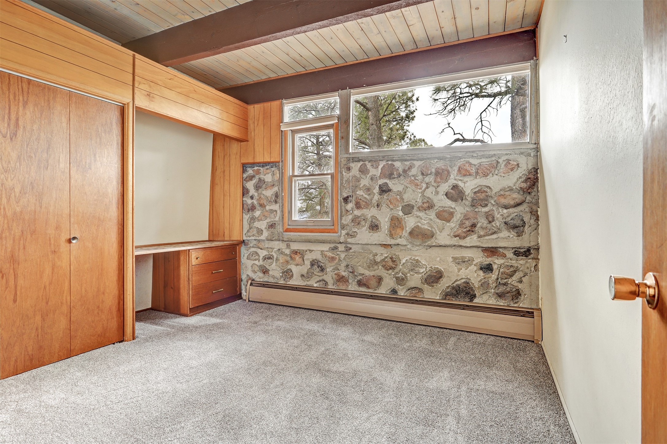 Perched on the picturesque Rendija Canyon, this stunning property with a biophilic architectural design seamlessly brings nature's qualities indoors. This remarkable property incorporates the New Mexico landscape by utilizing ponderosa, pion, and oak woods, as well as native rocks and minerals. Upon entry, you'll be met with views of the National Forest through massive two-story windows. Take the catwalk to the dining room, where the endless views continue. Your guests are sure to be awed by the organic splendor this area invokes. This level includes three guest rooms and a versatile flex room complete with a bathroom featuring fun swan fixtures. The kitchen offers convenient access to an outdoor patio and barbecue area as well as a laundry room and a two-car garage. Descend to the lower level to a spacious family room featuring Midcentury accents, such as the fireplace hood, floating hearth, and a Sputnik chandelier. This area includes a hot tub and wet bar with direct access to the back patio. The primary suite features a walk-in closet and an expansive bathroom adorned with a unique clamshell sink and koi-themed fixtures. Additionally, this level houses a large study with built-in bookshelves and a utility room providing ample storage. Stepping outside, you'll have a nice-sized, fenced yard before reaching the canyon and National Forest. This exceptional one-of-a-kind home combines modern amenities, striking design, and an immersive connection to nature. Don't miss your chance to experience this one-of-a-kind property. Schedule a showing today!