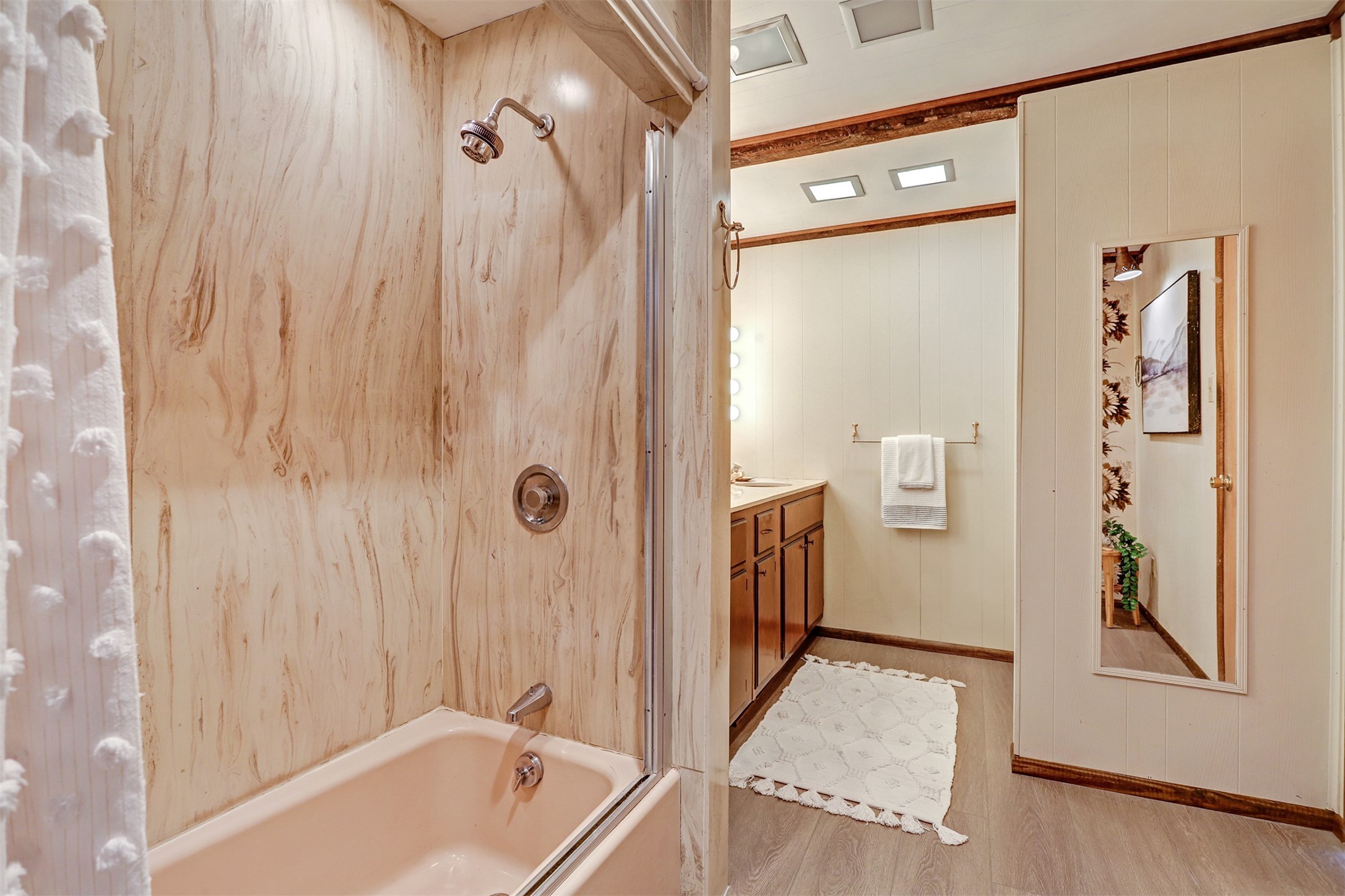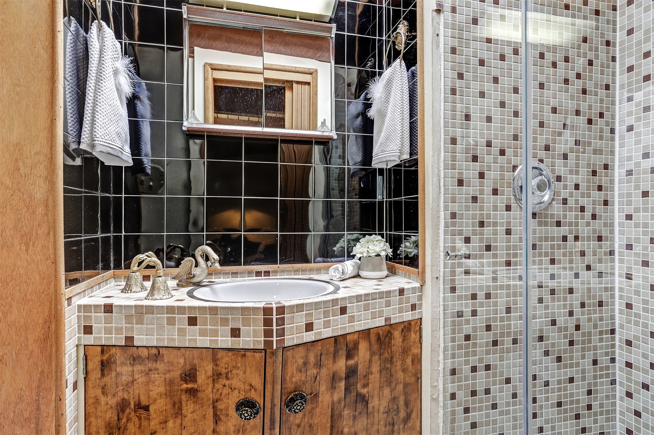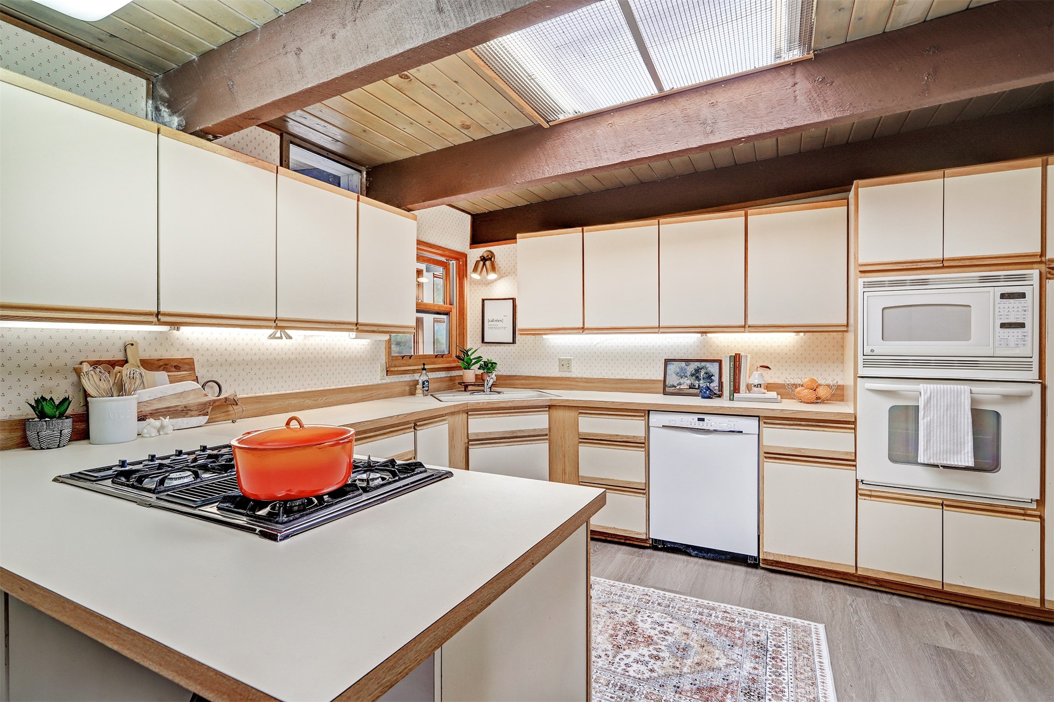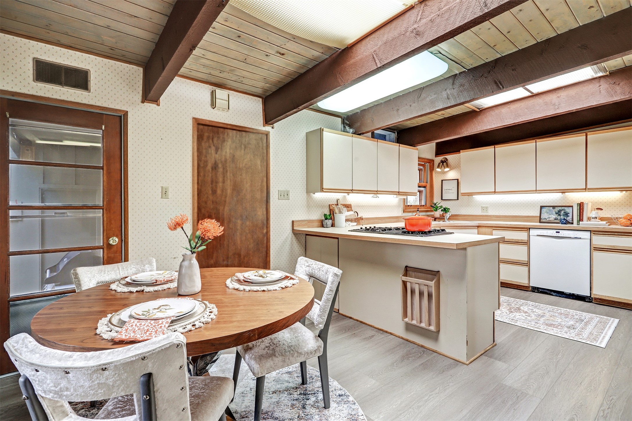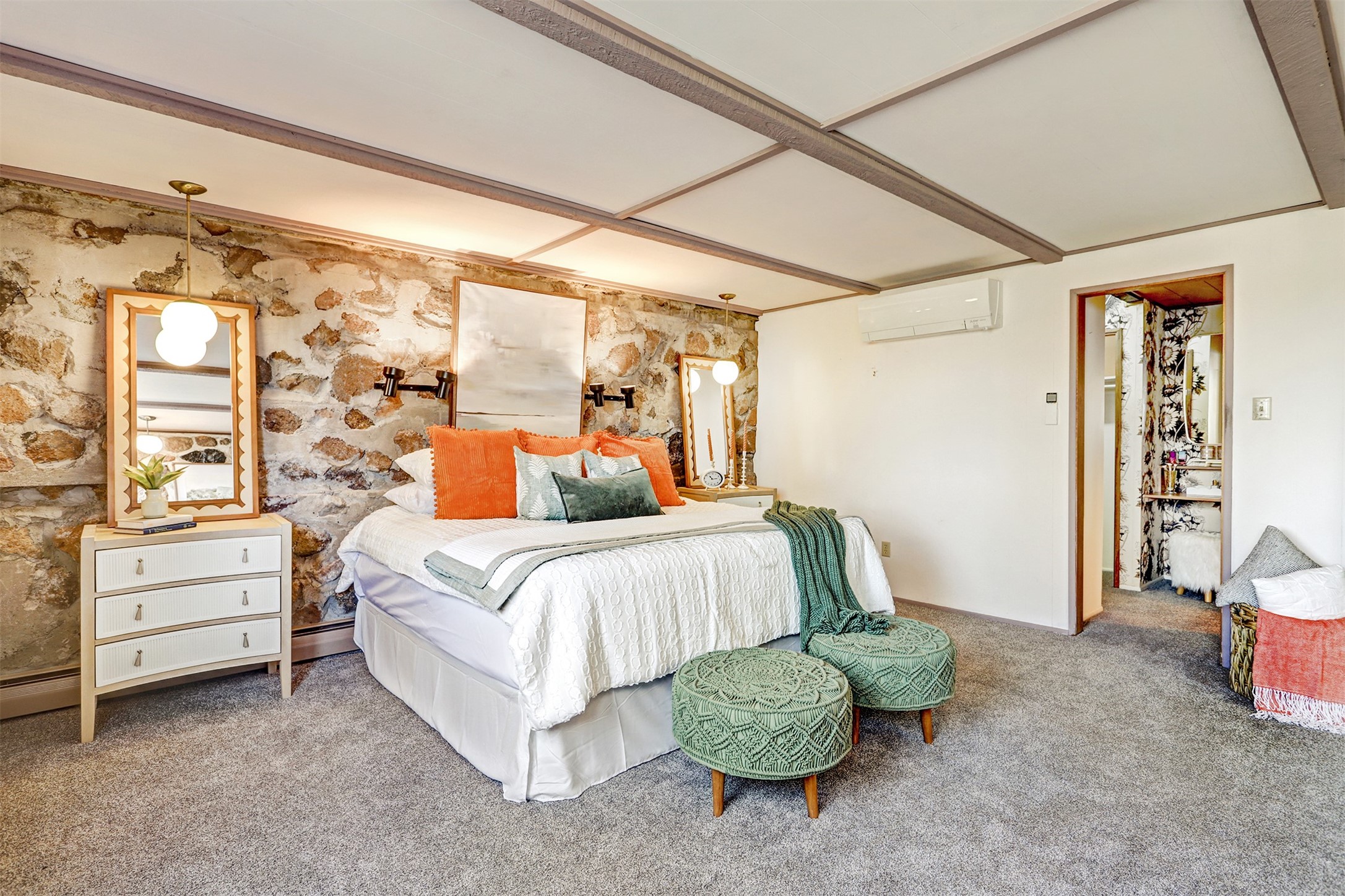 Perched on the picturesque Rendija Canyon, this stunning property with a biophilic architectural design seamlessly brings nature's qualities indoors. This remarkable property incorporates the New Mexico landscape by utilizing ponderosa, pion, and oak woods, as well as native rocks and minerals. Upon entry, you'll be met with views of the National Forest through massive two-story windows. Take the catwalk to the dining room, where the endless views continue. Your guests are sure to be awed by the organic splendor this area invokes. This level includes three guest rooms and a versatile flex room complete with a bathroom featuring fun swan fixtures. The kitchen offers convenient access to an outdoor patio and barbecue area as well as a laundry room and a two-car garage. Descend to the lower level to a spacious family room featuring Midcentury accents, such as the fireplace hood, floating hearth, and a Sputnik chandelier. This area includes a hot tub and wet bar with direct access to the back patio. The primary suite features a walk-in closet and an expansive bathroom adorned with a unique clamshell sink and koi-themed fixtures. Additionally, this level houses a large study with built-in bookshelves and a utility room providing ample storage. Stepping outside, you'll have a nice-sized, fenced yard before reaching the canyon and National Forest. This exceptional one-of-a-kind home combines modern amenities, striking design, and an immersive connection to nature. Don't miss your chance to experience this one-of-a-kind property. Schedule a showing today!