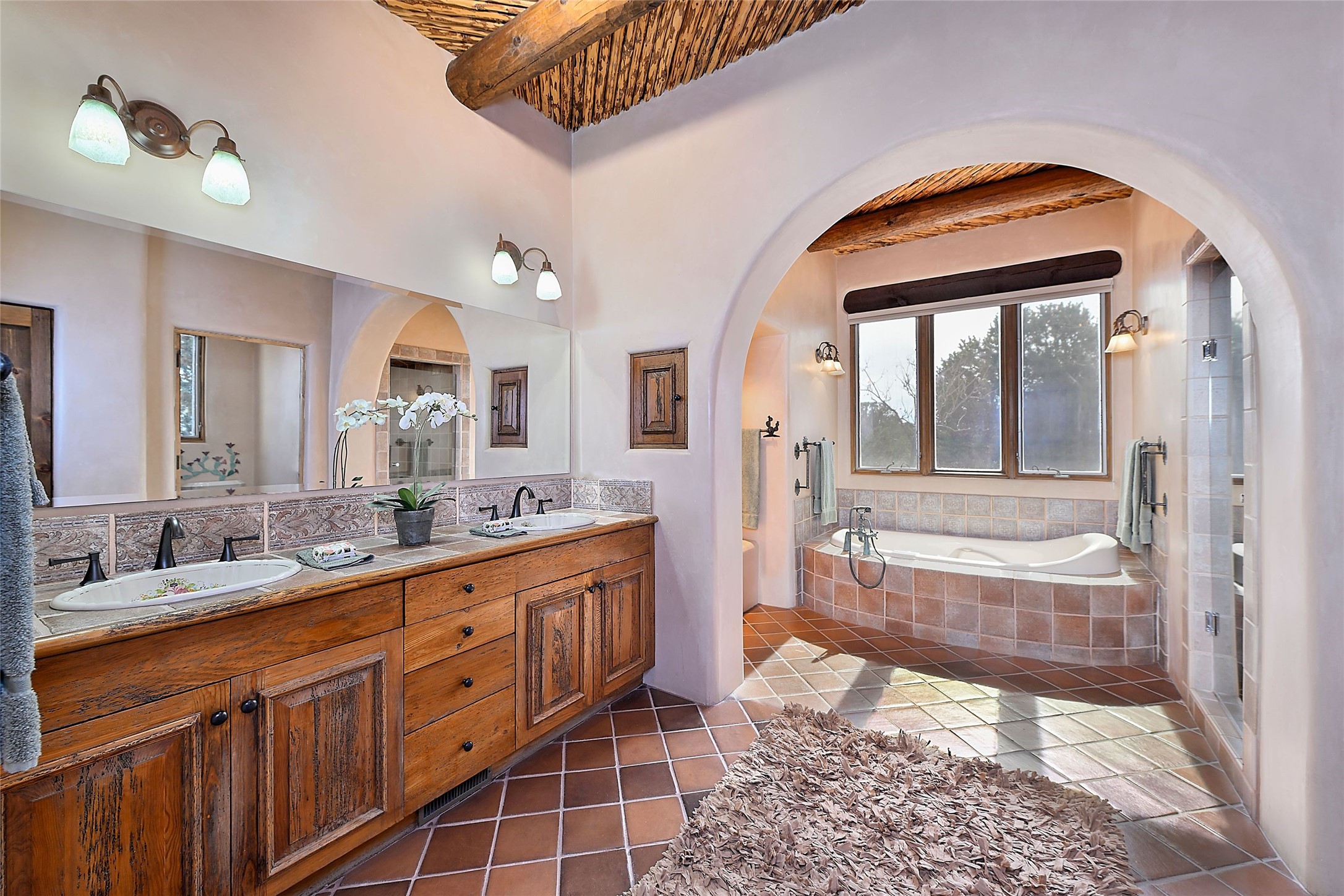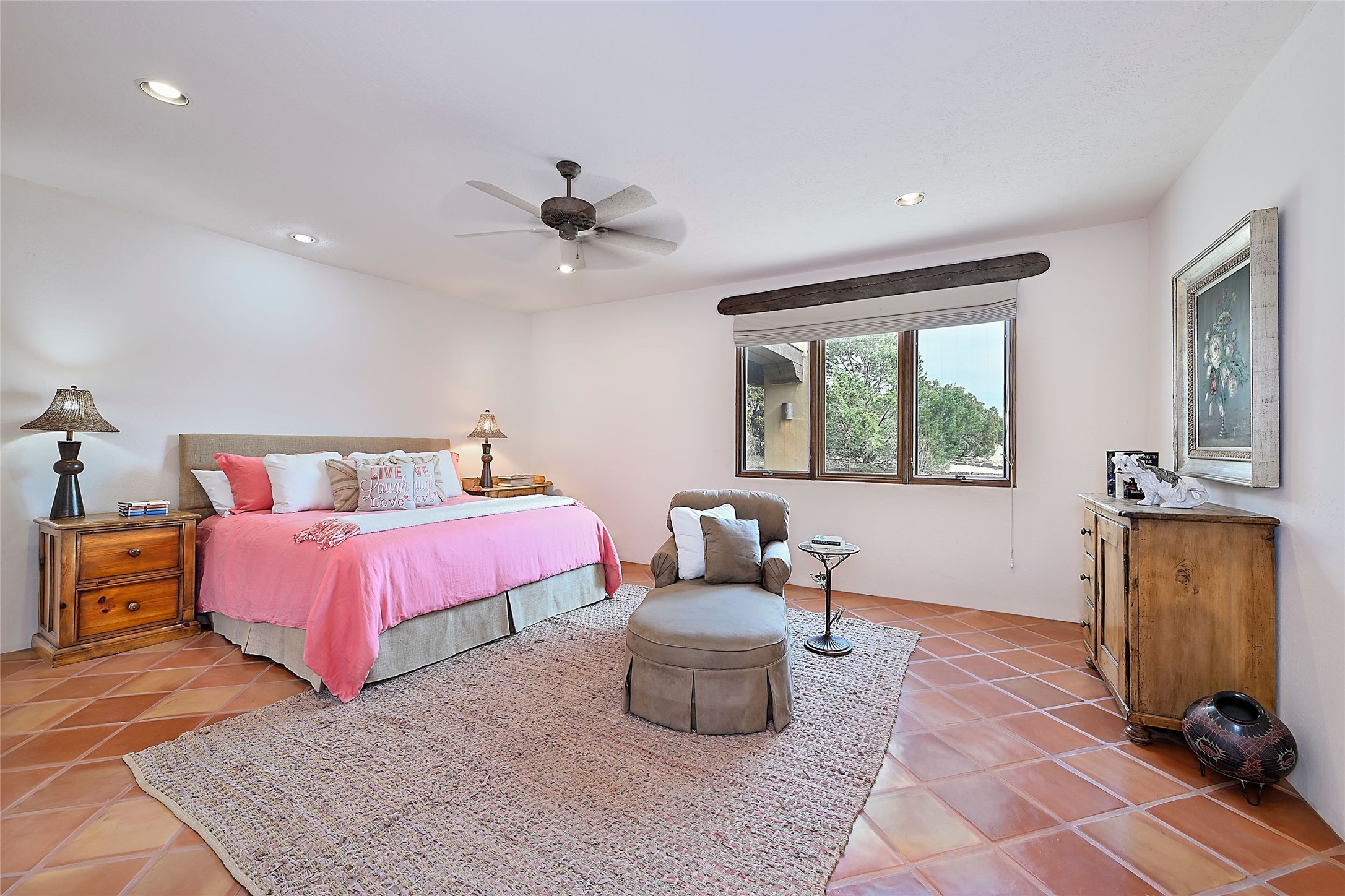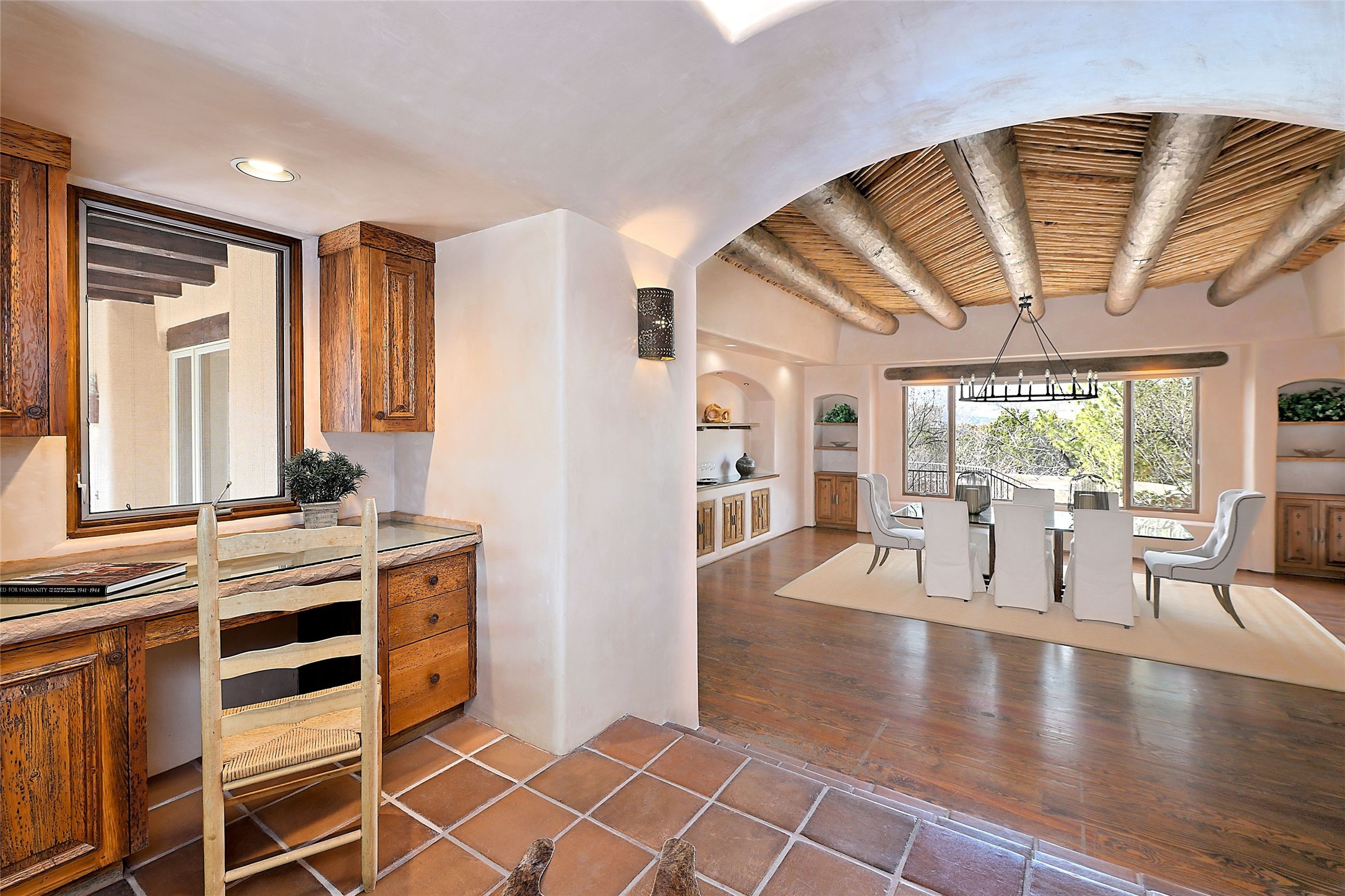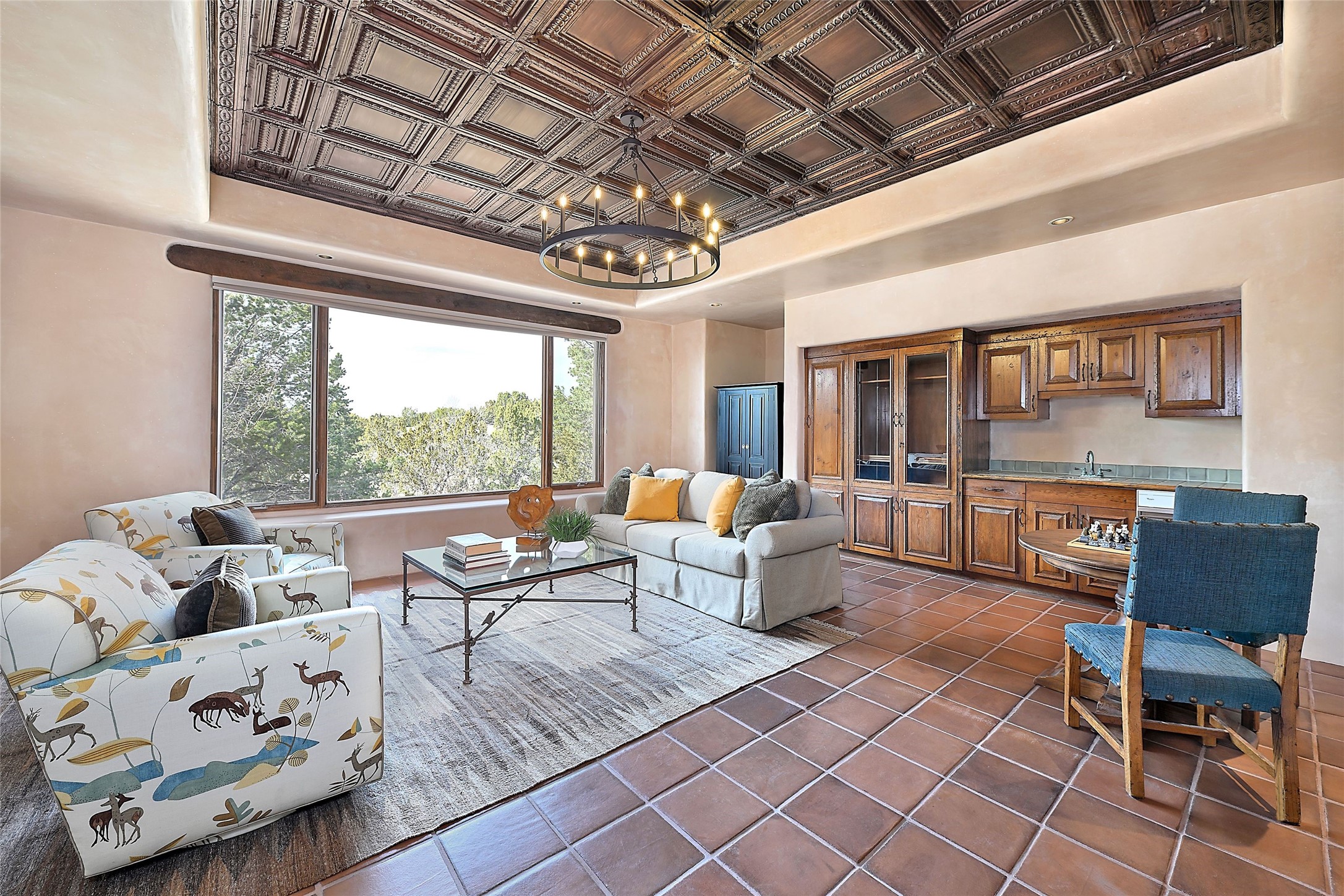 The Grande Dame of las Campanas. Set on an expansive 5 acre double lot, this property offers unparalleled privacy and security. Substantial gates open to reveal a stunning courtyard meticulously designed to create a welcoming impression with natural, elegant landscaping. Stepping through the stately front doors you're greeted by the soaring ceilings of the expansive great room seamlessly connecting to the vast patio beyond. Adjacent to the great room lies the charming formal dining room. A step beyond is the extra-large game and media room. The kitchen has enough room for two to cook and friends to gather, with a charming breakfast nook opening to the courtyard. The estate boasts four bedrooms each with en-suite baths. The primary bedroom is a private retreat with accompanying bath and an extensive two sides walk-in closet. Steps away is the home's library ready for a collection of books or artifacts. the comfortable seating area offers a peaceful place to read, work or just relax. For those who opt to join the club at Las Campanas with its world class amenities, memberships are available. Or just enjoy the serenity of a beautifully cared for community.