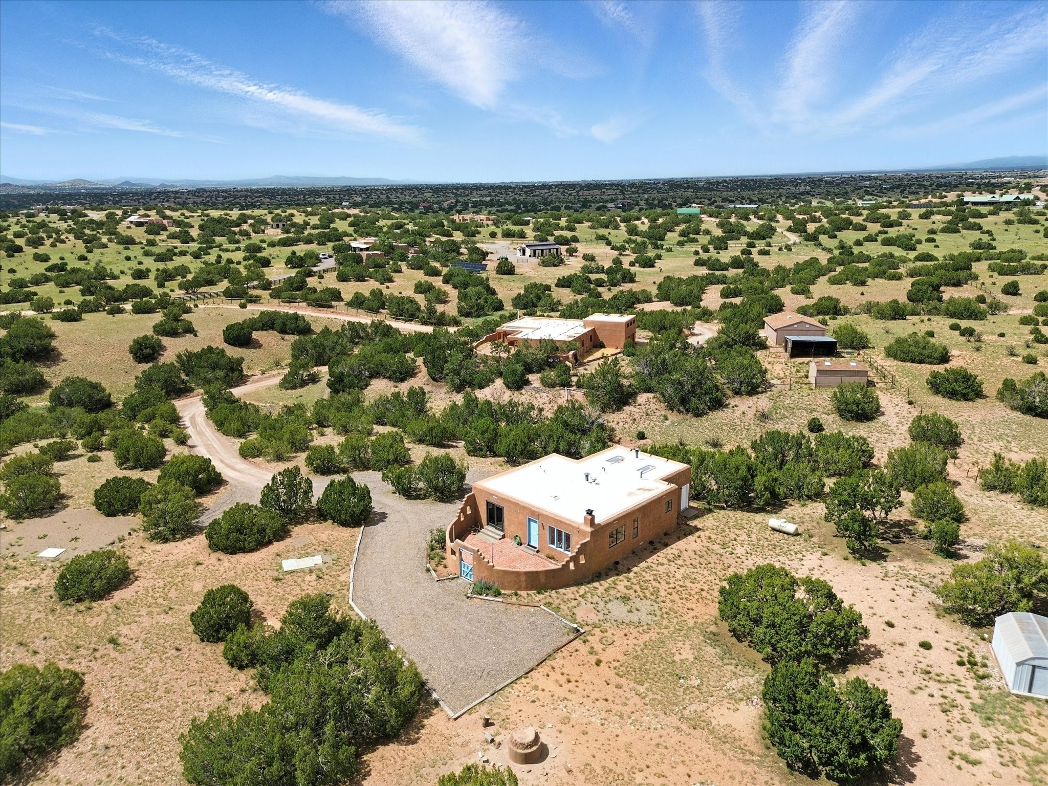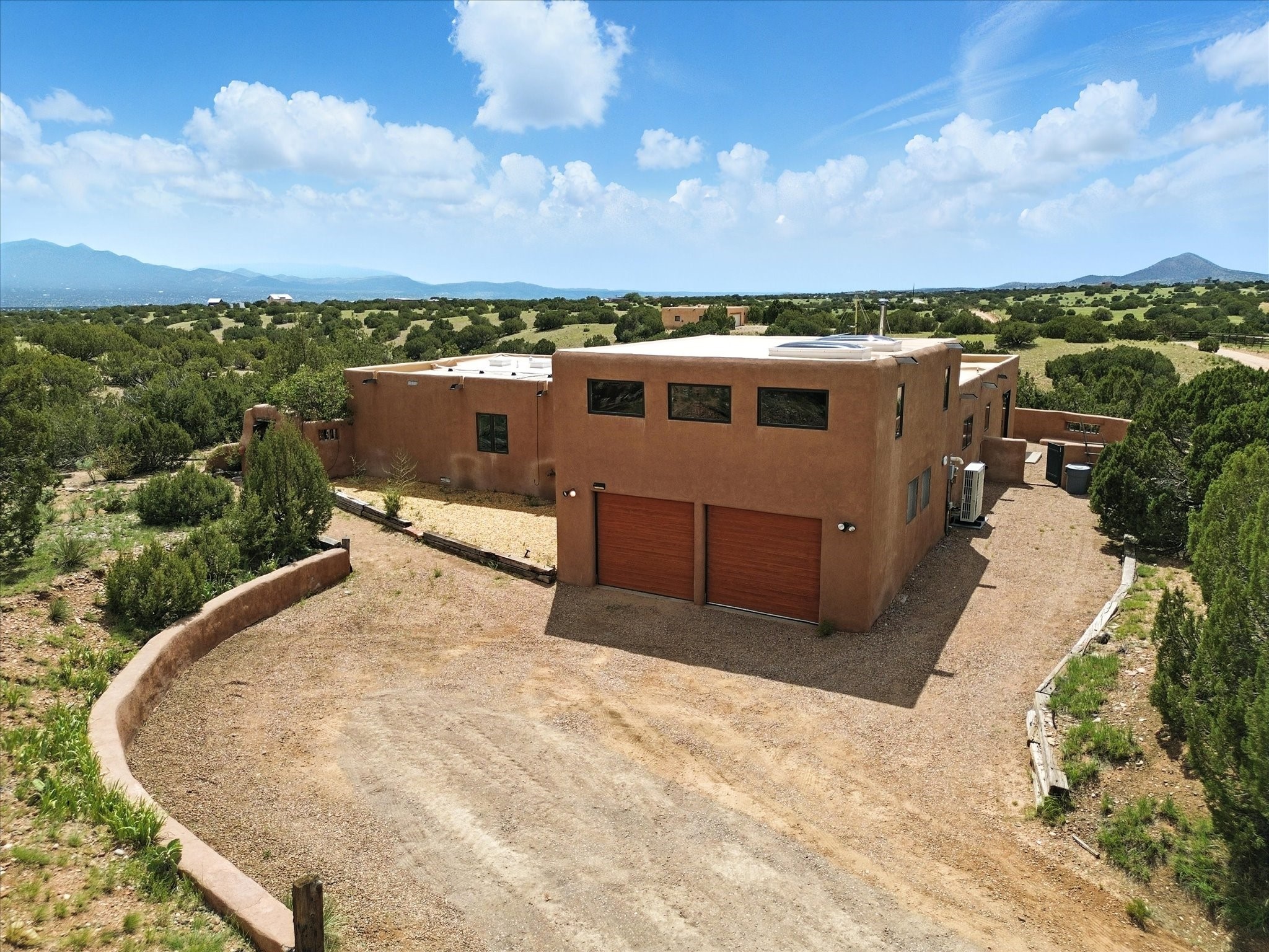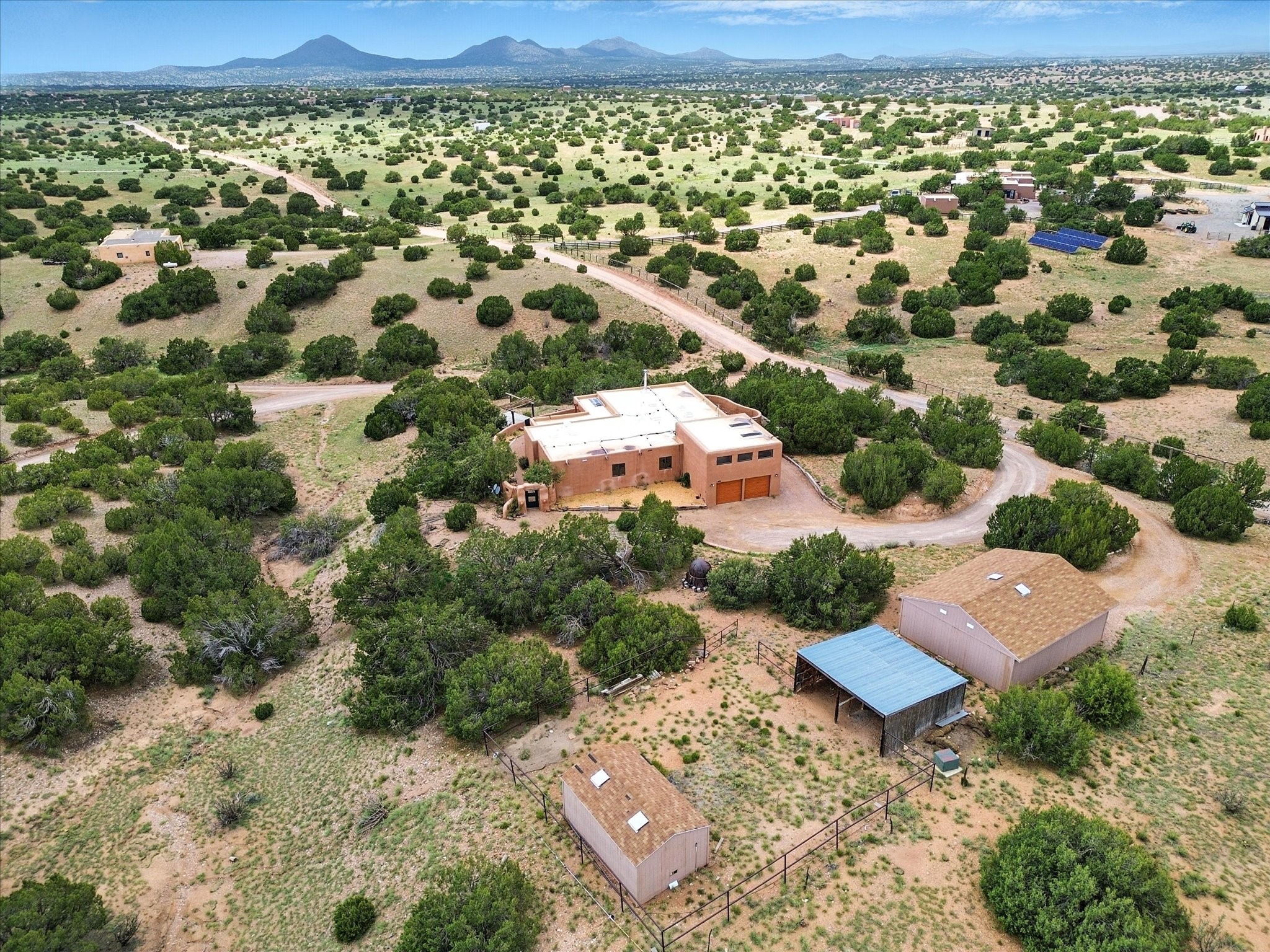 Experience the tranquility and space of rural living just south of Santa Fe and west of the Galisteo area. Set amidst a landscape of large-acreage properties, this private estate offers breathtaking vistas, abundant space, and versatile amenities. The main house welcomes you with a grand portal, perfectly positioned to capture panoramic views to the south and west, along with four bedrooms and three bathrooms. Inside, you'll find generous living areas designed for comfort, connection, and relaxation. A separate Guest House accessed via its own private driveway offers complete independence for guests, extended family, or rental opportunities. The guest house is equipped with two bedrooms and two bathrooms. The expansive property includes multiple outbuildings, including a well-equipped workshop and a corral with shelter, ideal for animals or hobby farming. Whether you're seeking a serene retreat, multigenerational living, or a lifestyle that embraces both nature and functionality, this property delivers. Do not miss this rare opportunity to own a peaceful and private haven. Imagine the possibilities and schedule your private showing today.