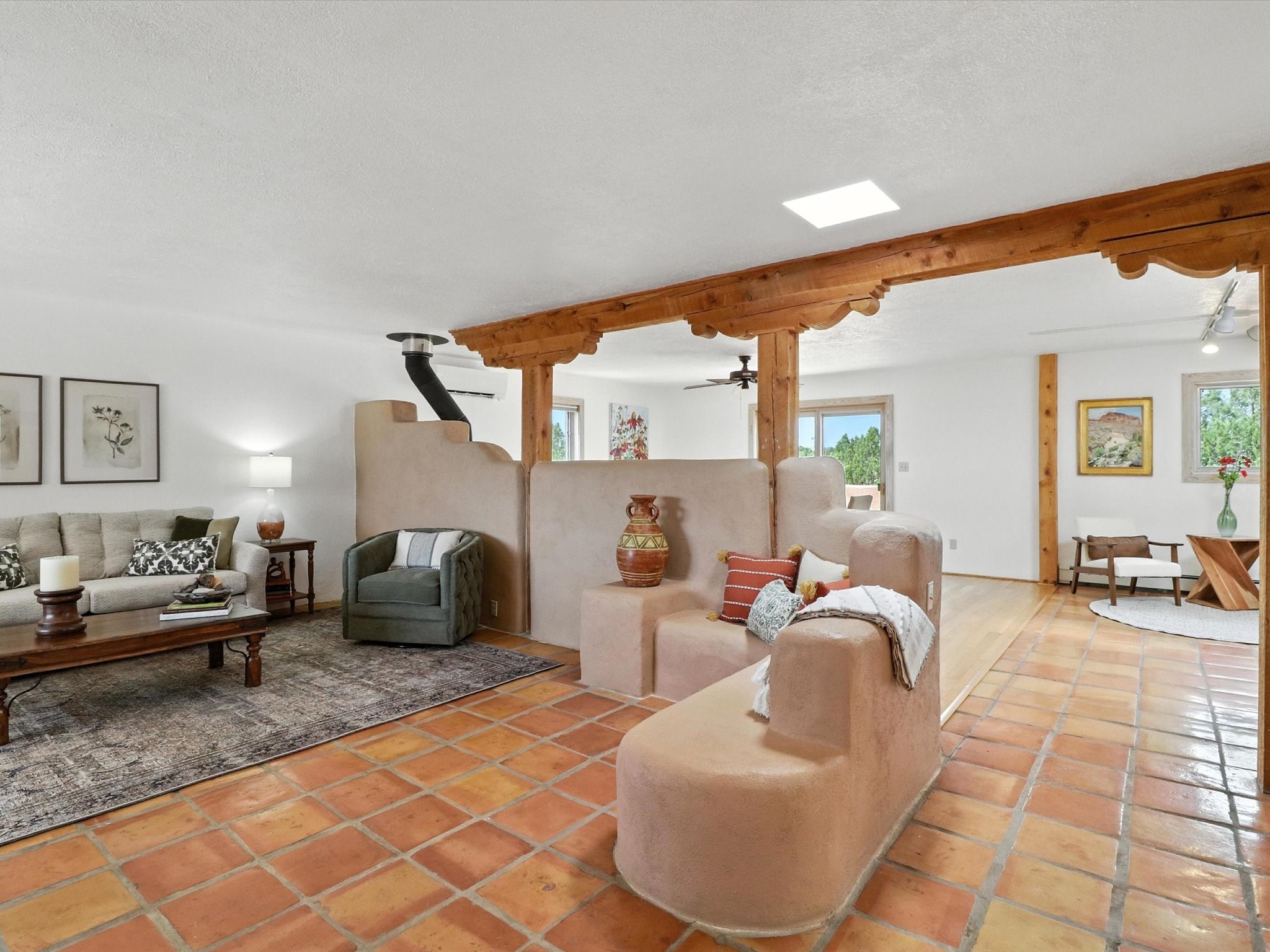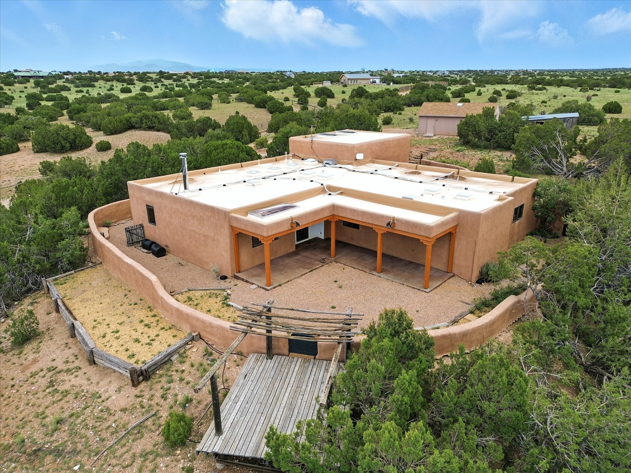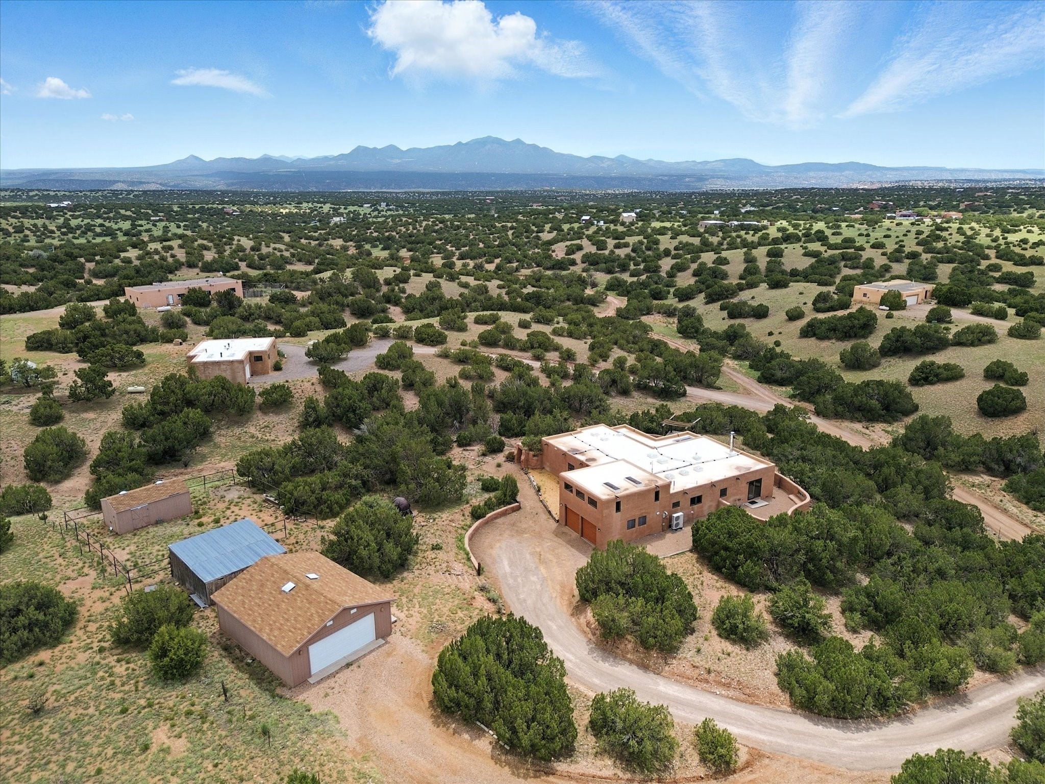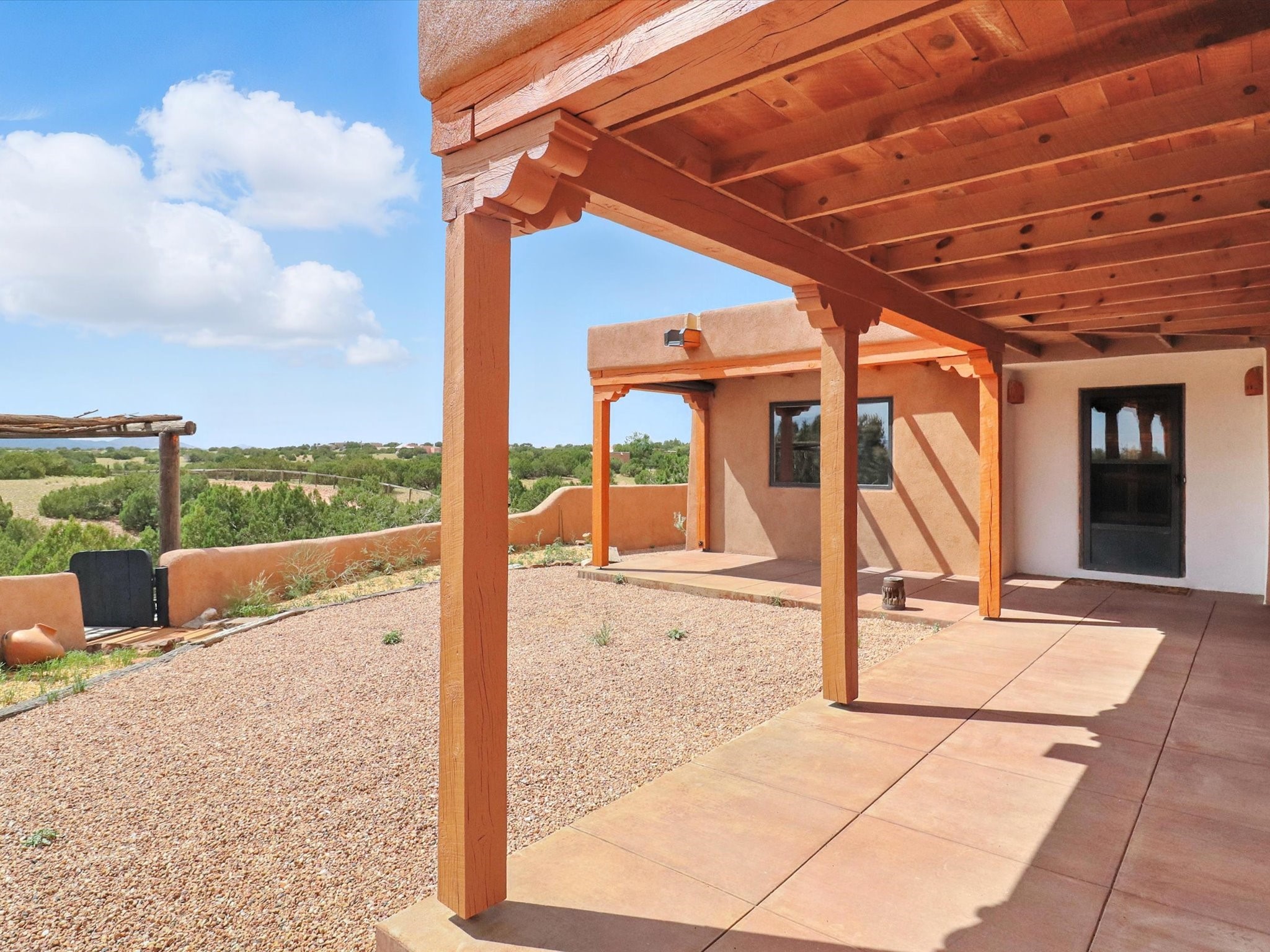 Experience the tranquility and space of rural living just south of Santa Fe and west of the Galisteo area. Set amidst a landscape of large-acreage properties, this private estate offers breathtaking vistas, abundant space, and versatile amenities. The main house welcomes you with a grand portal, perfectly positioned to capture panoramic views to the south and west, along with four bedrooms and three bathrooms. Inside, you'll find generous living areas designed for comfort, connection, and relaxation. A separate Guest House accessed via its own private driveway offers complete independence for guests, extended family, or rental opportunities. The guest house is equipped with two bedrooms and two bathrooms. The expansive property includes multiple outbuildings, including a well-equipped workshop and a corral with shelter, ideal for animals or hobby farming. Whether you're seeking a serene retreat, multigenerational living, or a lifestyle that embraces both nature and functionality, this property delivers. Do not miss this rare opportunity to own a peaceful and private haven. Imagine the possibilities and schedule your private showing today.