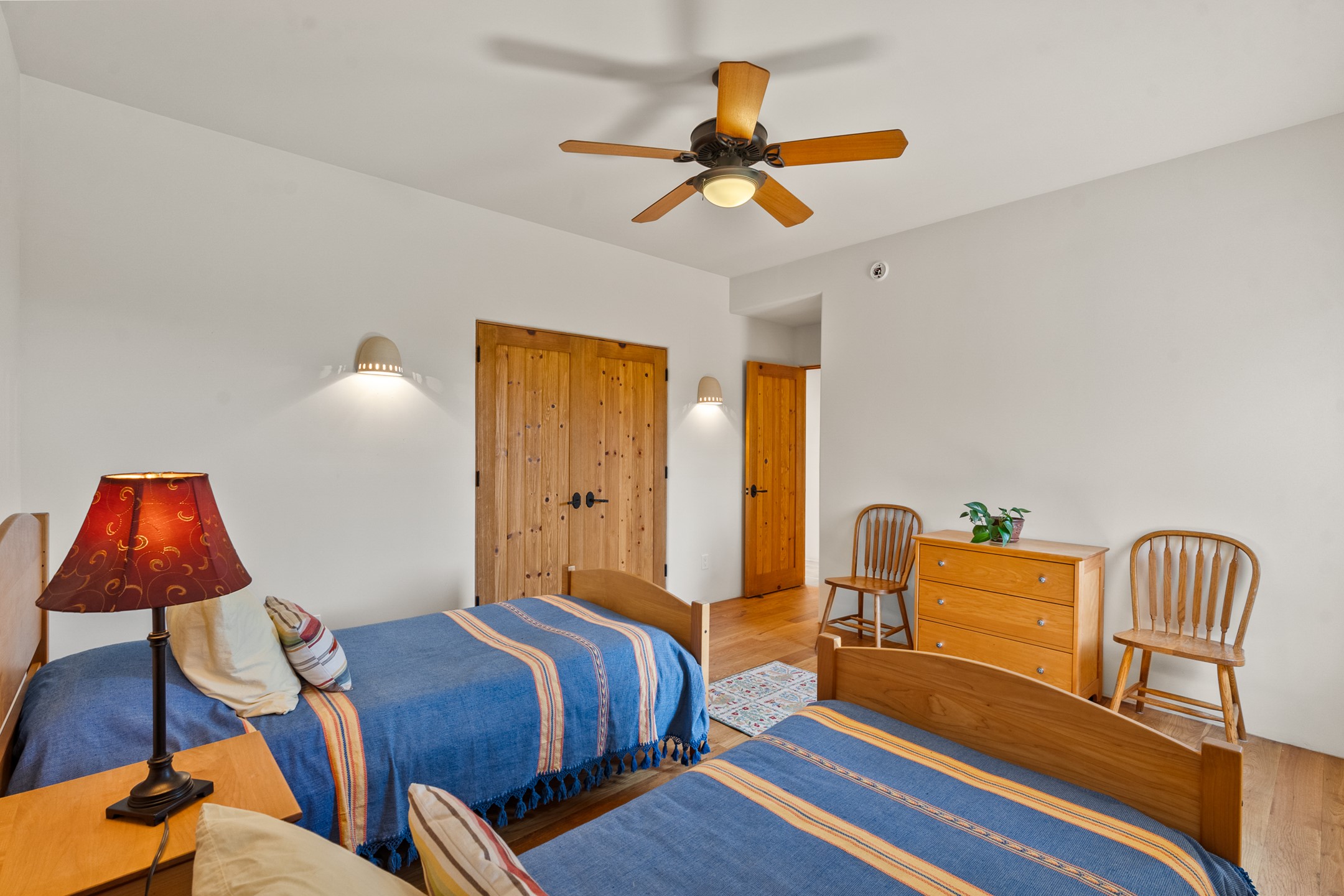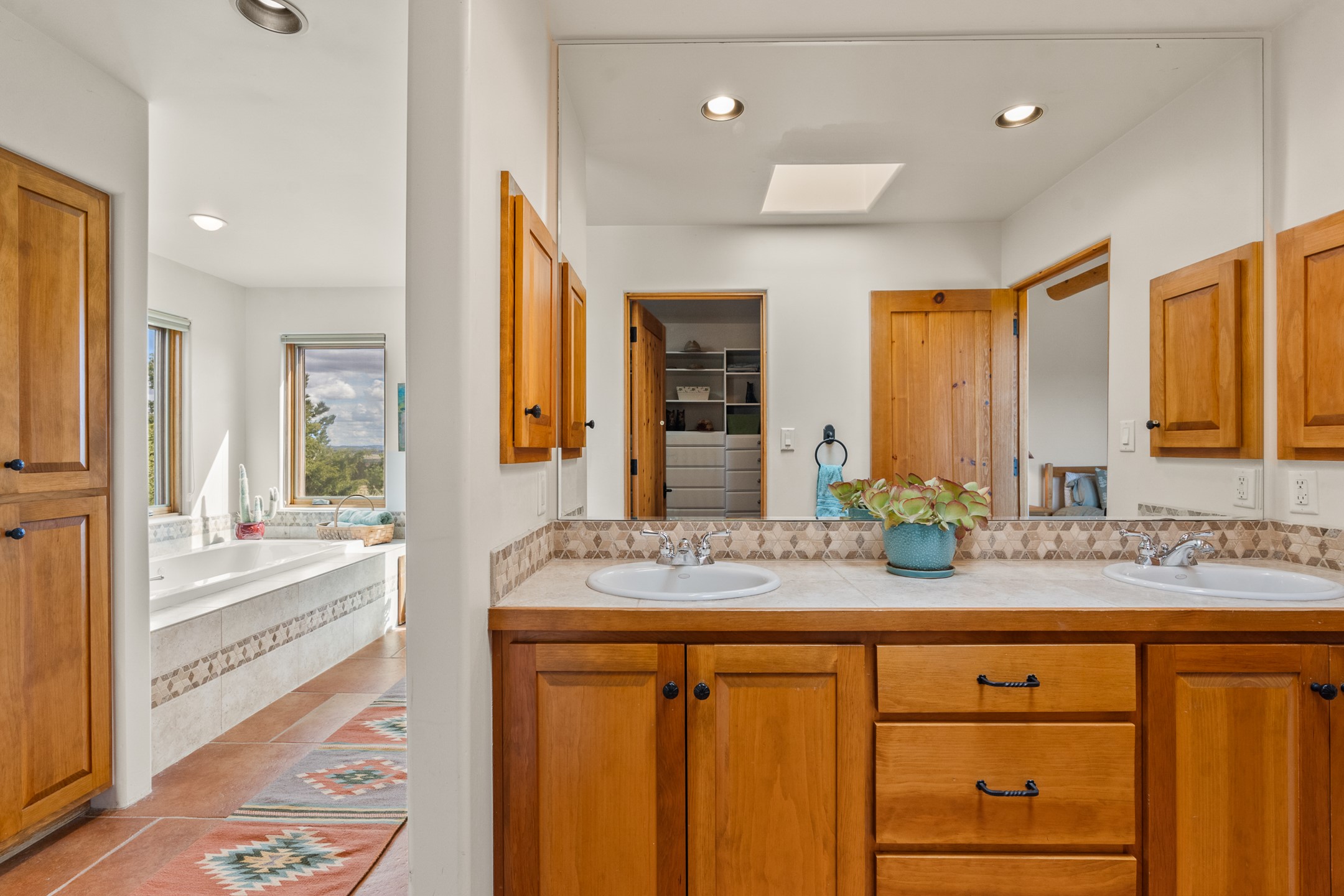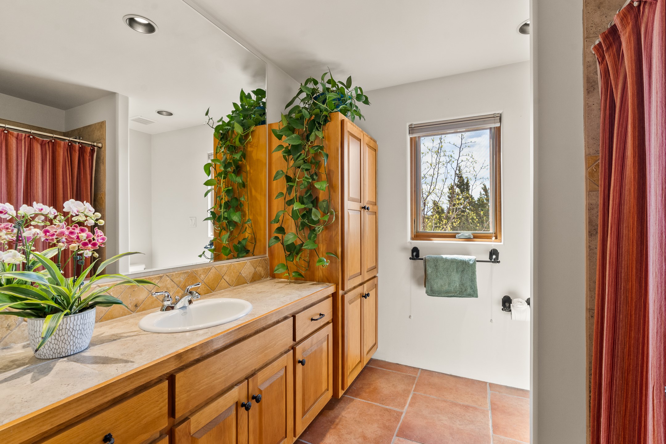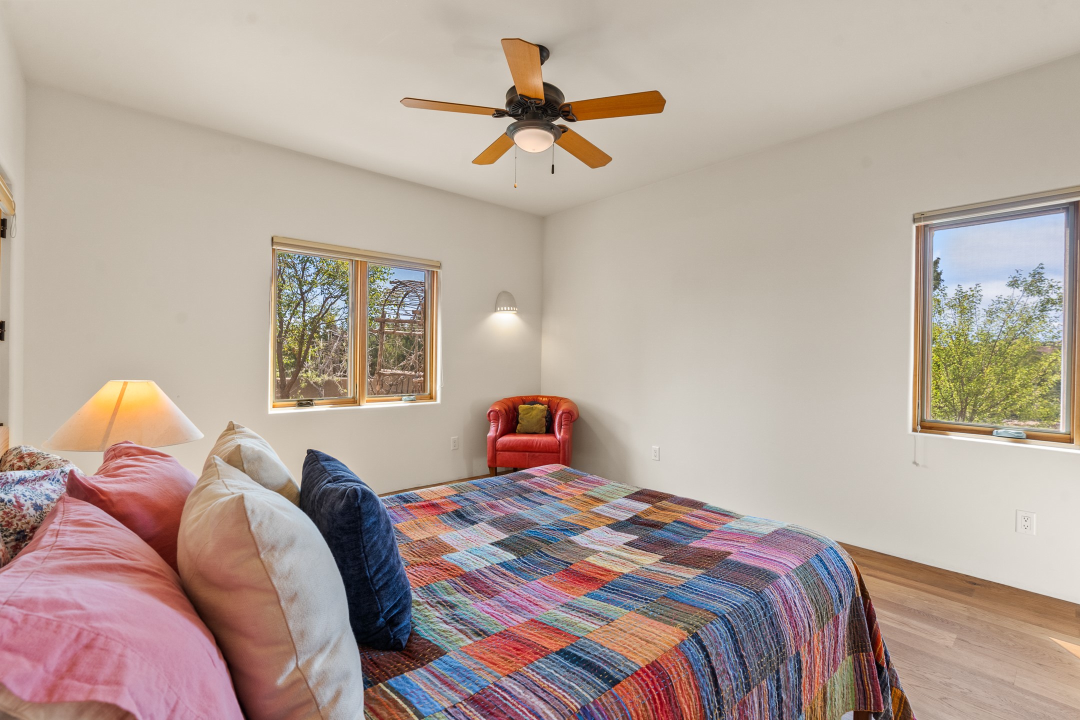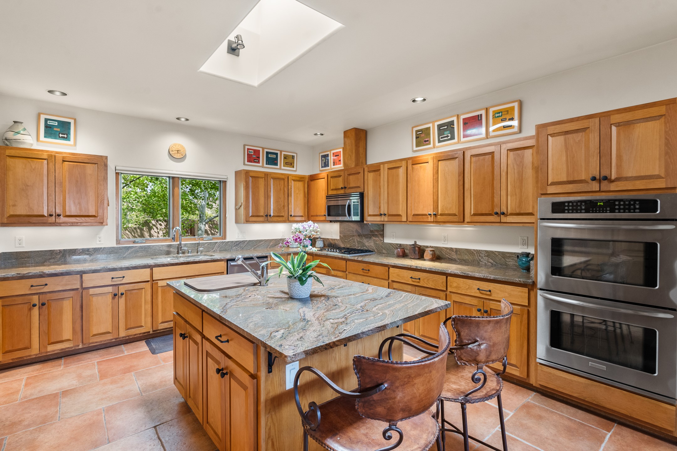 Nestled atop a quiet 3.79-acre ridge in the exclusive Spirit Wind Ranch, 45 Cerro Alto is more than a home--it's a way of life. With 3,600 square feet of beautifully crafted Santa Fe-style architecture and sweeping views of the Galisteo Basin, this private haven blends sustainability, self-sufficiency, and serene luxury in perfect harmony. From the moment you enter the aspen-lined courtyard, you're greeted by nature's quiet abundance. Mature, fruit-bearing trees--apple, jujube, and peach--offer seasonal bounty, while young apricot, pear, and plum trees promise years of harvests. For the passionate gardener, an adobe-walled greenhouse sits beside raised beds with drip irrigation, all nurtured organically for nearly a decade. A 3,000-gallon underground rainwater collection system supports irrigation, ensuring both sustainability and simplicity. This is a retreat designed for mindful living. A 10 kW ground-mounted solar array (installed in 2017) powers the home, eliminating electric bills. A Regency Hearth Heater wood stove offers cozy, efficient warmth, reducing reliance on the propane-powered radiant floor system. Enjoy filtered instant hot water throughout, thanks to a whole-house circulation and RO system. Inside, Santa Fe's timeless character shines through hand-hewn vigas, tile and hardwood floors, and three fireplaces that warm both heart and home. The main residence features three bedrooms, a sun-filled library, and a generous primary suite with its own fireplace. A detached casita offers flexibility for guests, a studio, or a private retreat. Deep portals invite you outdoors--to relax in the shade, dine al fresco, or simply lose yourself in the golden light dancing across the landscape. Every corner of this property invites reflection, creation, and connection to the land. A spacious three-car garage with an attached workshop completes this remarkable offering--ready for your tools, hobbies, or dreams, with paved access, total privacy, and unmatched natural beauty.