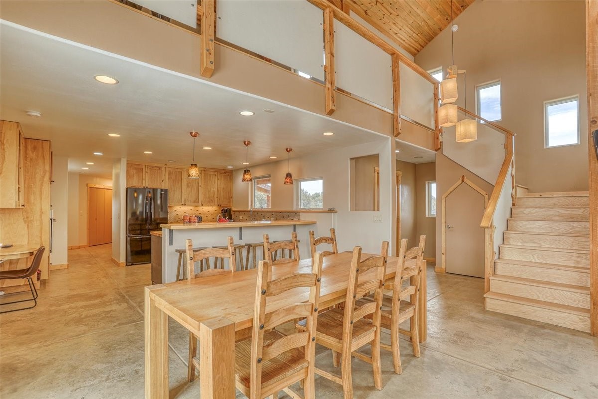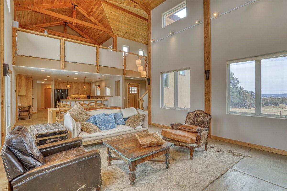 Custom Mountain Retreat on 10 Acres in Chama West Subdivision:Discover this exceptional custom-built mountain home nestled on 10 pristine acres in the coveted Chama West Subdivision of Northern New Mexico. Featuring 2-3 bedrooms and 3 bathrooms, this property showcases superior construction with Structural Insulated Foam Panel (SIPS) technology, ensuring maximum energy efficiency and durability in all seasons.The bright, open floorplan capitalizes on breathtaking mountain vistas through premium Andersen insulated windows and patio doors. Soaring ceilings and abundant natural light complement the exquisite custom cabinetry and fine woodwork throughout. Enjoy cozy evenings by the wood-burning fireplace or relax in the master suite's jetted bathtub with panoramic views.This versatile home offers flexible spaces including a potential studio, office area, spacious walk-in pantry, and dedicated laundry room. The oversized 3-car garage provides ample space for vehicles plus a workshop area. RV enthusiasts will appreciate the special hookups for extended adventures.Perfect for horse lovers, the gently sloping terrain offers ideal riding conditions across your private acreage. Premium features include heated floors, gas cooking, and exceptional storage throughout the property.Located in premier horse country near the Humphries and Sargent Wilderness Areas, this property provides unparalleled access to outdoor recreation including fishing on the renowned Chama and Brazos Rivers. Share your land with abundant wildlife including elk, deer, and wild turkey.Whether as your primary residence or mountain getaway, this meticulously crafted home delivers the authentic Northern New Mexico lifestyle surrounded by unforgettable natural beauty. Tractor may be purchased on a separate bill of sale with the purchase of the property. See video link for interactive map.