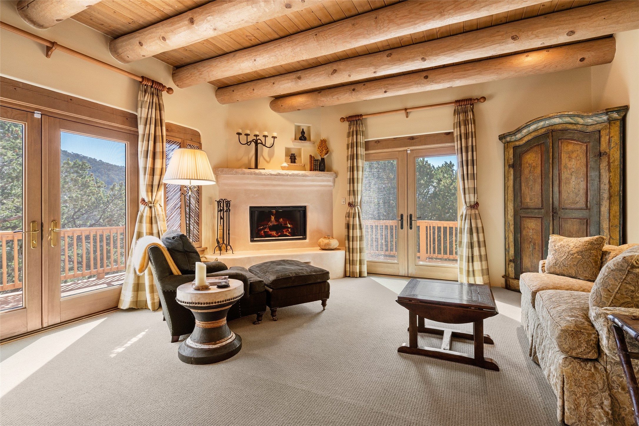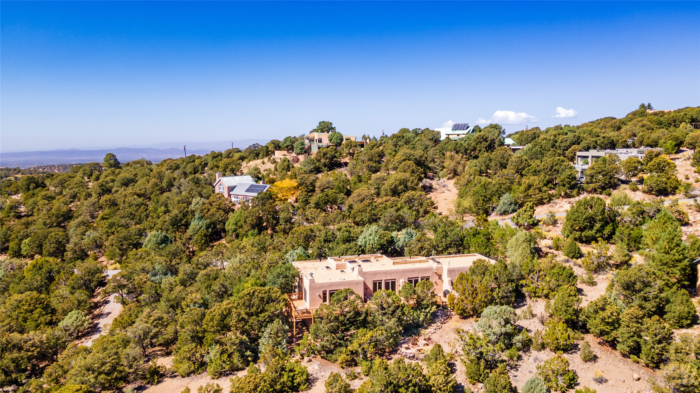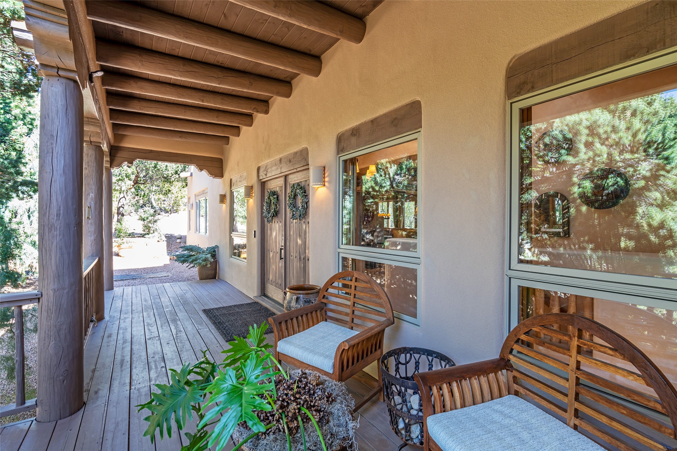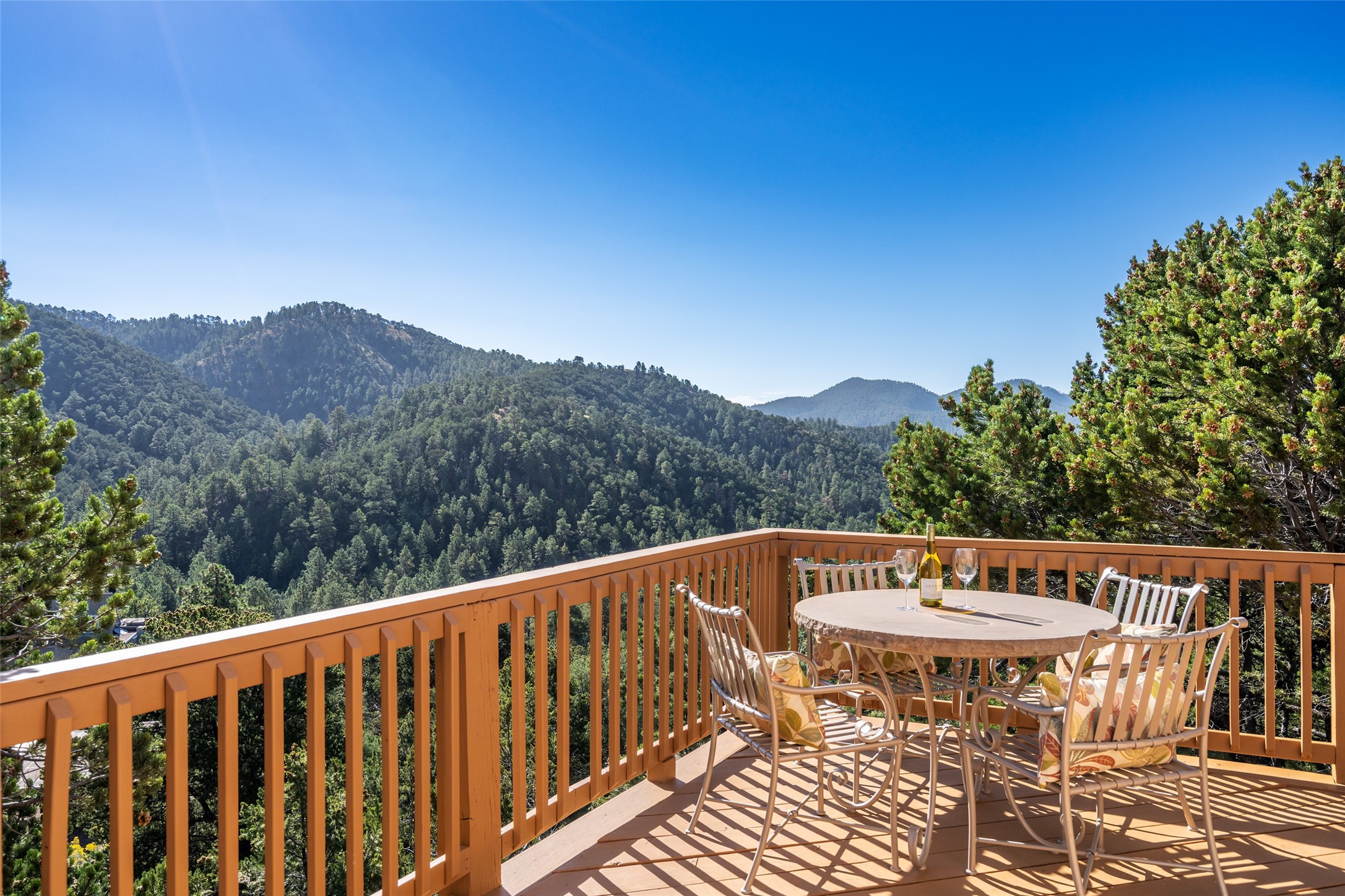 Perched in the peaceful foothills just minutes from downtown Santa Fe, this beautifully updated 3-bedroom, 2.5-bath mountain retreat offers a seamless blend of Southwestern charm and modern comfort. Classic vigas and warm wood accents echo traditional Santa Fe style, while a thoughtfully remodeled interior brings contemporary flair. The open-concept living area, anchored by a cozy fireplace, frames expansive views of the surrounding landscape--perfect for quiet evenings or entertaining guests.The chef's kitchen boasts high-end appliances, sleek new countertops, and custom cabinetry, making it as functional as it is stylish. Step outside onto the brand-new wraparound deck, ideal for savoring your morning coffee, dining al fresco, or gathering around the fire pit with friends while overlooking the untouched beauty of the adjacent national forest.Spa-inspired bathrooms and two generous office/flex rooms offer comfort and versatility, while a new roof and numerous upgrades throughout ensure this home is completely move-in ready. Experience the serenity of mountain living without sacrificing the convenience of being close to town--your Santa Fe sanctuary awaits.