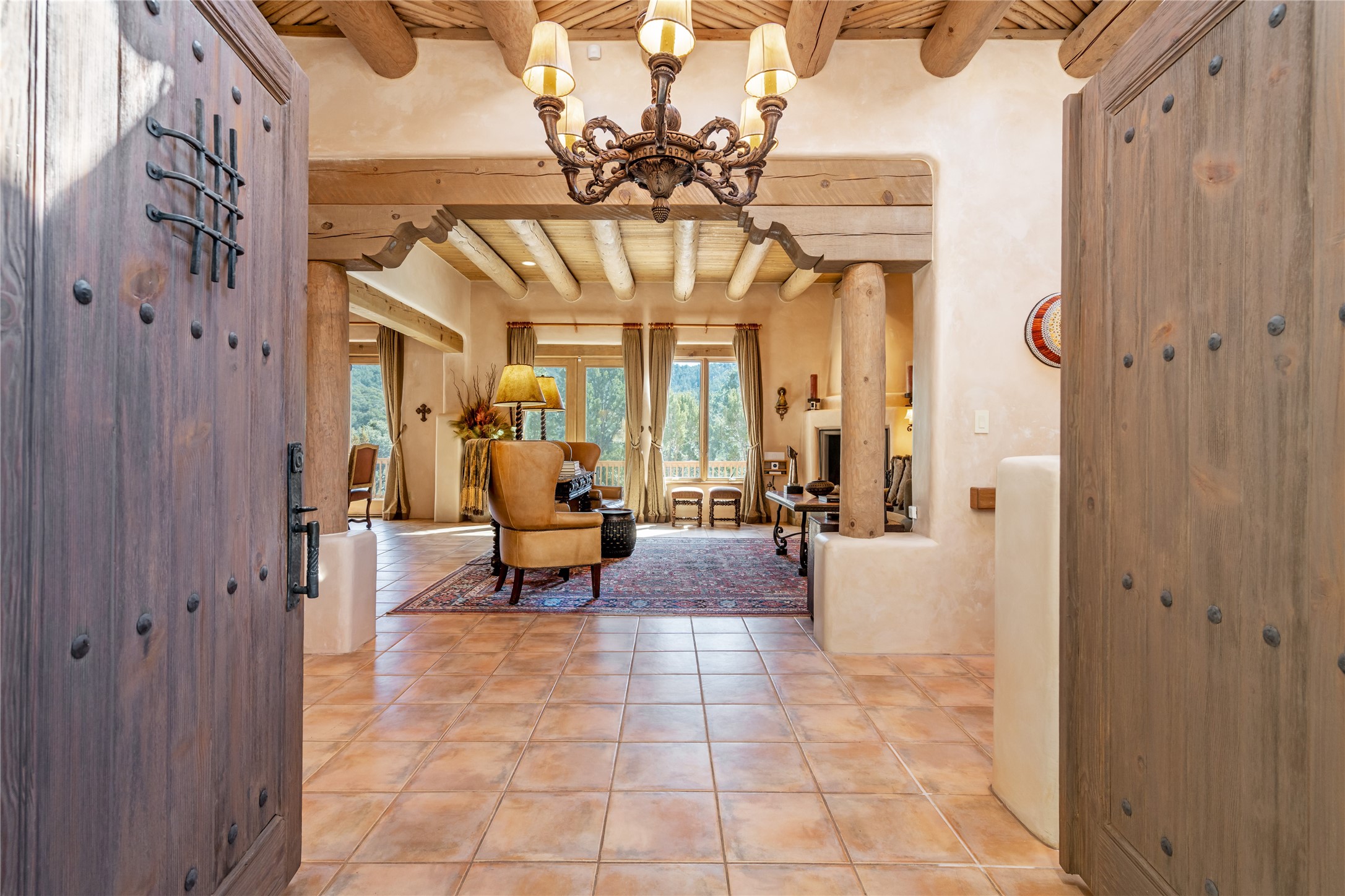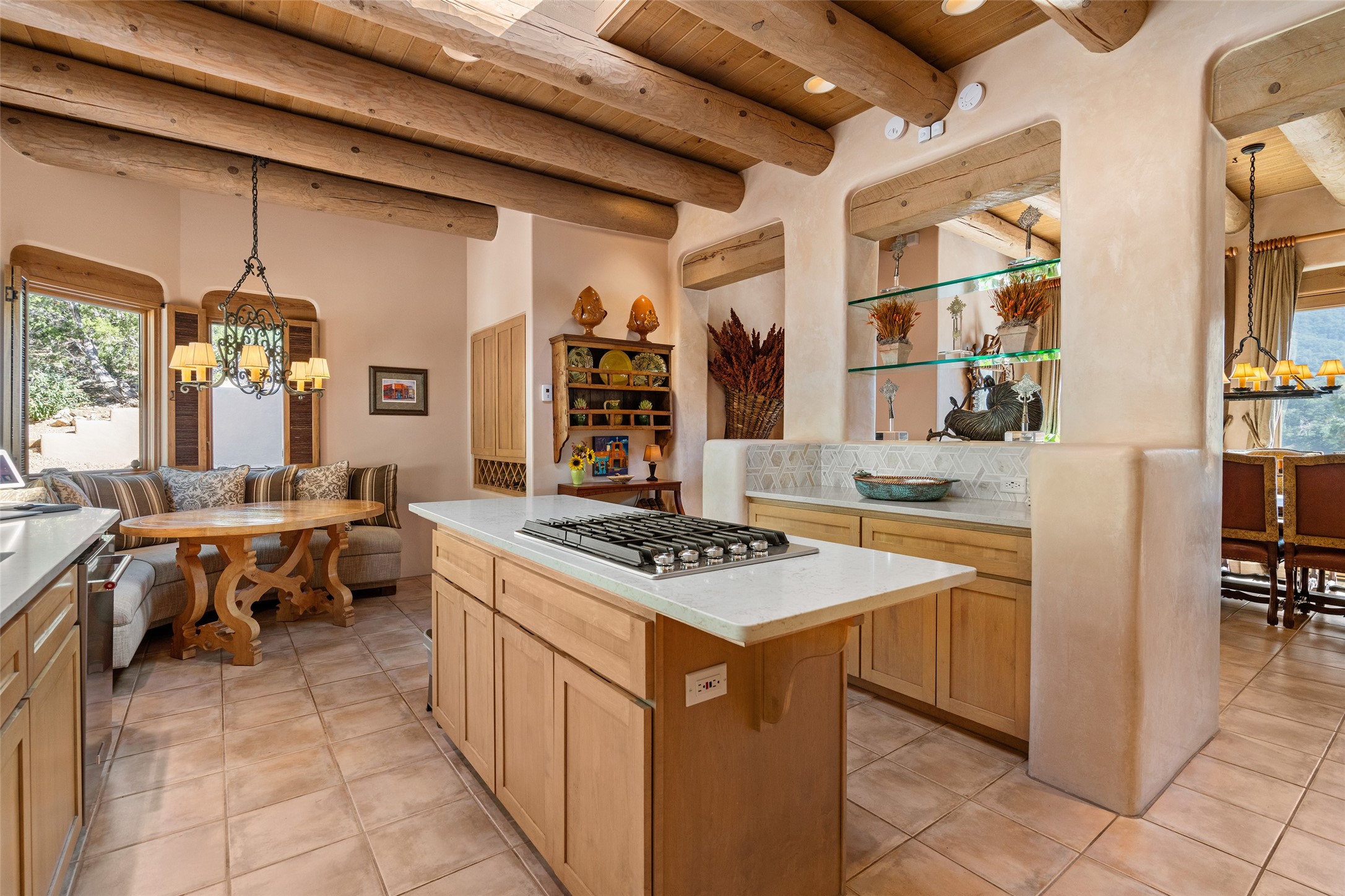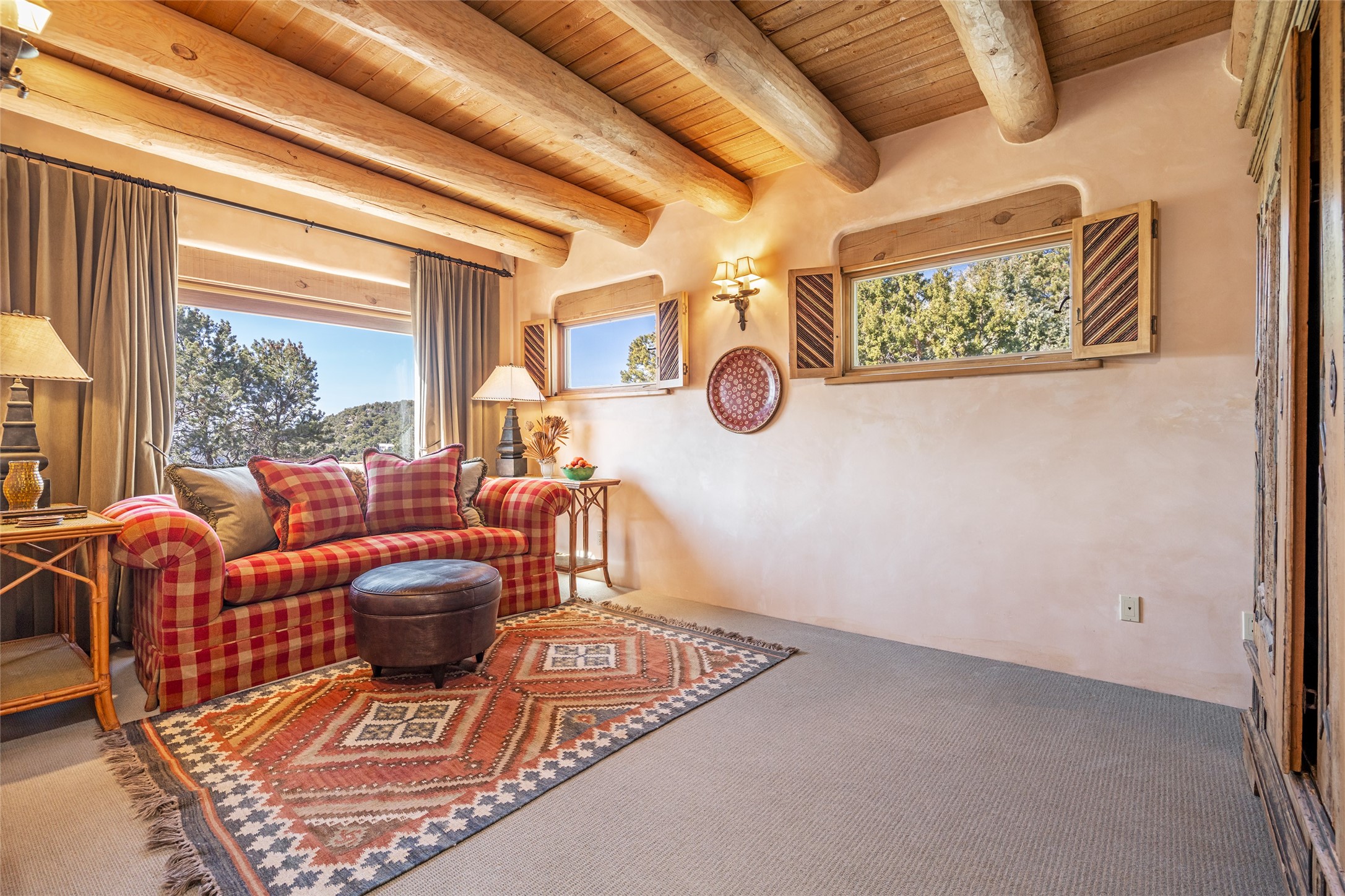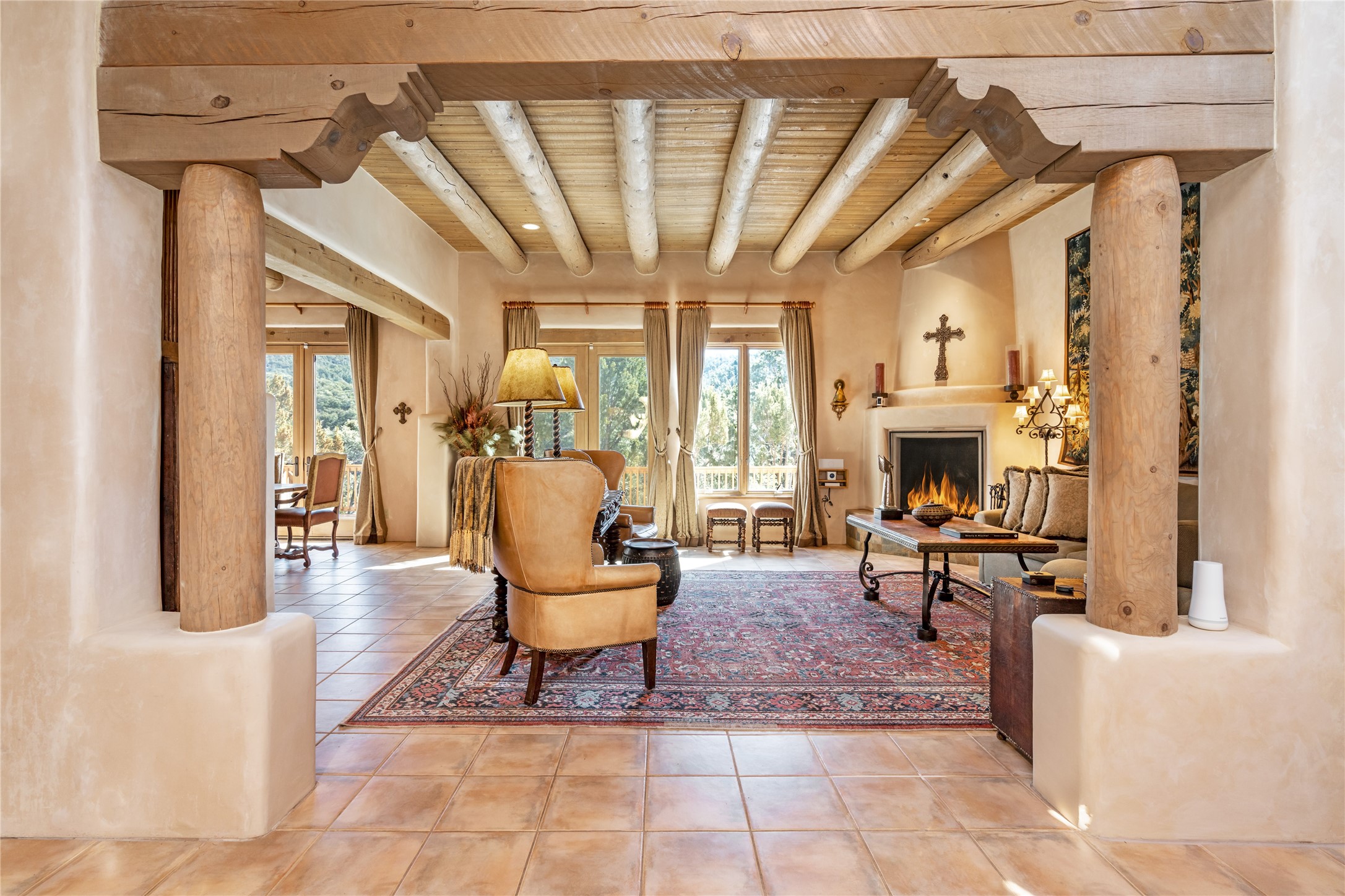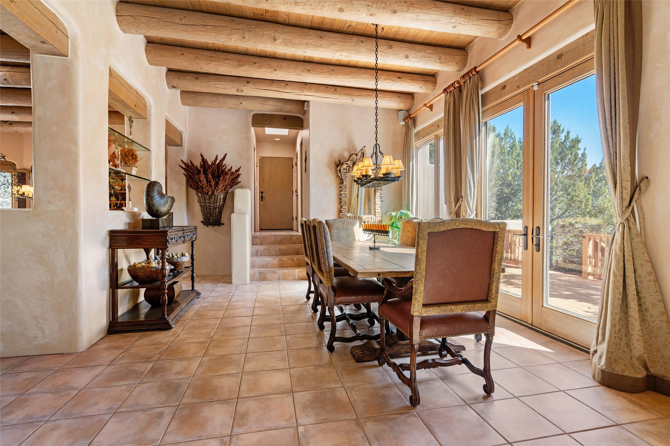 Perched in the peaceful foothills just minutes from downtown Santa Fe, this beautifully updated 3-bedroom, 2.5-bath mountain retreat offers a seamless blend of Southwestern charm and modern comfort. Classic vigas and warm wood accents echo traditional Santa Fe style, while a thoughtfully remodeled interior brings contemporary flair. The open-concept living area, anchored by a cozy fireplace, frames expansive views of the surrounding landscape--perfect for quiet evenings or entertaining guests.The chef's kitchen boasts high-end appliances, sleek new countertops, and custom cabinetry, making it as functional as it is stylish. Step outside onto the brand-new wraparound deck, ideal for savoring your morning coffee, dining al fresco, or gathering around the fire pit with friends while overlooking the untouched beauty of the adjacent national forest.Spa-inspired bathrooms and two generous office/flex rooms offer comfort and versatility, while a new roof and numerous upgrades throughout ensure this home is completely move-in ready. Experience the serenity of mountain living without sacrificing the convenience of being close to town--your Santa Fe sanctuary awaits.