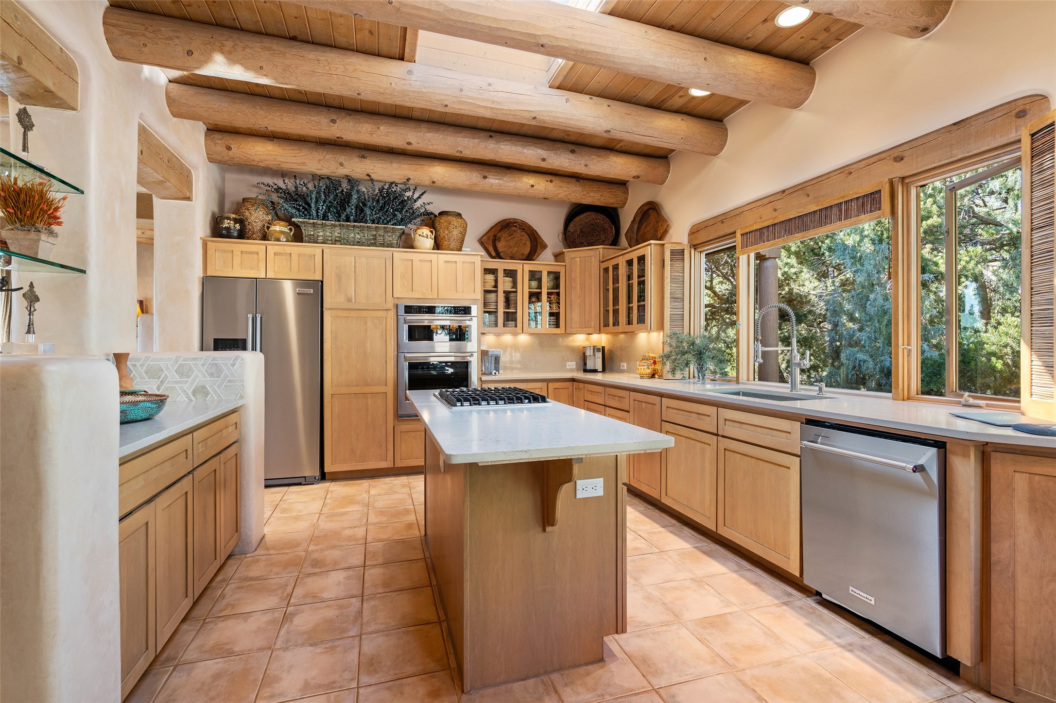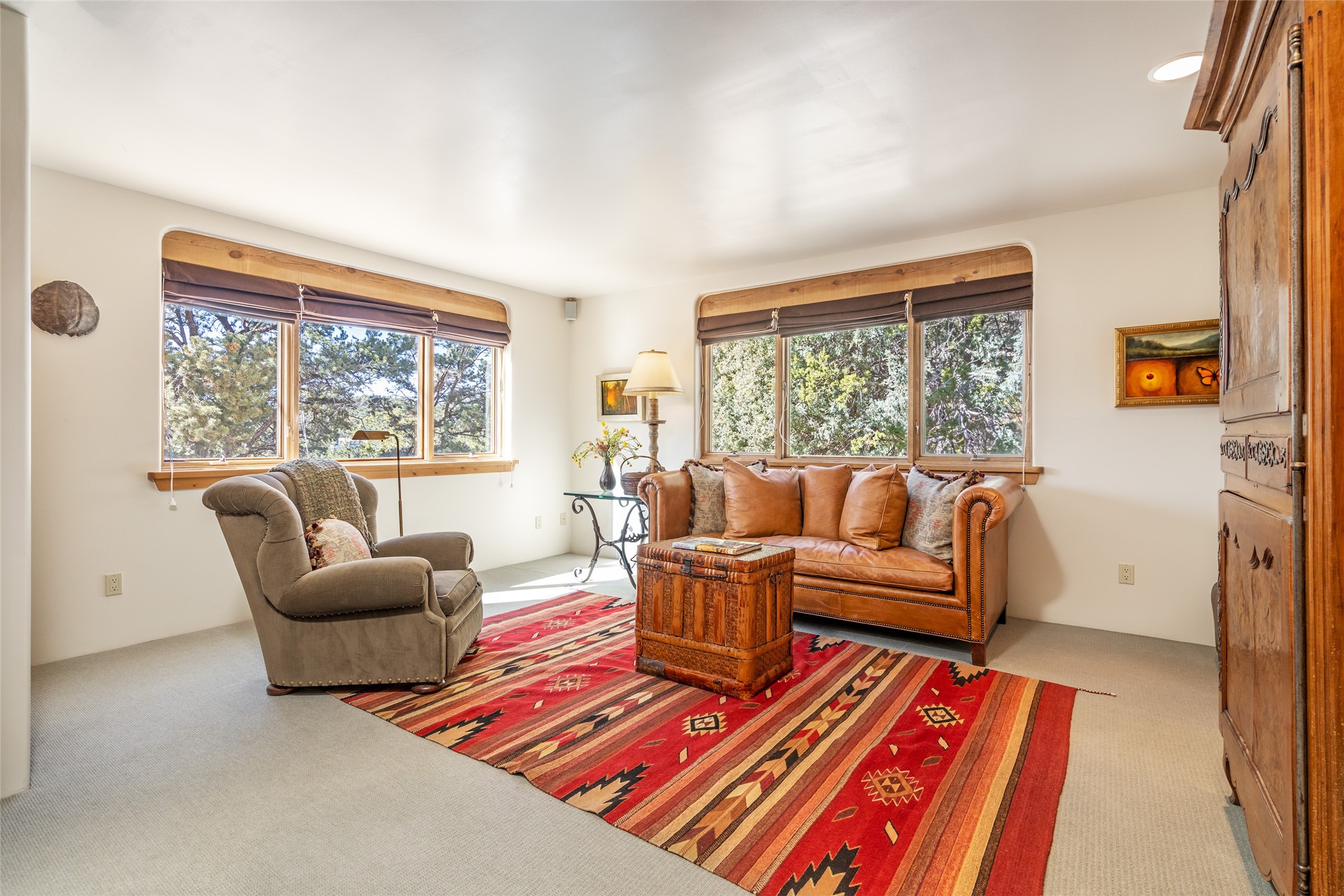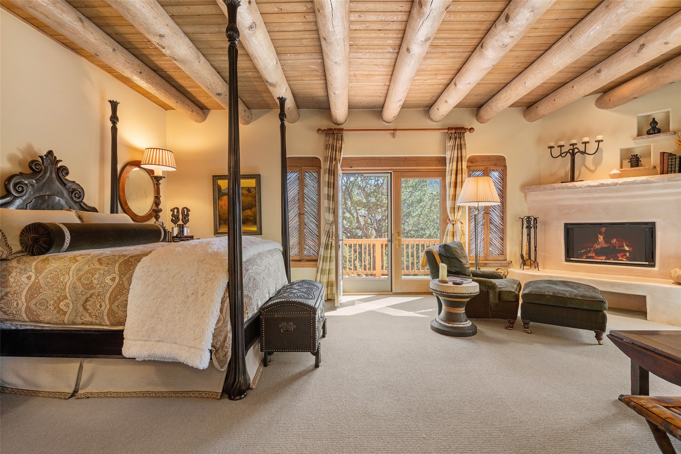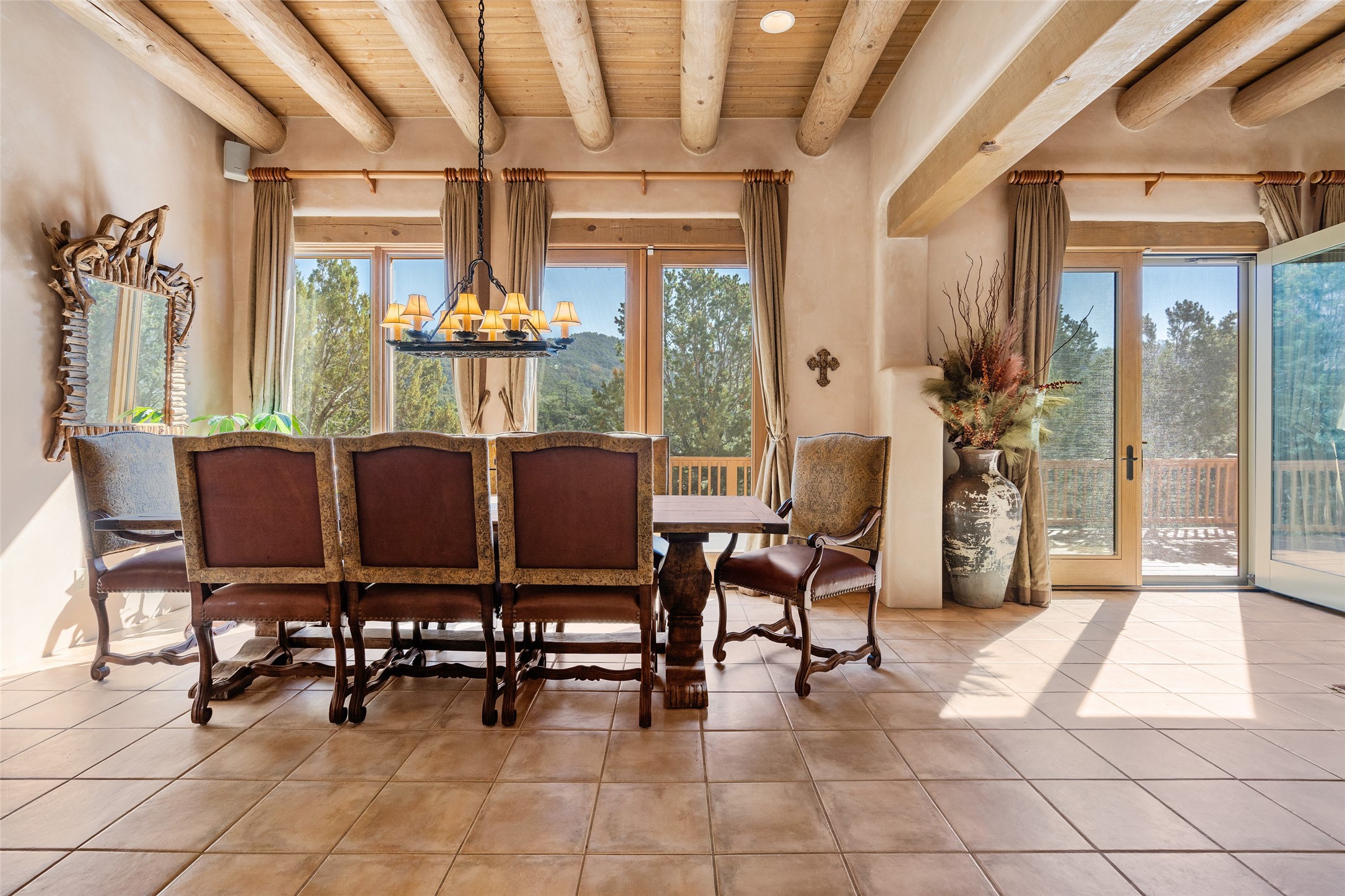 Perched in the peaceful foothills just minutes from downtown Santa Fe, this beautifully updated 3-bedroom, 2.5-bath mountain retreat offers a seamless blend of Southwestern charm and modern comfort. Classic vigas and warm wood accents echo traditional Santa Fe style, while a thoughtfully remodeled interior brings contemporary flair. The open-concept living area, anchored by a cozy fireplace, frames expansive views of the surrounding landscape--perfect for quiet evenings or entertaining guests.The chef's kitchen boasts high-end appliances, sleek new countertops, and custom cabinetry, making it as functional as it is stylish. Step outside onto the brand-new wraparound deck, ideal for savoring your morning coffee, dining al fresco, or gathering around the fire pit with friends while overlooking the untouched beauty of the adjacent national forest.Spa-inspired bathrooms and two generous office/flex rooms offer comfort and versatility, while a new roof and numerous upgrades throughout ensure this home is completely move-in ready. Experience the serenity of mountain living without sacrificing the convenience of being close to town--your Santa Fe sanctuary awaits.