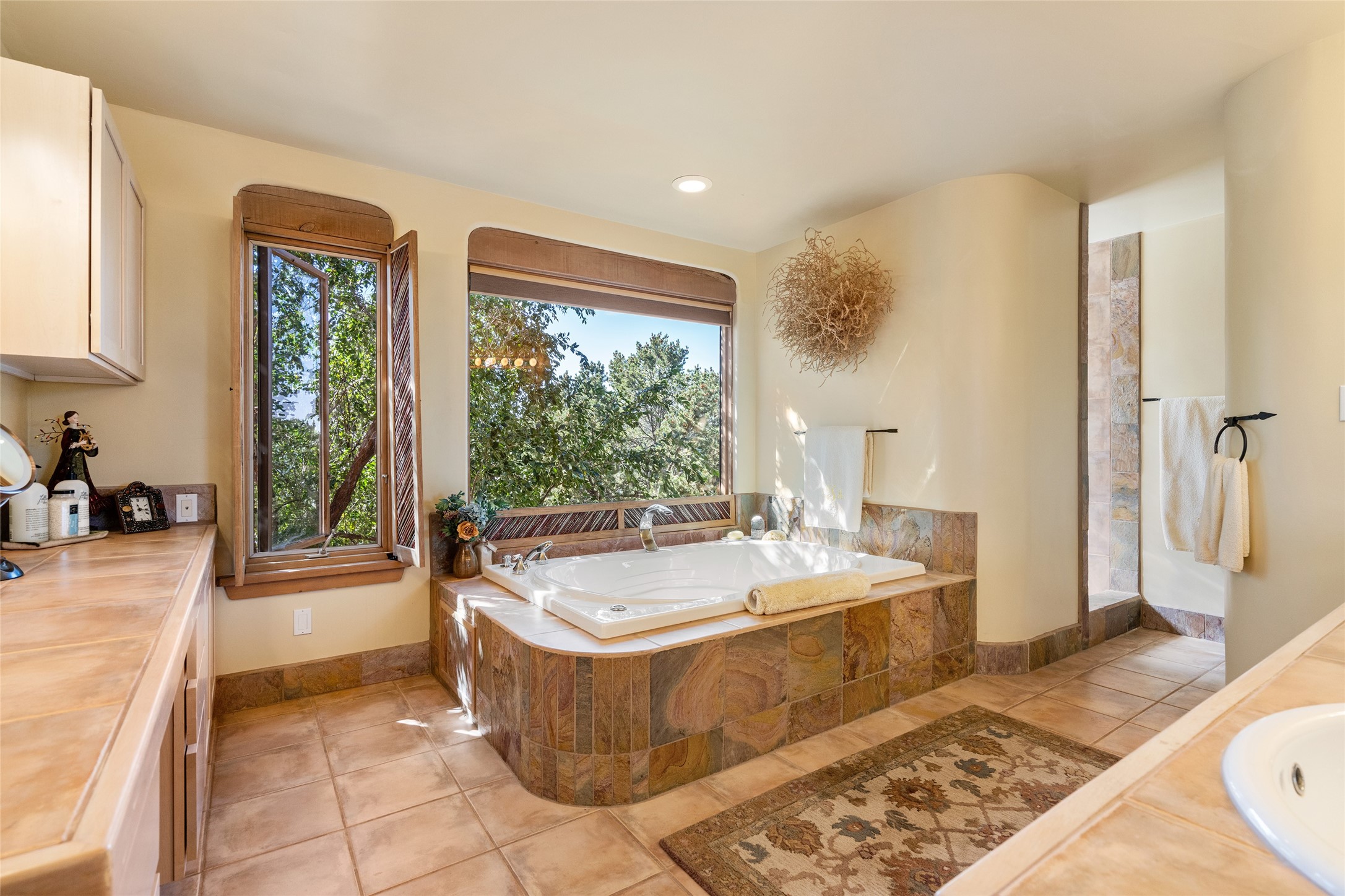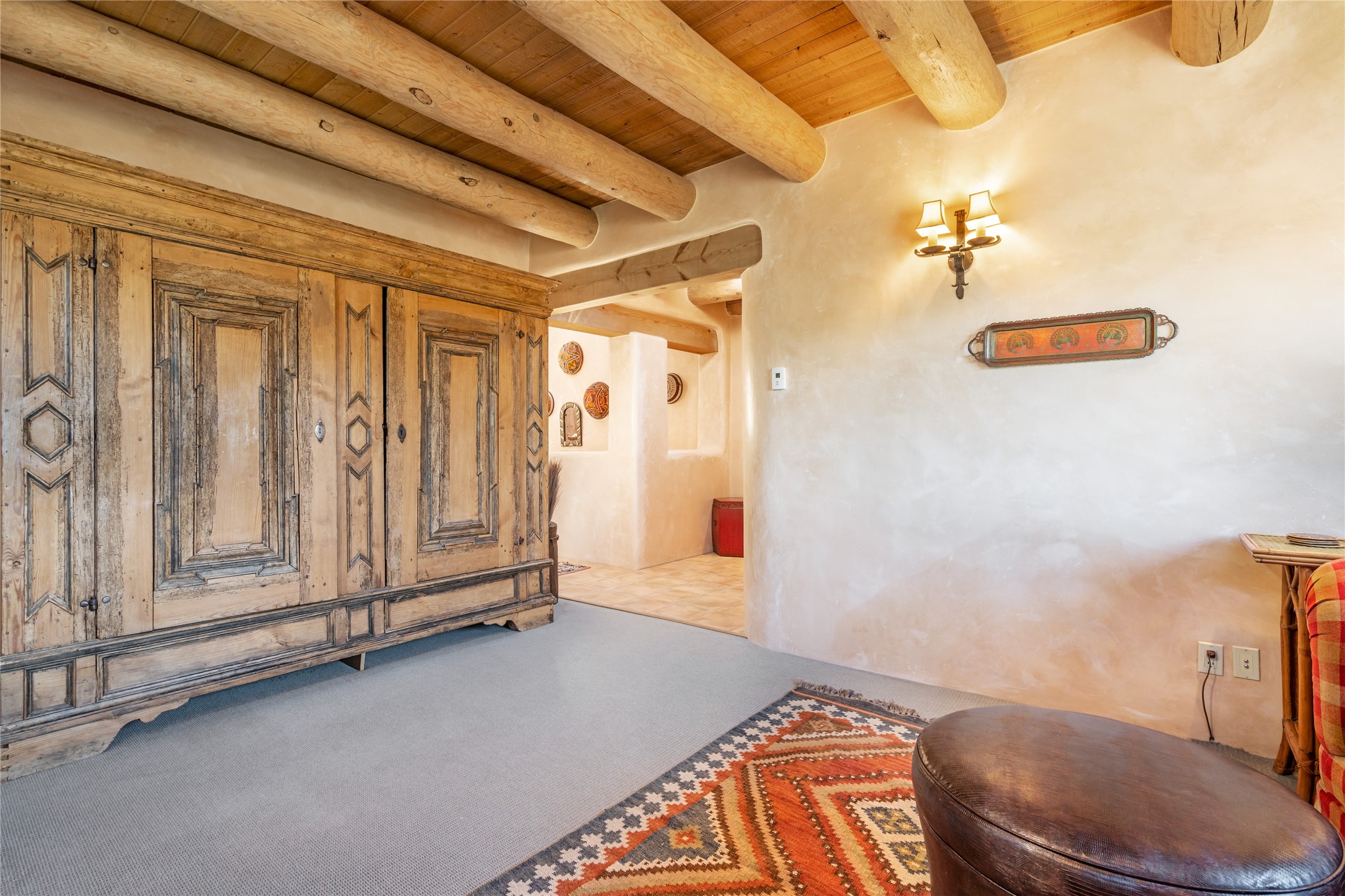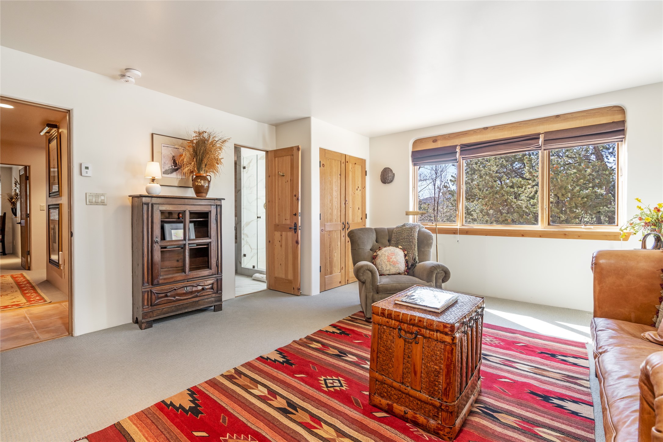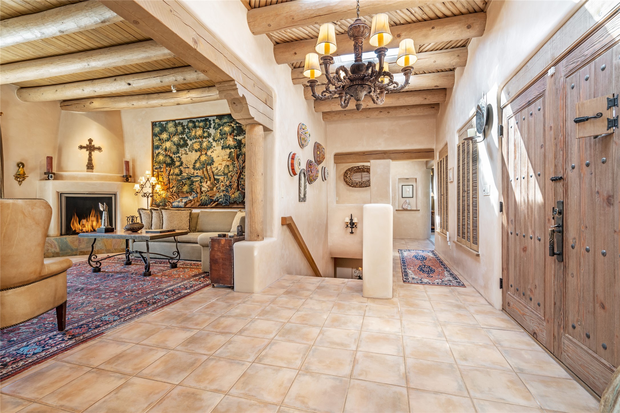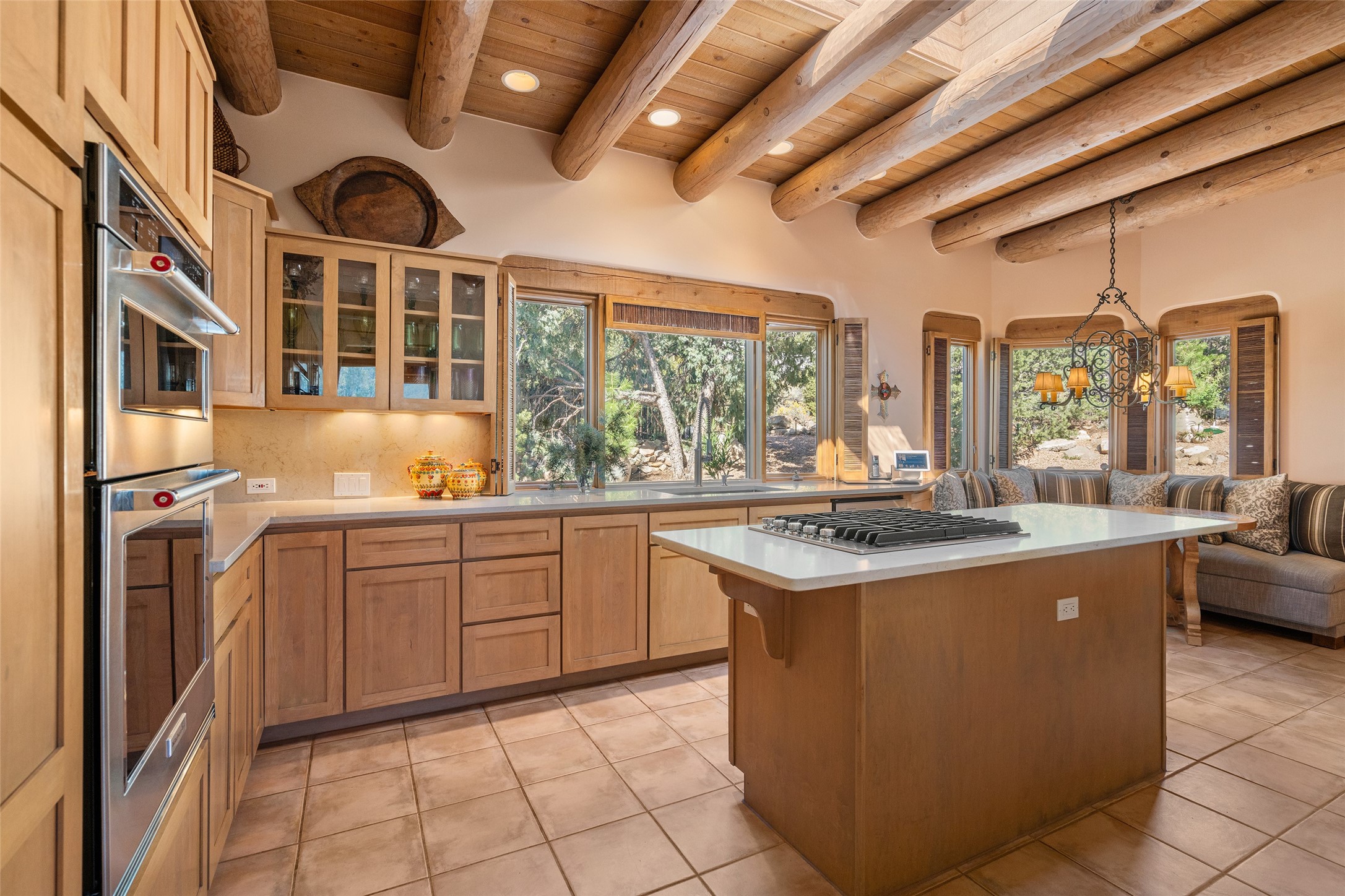 Perched in the peaceful foothills just minutes from downtown Santa Fe, this beautifully updated 3-bedroom, 2.5-bath mountain retreat offers a seamless blend of Southwestern charm and modern comfort. Classic vigas and warm wood accents echo traditional Santa Fe style, while a thoughtfully remodeled interior brings contemporary flair. The open-concept living area, anchored by a cozy fireplace, frames expansive views of the surrounding landscape--perfect for quiet evenings or entertaining guests.The chef's kitchen boasts high-end appliances, sleek new countertops, and custom cabinetry, making it as functional as it is stylish. Step outside onto the brand-new wraparound deck, ideal for savoring your morning coffee, dining al fresco, or gathering around the fire pit with friends while overlooking the untouched beauty of the adjacent national forest.Spa-inspired bathrooms and two generous office/flex rooms offer comfort and versatility, while a new roof and numerous upgrades throughout ensure this home is completely move-in ready. Experience the serenity of mountain living without sacrificing the convenience of being close to town--your Santa Fe sanctuary awaits.