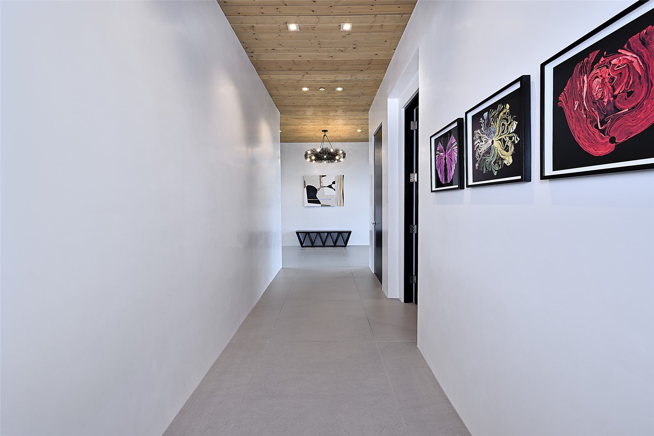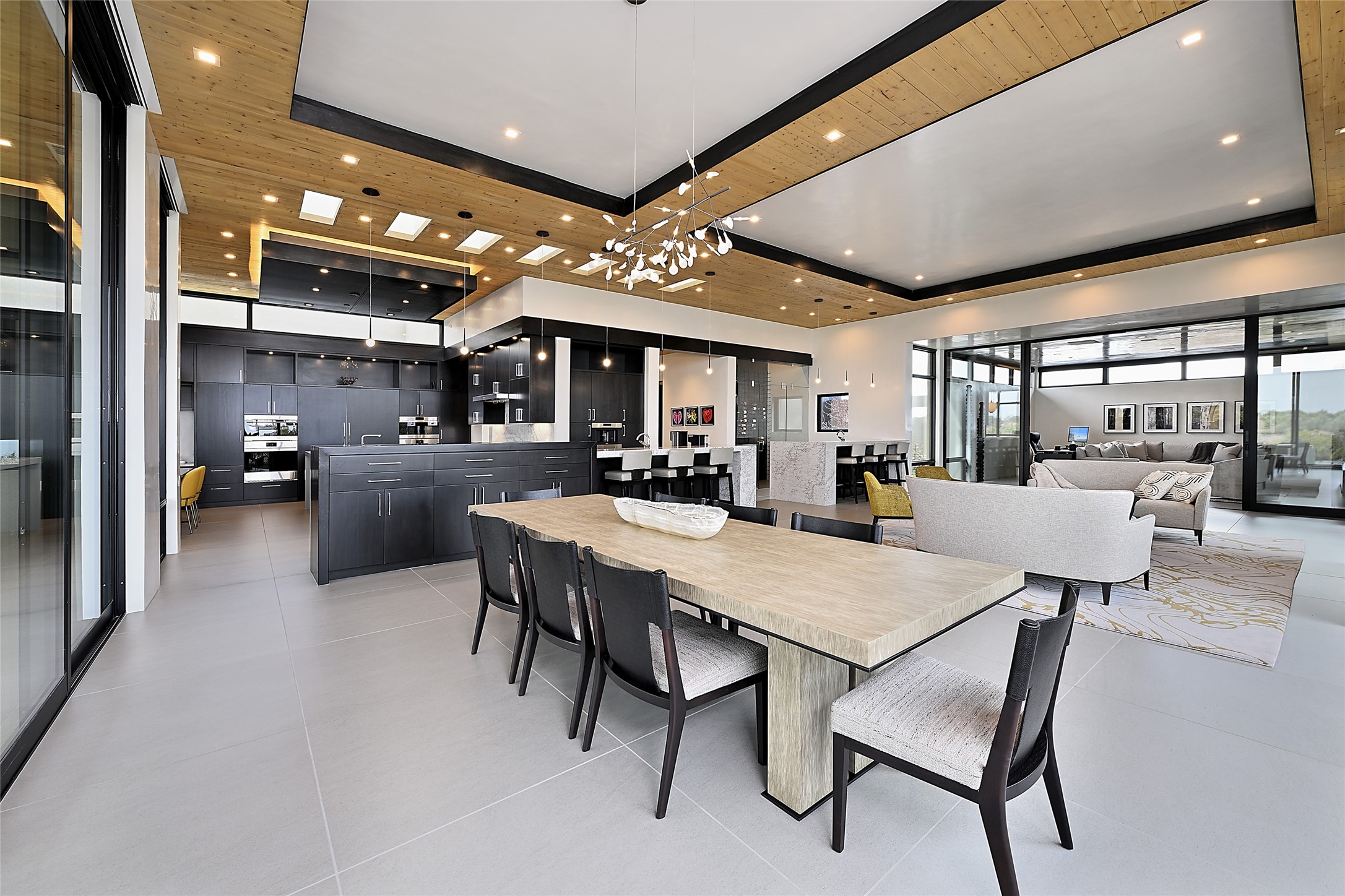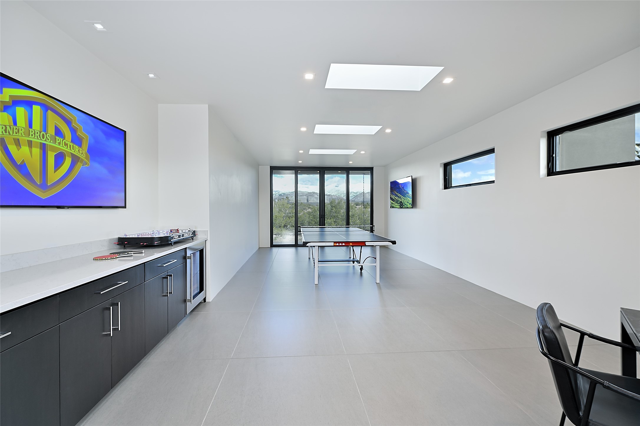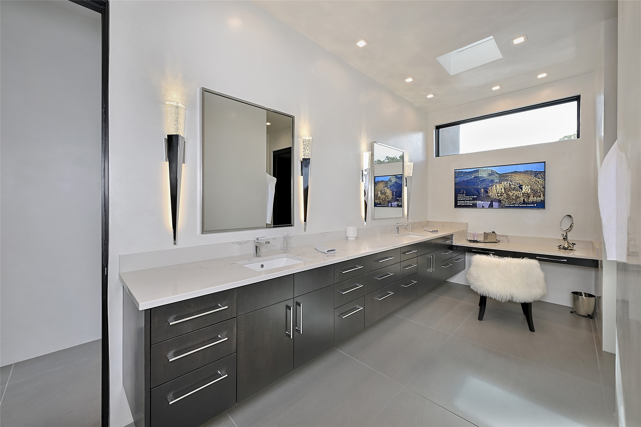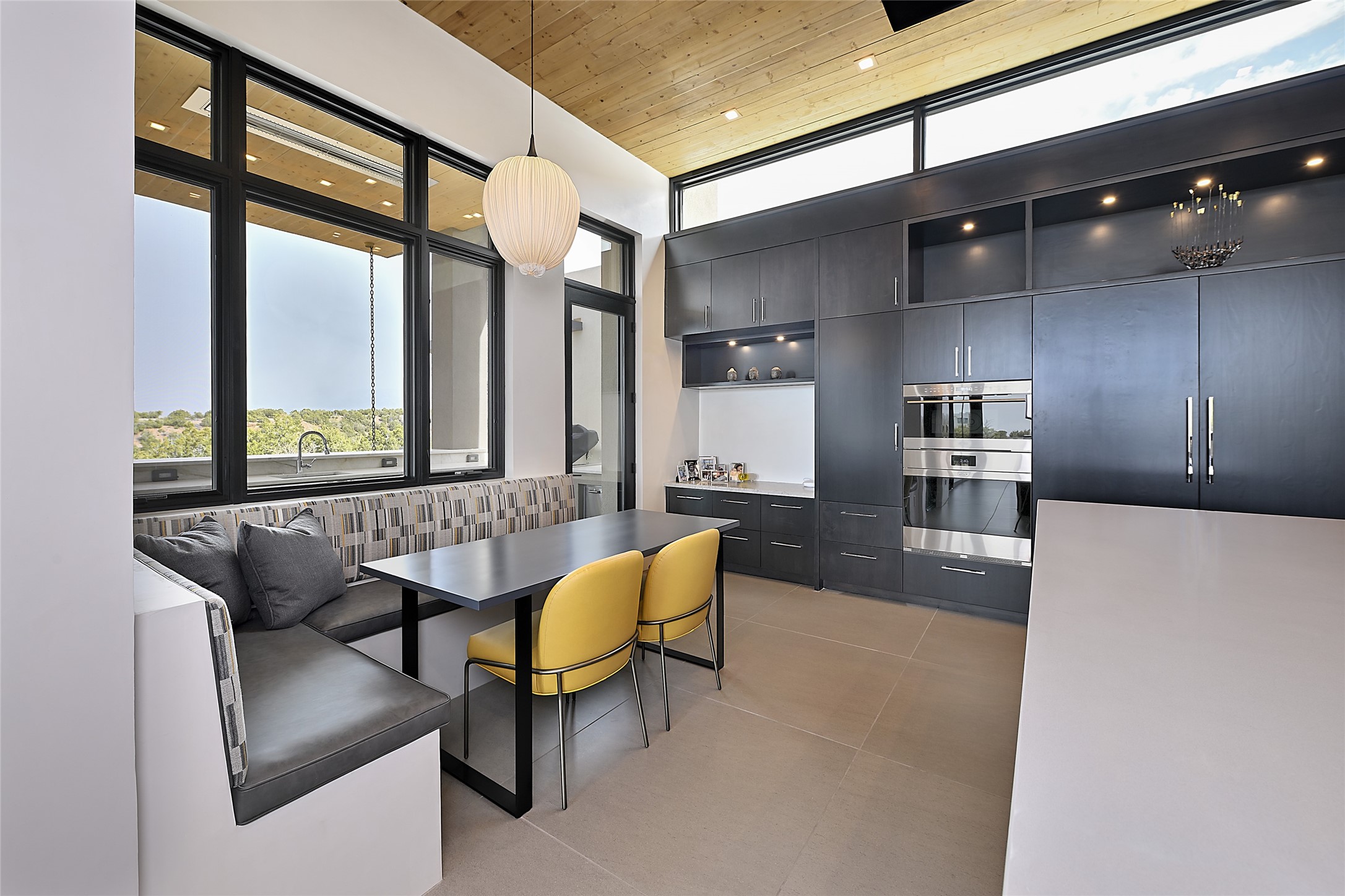 Monte Sereno Masterpiece. Sculpted by builder Kim Dressel and architect Rad Acton from cutting edge contemporary building materials, glass, and stone, the East-Facing classic one-level home delivers on every level - starting the enormous views of the Sangre de Cristo Mountains to the east and the Badlands to the north. Enter through a private gate to the motor court with pavers, then the pivot gate & private garden - to a view sequence matched by few other properties in all of Santa Fe. Completed in 2022, the soaring ceilings and walls of glass are complemented by a wonderful open floor plan which meshes the living room/dining room/kitchen/wine bar into one graceful glowing space. Top-of-the-line appliance package and views galore make the kitchen a true centerpiece of the home, with a full butler's pantry and cozy banco seating area. The media room/office area are state-of-the art on every level, with an oversized TV screen and partitioning for privacy. The outdoor portal space retains the high ceilings, and the space is replete with a pool/spa feature that is fully programmable, a well equipped outdoor kitchen, and in ceiling radiant heaters to take the edge off Santa Fe's cool evenings while taking in the views. The primary suite is cloistered away from the rest of the home and enjoys spectacular views and a luxurious bathroom suite and separate closets. The other bedrooms all enjoy the same views and ensuite baths. There is a separate exercise room on the south end of the home which also retains the views and lots of sunlight - could also be a great artist's studio.