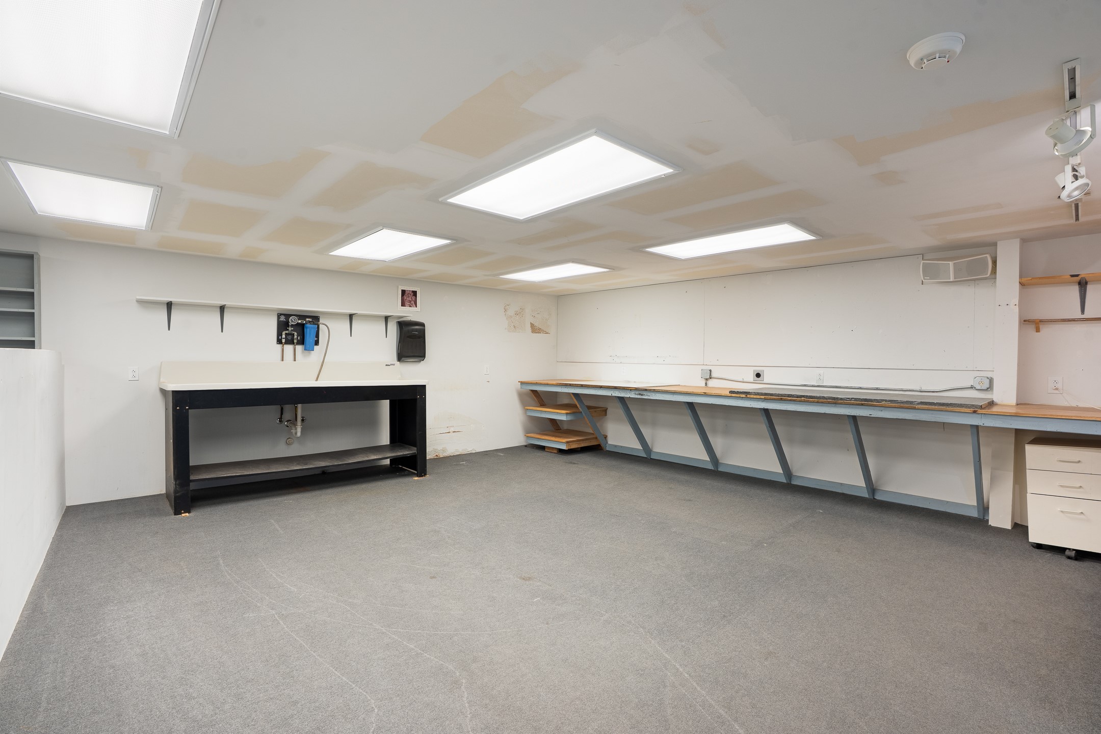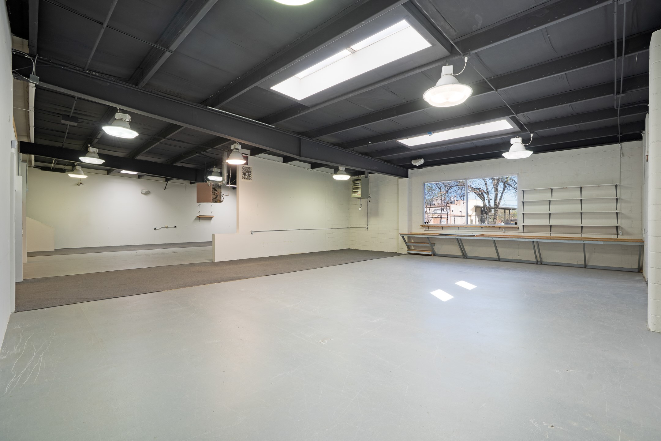 Rear industrial property available for lease. Situated just off Siler Road and zoned I-1 (Industrial), this 5,000/SF building offers abundant natural light, enhanced by skylights, and 14-foot ceiling heights. It features a spacious reception area and kitchenette, gas-hung heaters, and a 10-foot roll-up door, with the option to reinstall a second door if needed. The property also includes over 1,000/SF of finished mezzanine space, ideal for office use or storage, and a fenced parking area at the rear. This location is well-suited for artists, contractors, retail businesses, or light manufacturing.