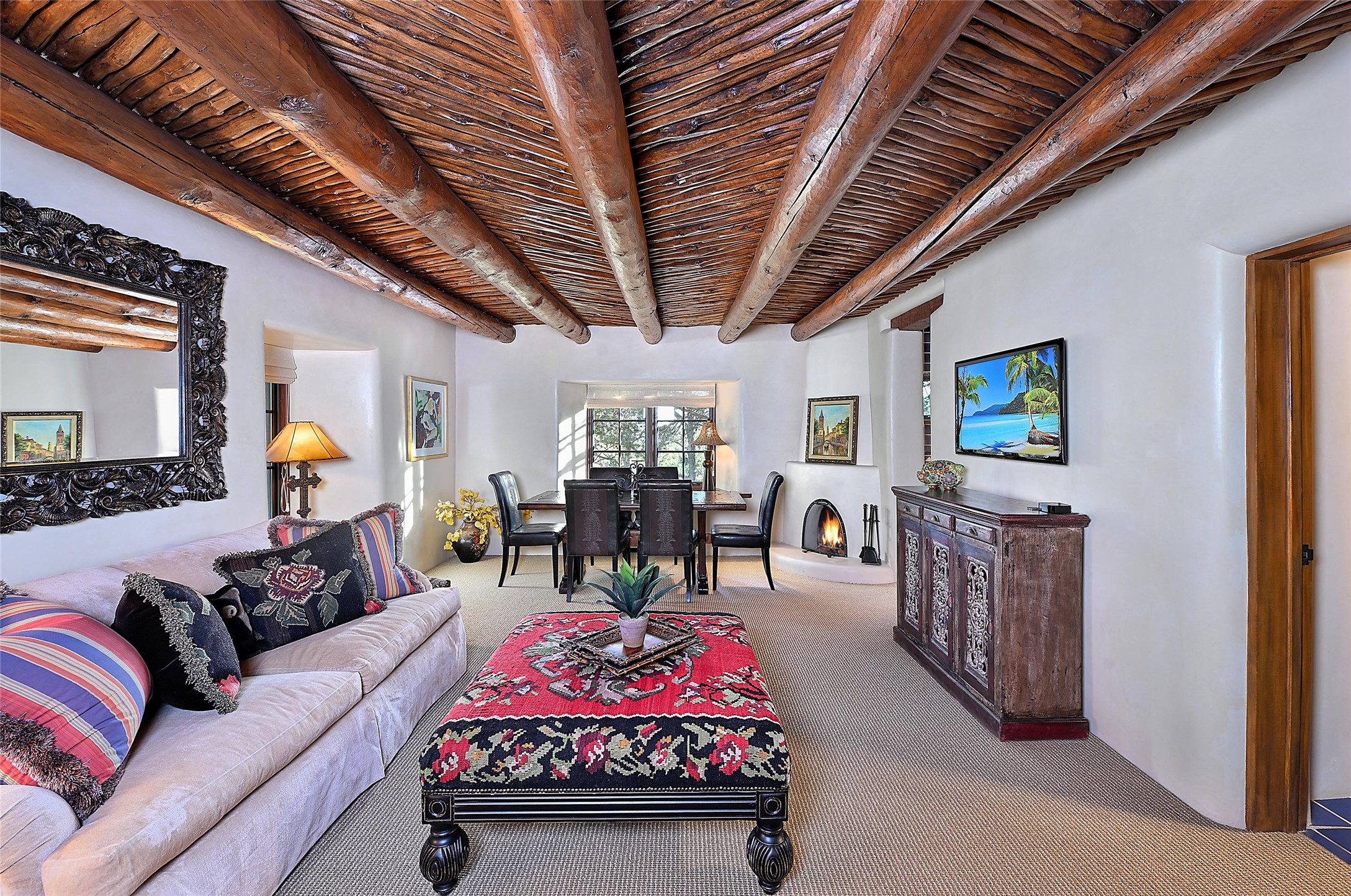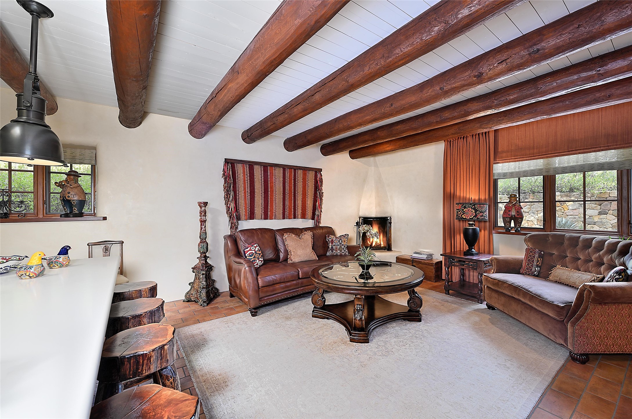 Experience the rare opportunity to own a meticulously restored piece of Santa Fe's history. Just minutes from the Plaza, Casa Alegre, originally built in 1931 by Governor John Dempsey, stands as a timeless adobe estate that seamlessly blends historic charm with modern sophistication. Set on 11 breathtaking acres, this exceptional property features a stately six-bedroom main residence, exquisitely renovated to preserve its architectural integrity while incorporating the finest contemporary comforts. Three private guest houses provide additional generous accommodations, making this an ideal retreat for family, friends and distinguished guests. The estate's resort-like grounds are a true sanctuary, featuring a heated outdoor pool, a private tennis court and stone-lined walking trails that wind through the lush landscape. The grounds include an abundance of trees, along with a bountiful organic garden and orchard. An aggregate of 20 fireplaces are experienced throughout the estate. Steeped in history, Casa Alegre has been home to a succession of distinguished owners following Governor Dempsey, including an heir to the Weyerhaeuser timber fortune and a member of the Martini & Rossi family. Following a period of limited enhancement, Robert and Miriam Knutson, founders of Education Management Corporation, embarked on a four and a half-year, $18 million restoration of the compound in 2004, enlisting master artisans, architects, and craftsmen to revive the estate to perfection. Their meticulous efforts ranged from restoring infrastructure, building intricate rock walls, to curating 64 distinct window styles that honor the home's original character. Lovingly maintained by its current owners, Casa Alegre has served as the backdrop or cherished family gatherings and elegant philanthropic events. A rare jewel in Santa Fe's real estate landscape, this extraordinary estate offers an unrivaled opportunity to own a piece of history, beautifully reimagined for modern luxury living.
