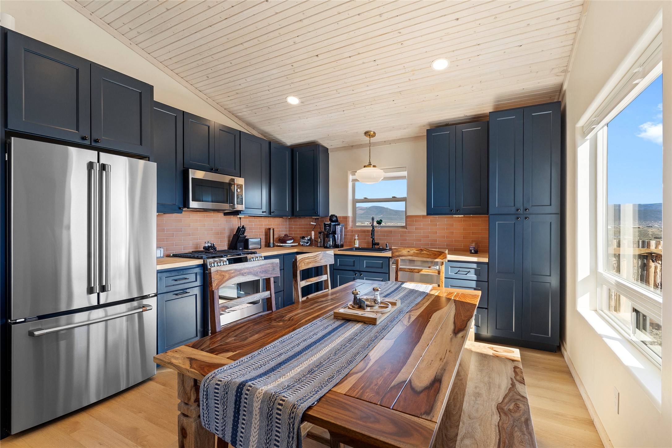 $5,000 credit with acceptable offer! Unbelievable views! Perfect for watching those beautiful morning sunrises and evening sunsets! This cute country home has an updated light and bright kitchen with stainless steel appliances and butcher block countertops, 2 bedrooms and 2 baths with all the space for your toys! Home is energy efficient with radiant floor heating, natural gas with NM gas company, Electric with Kit Carson, and internet with Taos net! Ceiling fans with dimmer lights throughout and blinds open from top or bottom. Come see this beauty today!