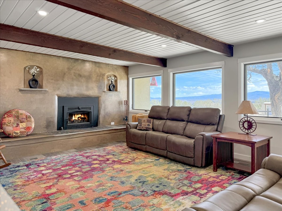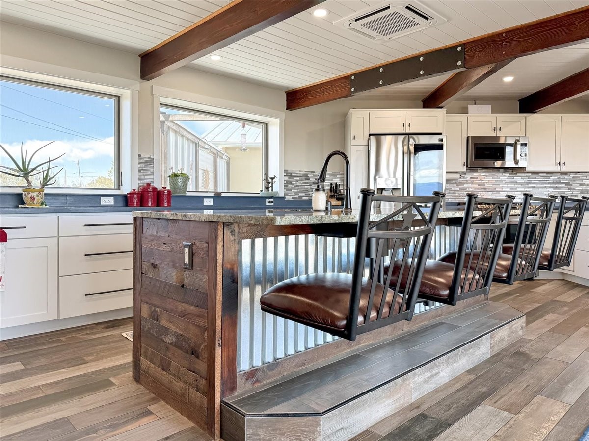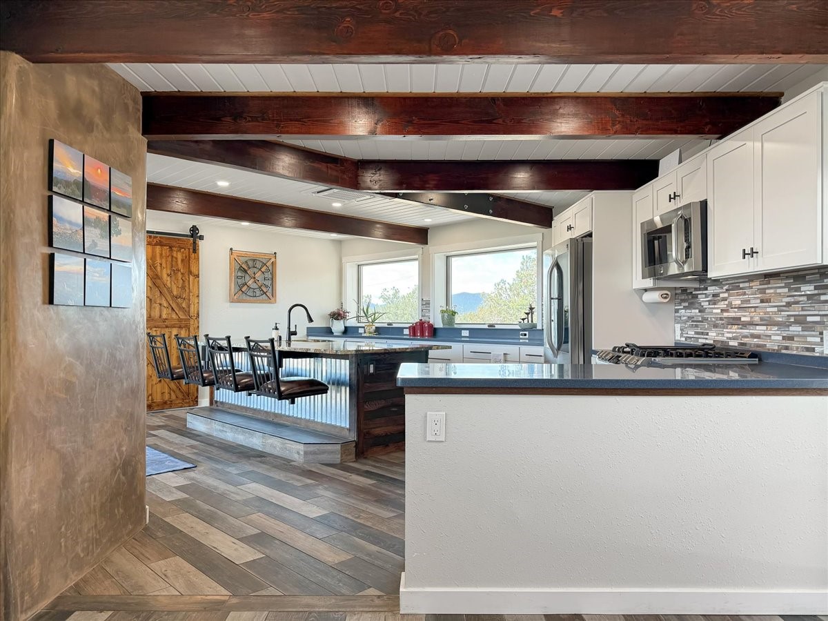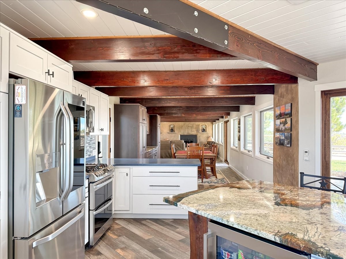 Stunning Cliffside Retreat on just under 3.5 Acres | Fully Remodeled 3BD/2BA Home. Experience serene living in this beautifully remodeled home perched on just under 3.5 acres of breathtaking cliffside property. Featuring approximately 2,000 sq ft of open-concept living, this 3-bedroom, 2-bathroom home offers a harmonious blend of rustic charm and modern luxury. Every detail has been updated: new plumbing, HVAC, electrical, roof, windows, doors, and flooring. Custom barnwood accents, reclaimed from the property, add warmth and character. Wall-to-wall windows capture expansive canyon views and natural light, creating a peaceful, light-filled atmosphere. The thoughtfully designed layout features two bedrooms with a shared full bath (jet tub), while the spacious primary suite includes a luxurious en suite. Enjoy radiant heated floors in both bathrooms, efficient mini-split climate control throughout, a recently serviced Lopi wood stove, and on-demand hot water. The gourmet kitchen includes DeWillis soft-close cabinetry, granite and Corian countertops, abundant storage, and a wine and beer fridge--ideal for entertaining. Additional Features include, Brand-new oversized 2-car garage with blown insulation, Heated outdoor shop with horse stalls - perfect for animal lovers, artists, or hobbyists, Updated electrical in barn, Trek deck with unobstructed views. Enjoy privacy, comfort, and versatile space for living, working, or hosting. This unique property is truly turn-key and move-in ready. Schedule your private showing today!