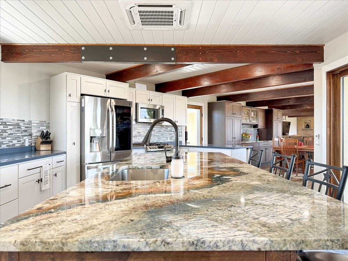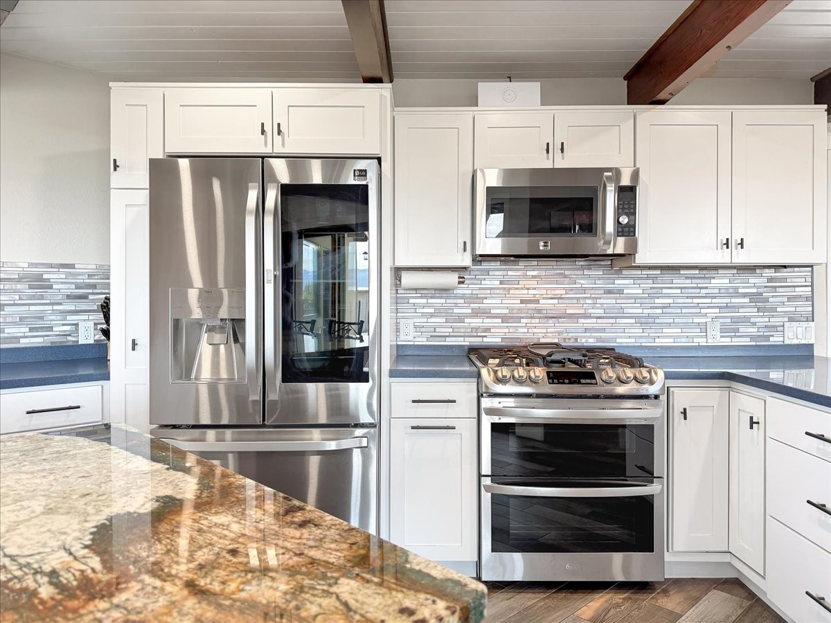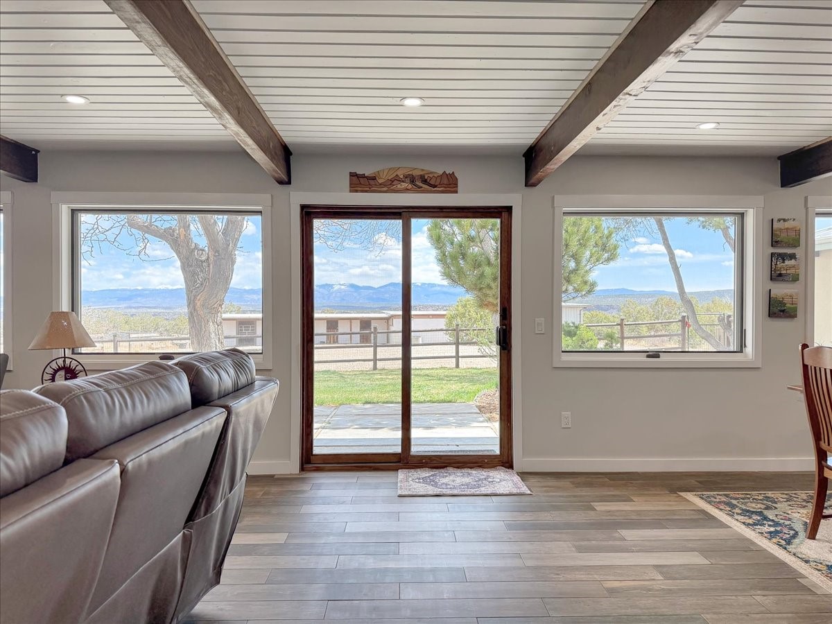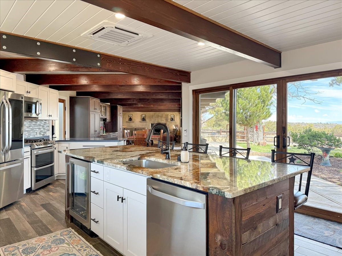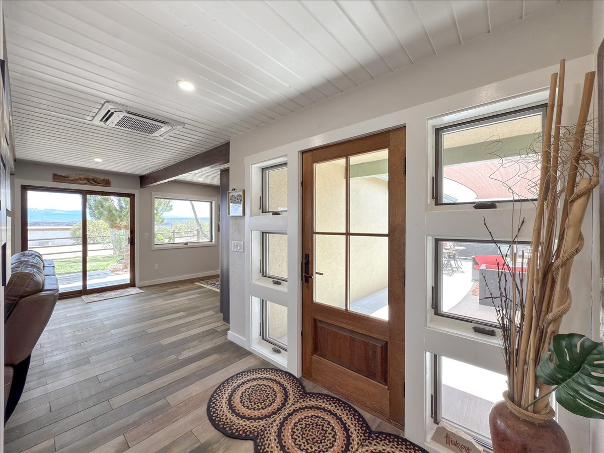 Stunning Cliffside Retreat on just under 3.5 Acres | Fully Remodeled 3BD/2BA Home. Experience serene living in this beautifully remodeled home perched on just under 3.5 acres of breathtaking cliffside property. Featuring approximately 2,000 sq ft of open-concept living, this 3-bedroom, 2-bathroom home offers a harmonious blend of rustic charm and modern luxury. Every detail has been updated: new plumbing, HVAC, electrical, roof, windows, doors, and flooring. Custom barnwood accents, reclaimed from the property, add warmth and character. Wall-to-wall windows capture expansive canyon views and natural light, creating a peaceful, light-filled atmosphere. The thoughtfully designed layout features two bedrooms with a shared full bath (jet tub), while the spacious primary suite includes a luxurious en suite. Enjoy radiant heated floors in both bathrooms, efficient mini-split climate control throughout, a recently serviced Lopi wood stove, and on-demand hot water. The gourmet kitchen includes DeWillis soft-close cabinetry, granite and Corian countertops, abundant storage, and a wine and beer fridge--ideal for entertaining. Additional Features include, Brand-new oversized 2-car garage with blown insulation, Heated outdoor shop with horse stalls - perfect for animal lovers, artists, or hobbyists, Updated electrical in barn, Trek deck with unobstructed views. Enjoy privacy, comfort, and versatile space for living, working, or hosting. This unique property is truly turn-key and move-in ready. Schedule your private showing today!